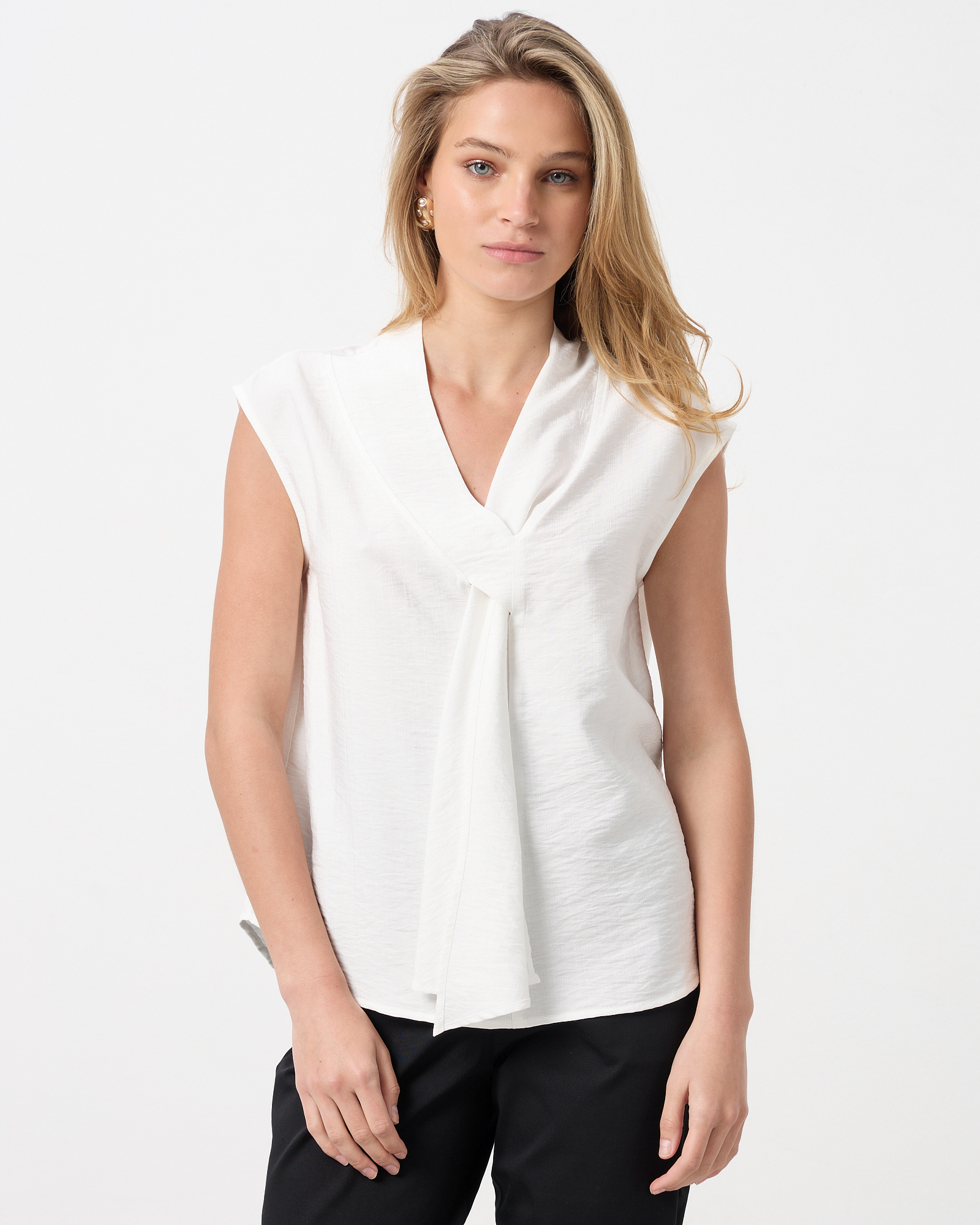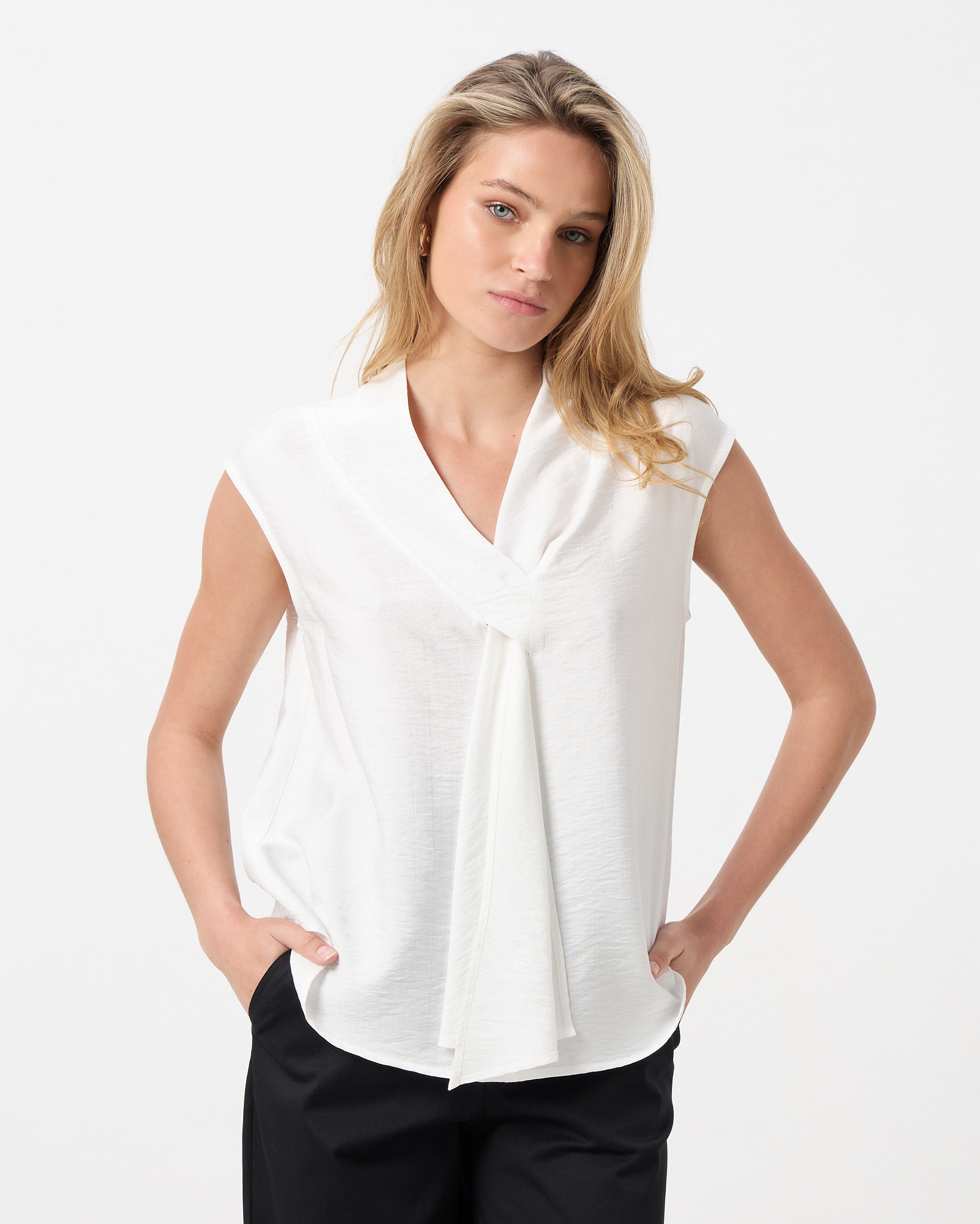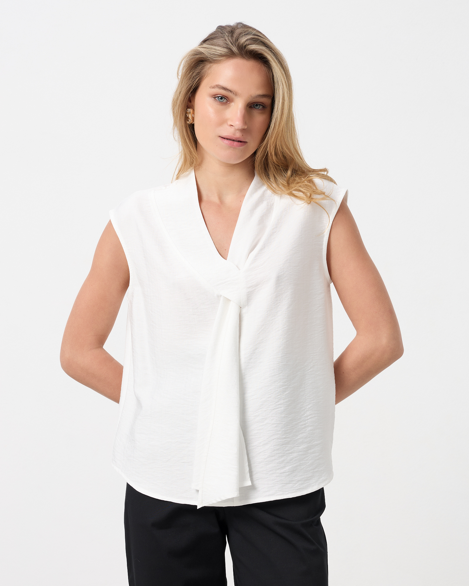 Μπλούζα αμάνικη με V λαιμόκοψη , δέσιμο μπροστά, αέρινο ύφασμα , κανονική εφαρμογή