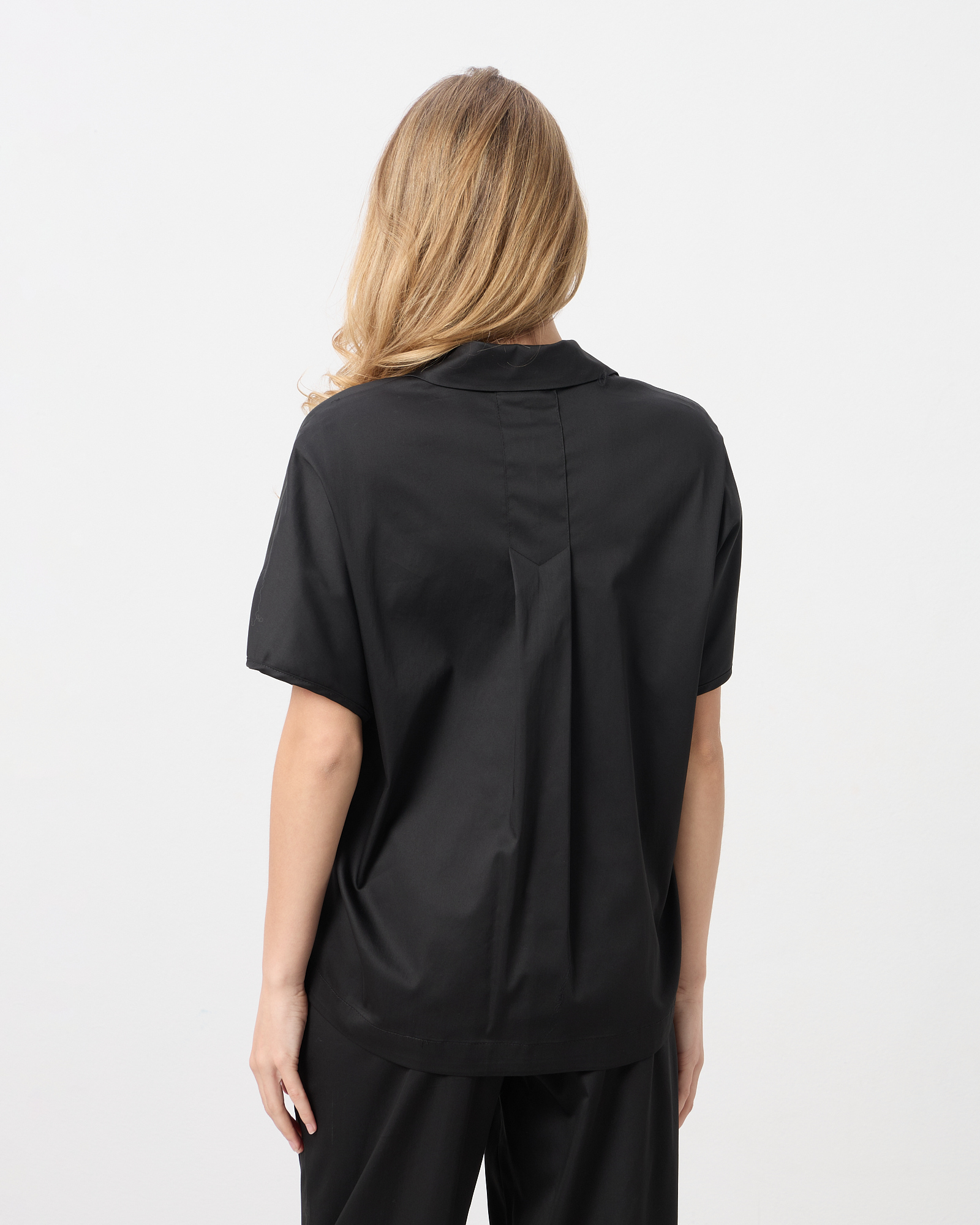 Μπλούζα ποπλίνα κοντομάνικη με γιακά, βαμβακερή σε κανονική γραμμή