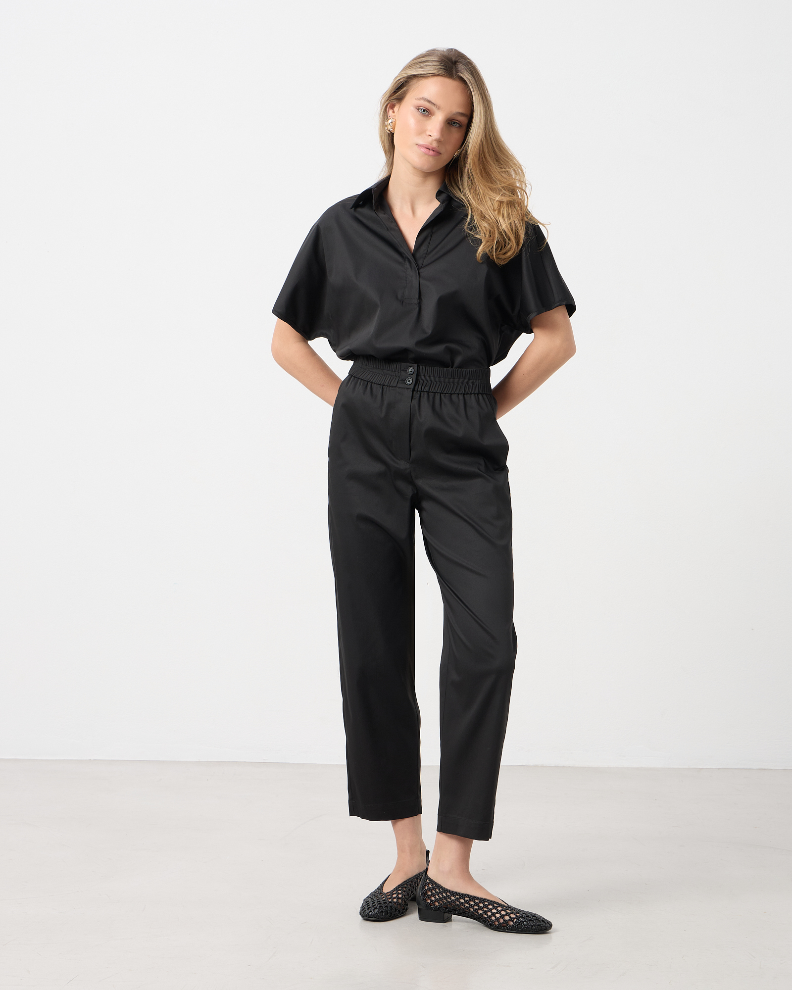 Μπλούζα ποπλίνα με γιακά