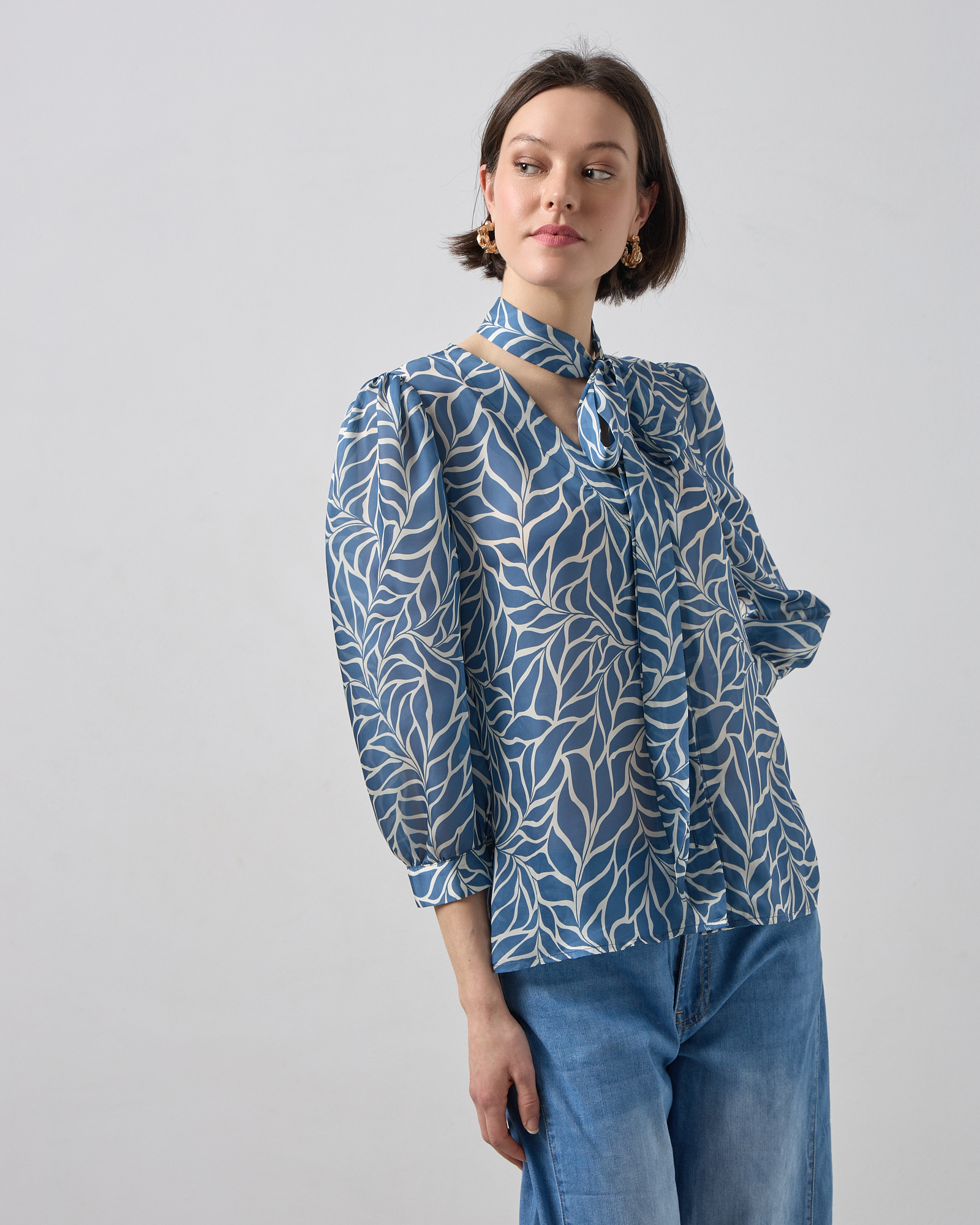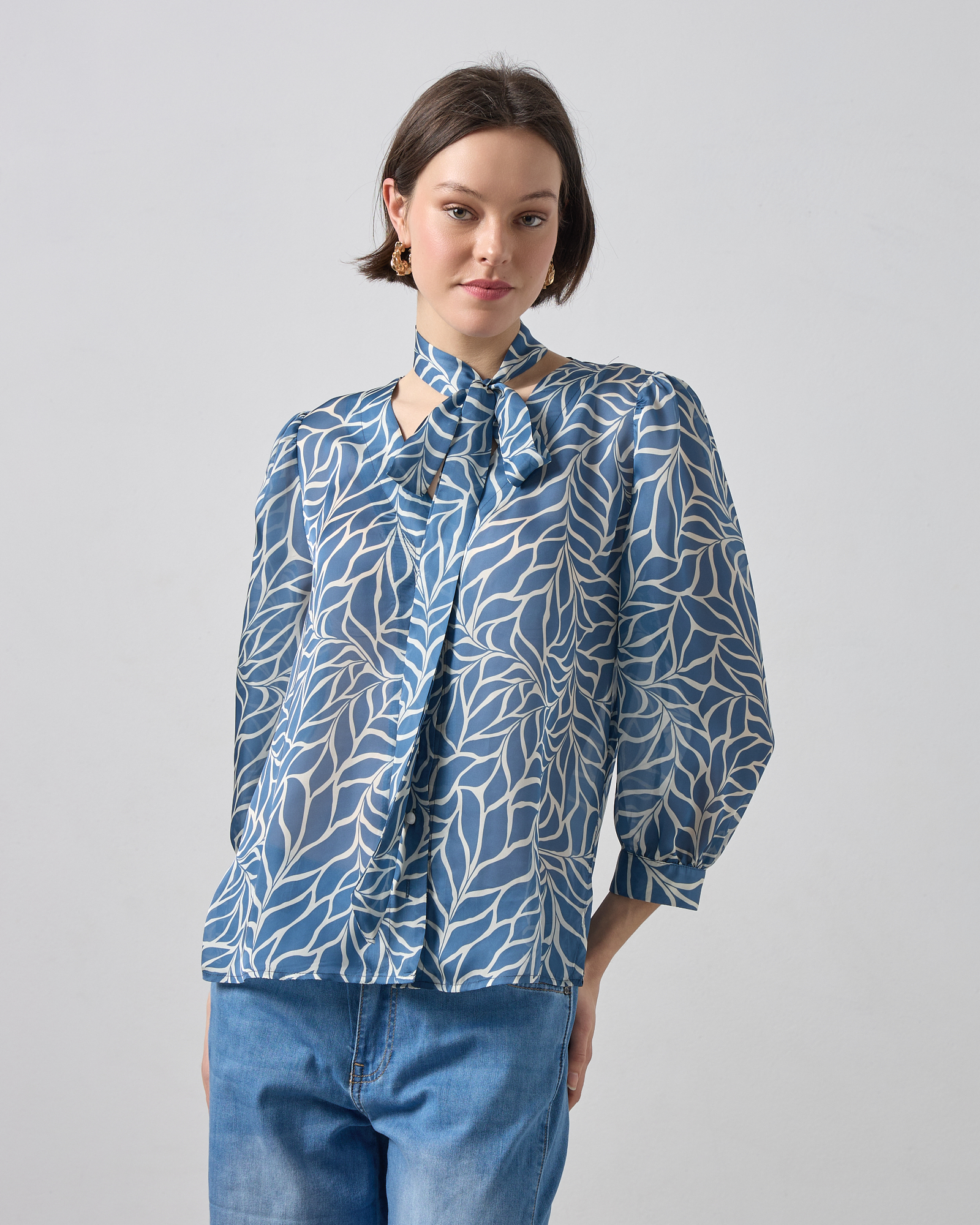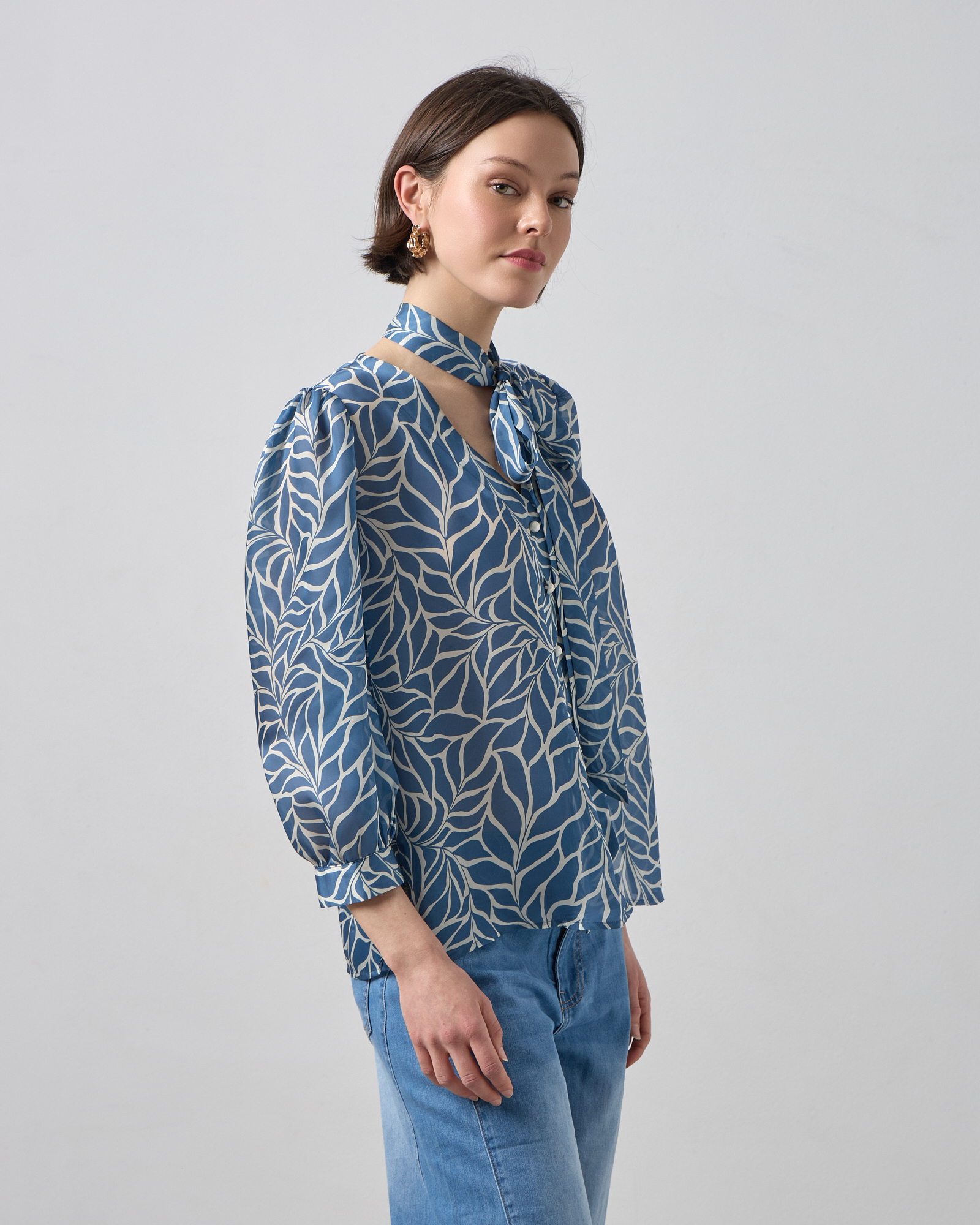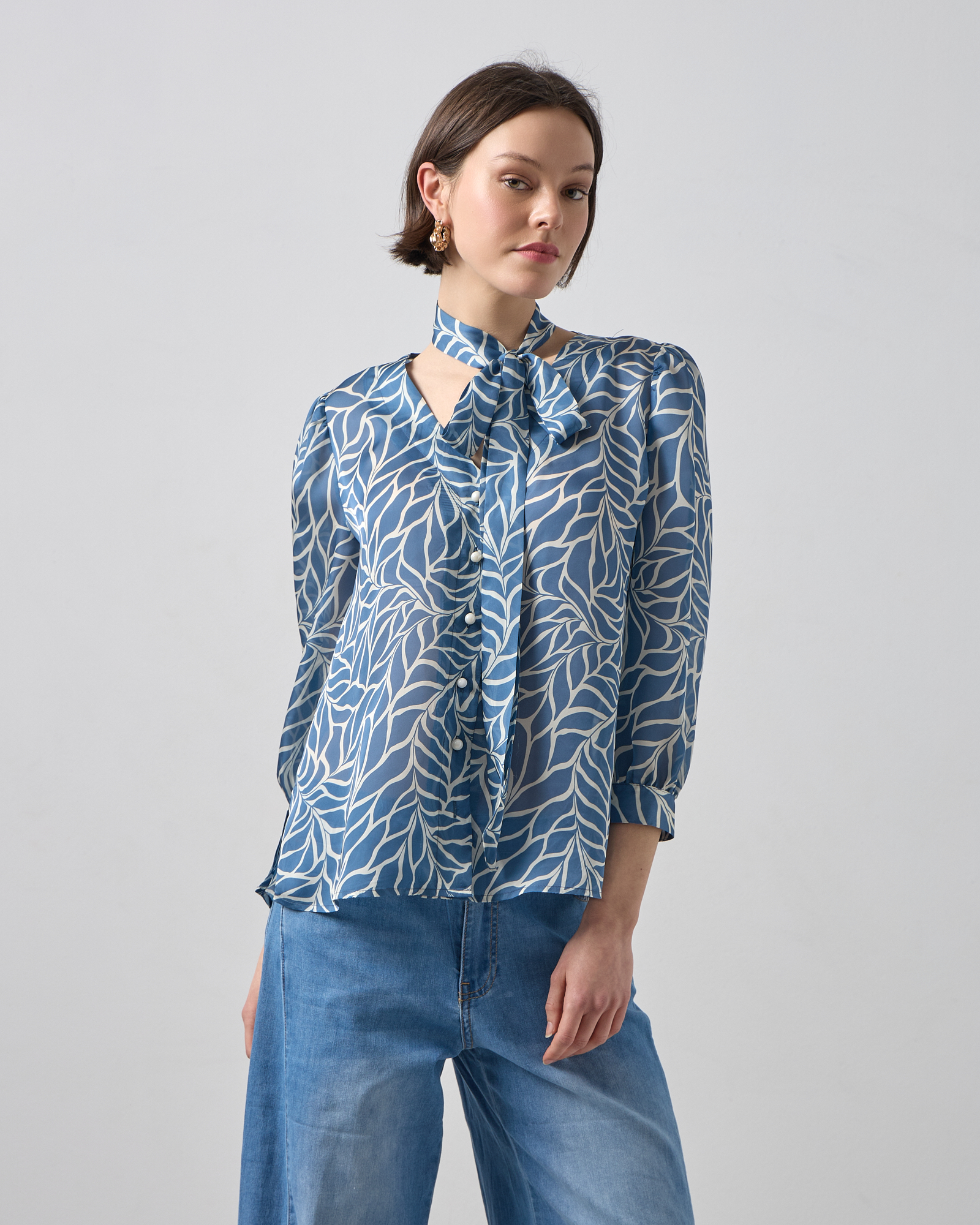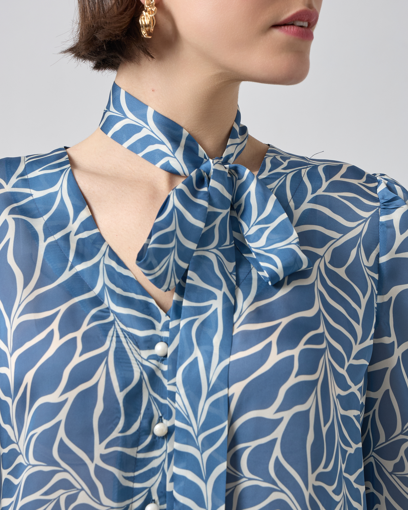 Πουκάμισο με αποσπώμενη γραβάτα, V λαιμόκοψη, μακριά μανίκια με μανσέτα, κλείσιμο μπροστά με κουμπιά, all over print, μαλακό αέρινο ύφασμα, σε άνετη γραμμή