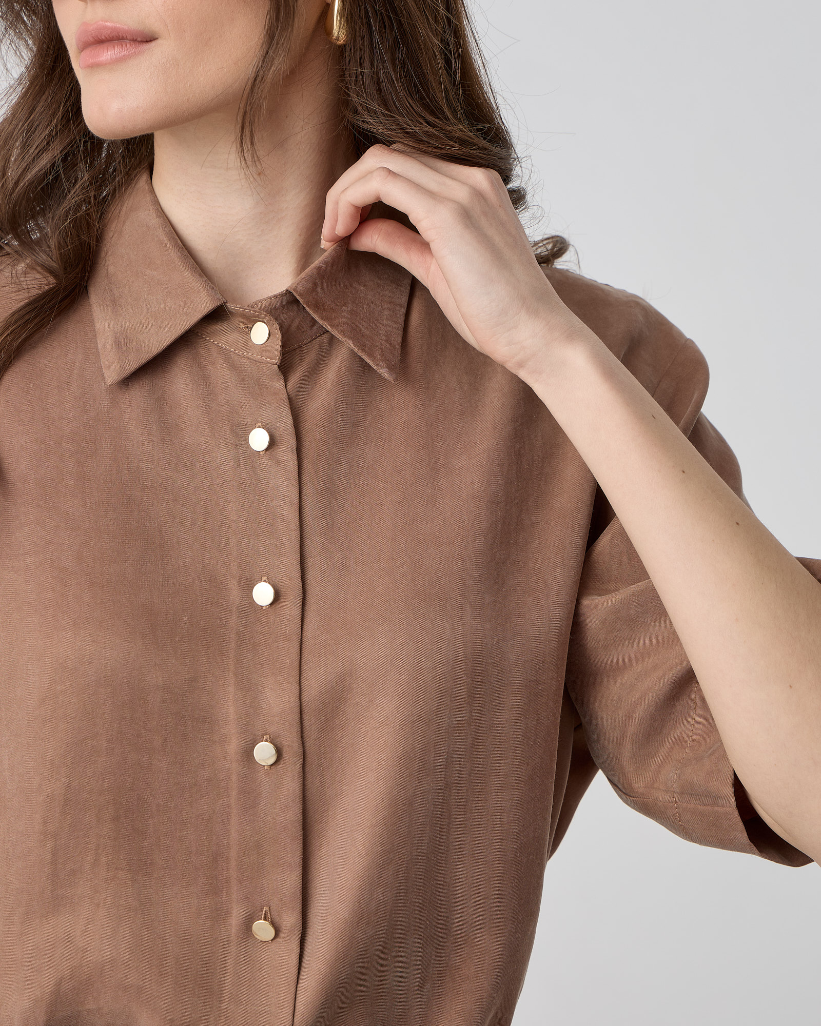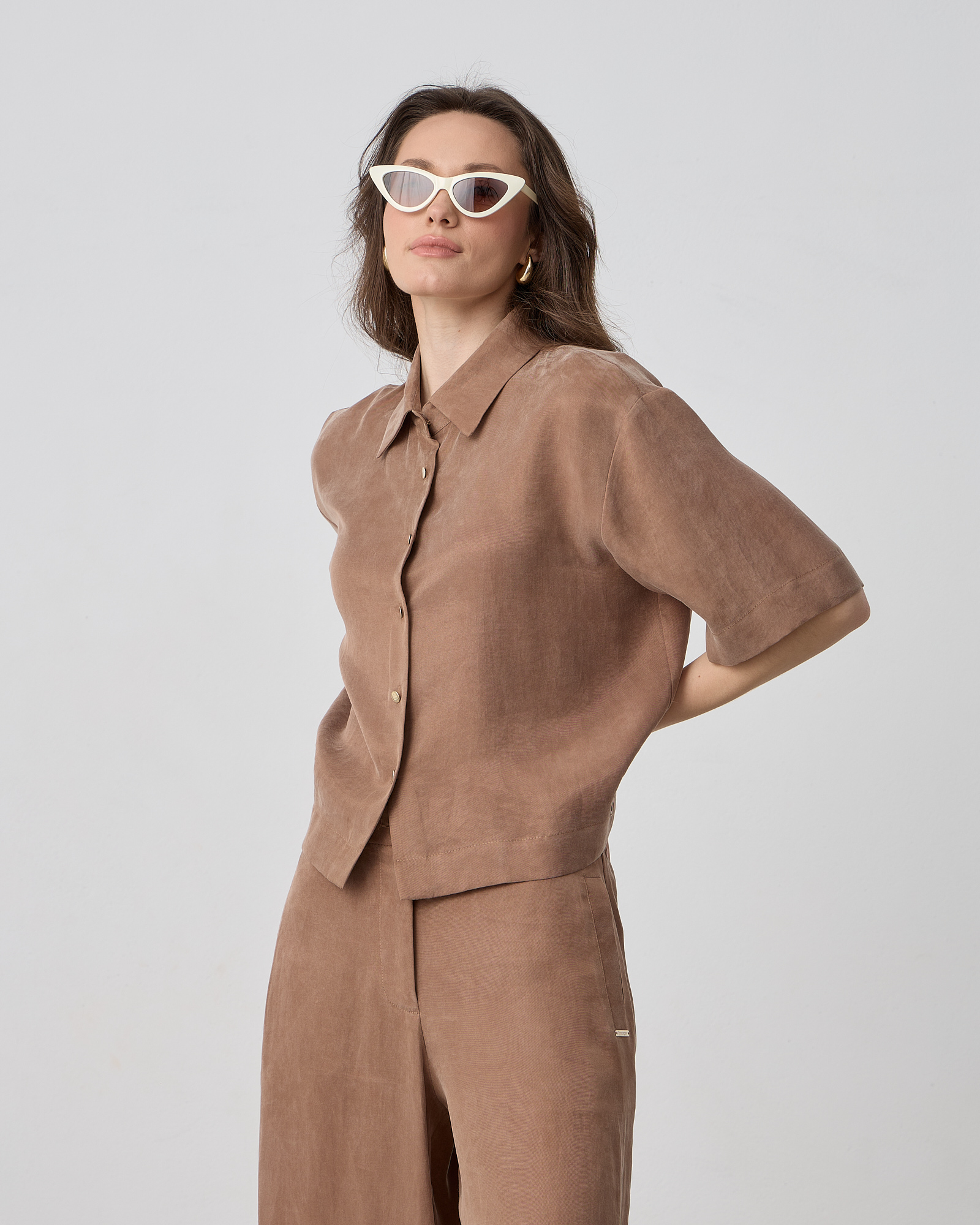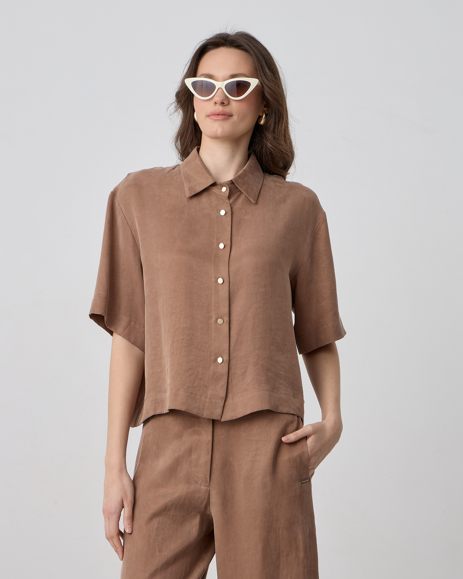 Πουκάμισο κοντομάνικο με γιακά, κλείσιμο με κουμπιά, ύφασμα lyocell σε άνετη γραμμή
