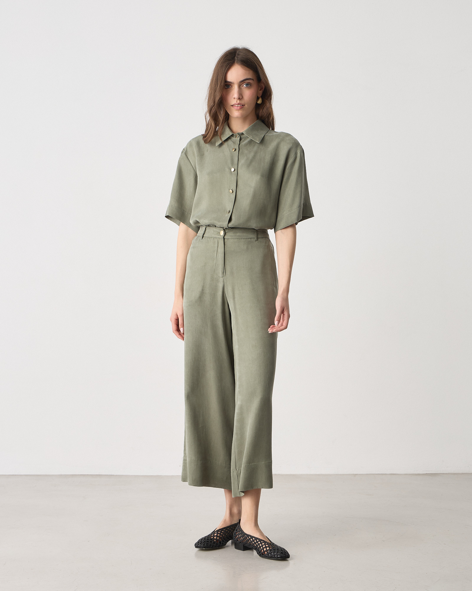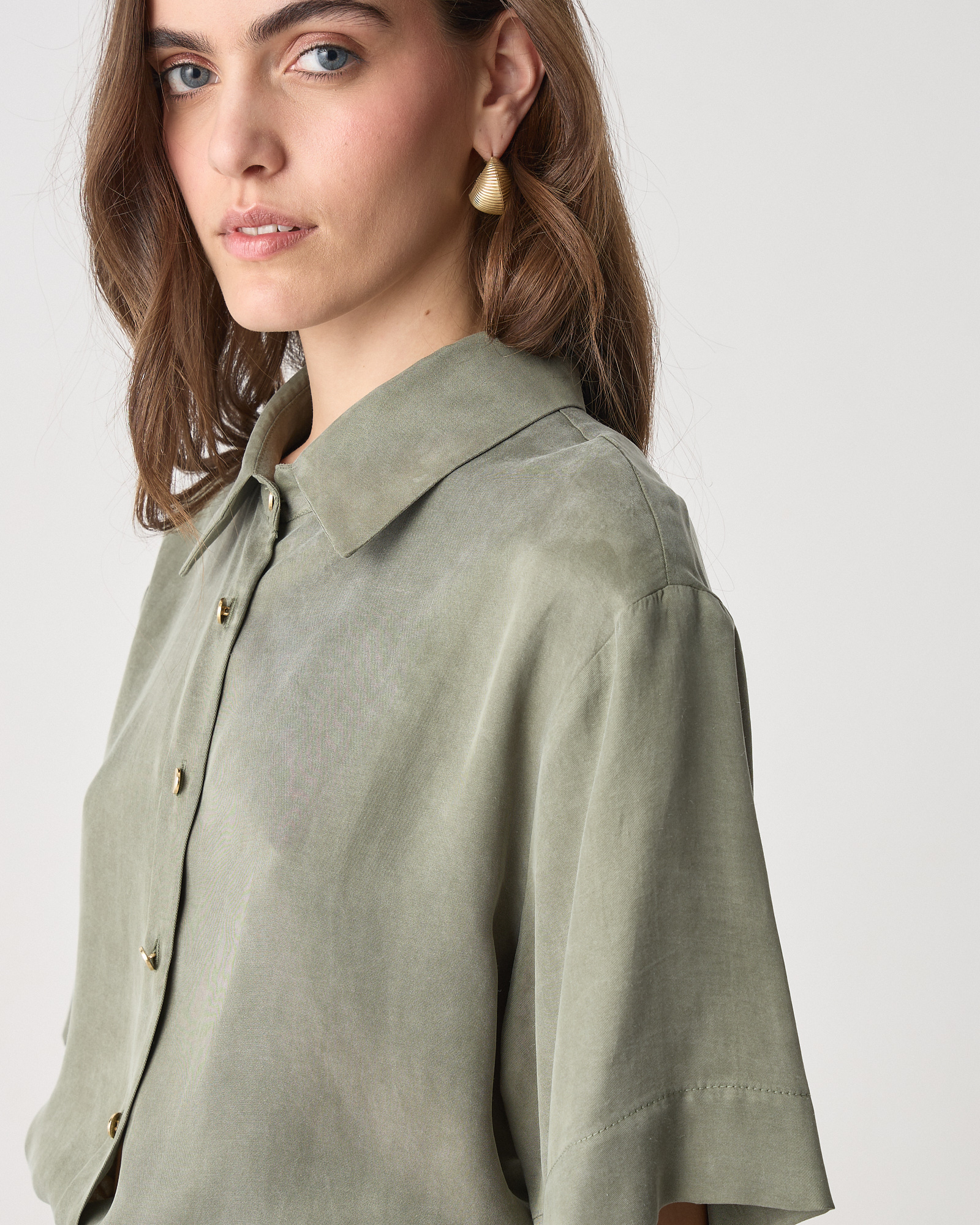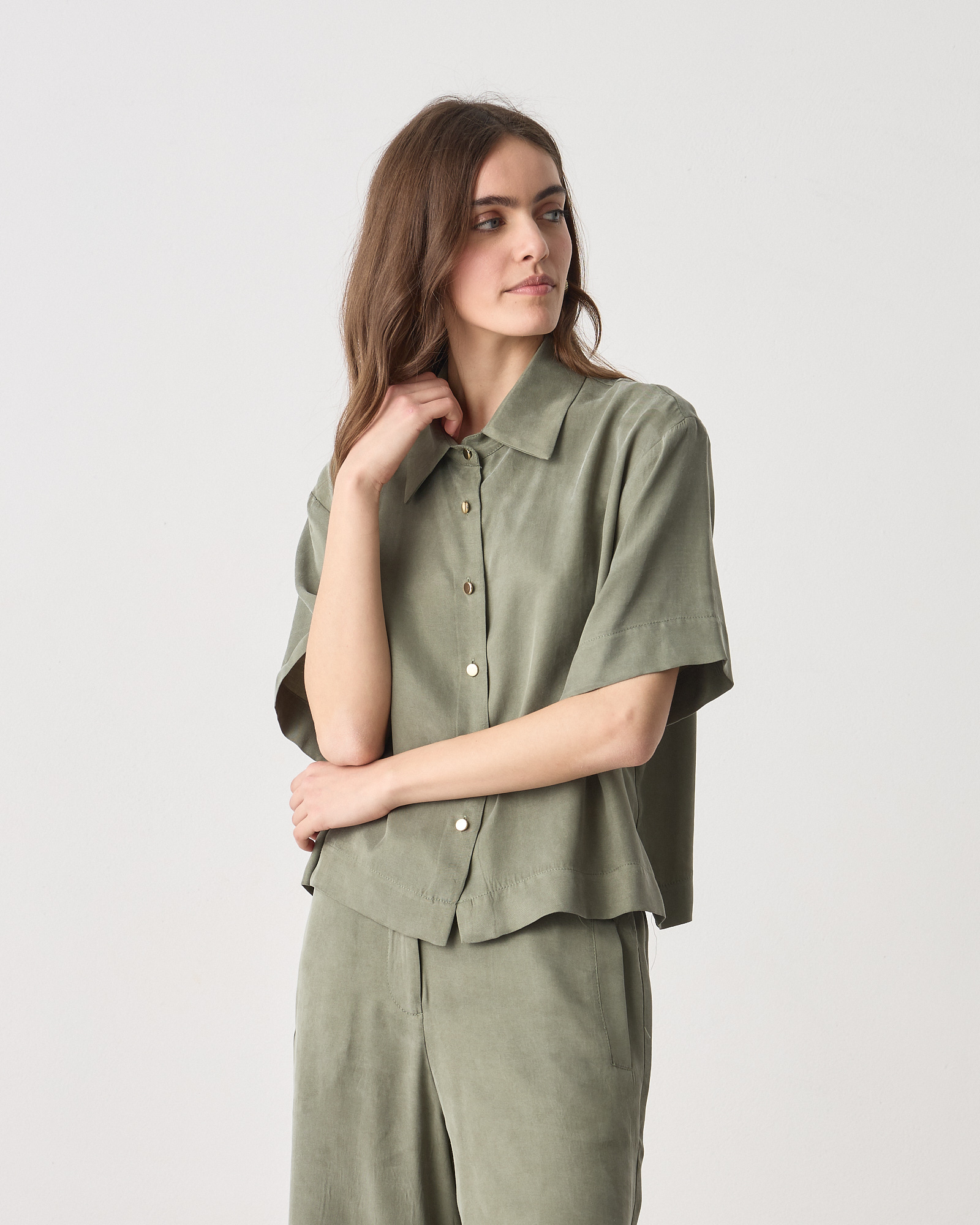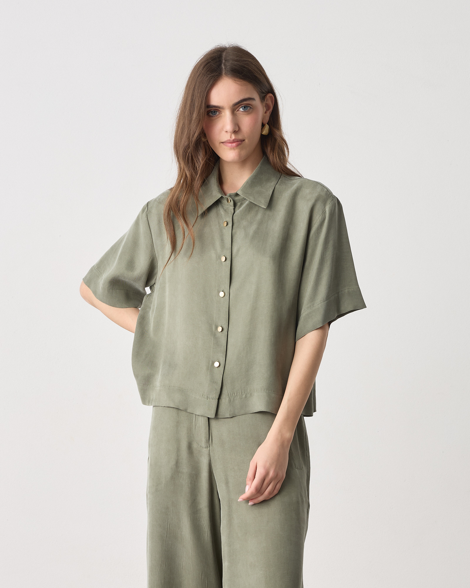 Πουκάμισο κοντομάνικο με γιακά, κλείσιμο με κουμπιά, ύφασμα lyocell σε άνετη γραμμή