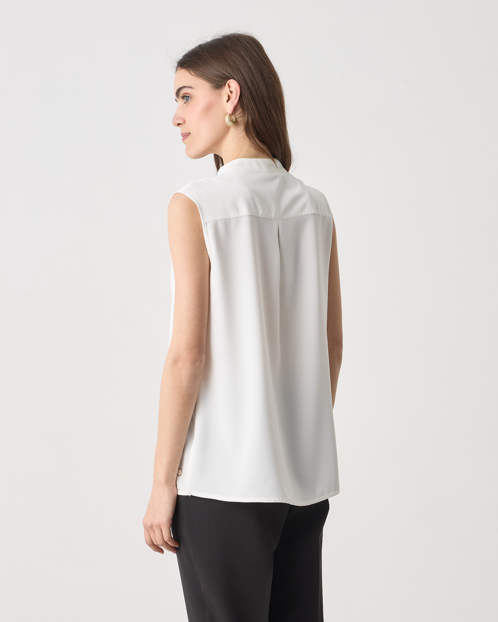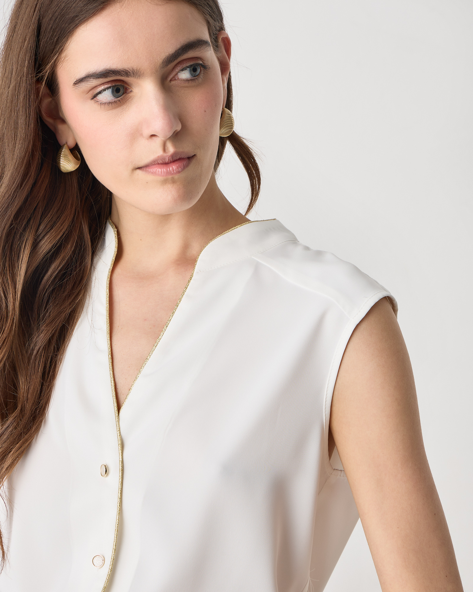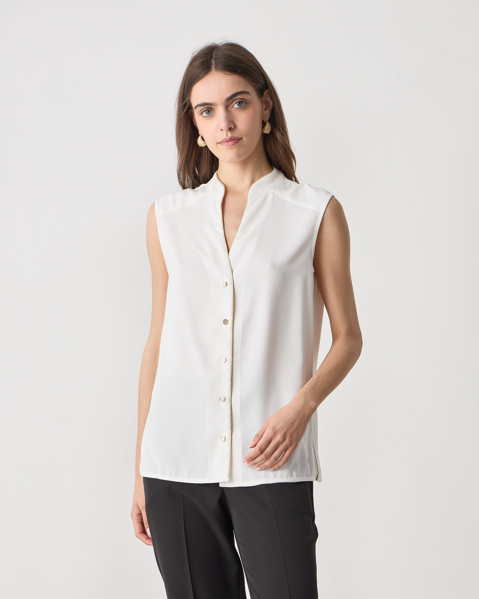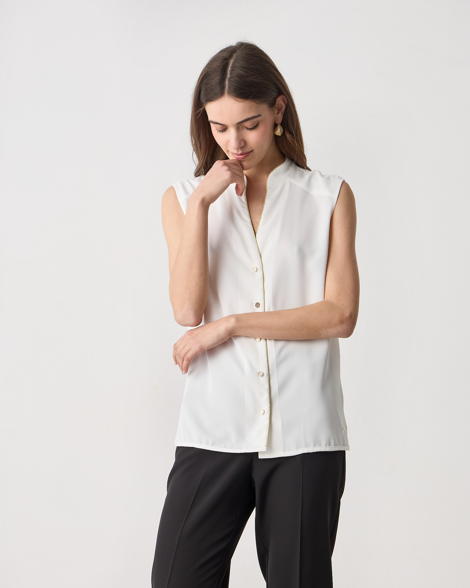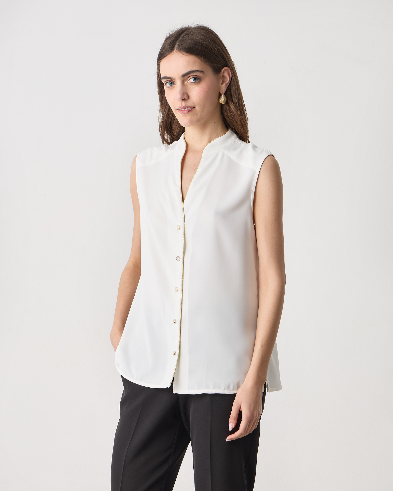 Πουκάμισο αμάνικο με όρθιο γιακά, κλείσιμο μπροστά με κουμπιά, διακοσμητική τρέσα , σε ανάλαφρο ύφασμα, κανονική εφαρμογή