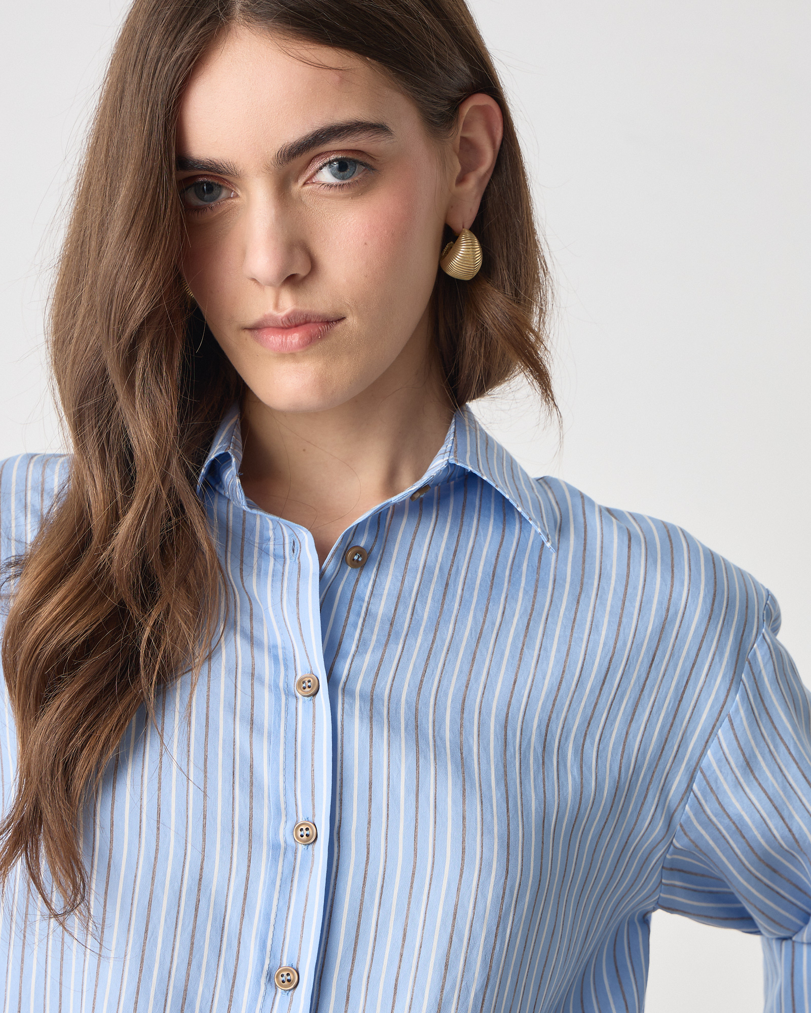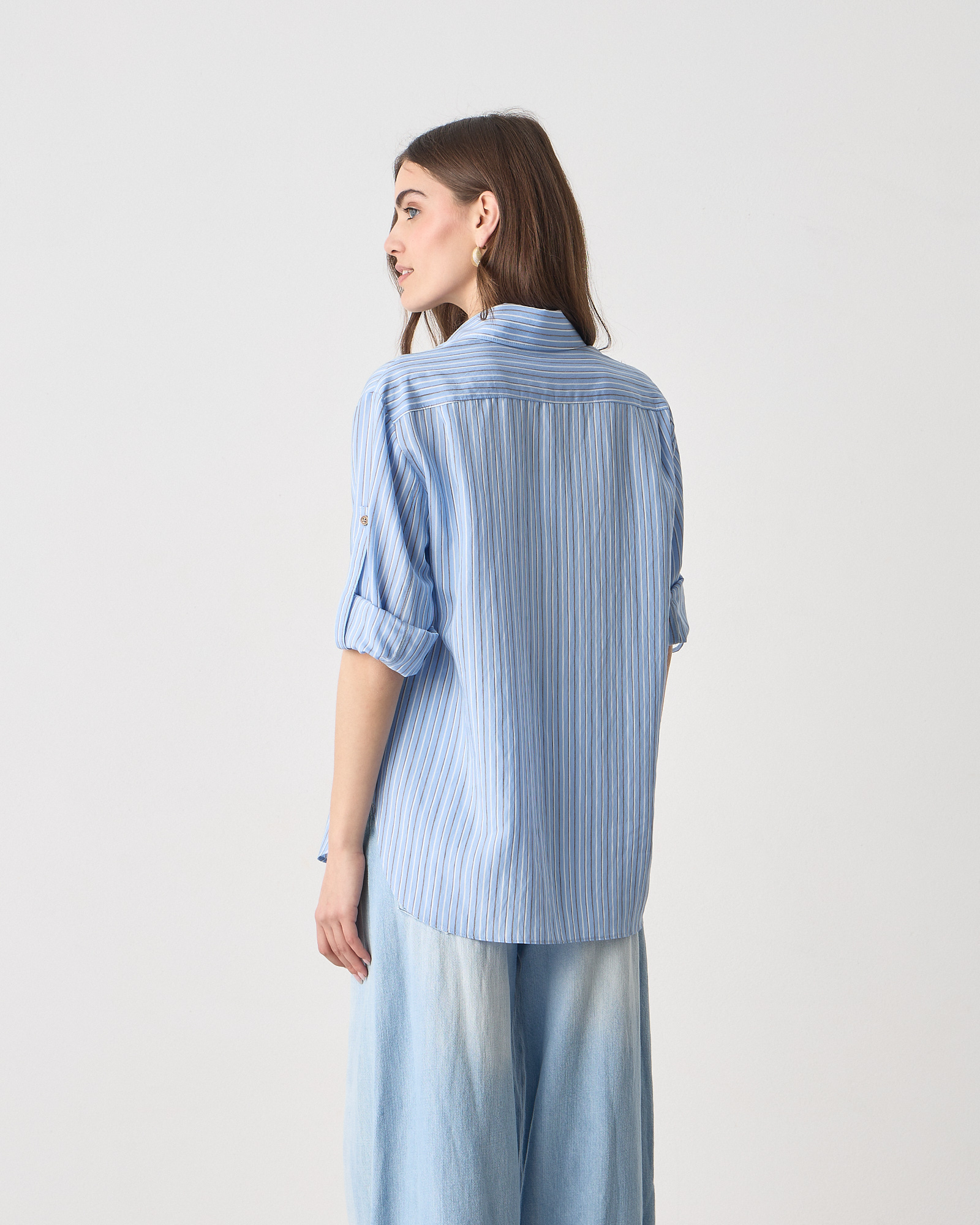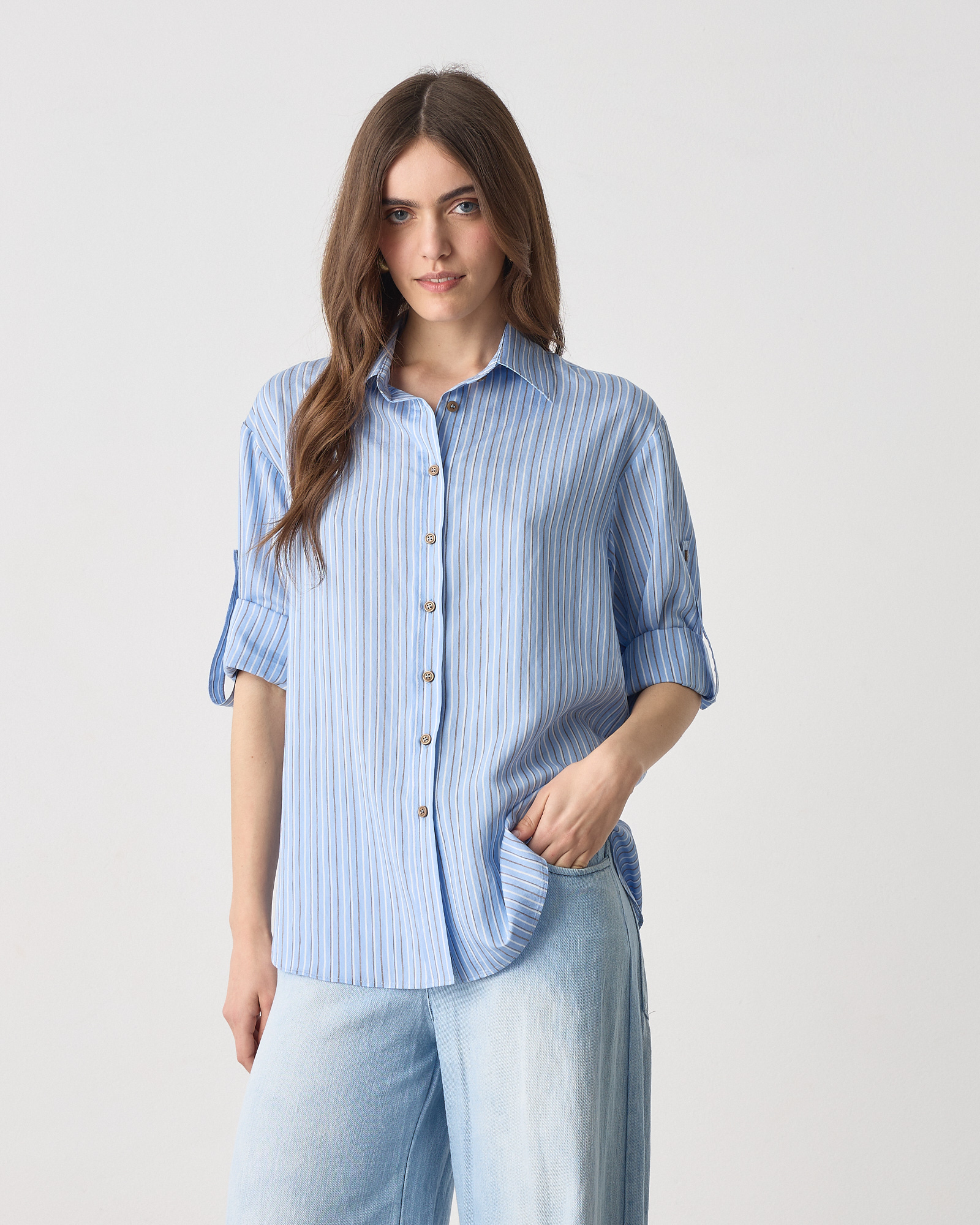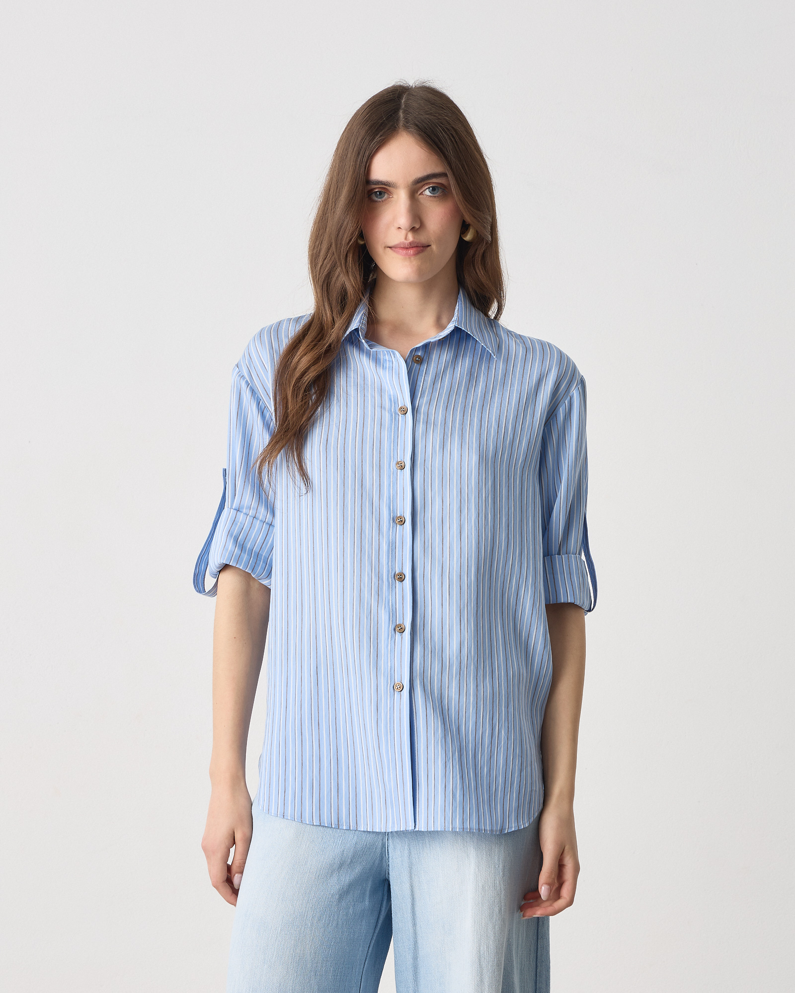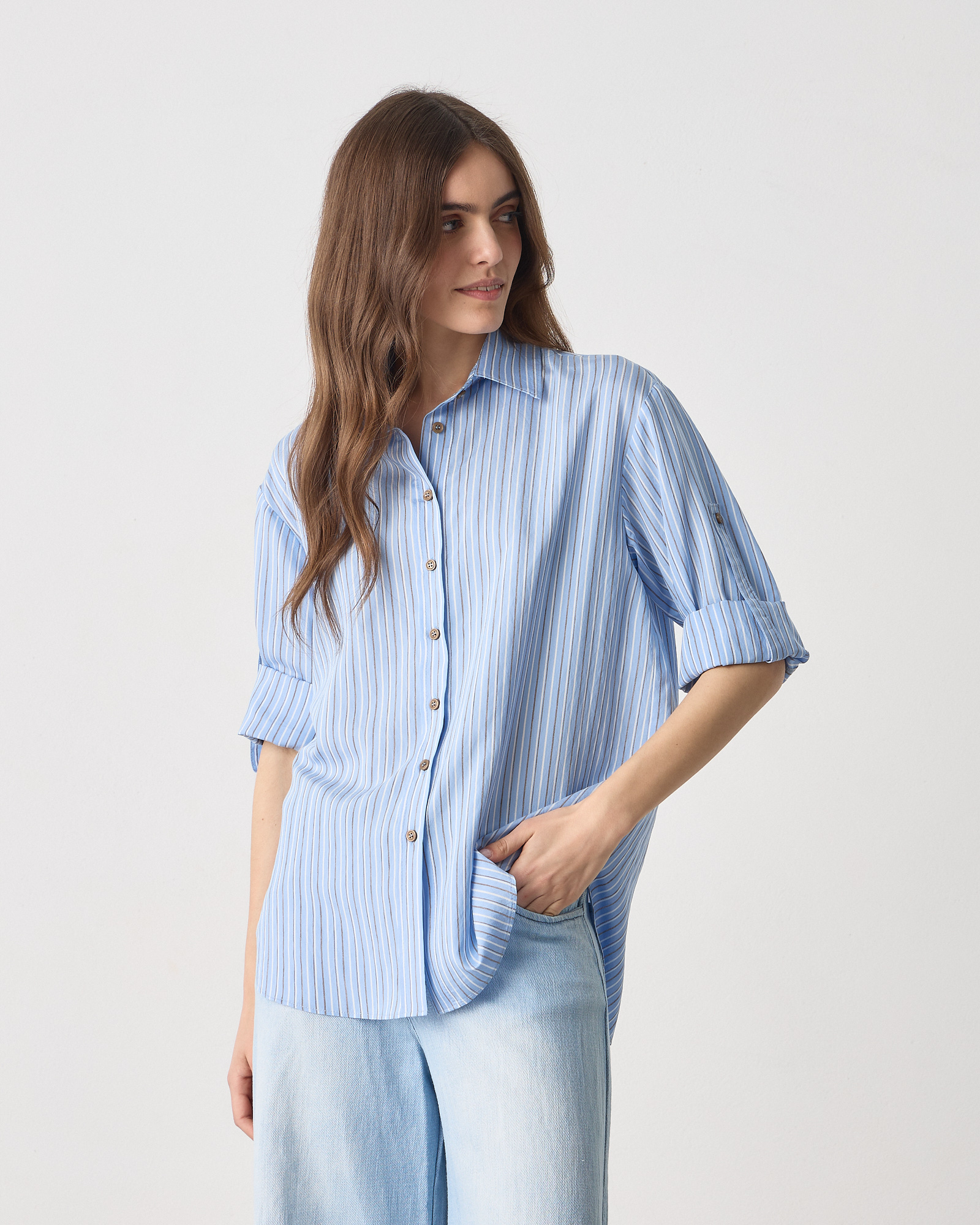 Πουκάμισο ριγέ με γιακά, κλείσιμο μπροστά με κουμπιά, μακρύ μανίκι με δυνατότητα γυρίσματος, σε κανονική εφαρμογή
