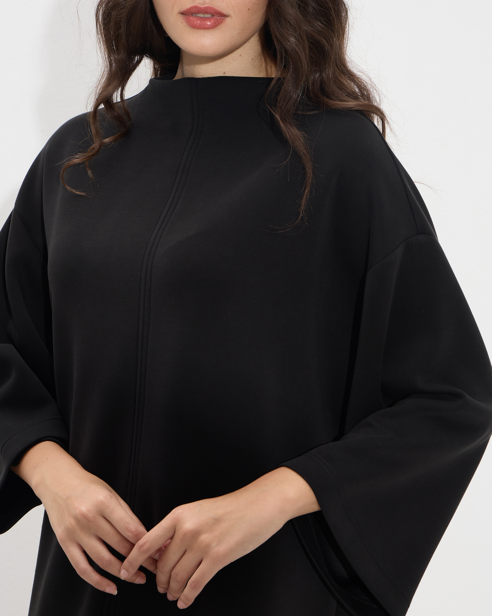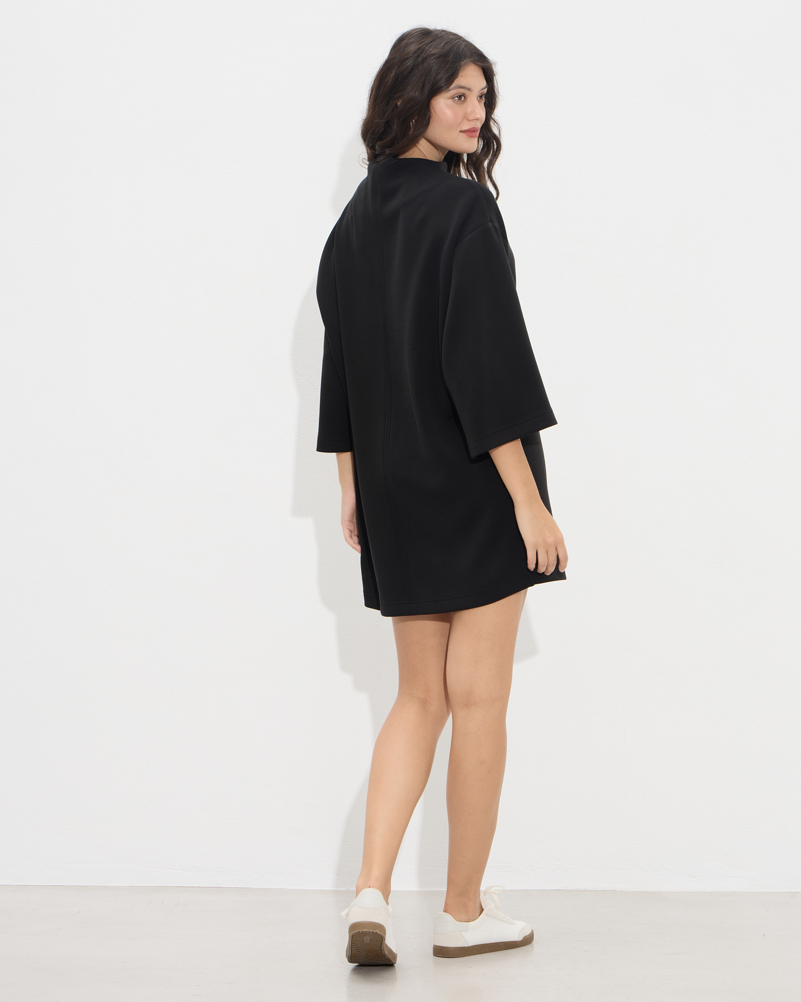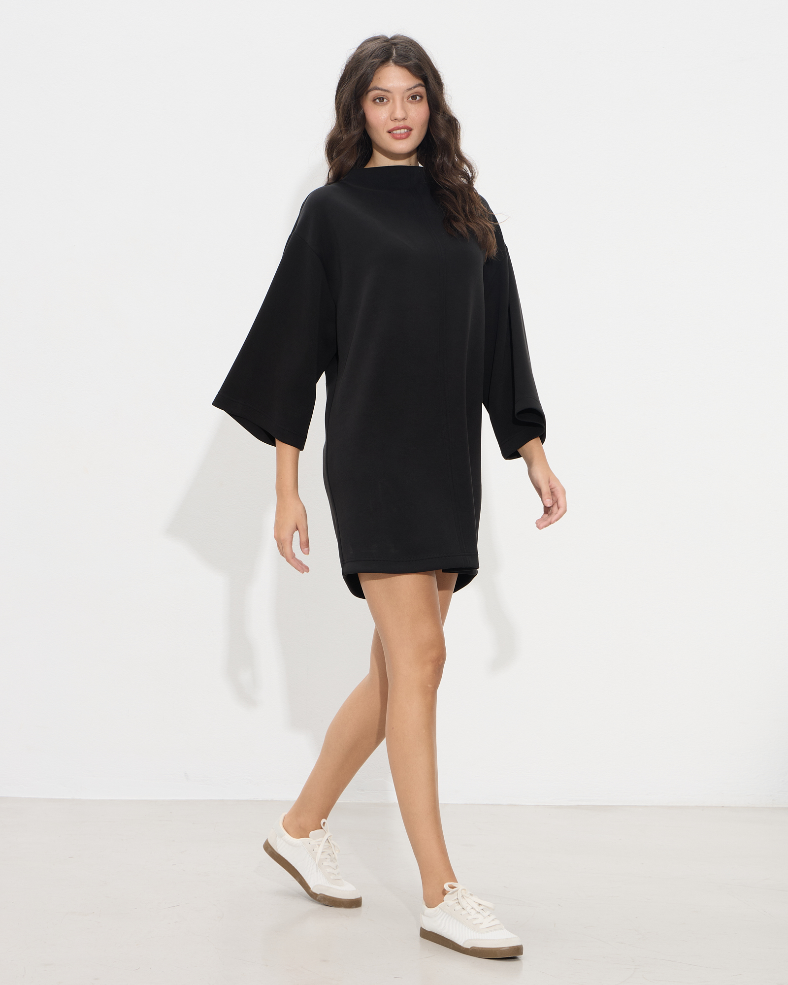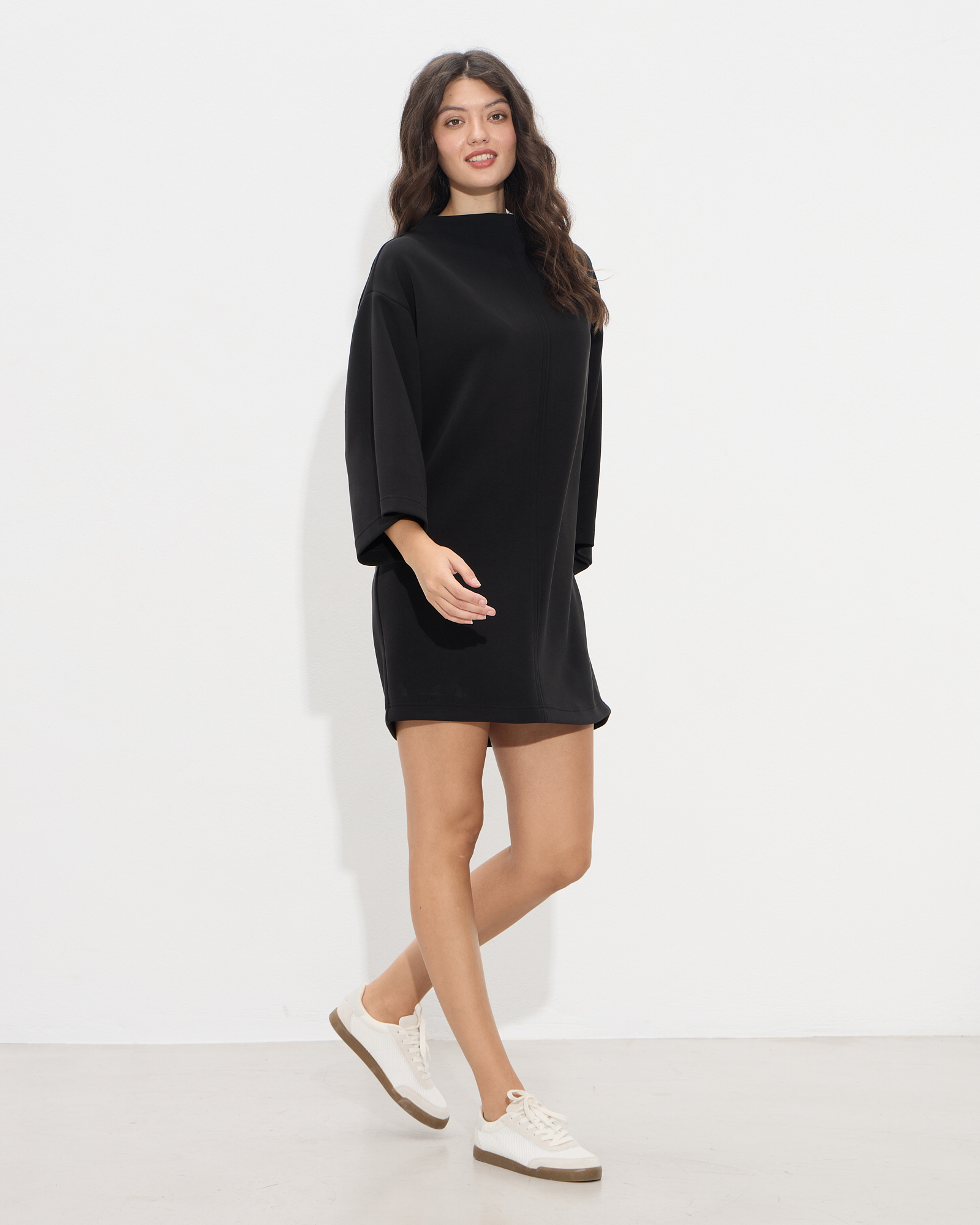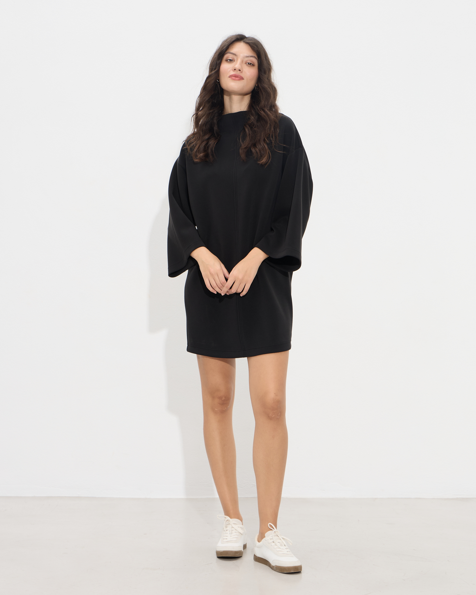 Φόρεμα κοντό με στρογγυλή λαιμόκοψη και 3/4 φαρδιά μανίκια σε μαλακό ελαστικό ύφασμα σε μοντέρνα ίσια γραμμή
