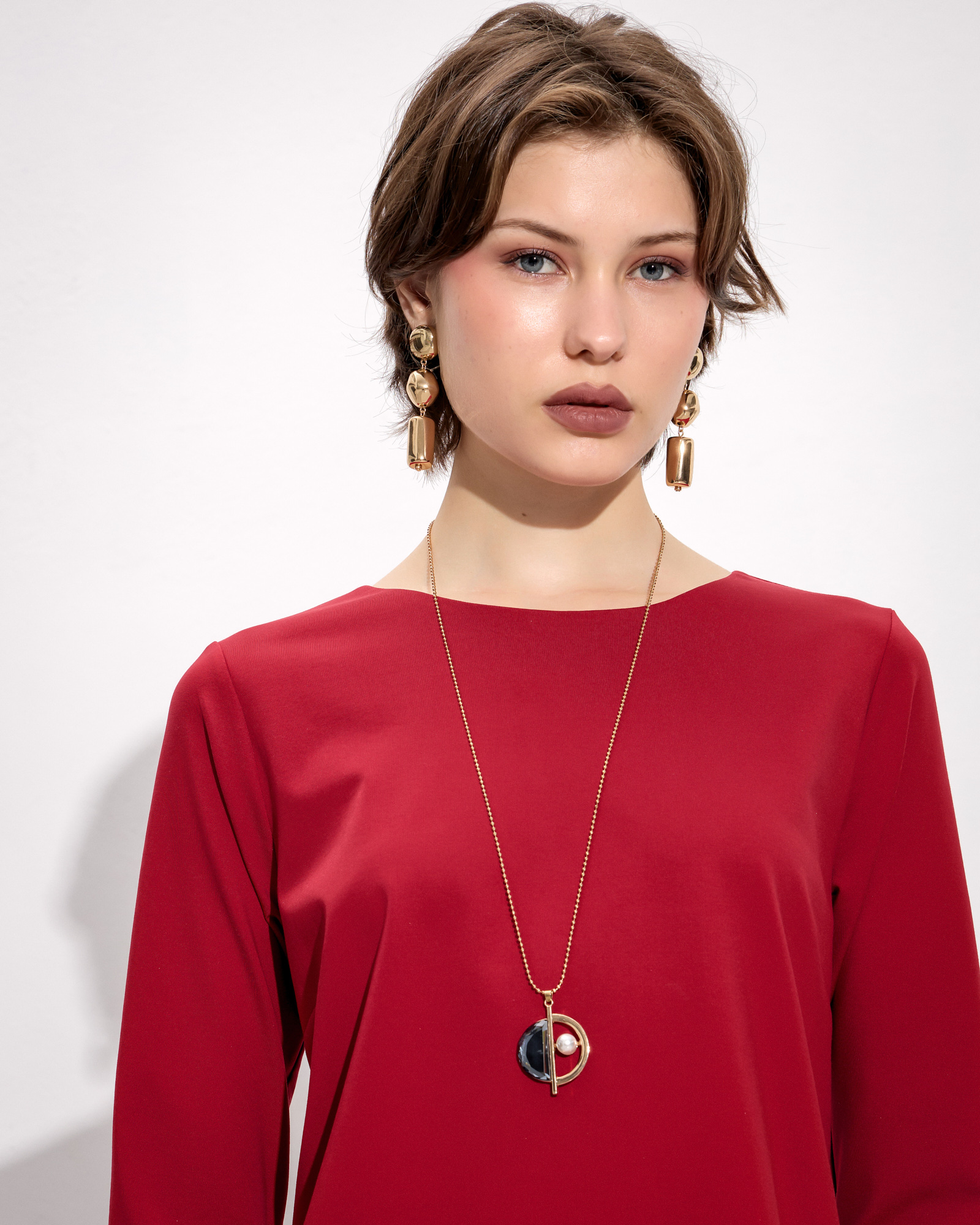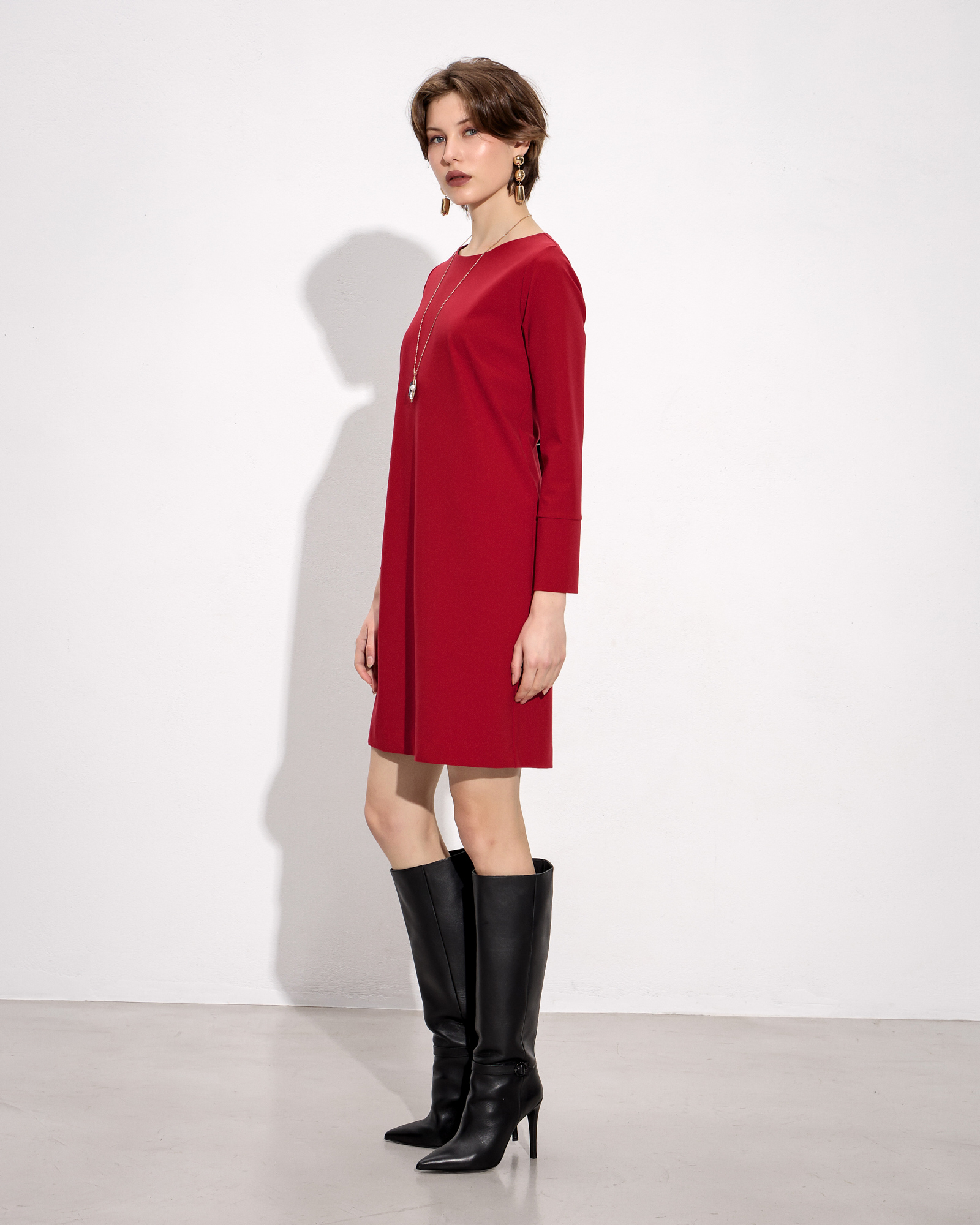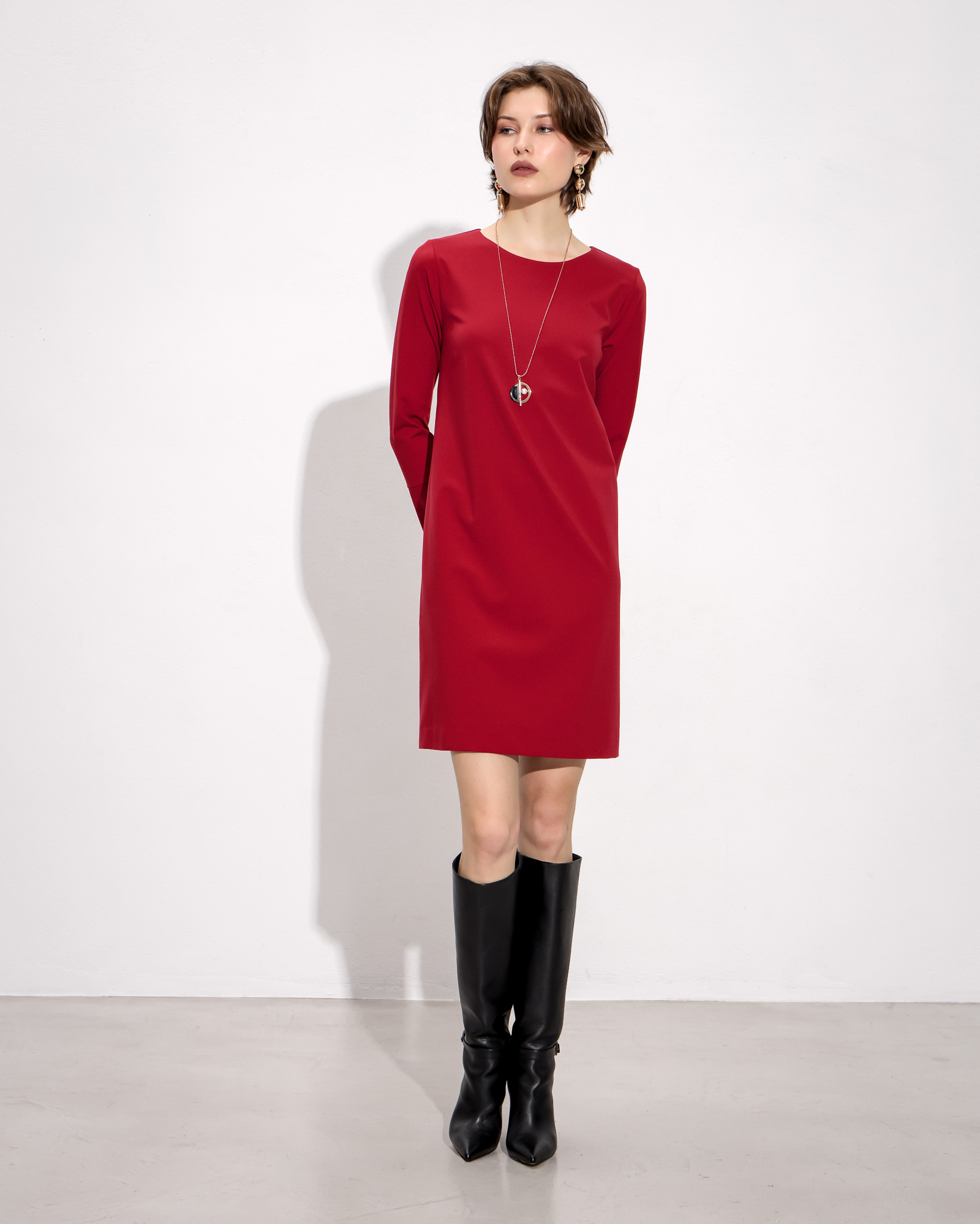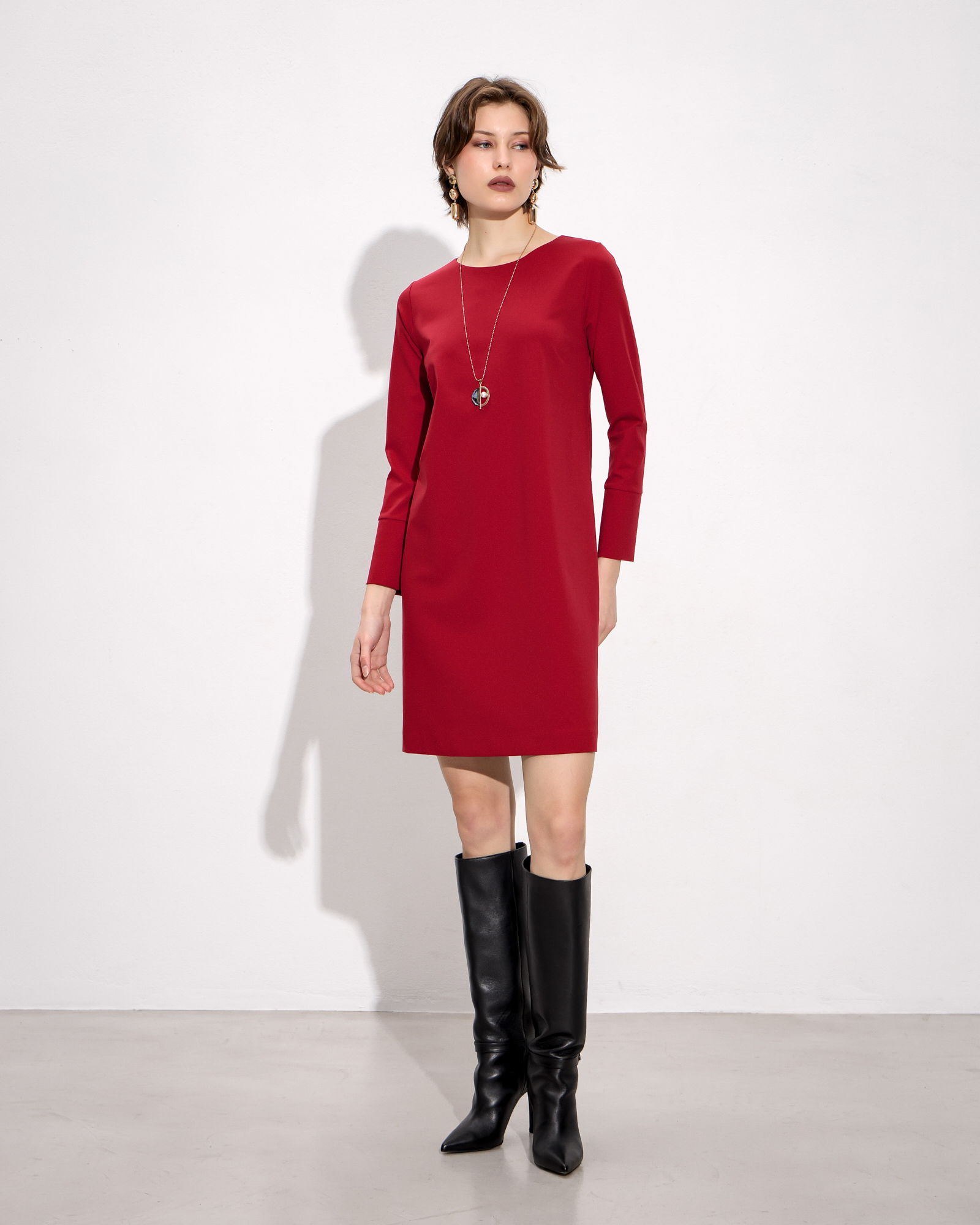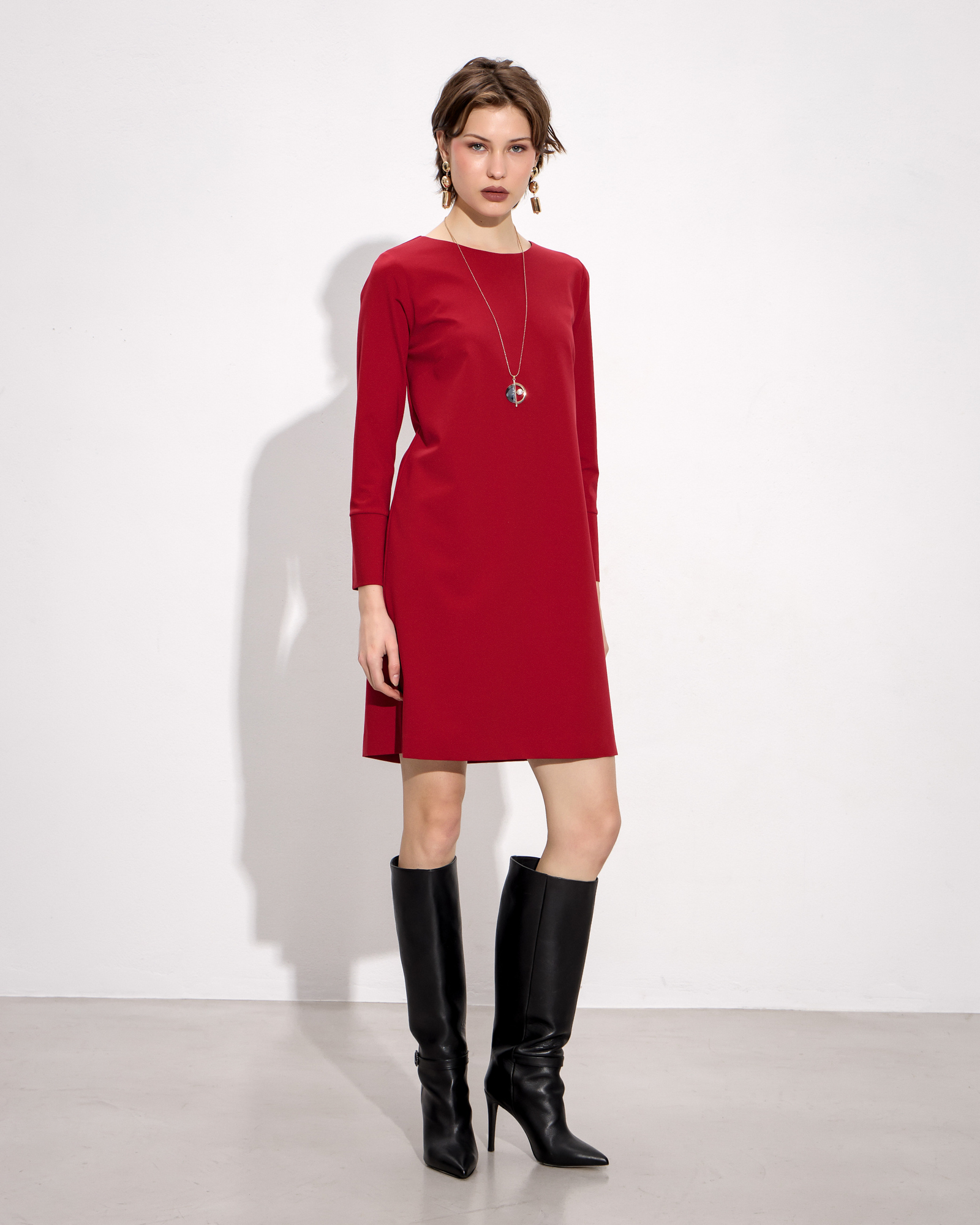 Φόρεμα mini με στρογγυλή λαιμόκοψη, μακρυμάνικο, κλείσιμο με φερμουάρ στο πίσω μέρος, διακριτικό άνοιγμα χαμηλά πίσω, εσωτερική φόδρα, σε κανονική γραμμή