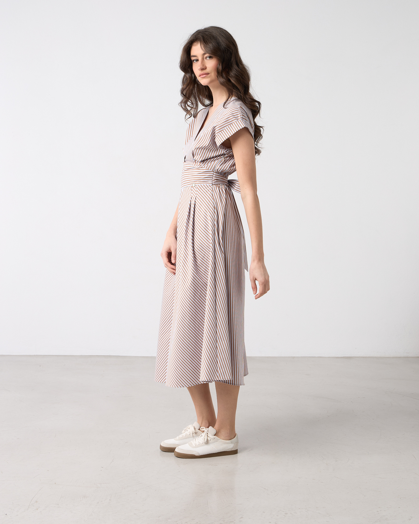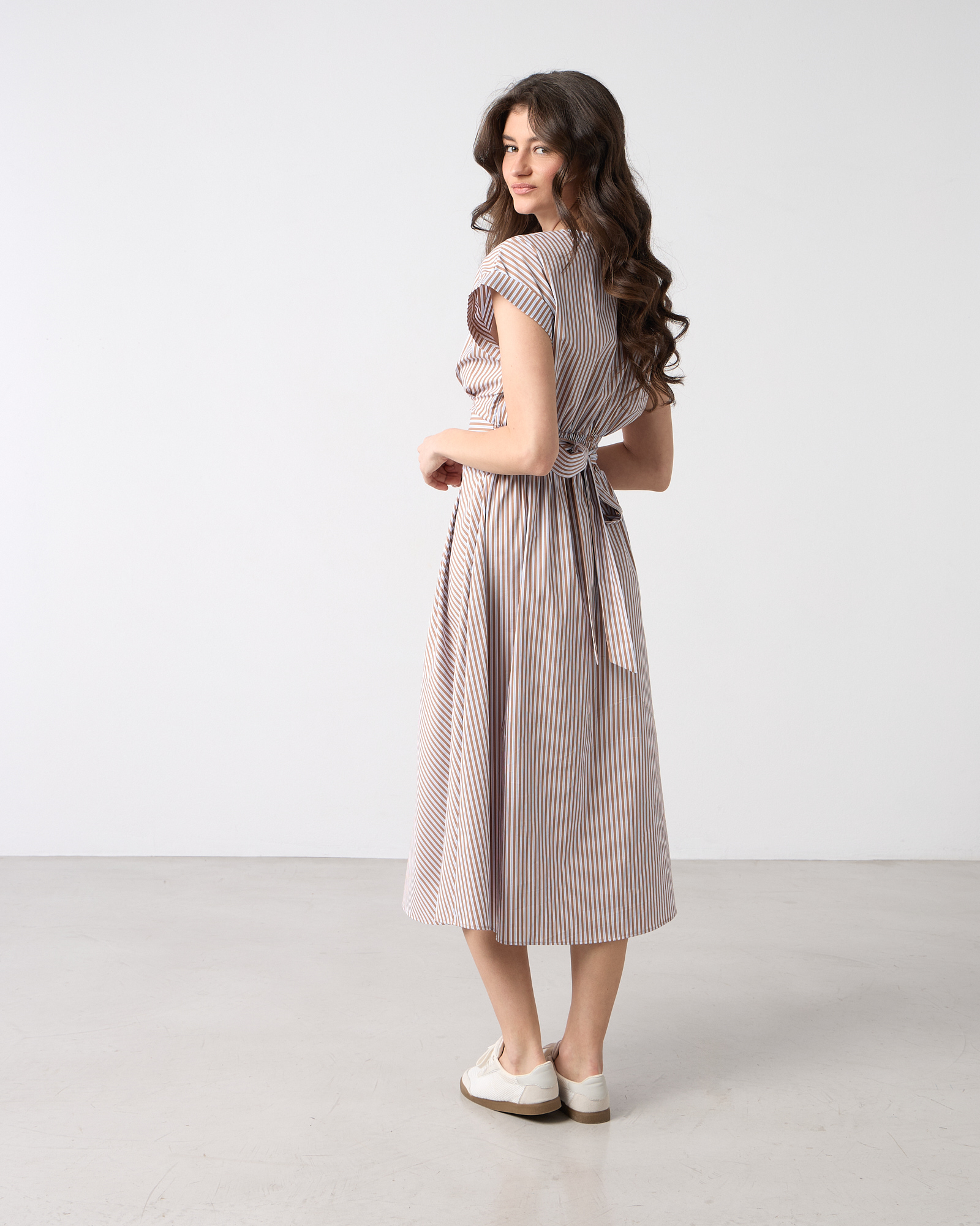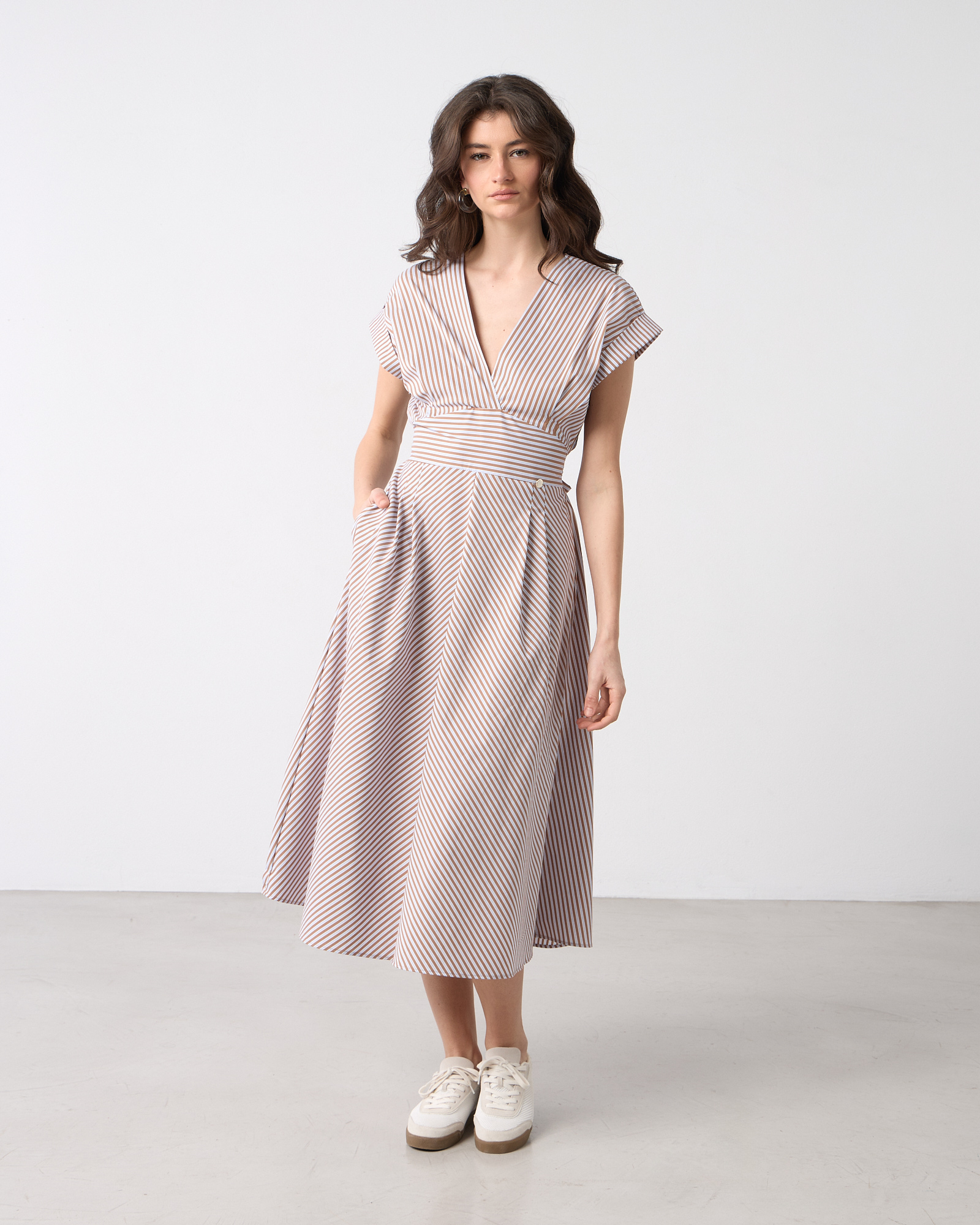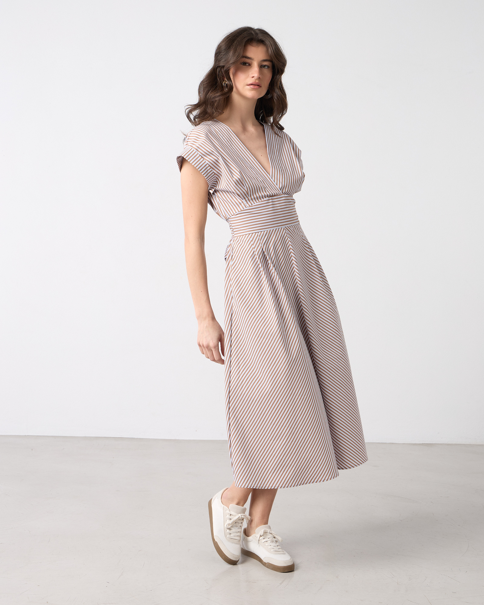 Φόρεμα midi ριγέ κοντομάνικο
