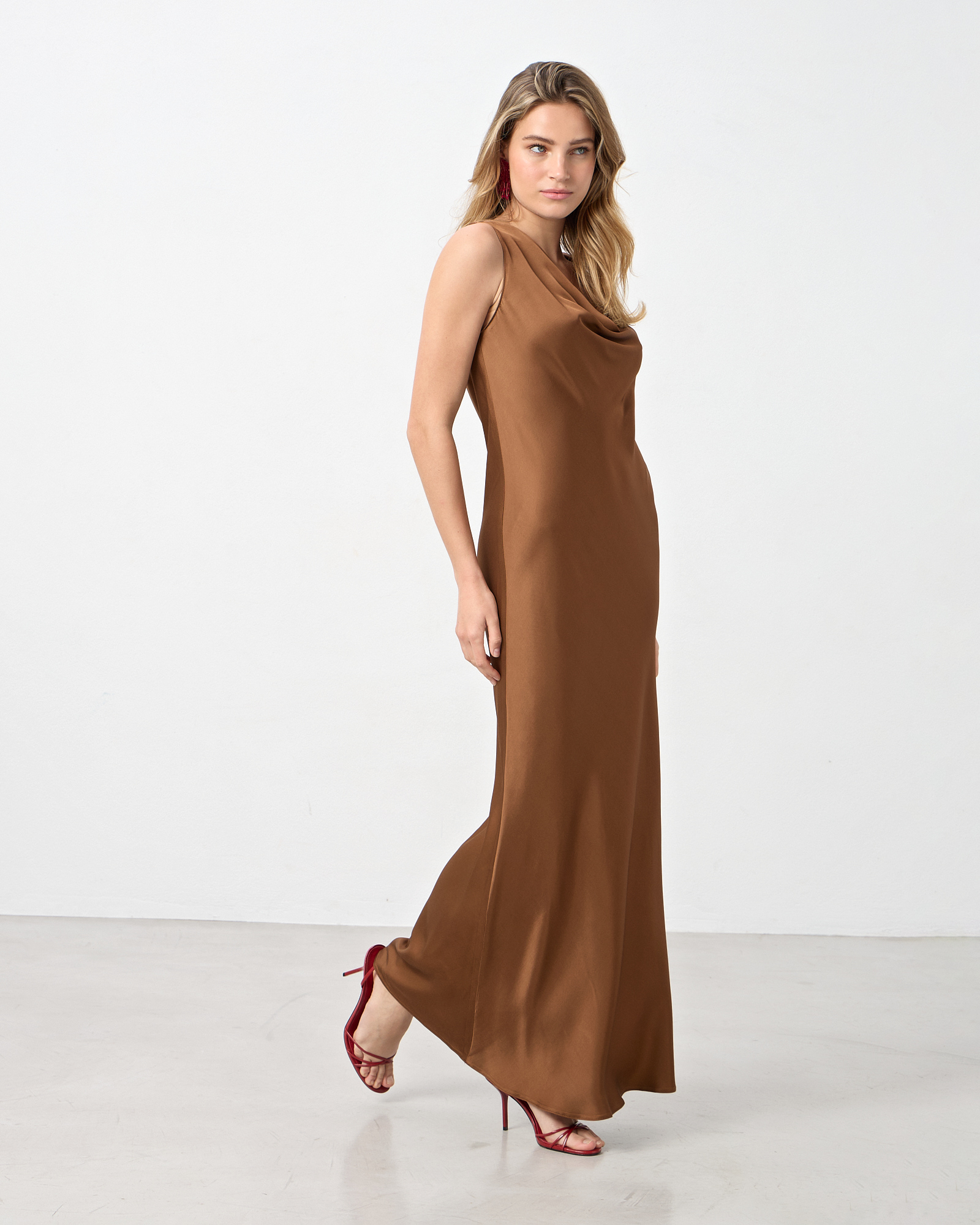 Φόρεμα maxi με ντραπέ λαιμόκοψη