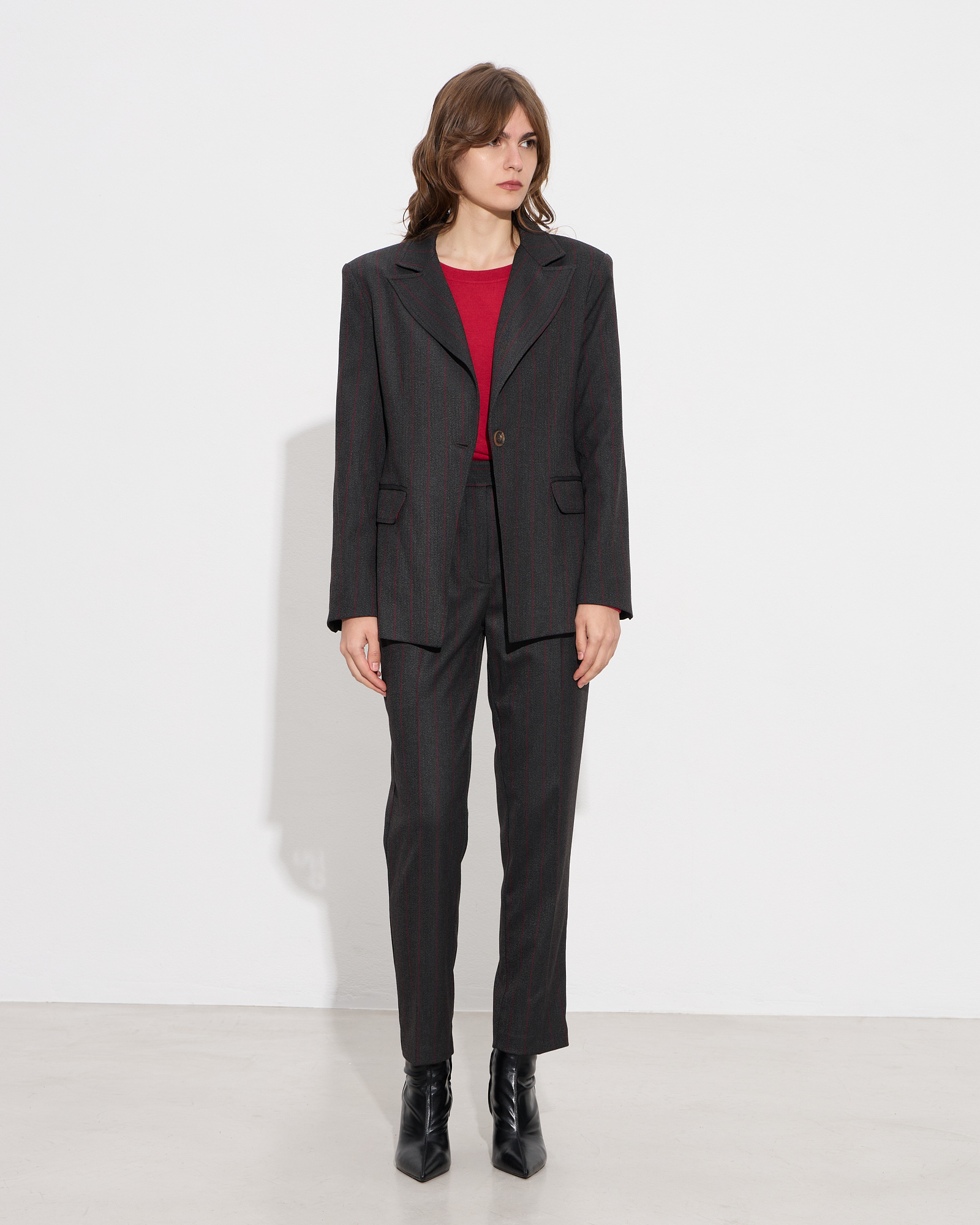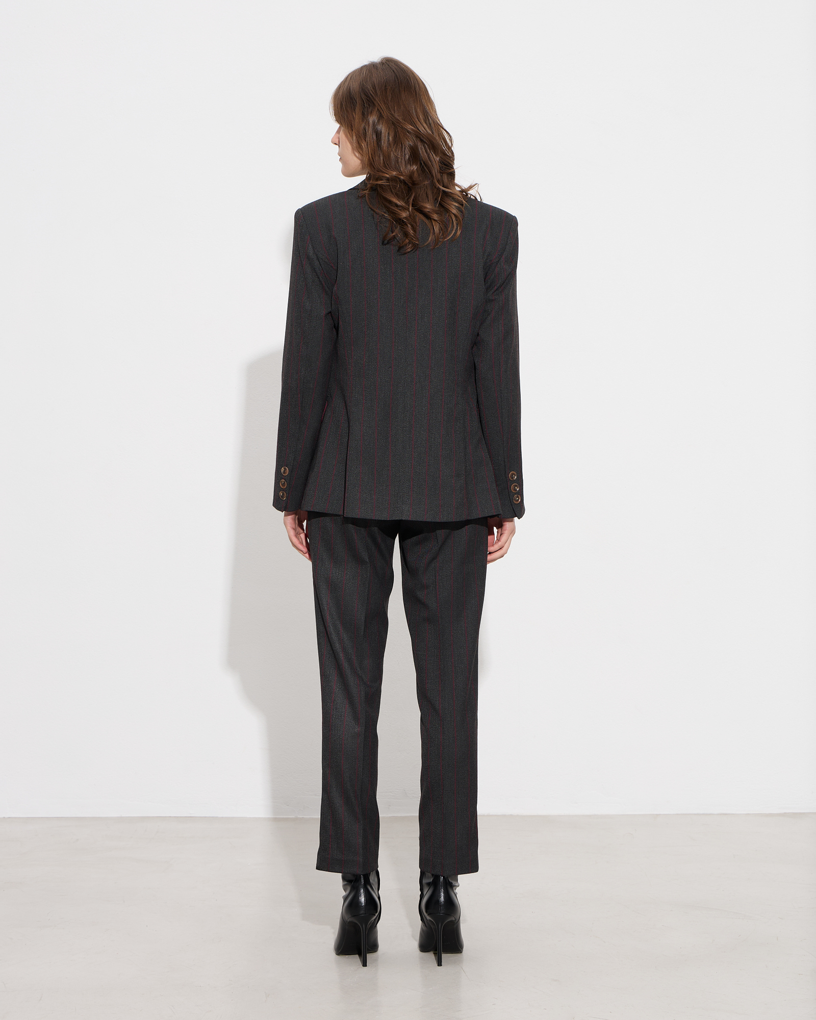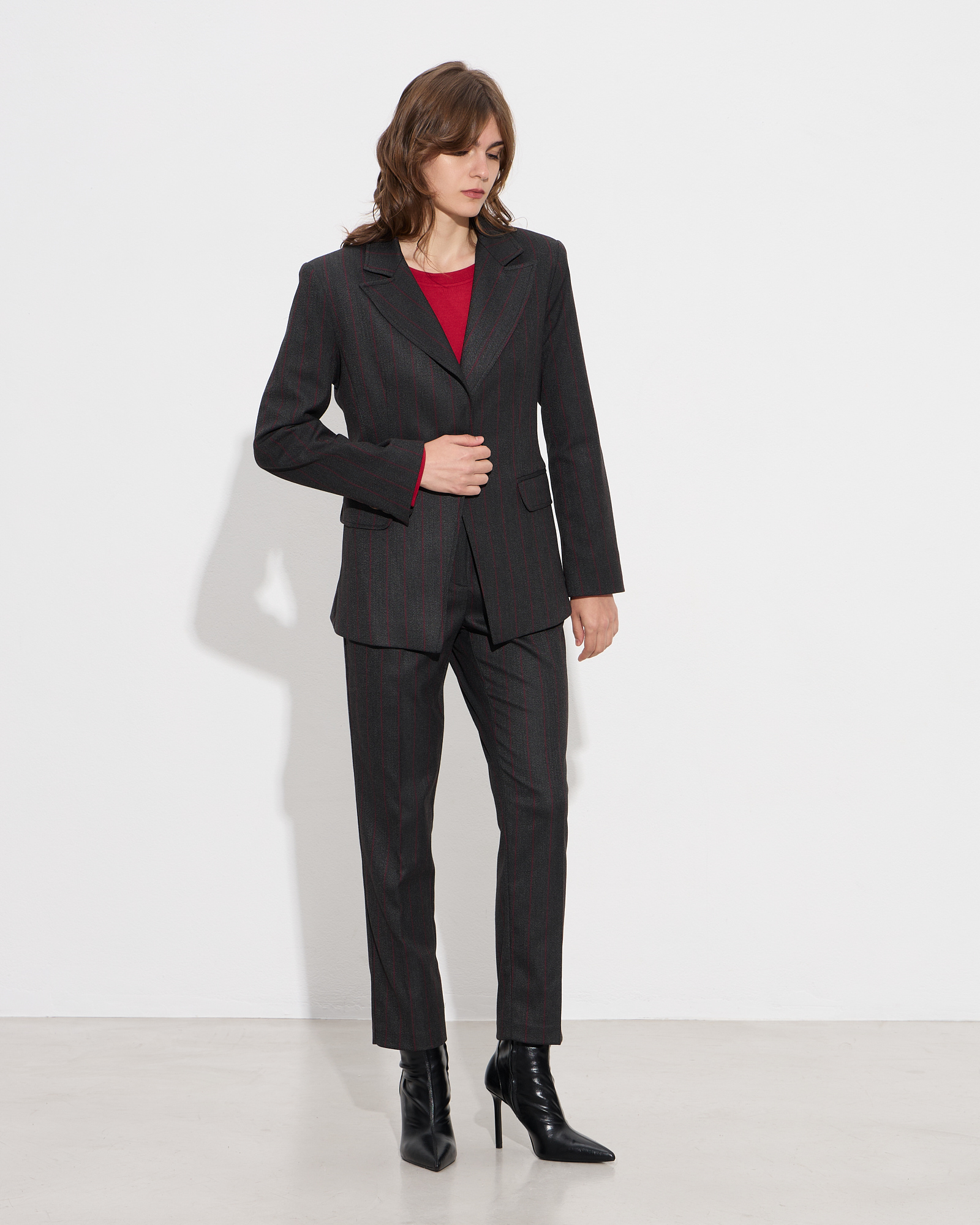 Σακάκι μεσάτο ρίγα με γιακά με πέτο, μακρύ μανίκι με διακοσμητικά κουμπιά στο τελείωμα, κλείσιμο με κουμπί, μπροστινές τσέπες, σε κανονική γραμμή