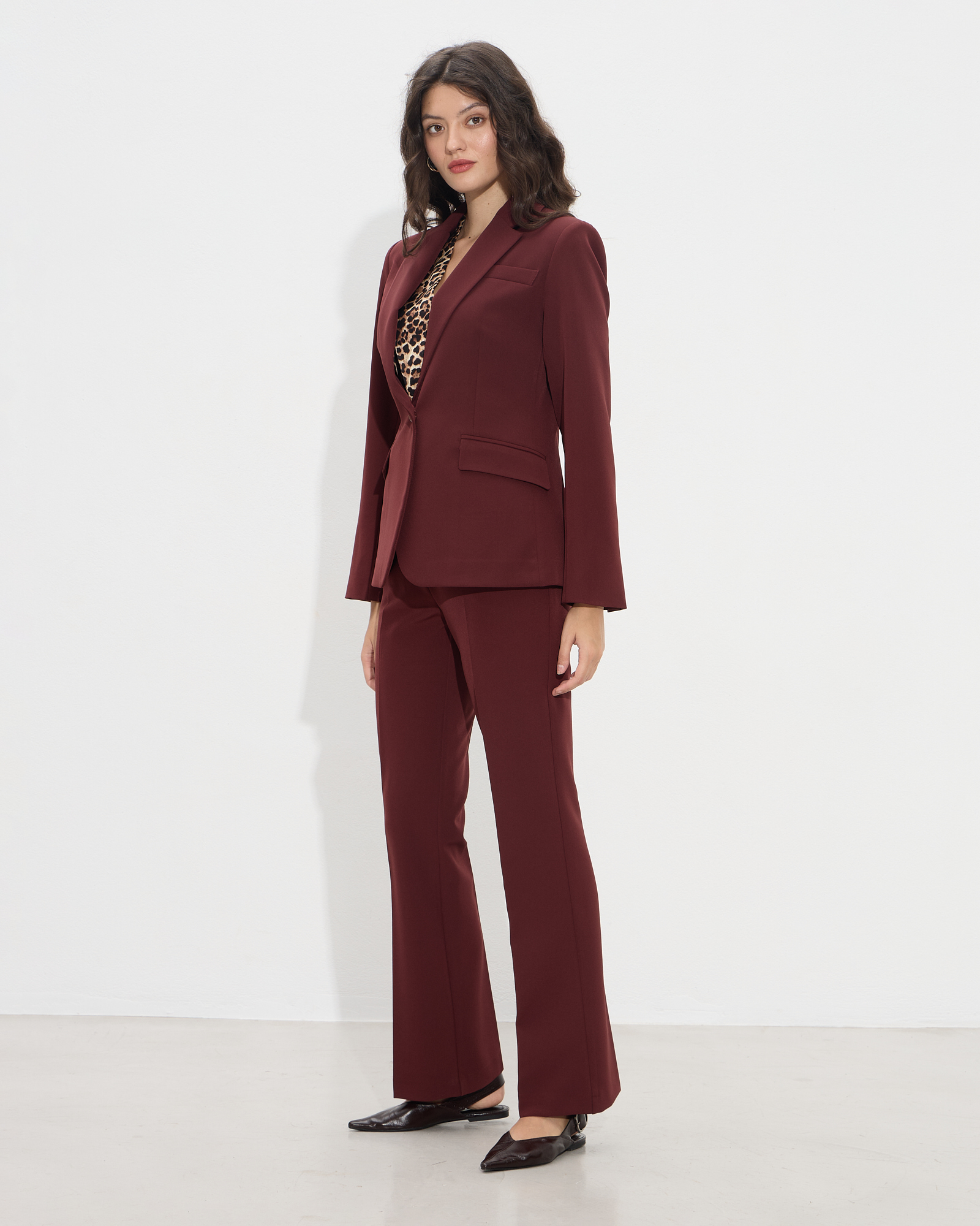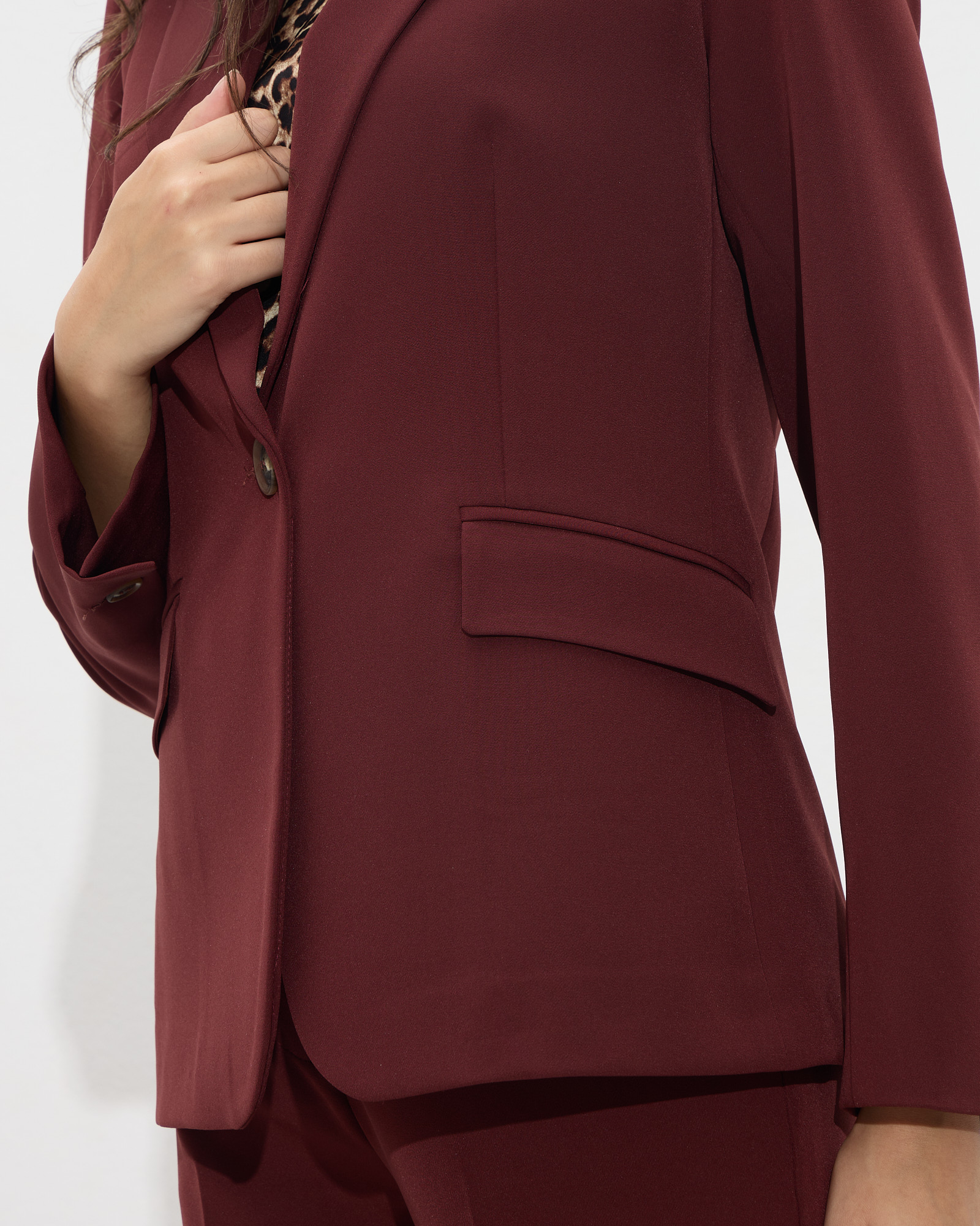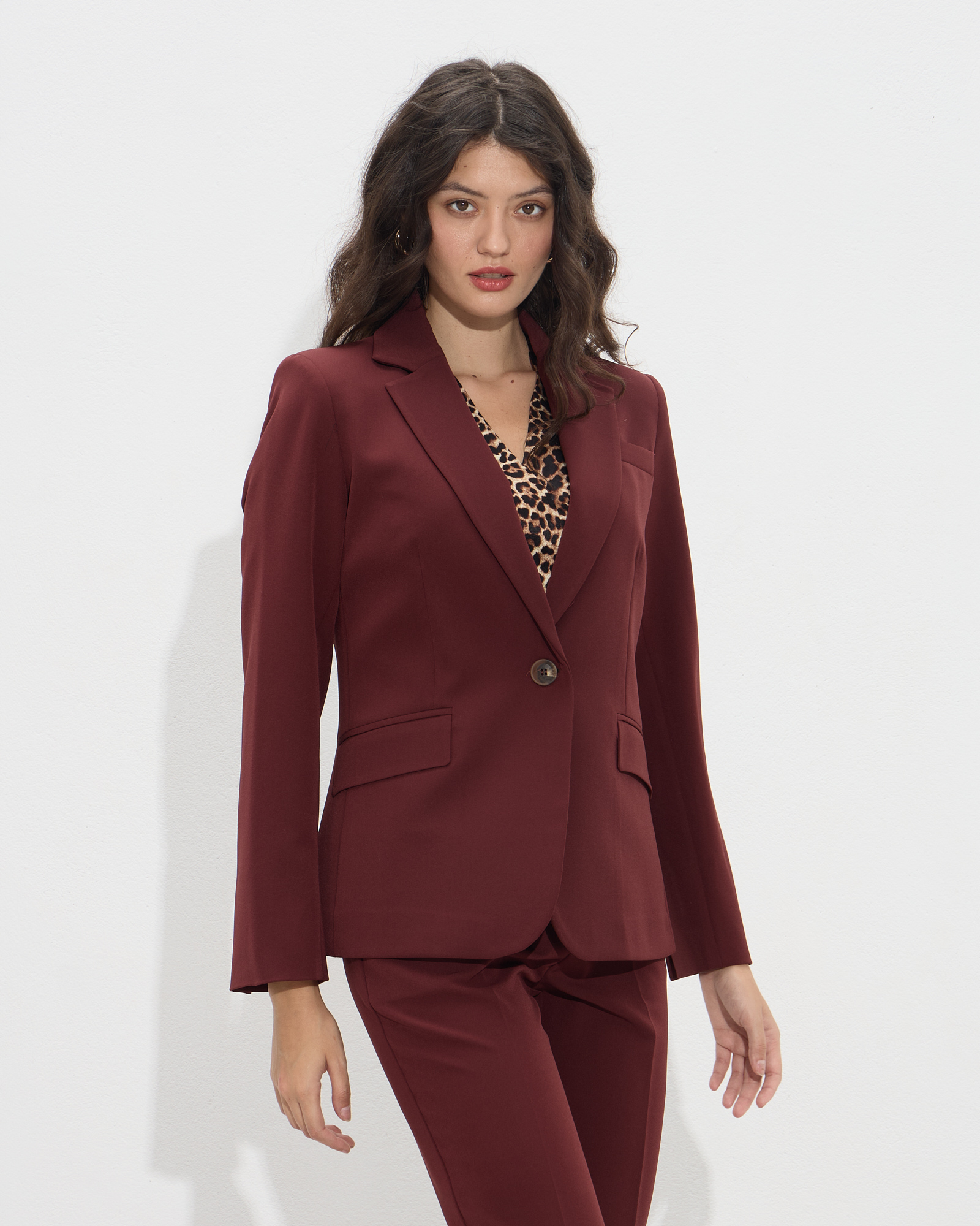 Σακάκι basic μεσάτο με γιακά με πέτο, μακρύ μανίκι με διακοσμητικά κουμπιά στο τελείωμα, κλείσιμο με κουμπί, μπροστινές τσέπες με καπάκι και εσωτερική φόδρα