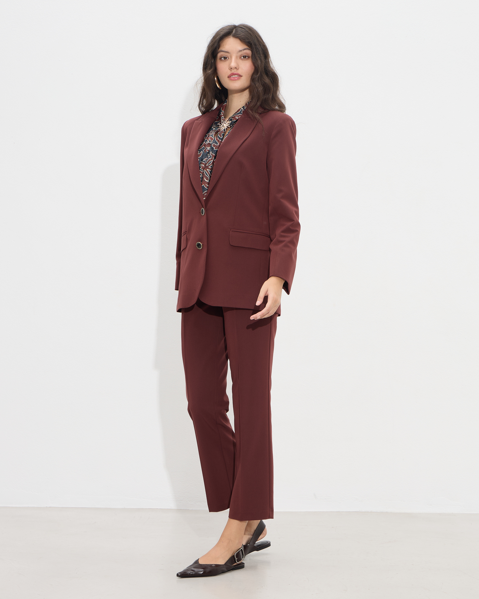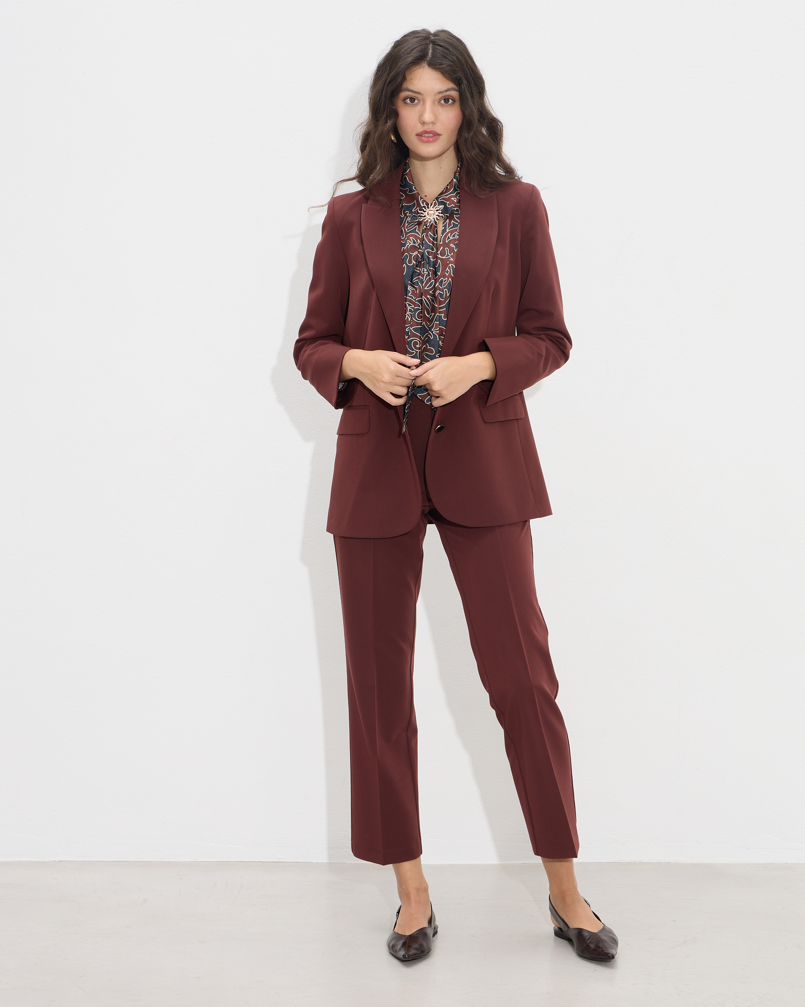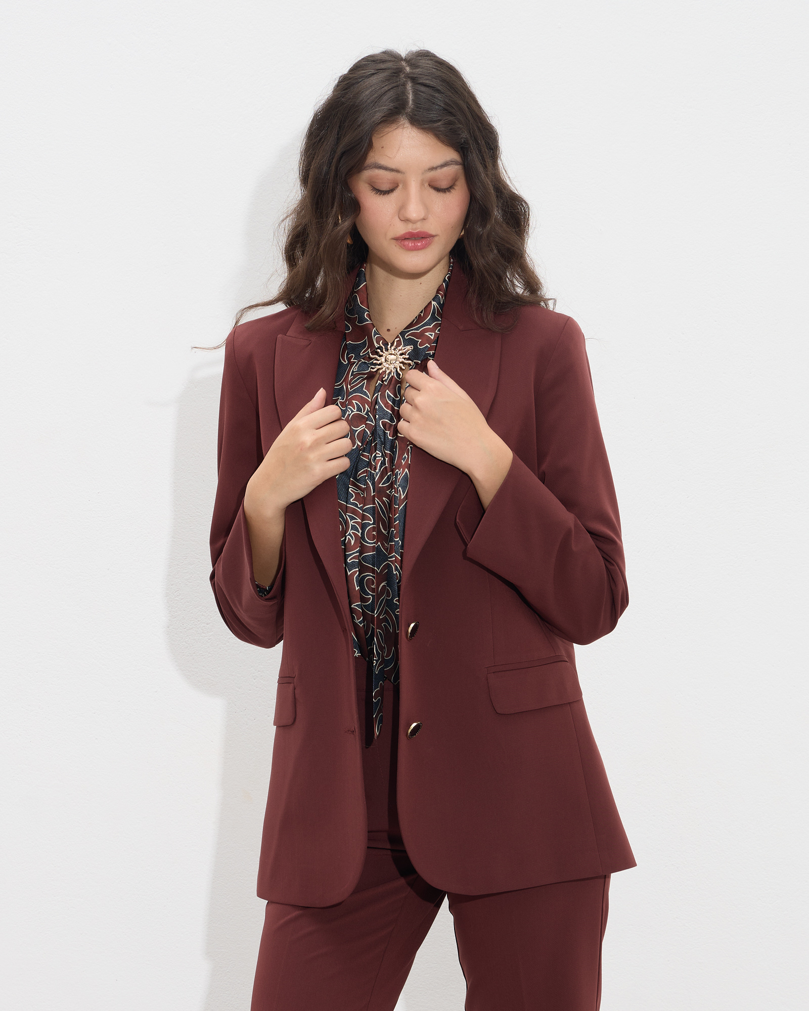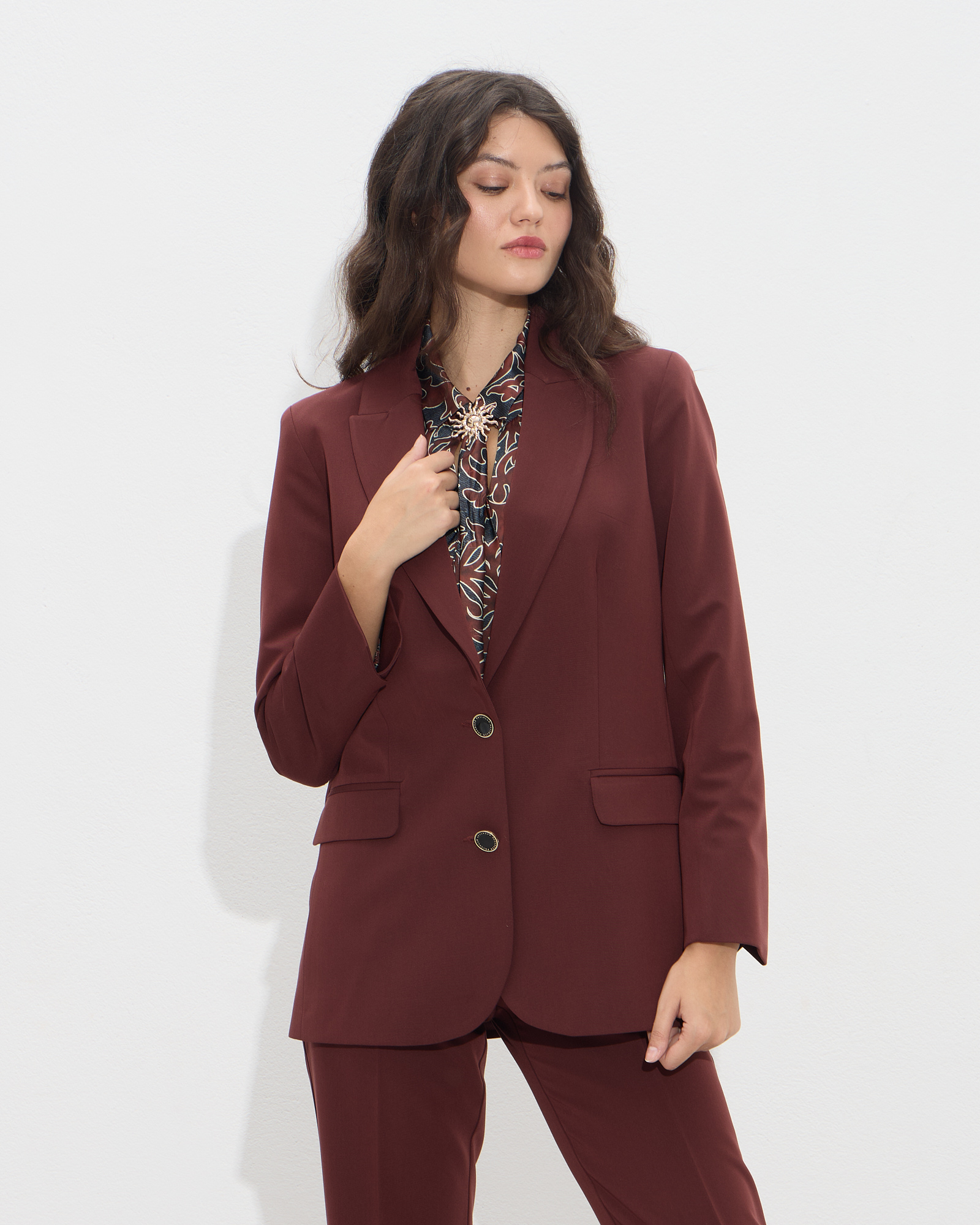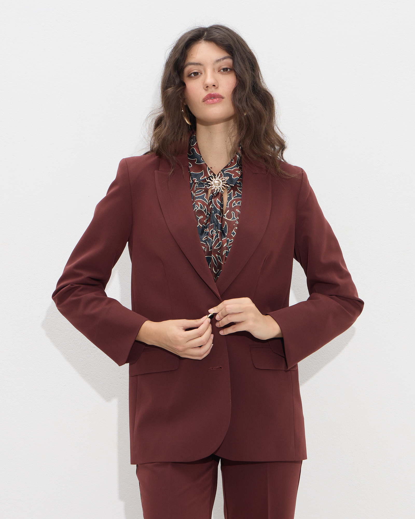 Blazer με γιακά με πέτο, μπροστινό κλείσιμο με μεταλλικά κουμπιά, διακοσμητικές τσέπες με καπάκι, σε ίσια γραμμή