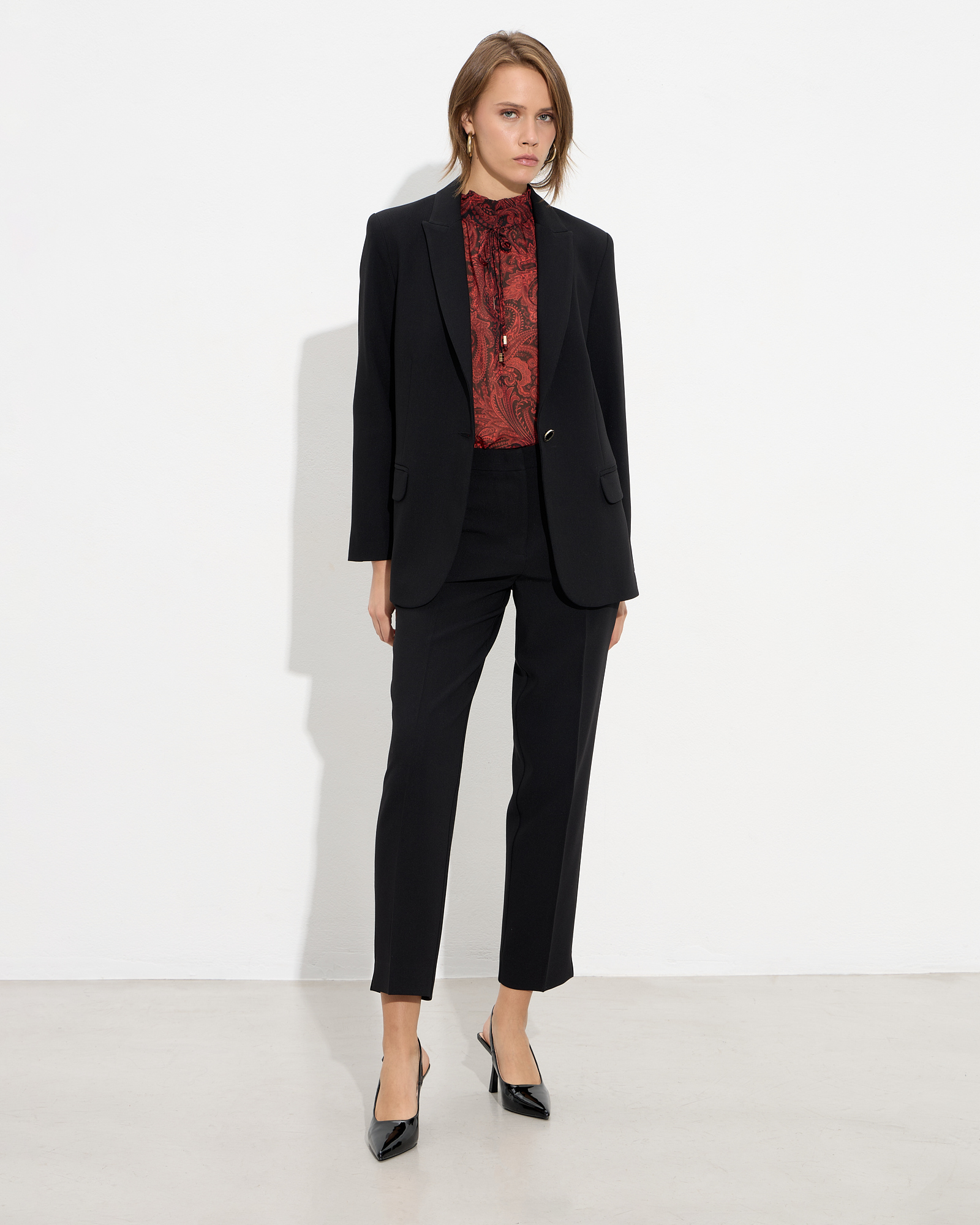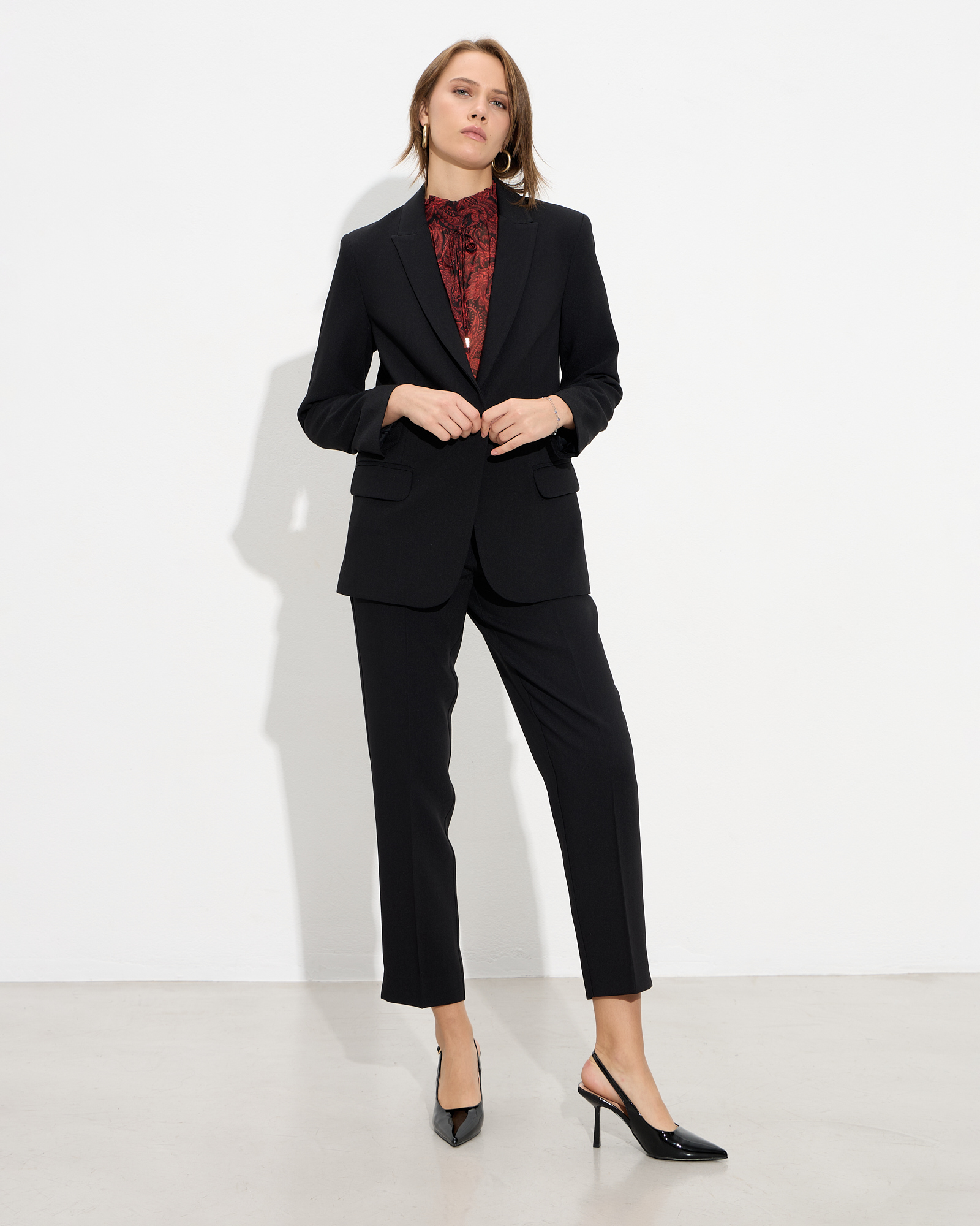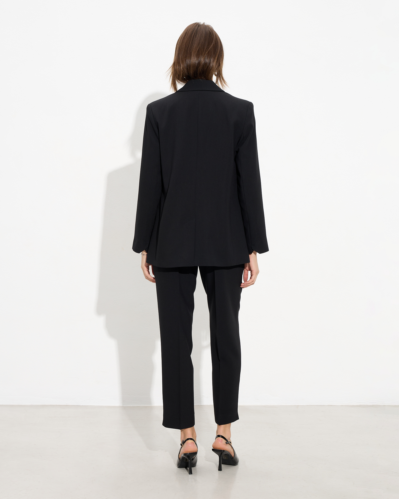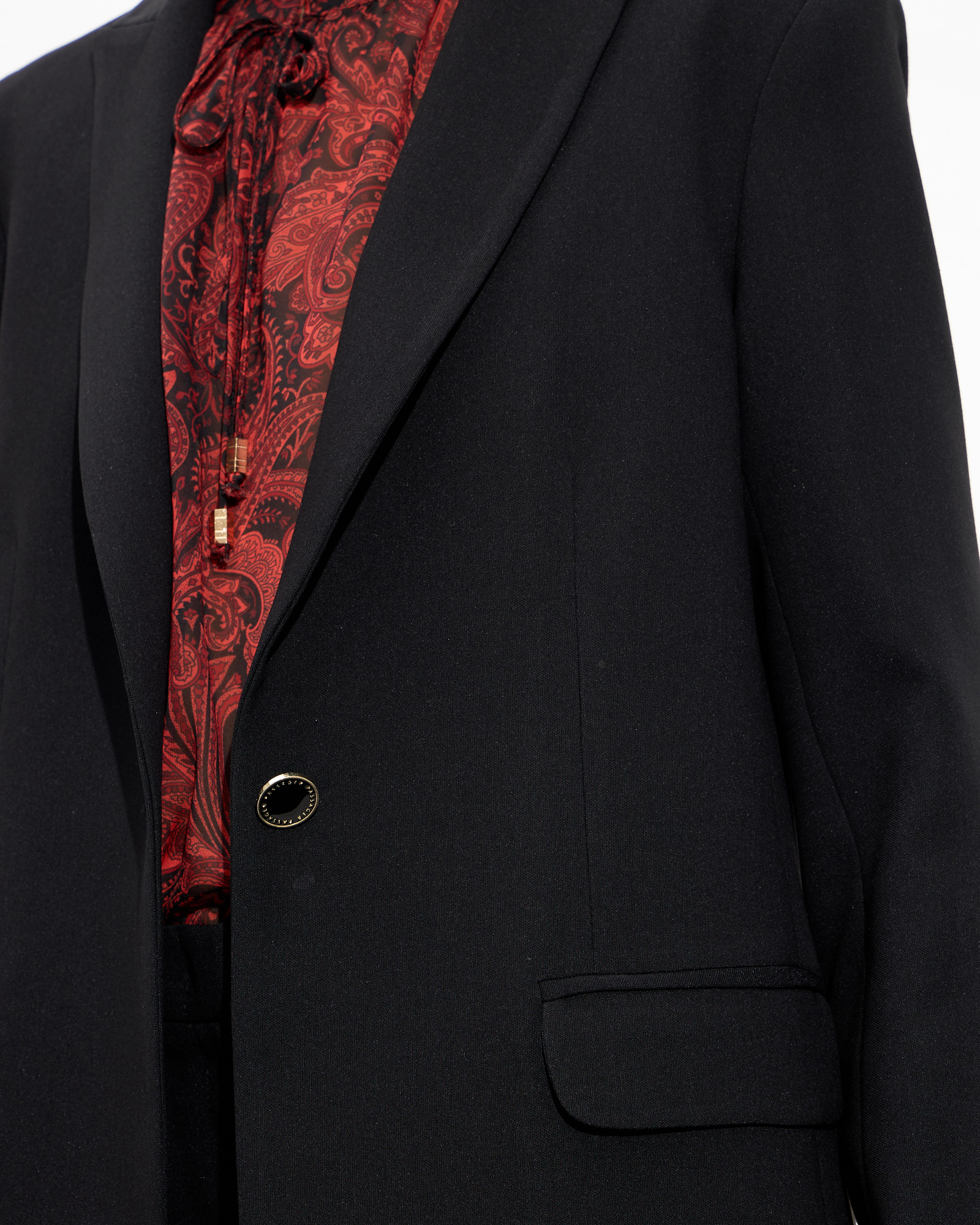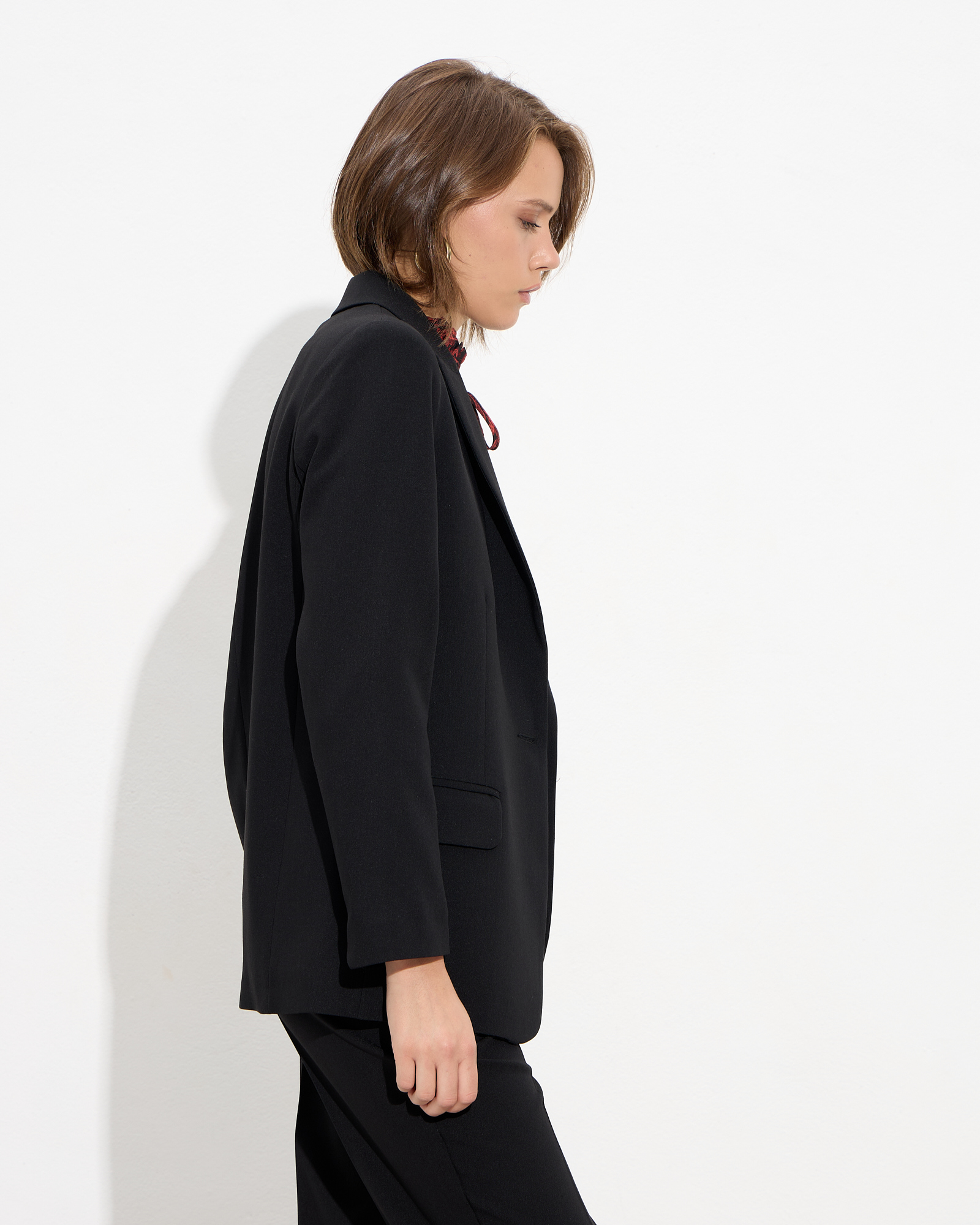 Σακάκι μπλέιζερ μακρυμάνικο με βάτες στους ώμους, με πέτο και γιακά, κλείσιμο με κουμπί, σε κανονική γραμμή