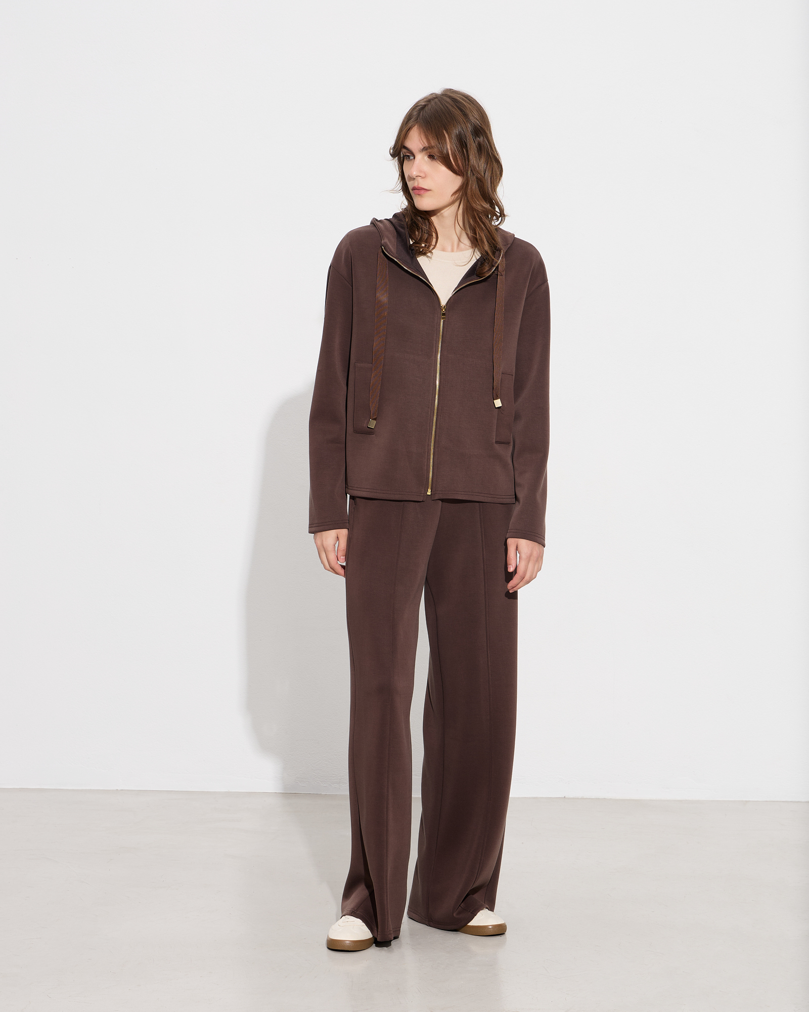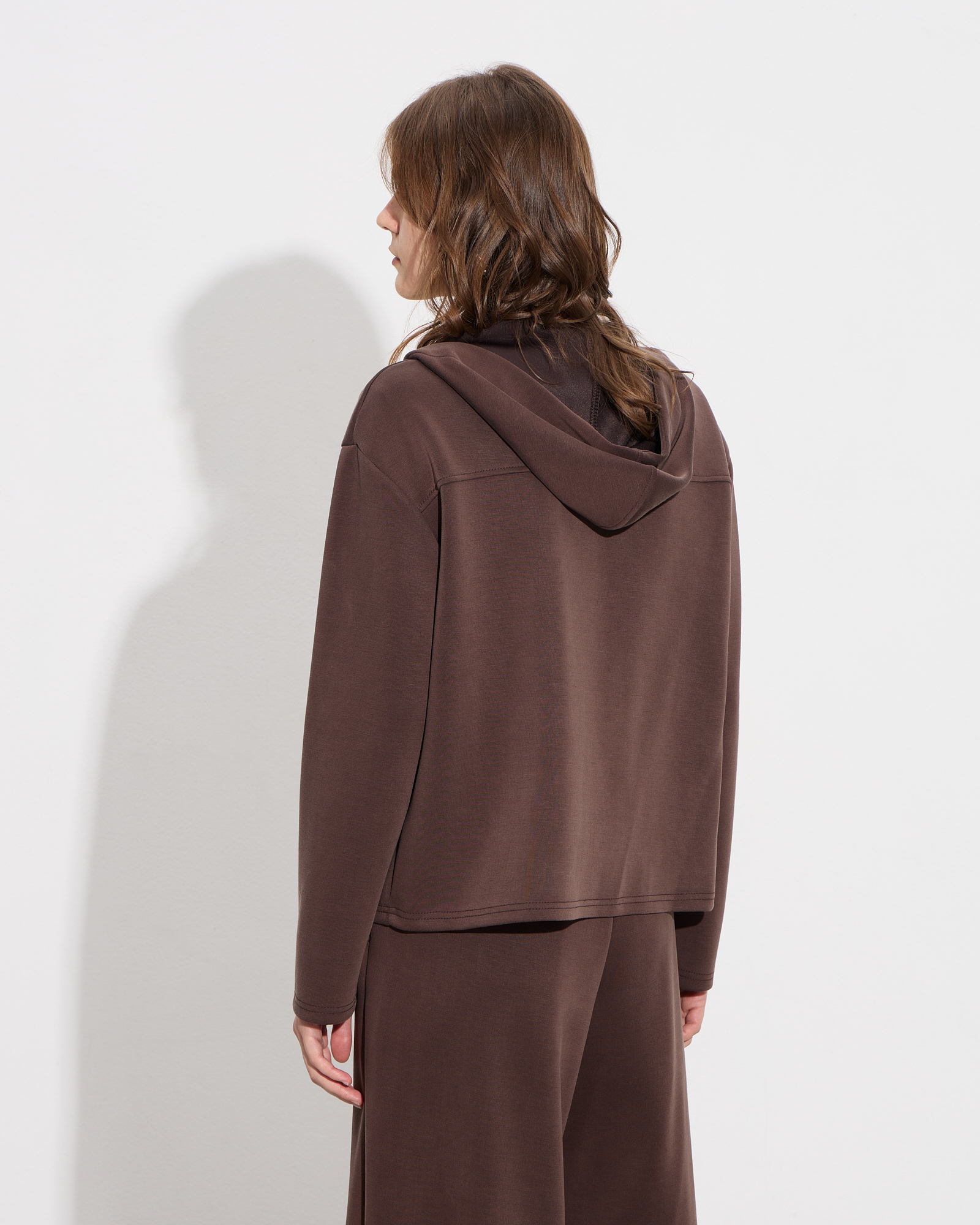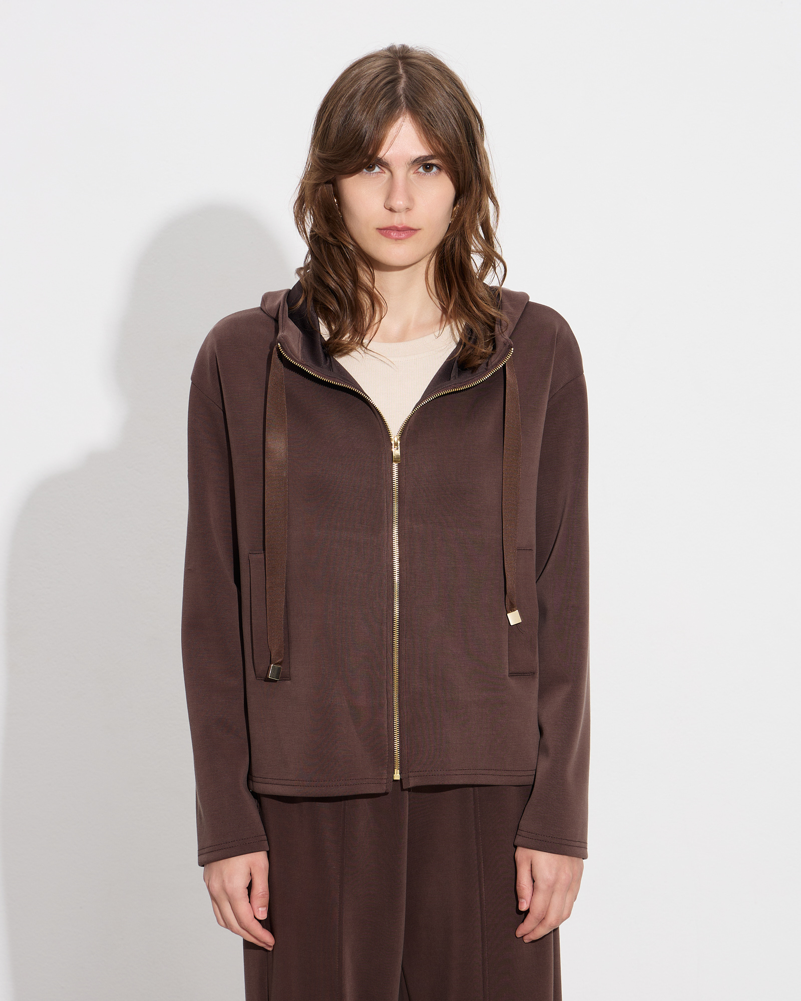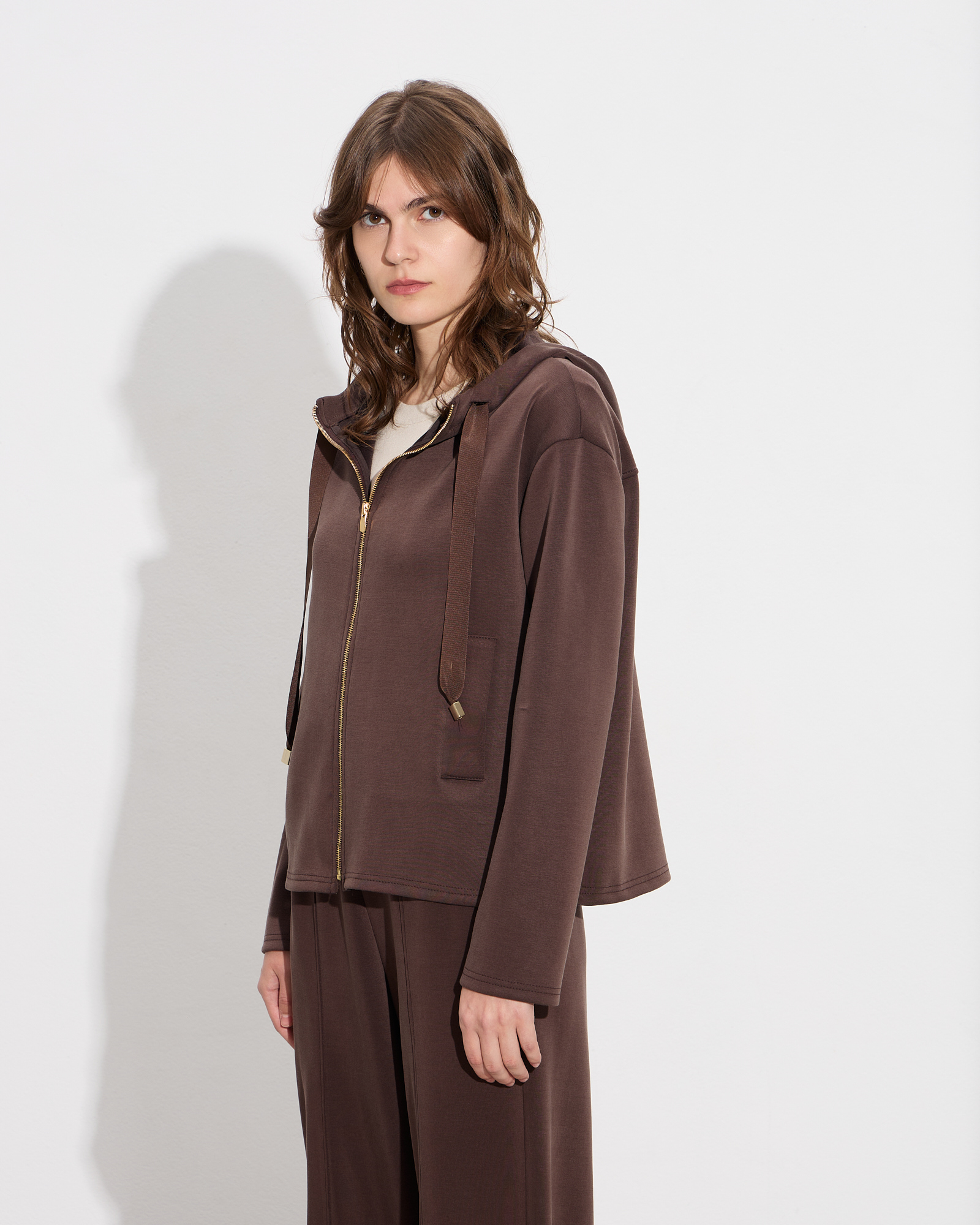 Ζακέτα μακρυμάνικη με κουκούλα με κορδόνι, κλείσιμο με φερμουάρ, πλαϊνές τσέπες, μαλακή υφή, σε κανονική εφαρμογή