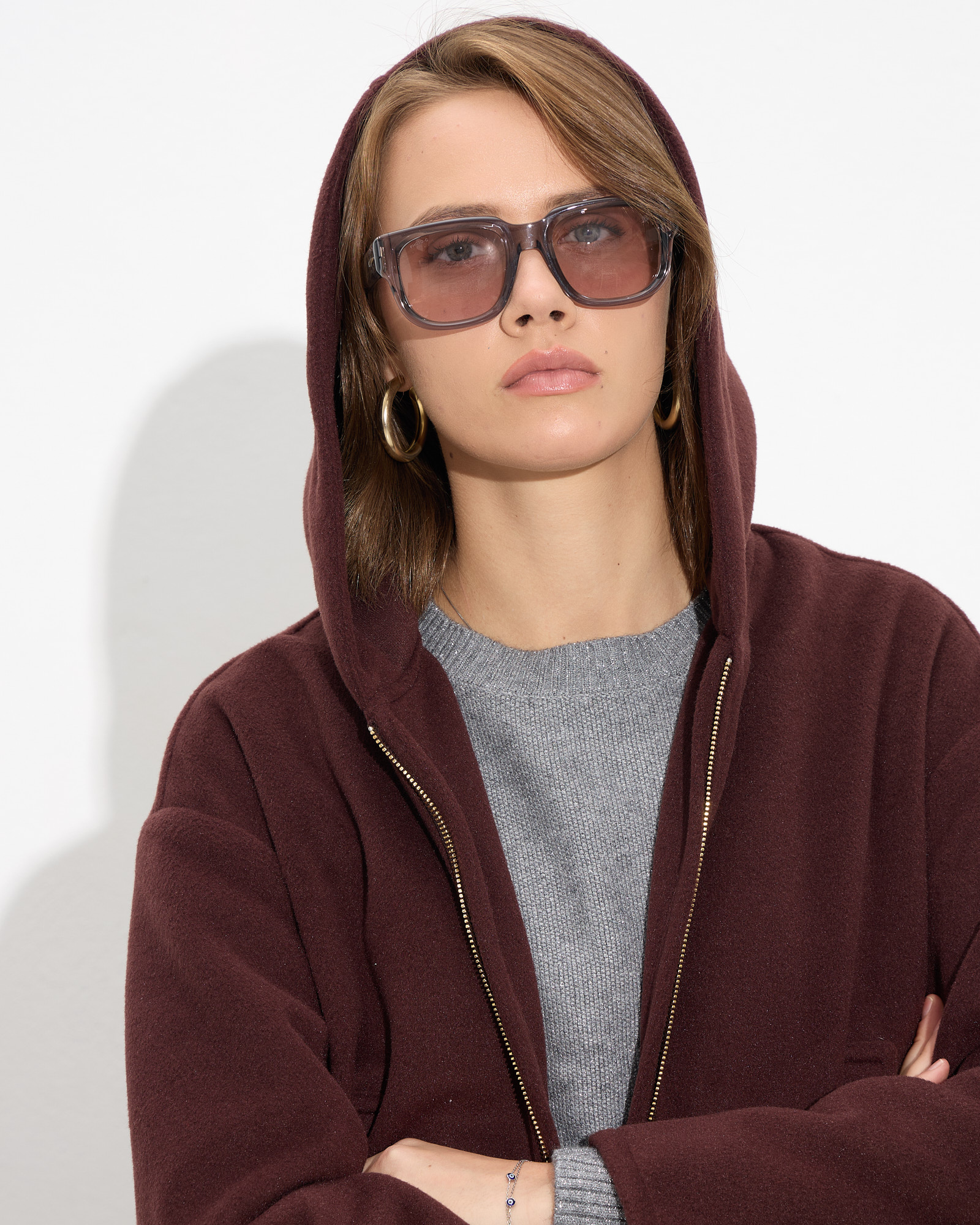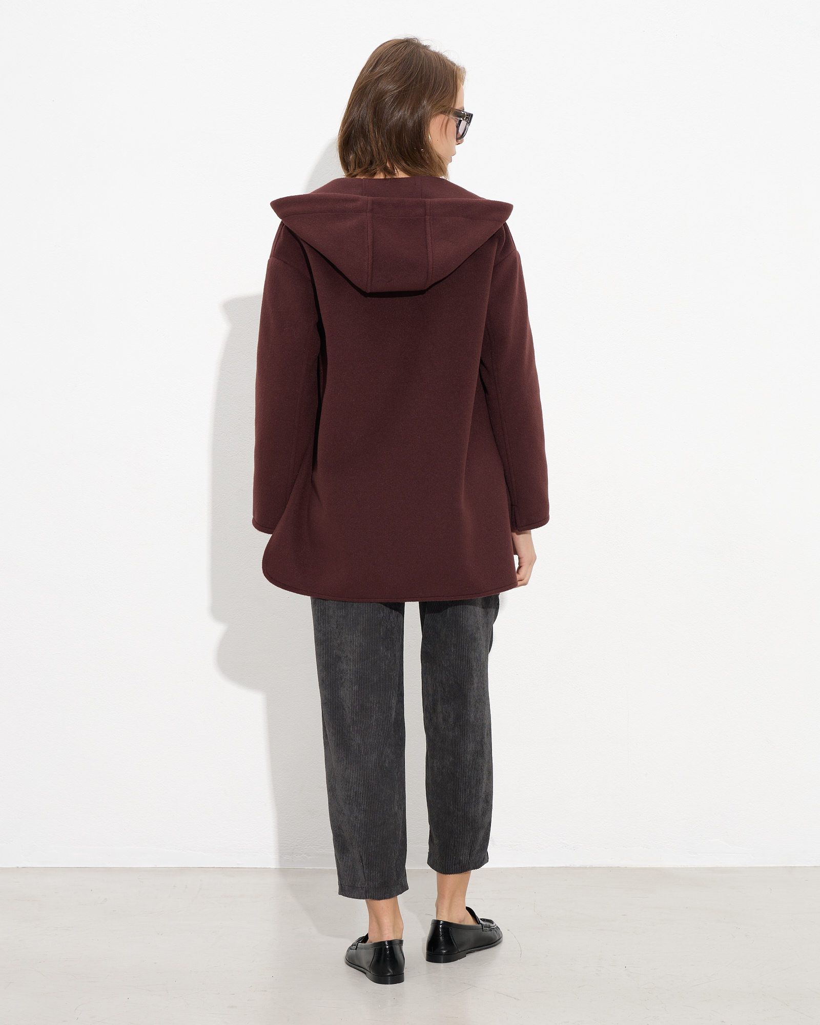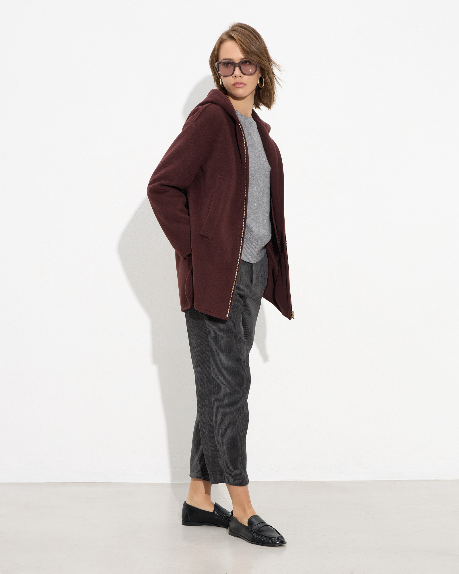 Ημίπαλτο με κουκούλα, κλείσιμο με φερμουάρ, πλαϊνές τσέπες, ανοίγματα στο πλάι, σε άνετη γραμμή