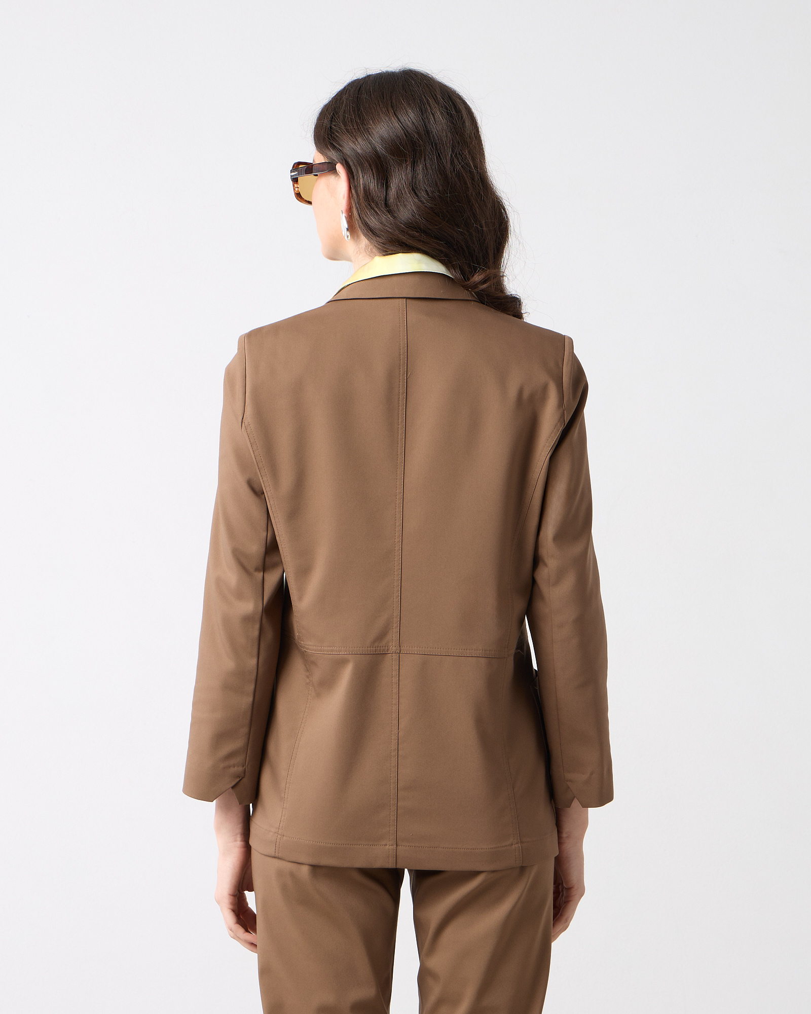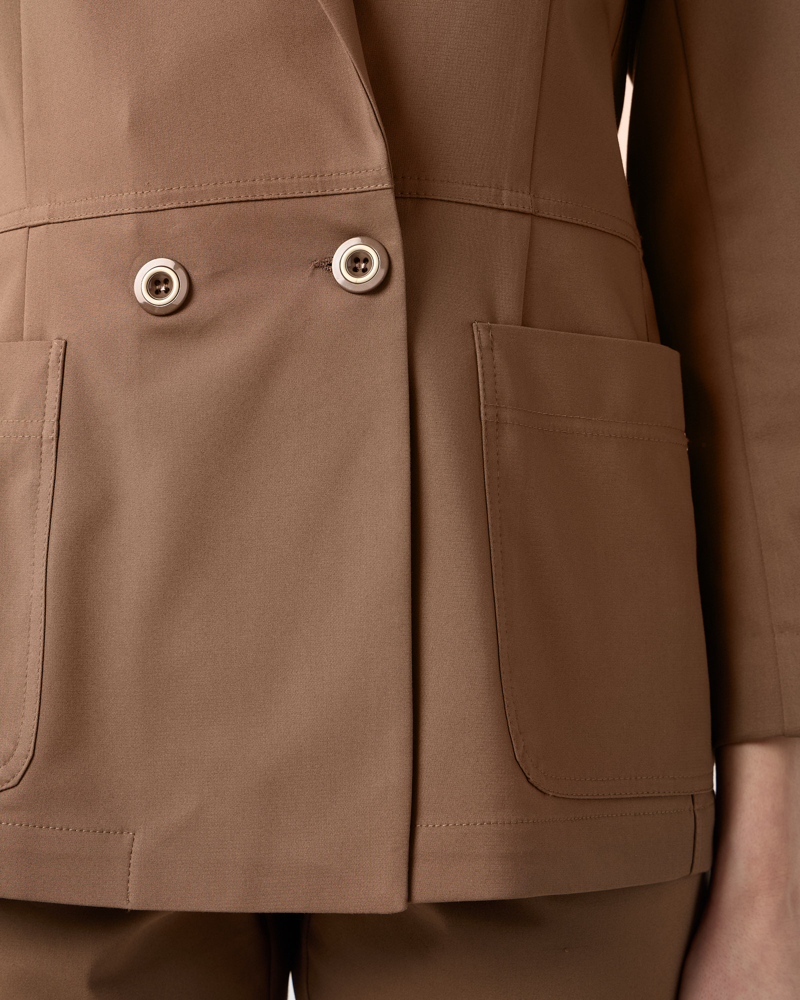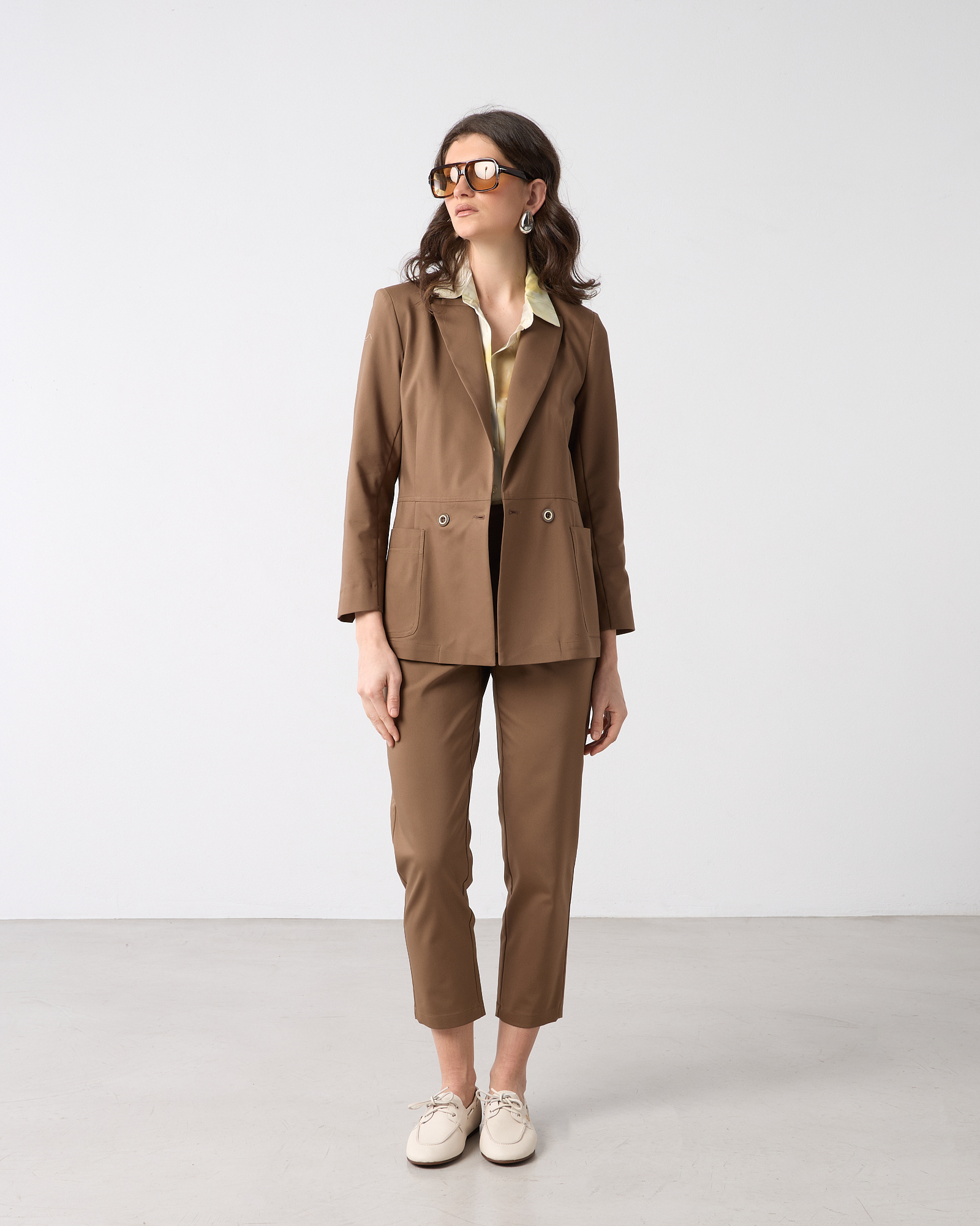 Σακάκι με γιακά και πέτο, μακρυμάνικο, σταυρωτό, κλείσιμο με κουμπιά, μπροστινές patch τσέπες, σε καπαρντινέ υφή, άνετη εφαρμογή