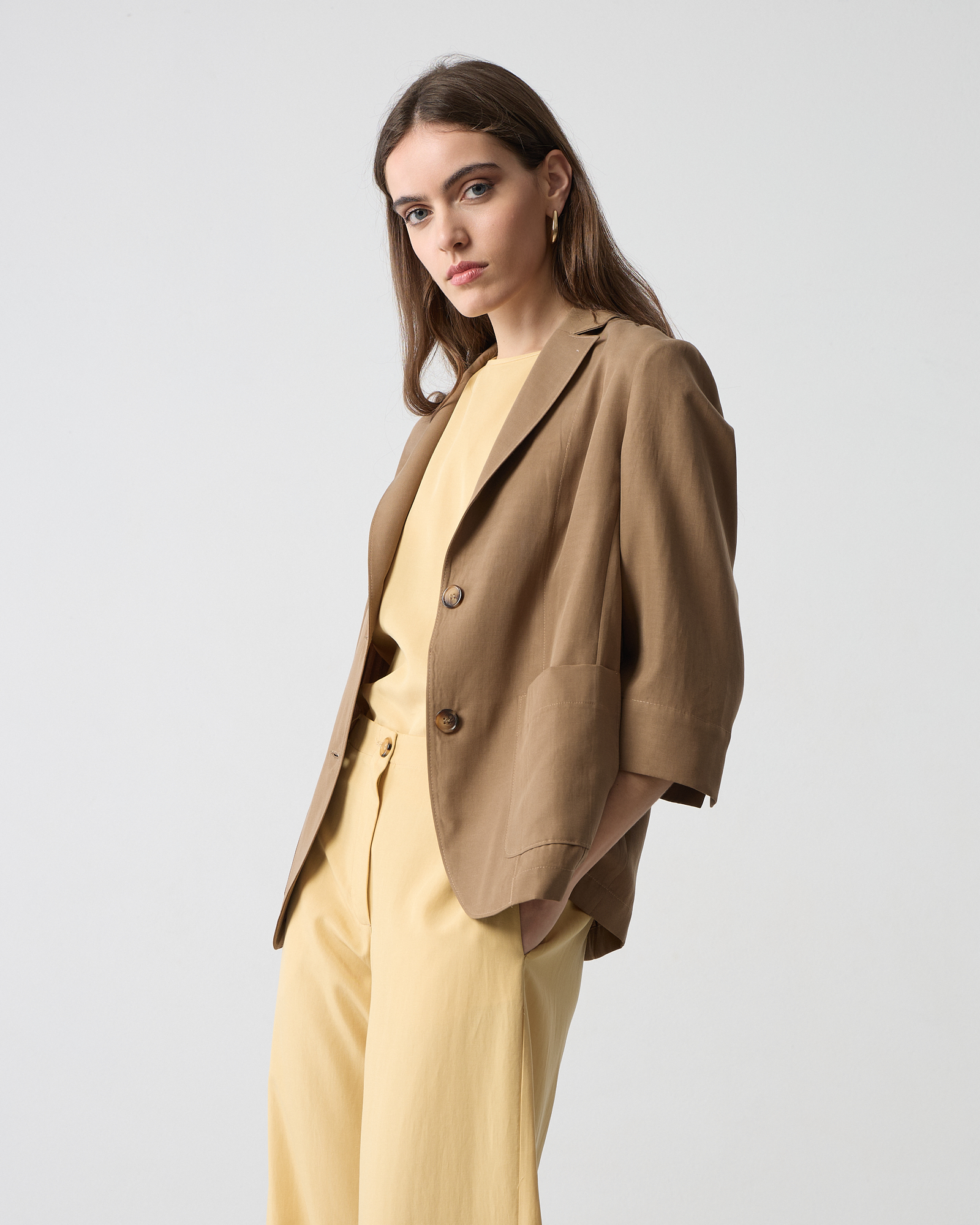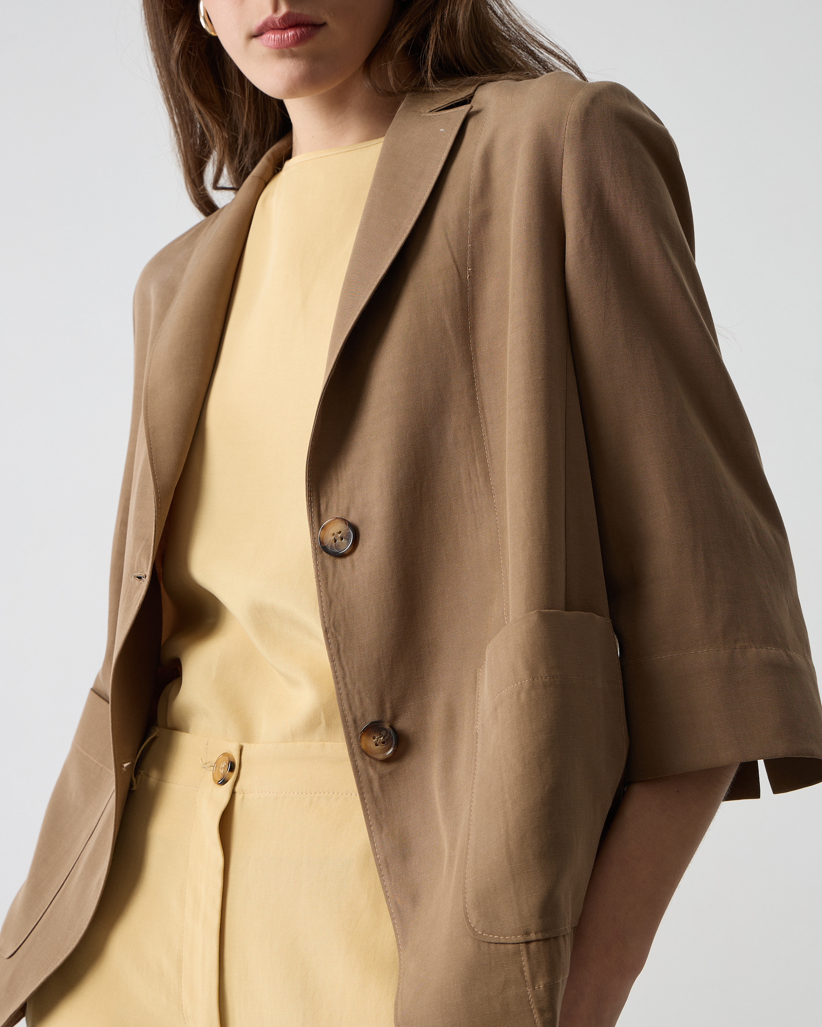 Σακάκι κοντό με patch τσέπες, με πέτο, μανίκια 3/4 , κλείσιμο με κουμπιά μπροστά, απαλή υφή, σε άνετη γραμμή