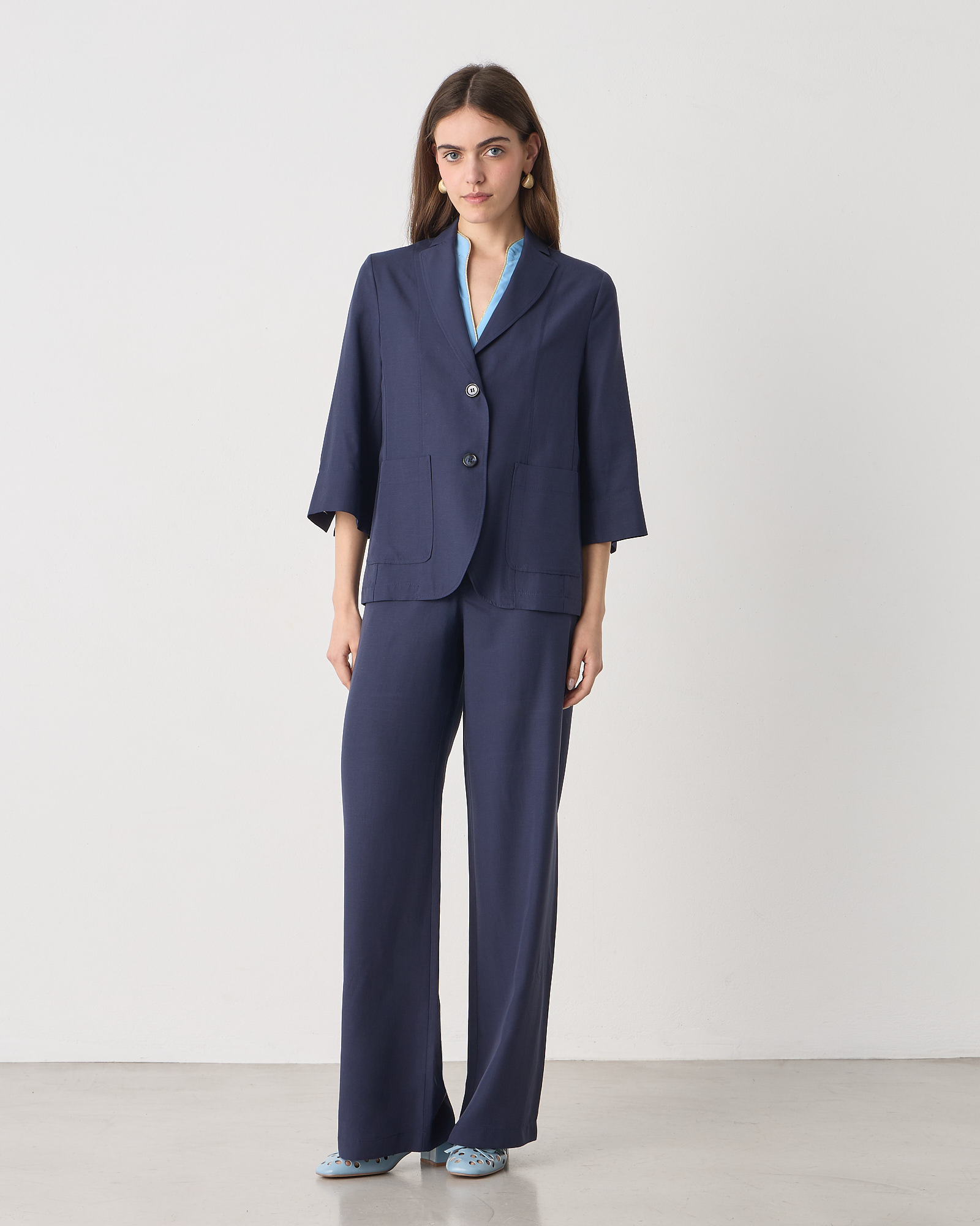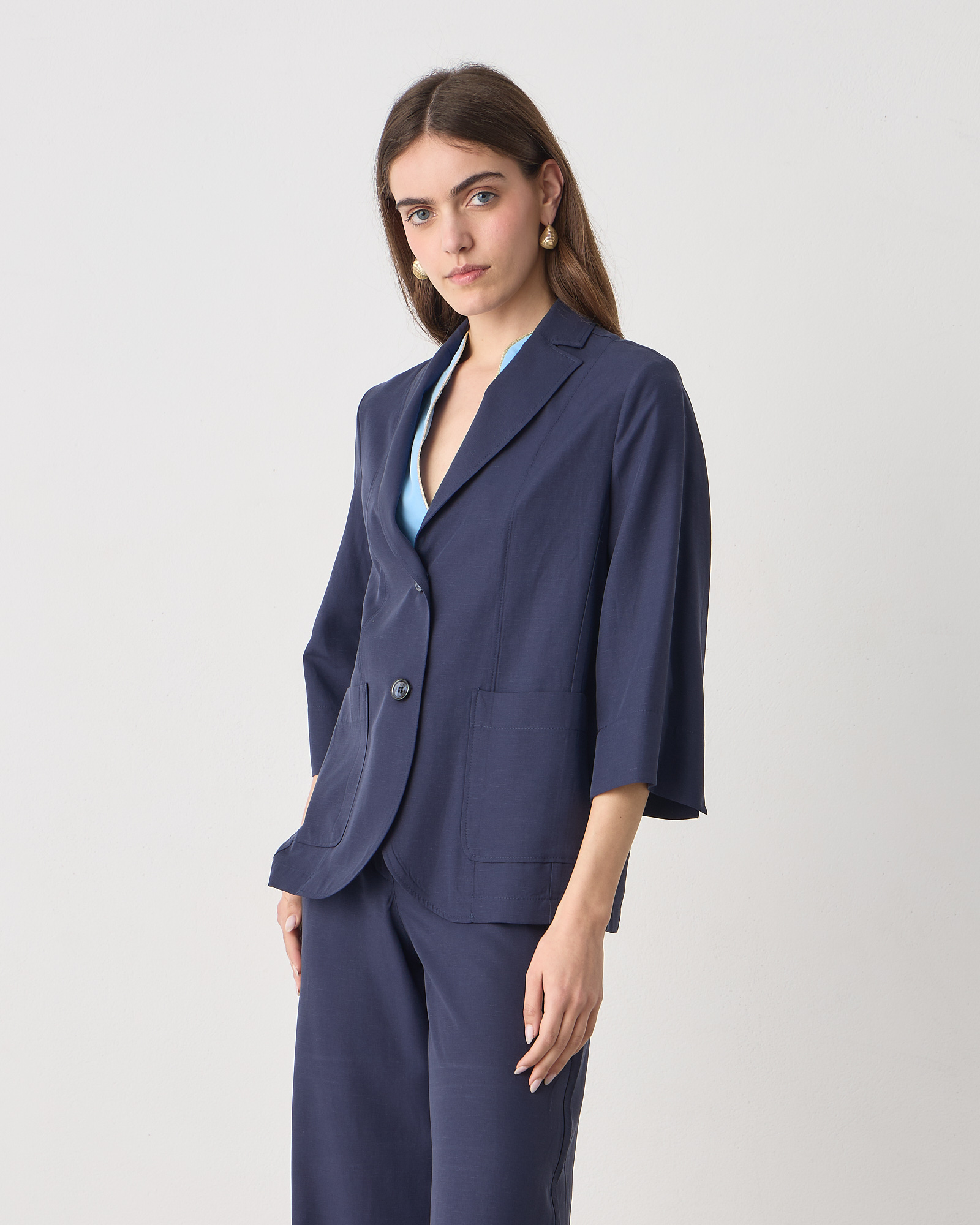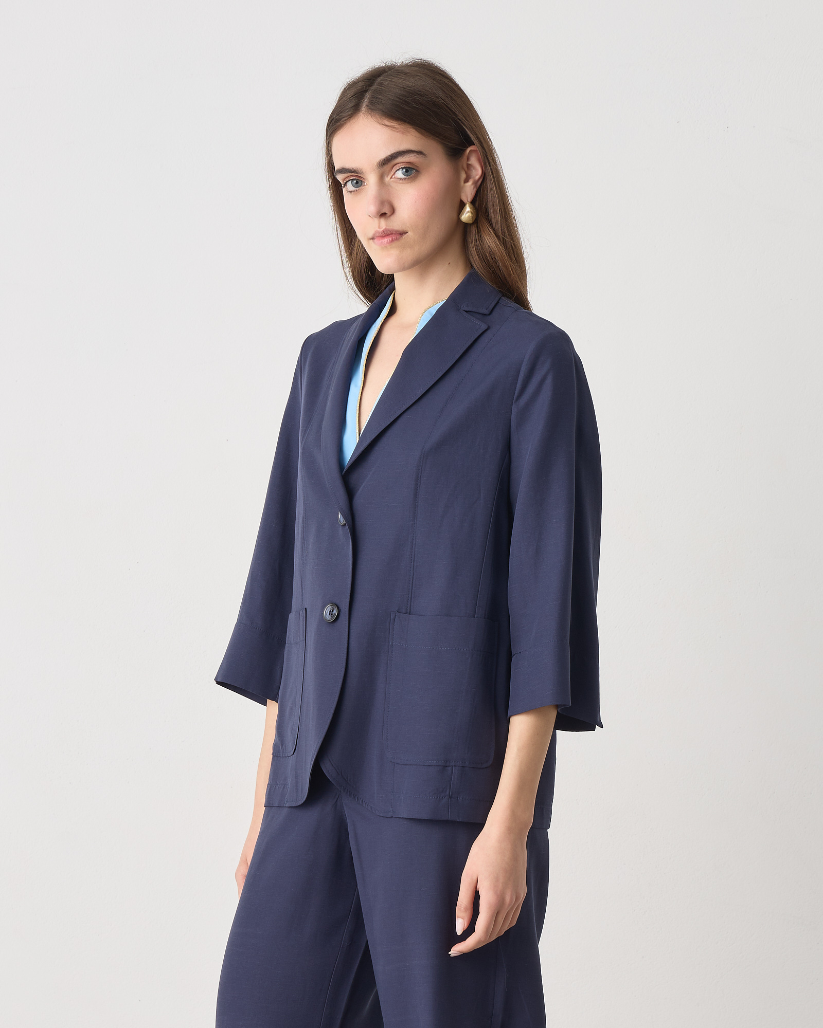 Σακάκι κοντό με patch τσέπες, με πέτο, μανίκια 3/4 , κλείσιμο με κουμπιά μπροστά, απαλή υφή, σε άνετη γραμμή