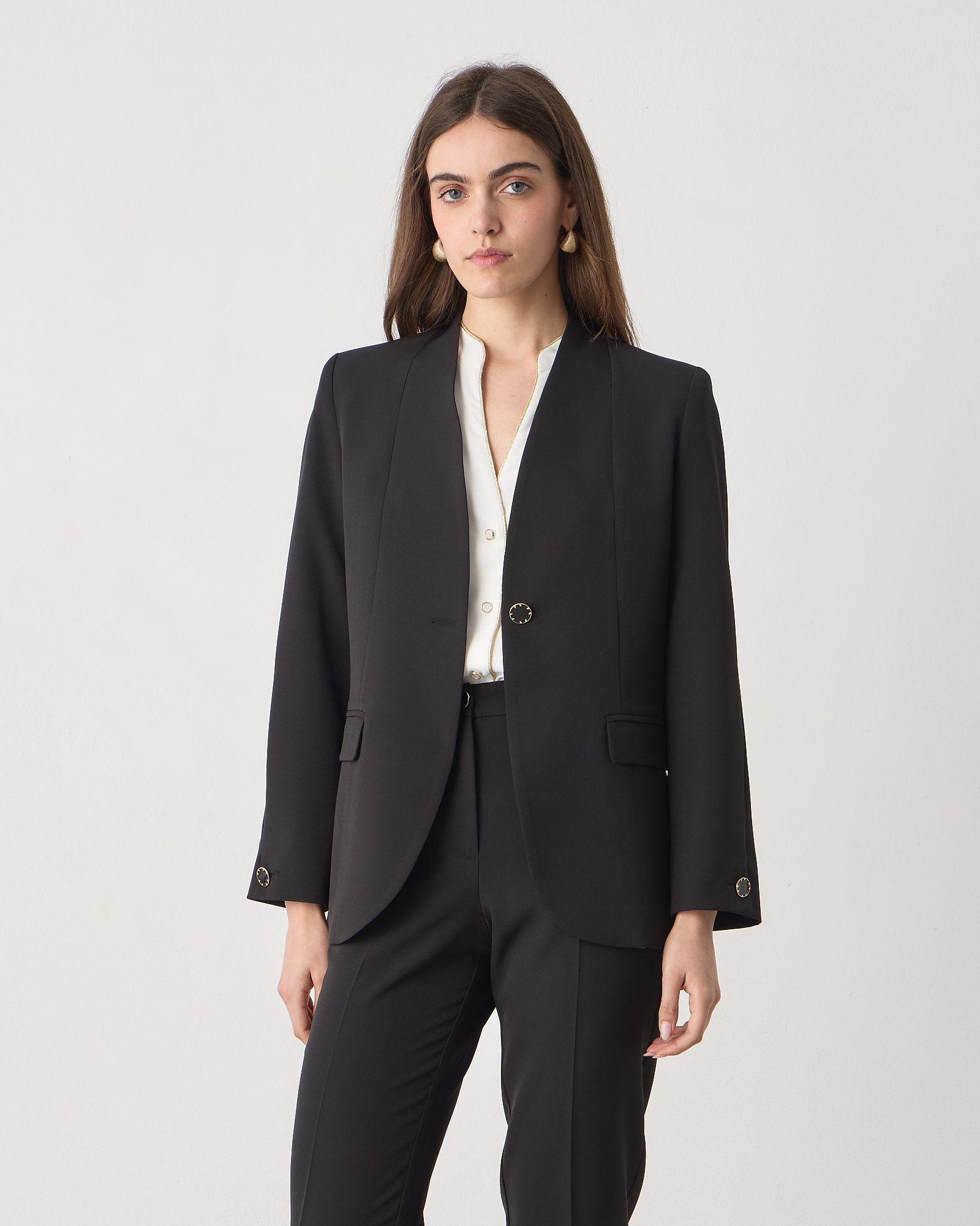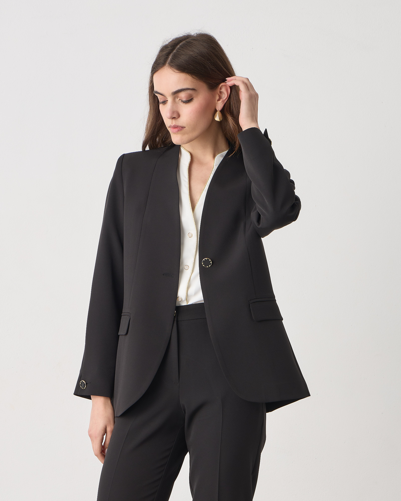 Σακάκι μακρυμάνικο χωρίς πέτο, κλείσιμο με κουμπί μπροστά σε κανονική εφαρμογή