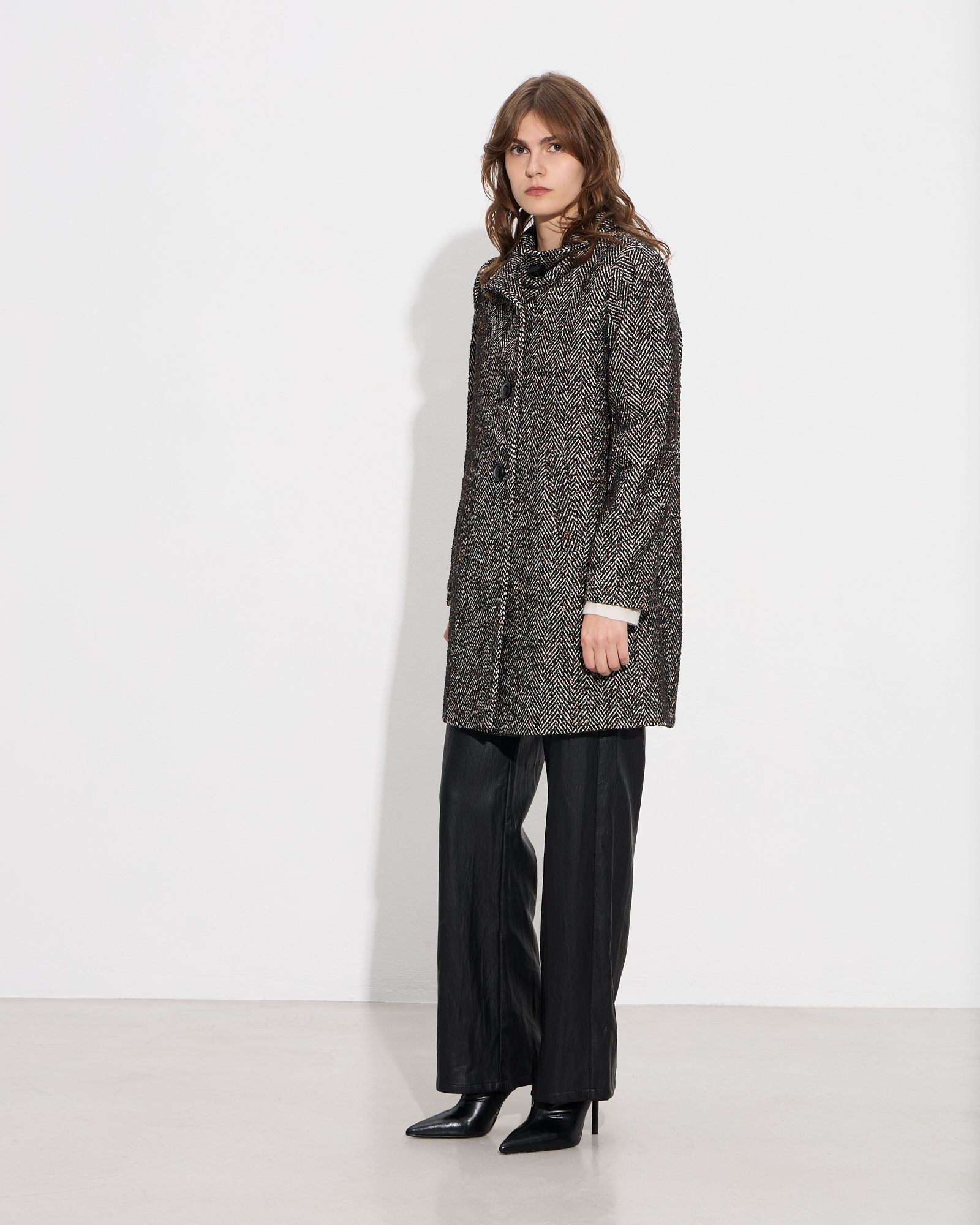 Παλτό ψαροκόκκαλο με όρθιο γιακά