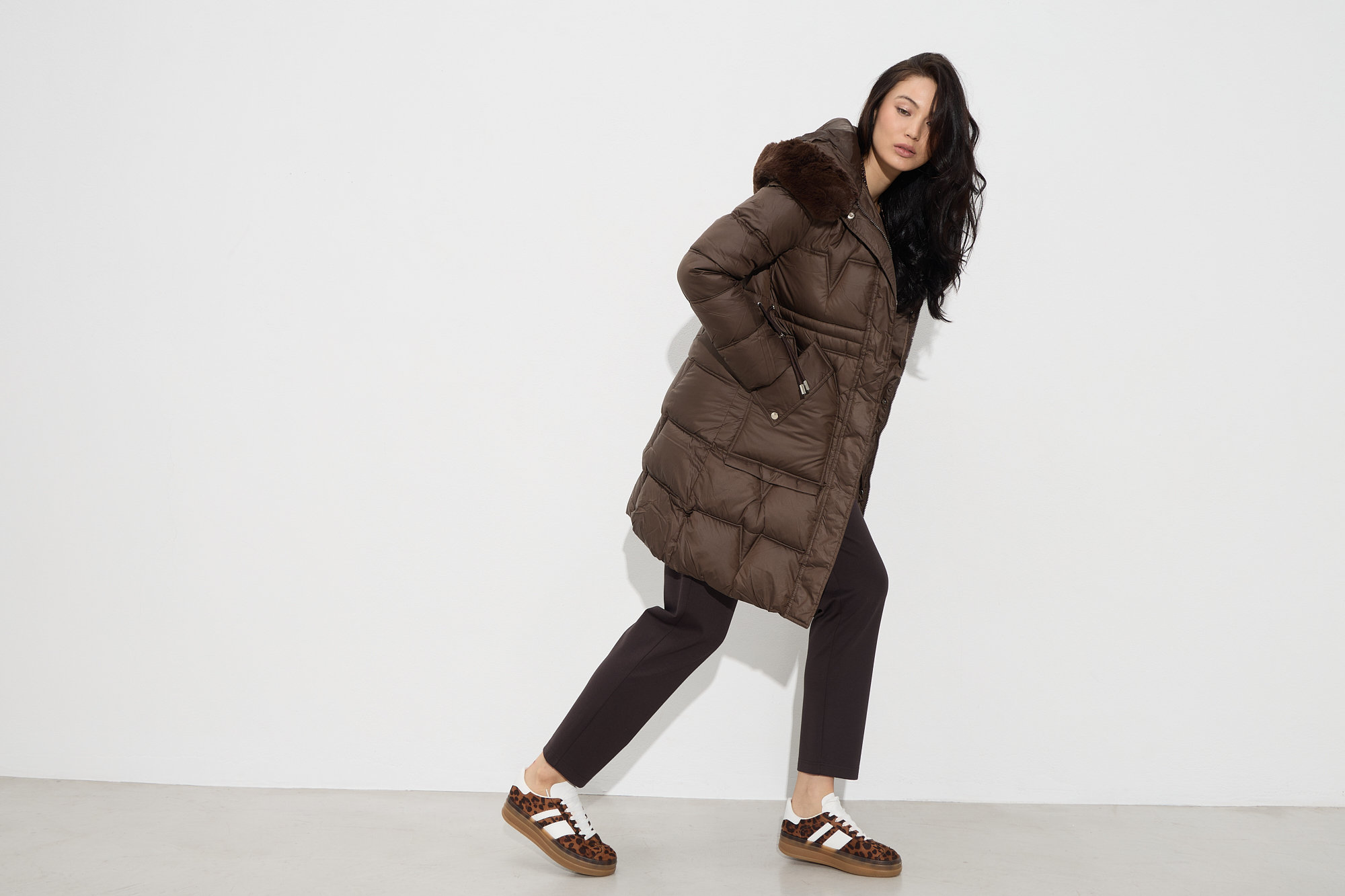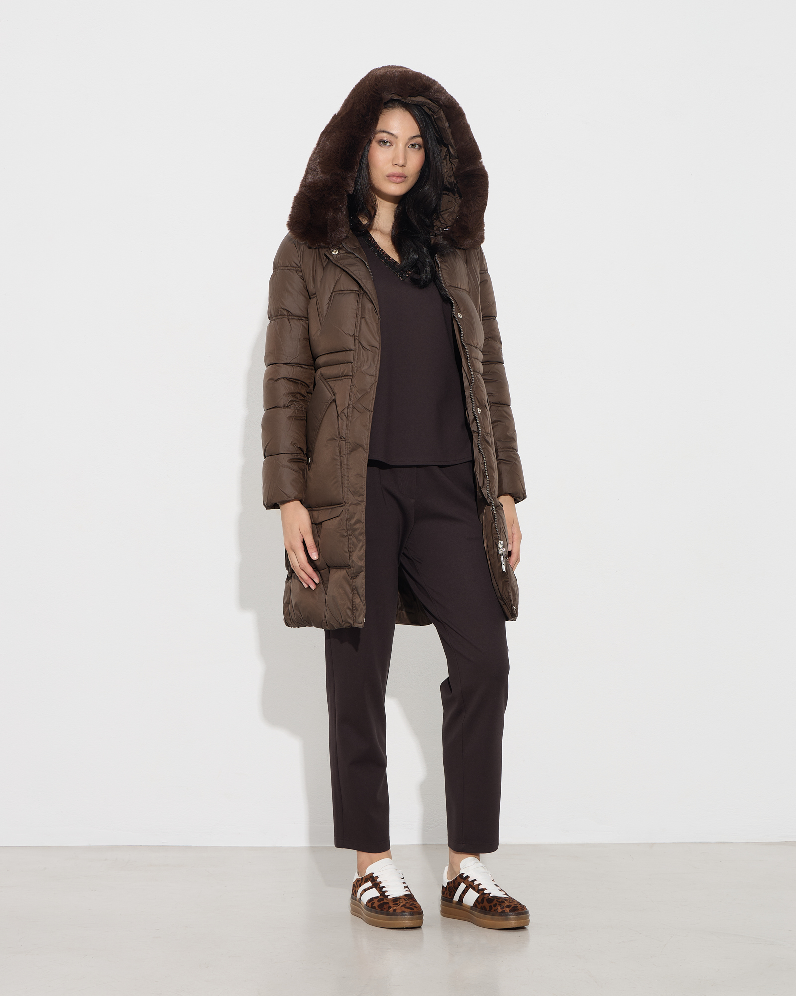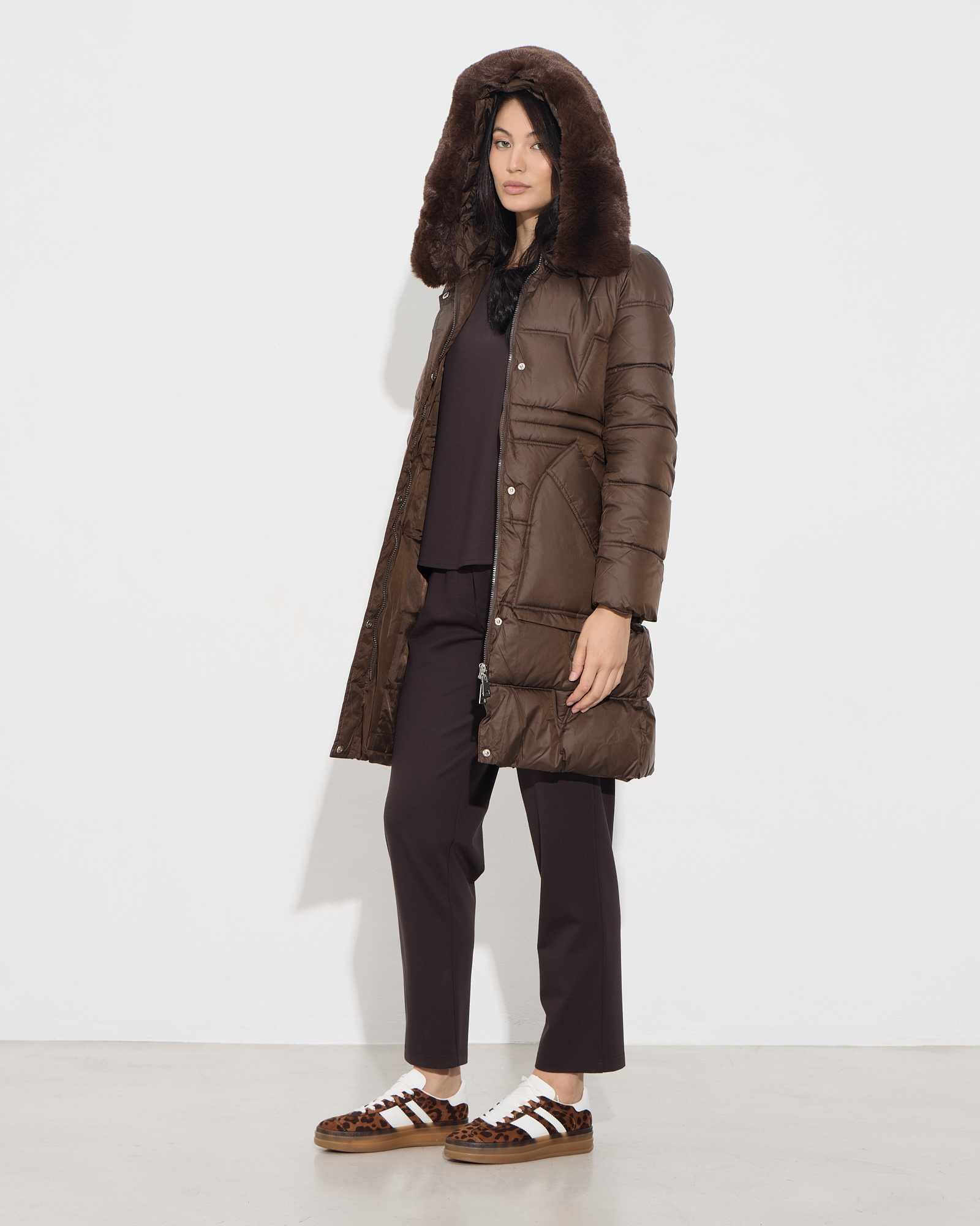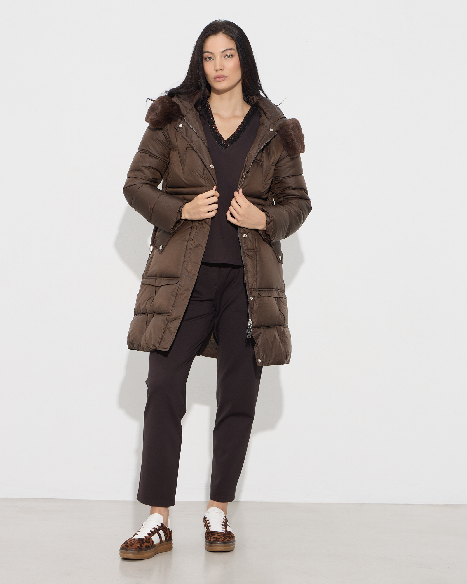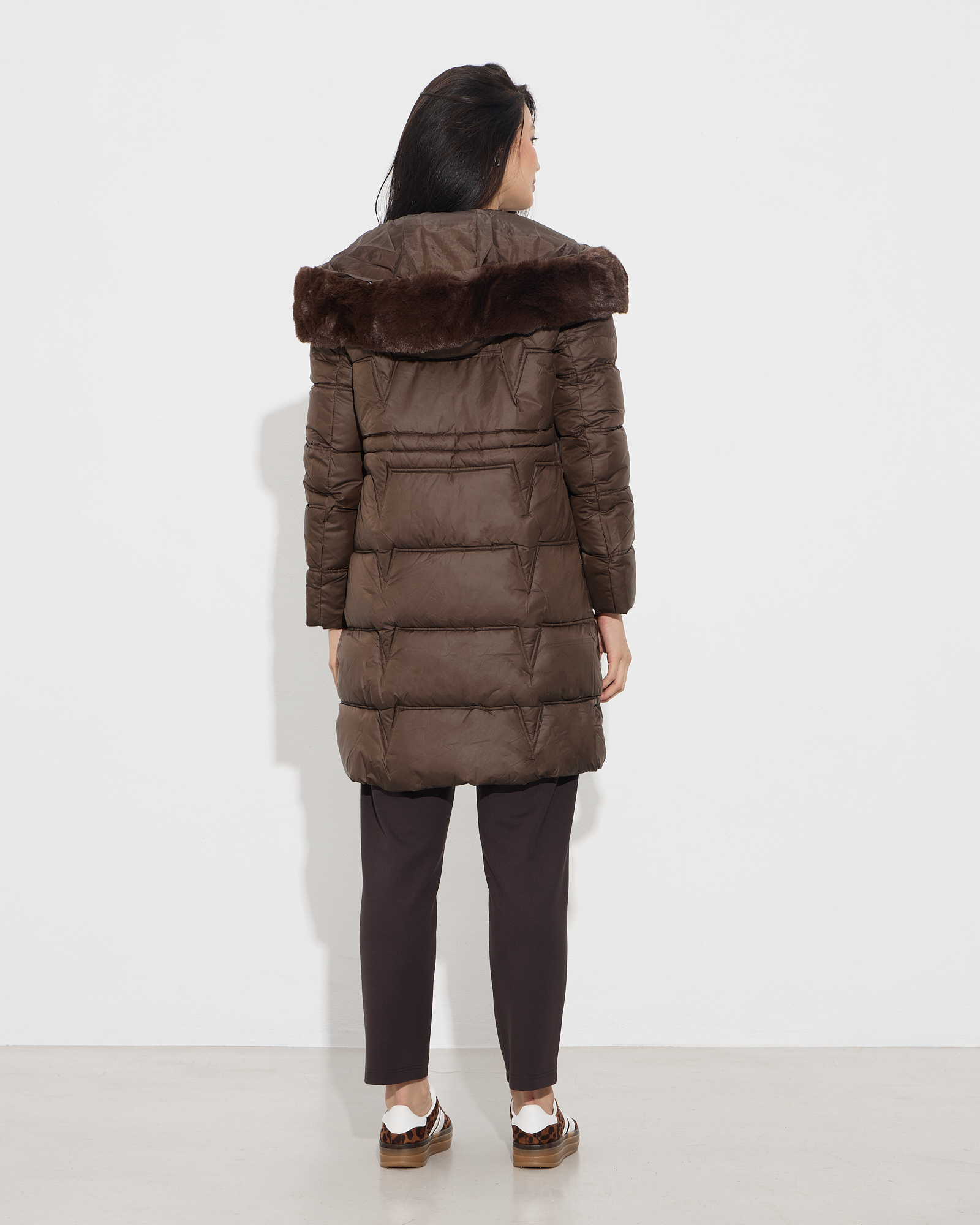 Μακρύ puffer μπουφάν με αφαιρούμενη γούνα