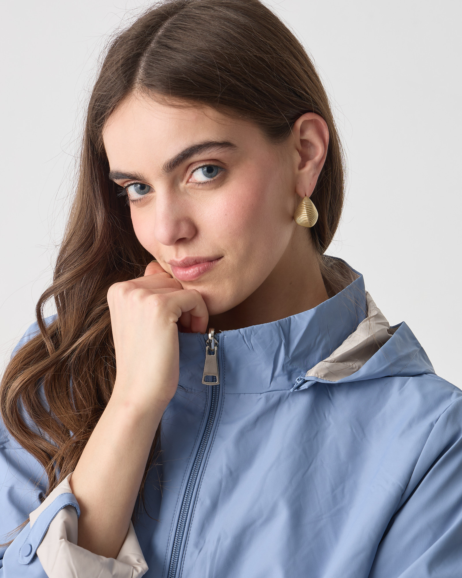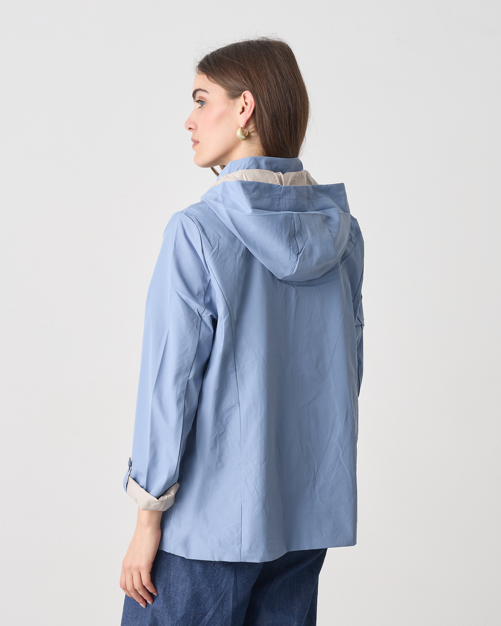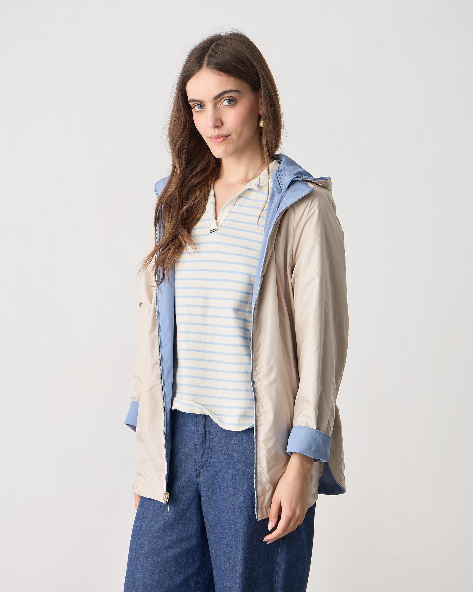 Μπουφάν διπλής όψης μακρυμάνικο, κλείσιμο μπροστά με φερμουάρ, αποσπώμενη κουκούλα, σε κανονική εφαρμογή
