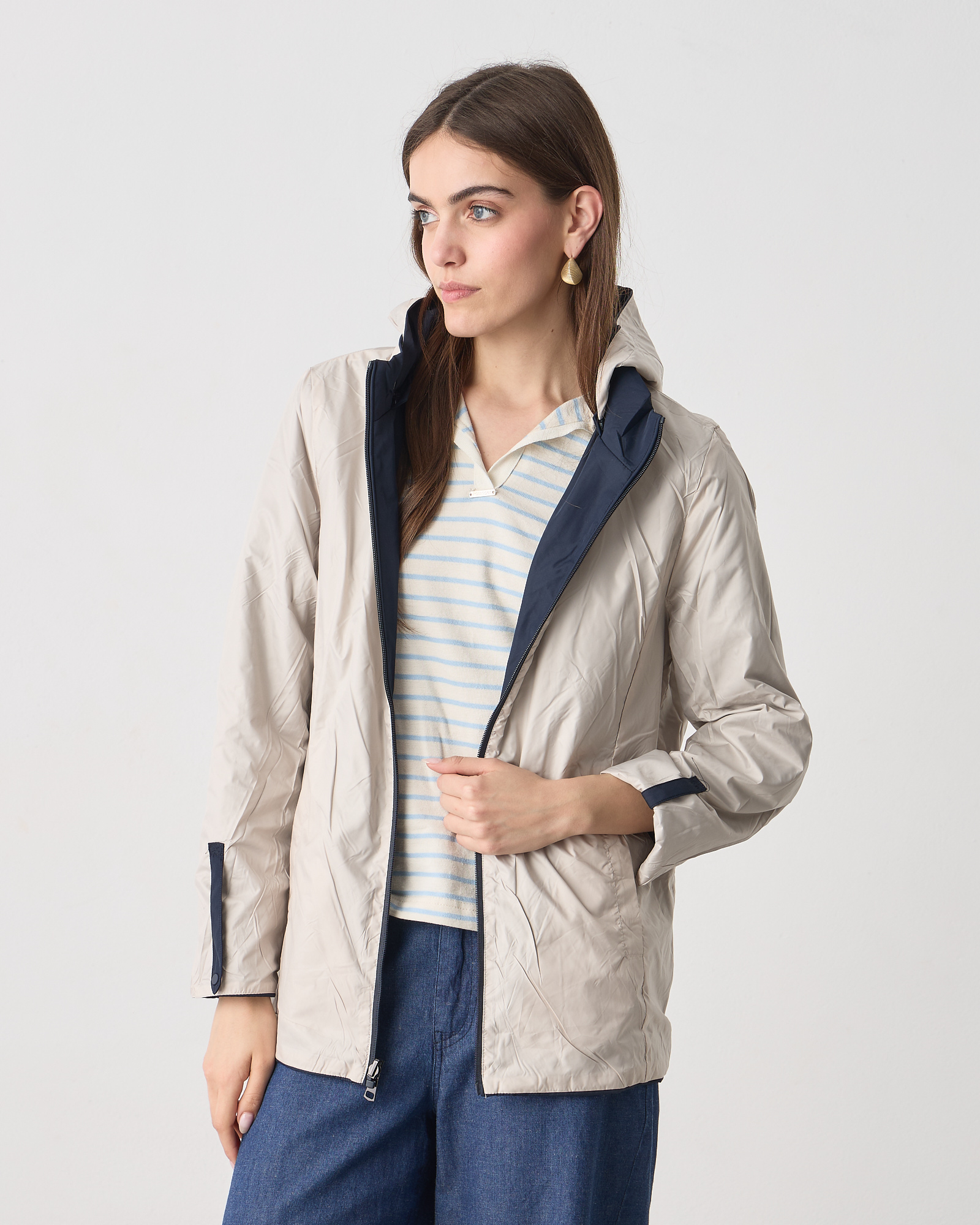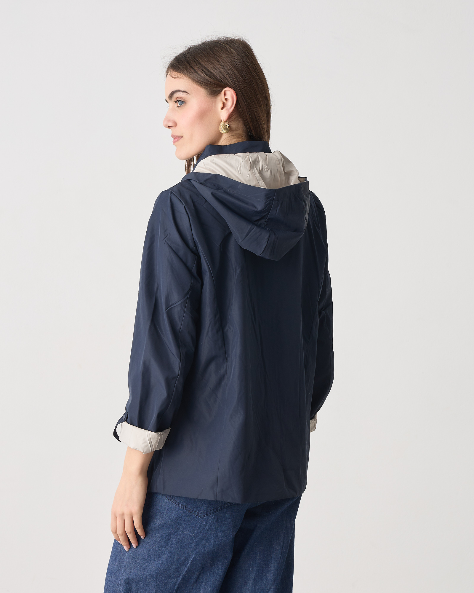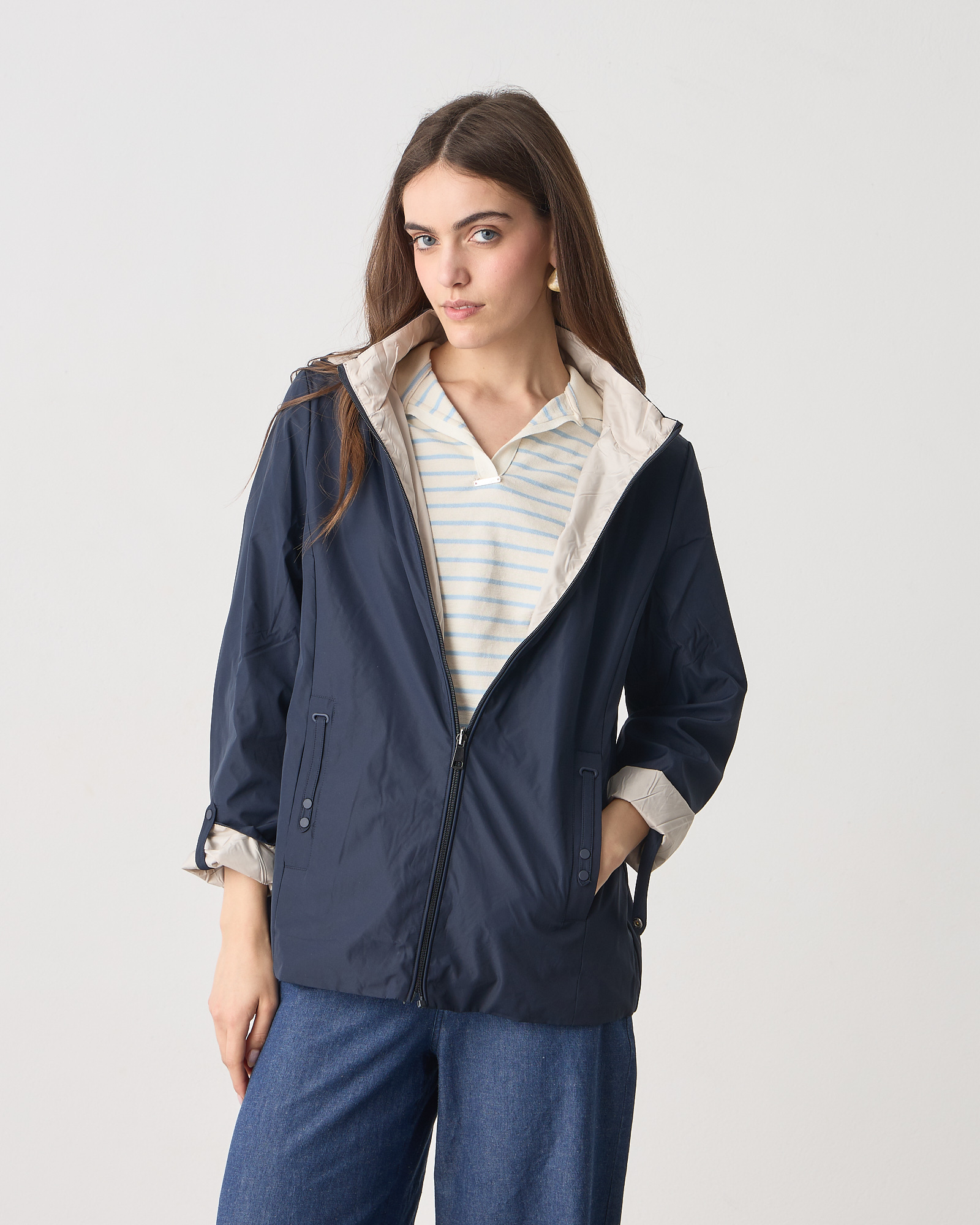 Μπουφάν διπλής όψης μακρυμάνικο, κλείσιμο μπροστά με φερμουάρ, αποσπώμενη κουκούλα, σε κανονική εφαρμογή