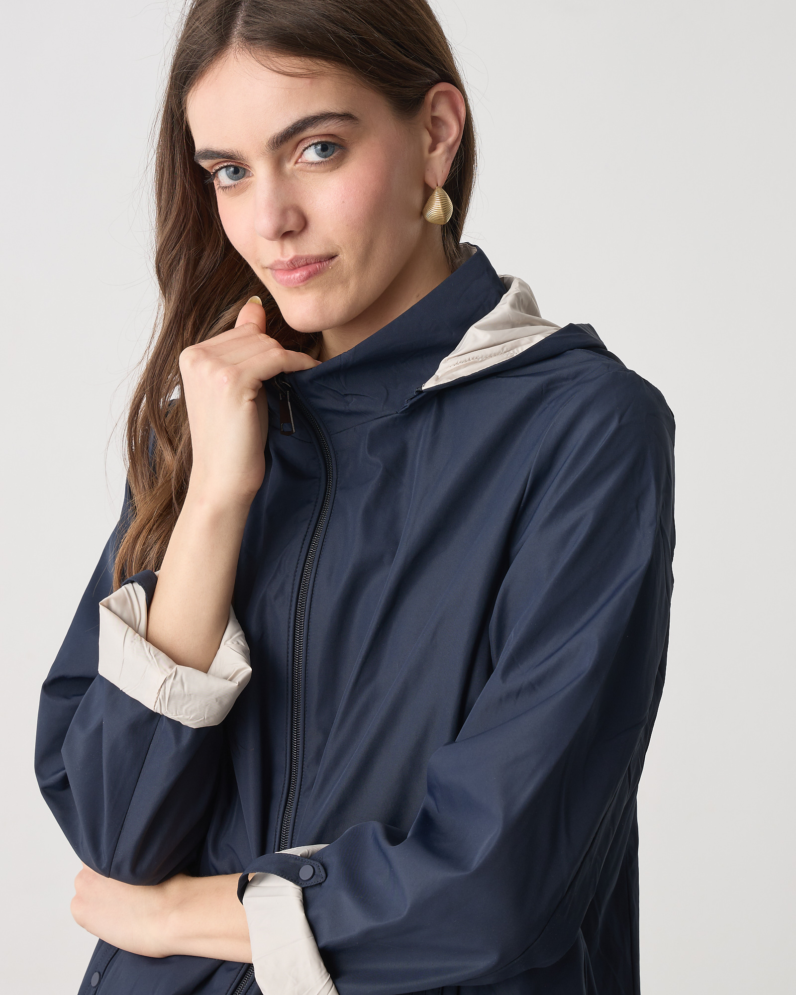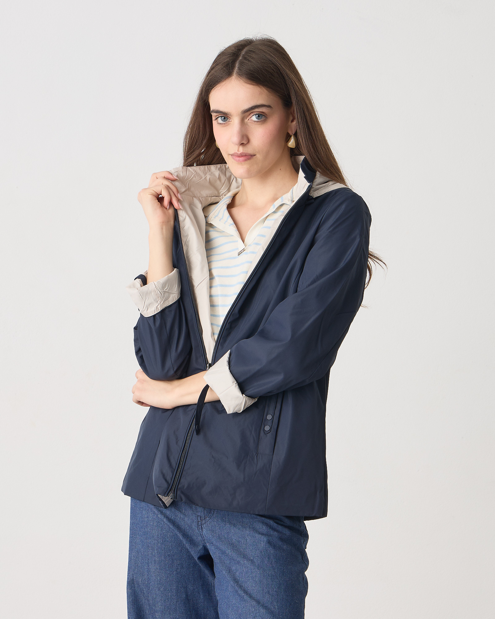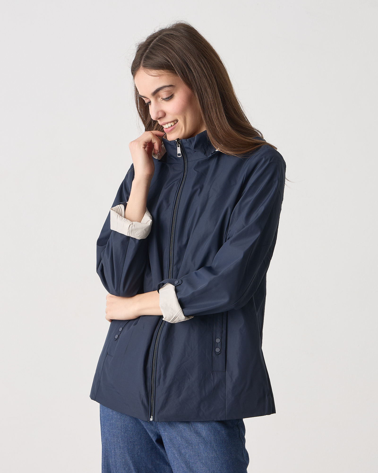 Μπουφάν διπλής όψης μακρυμάνικο, κλείσιμο μπροστά με φερμουάρ, αποσπώμενη κουκούλα, σε κανονική εφαρμογή
