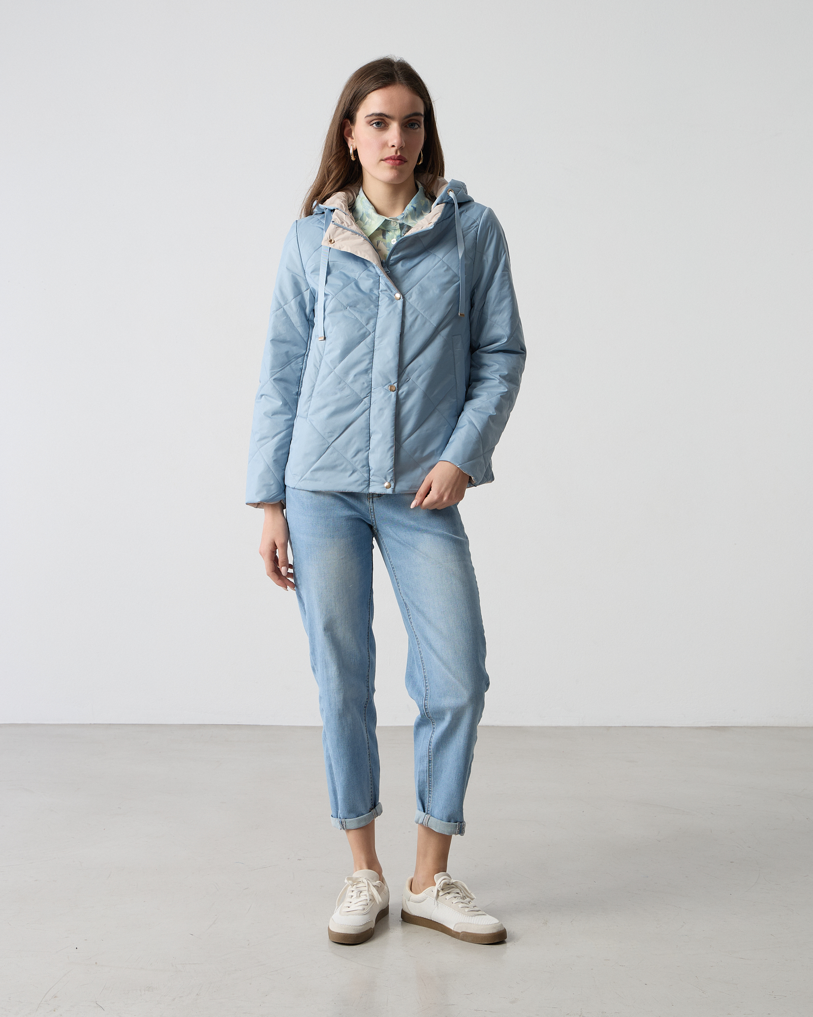 Μπουφάν με κουκούλα και κορδόνια, κλείσιμο μπροστά με φερμουάρ και κουμπιά, μακριά μανίκια, ελαφρύ, σε κανονική γραμμή