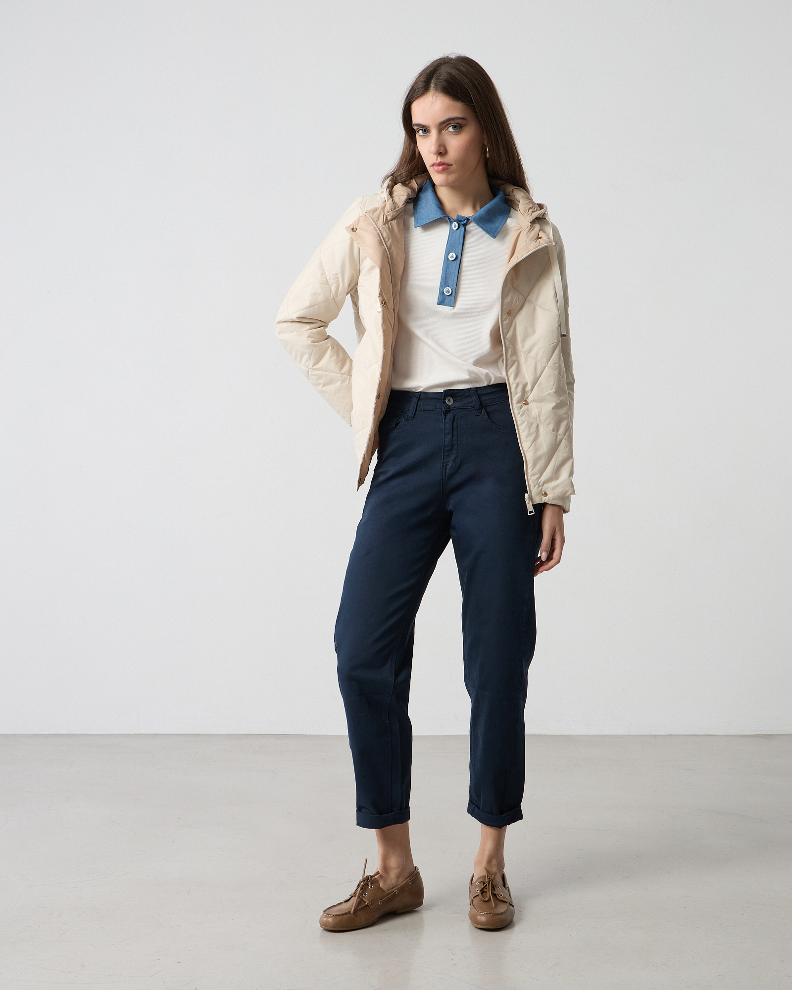 Μπουφάν με κουκούλα και κορδόνια, κλείσιμο μπροστά με φερμουάρ και κουμπιά, μακριά μανίκια, ελαφρύ, σε κανονική γραμμή