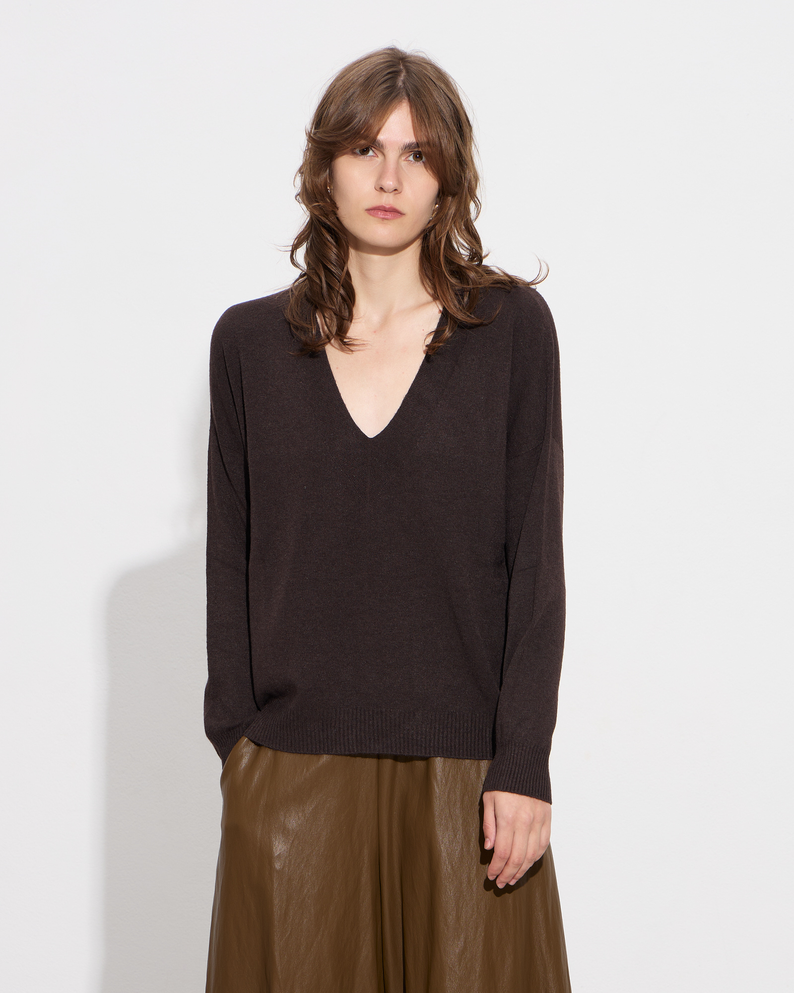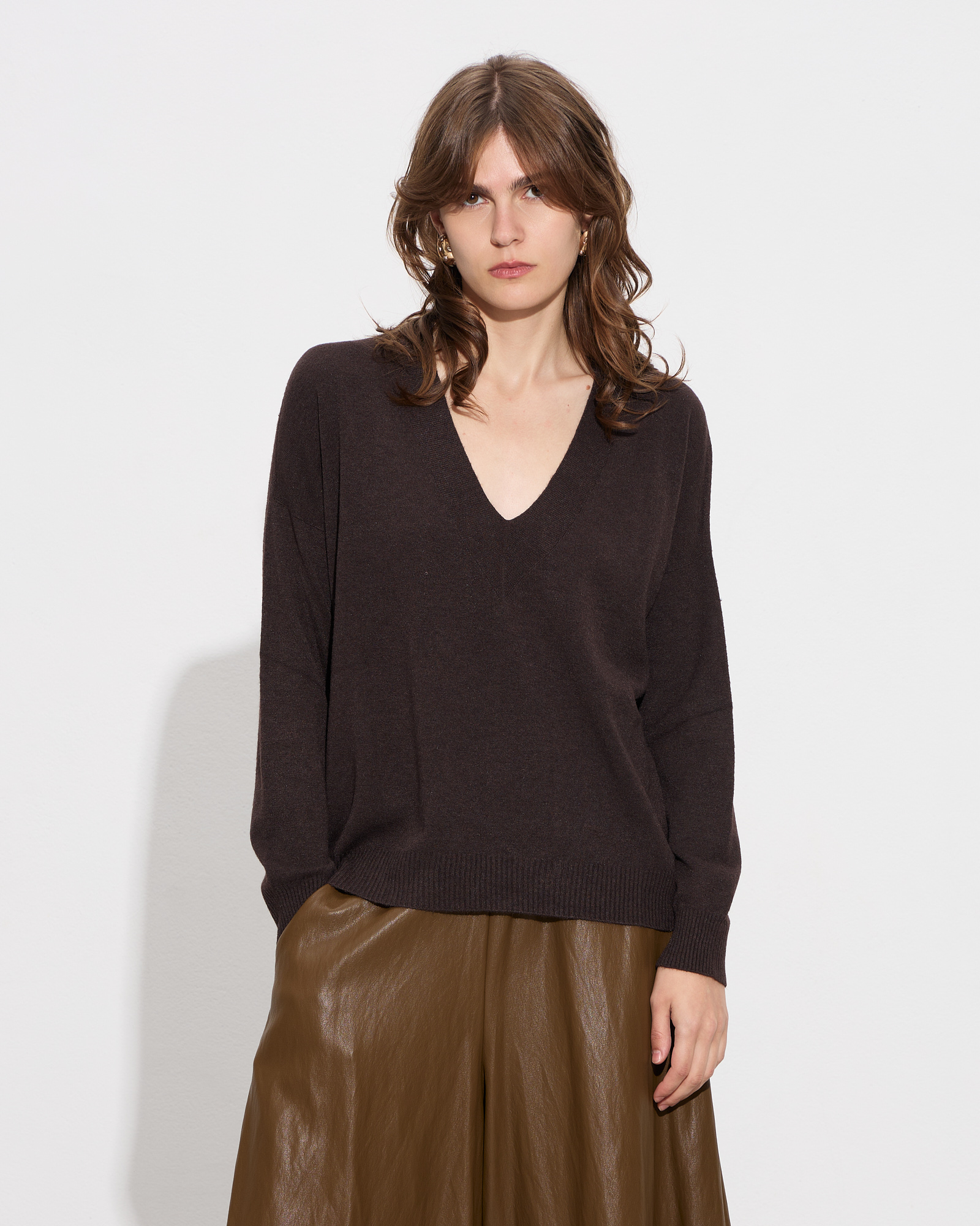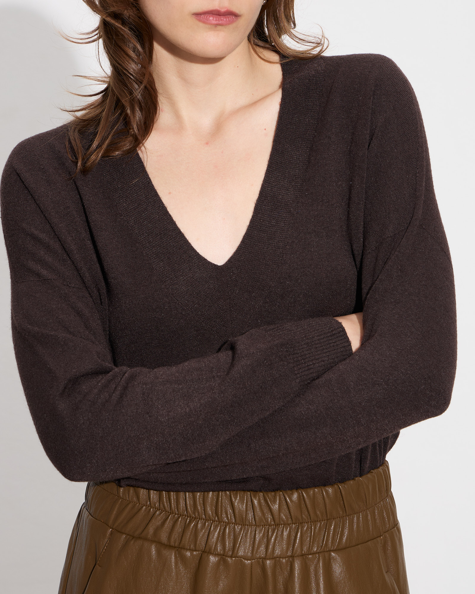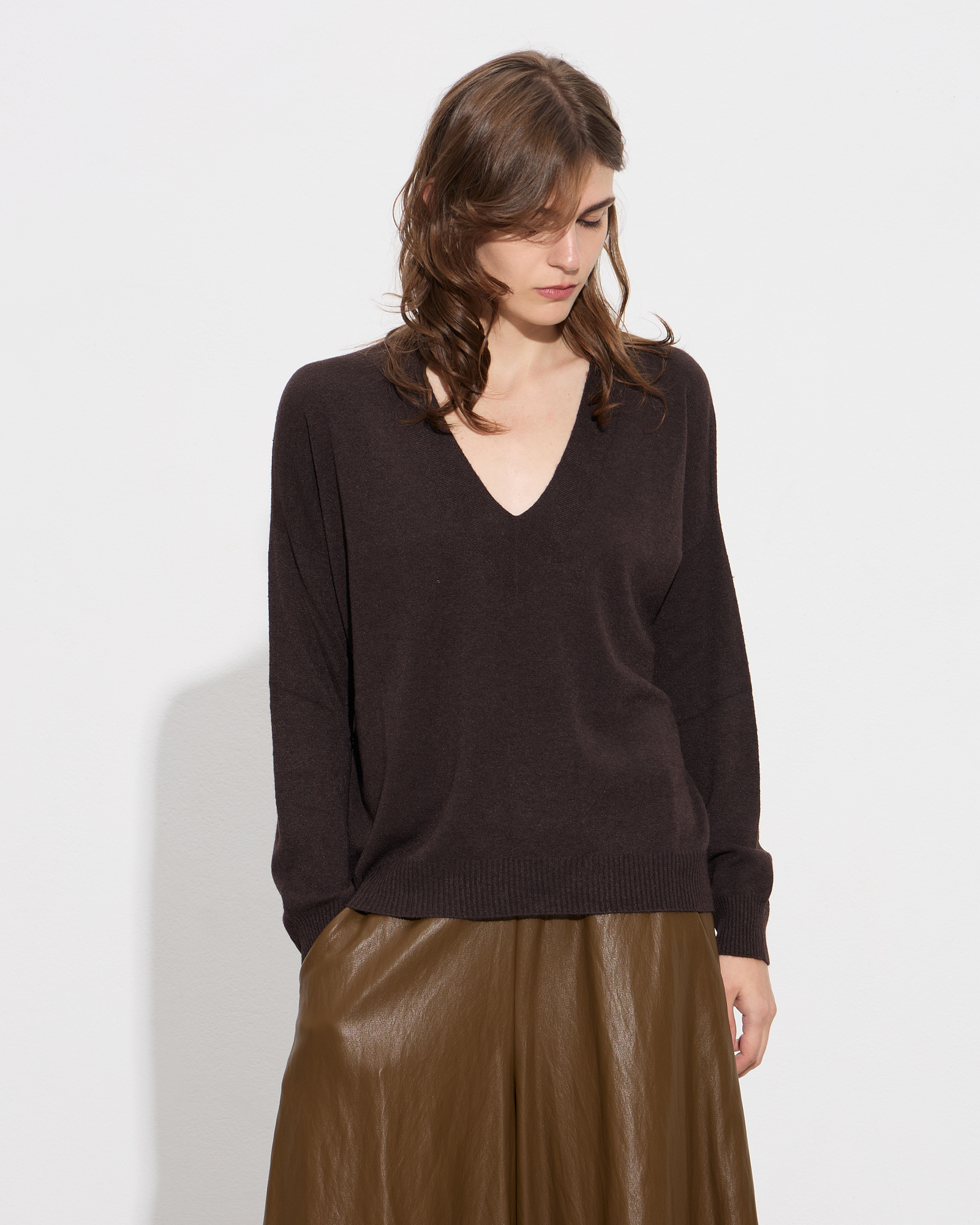 Πουλόβερ με V λαιμόκοψη, μακρύ μανίκι, απαλή υφή, σε κανονική γραμμή