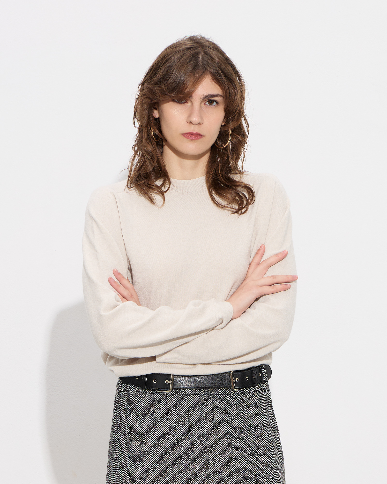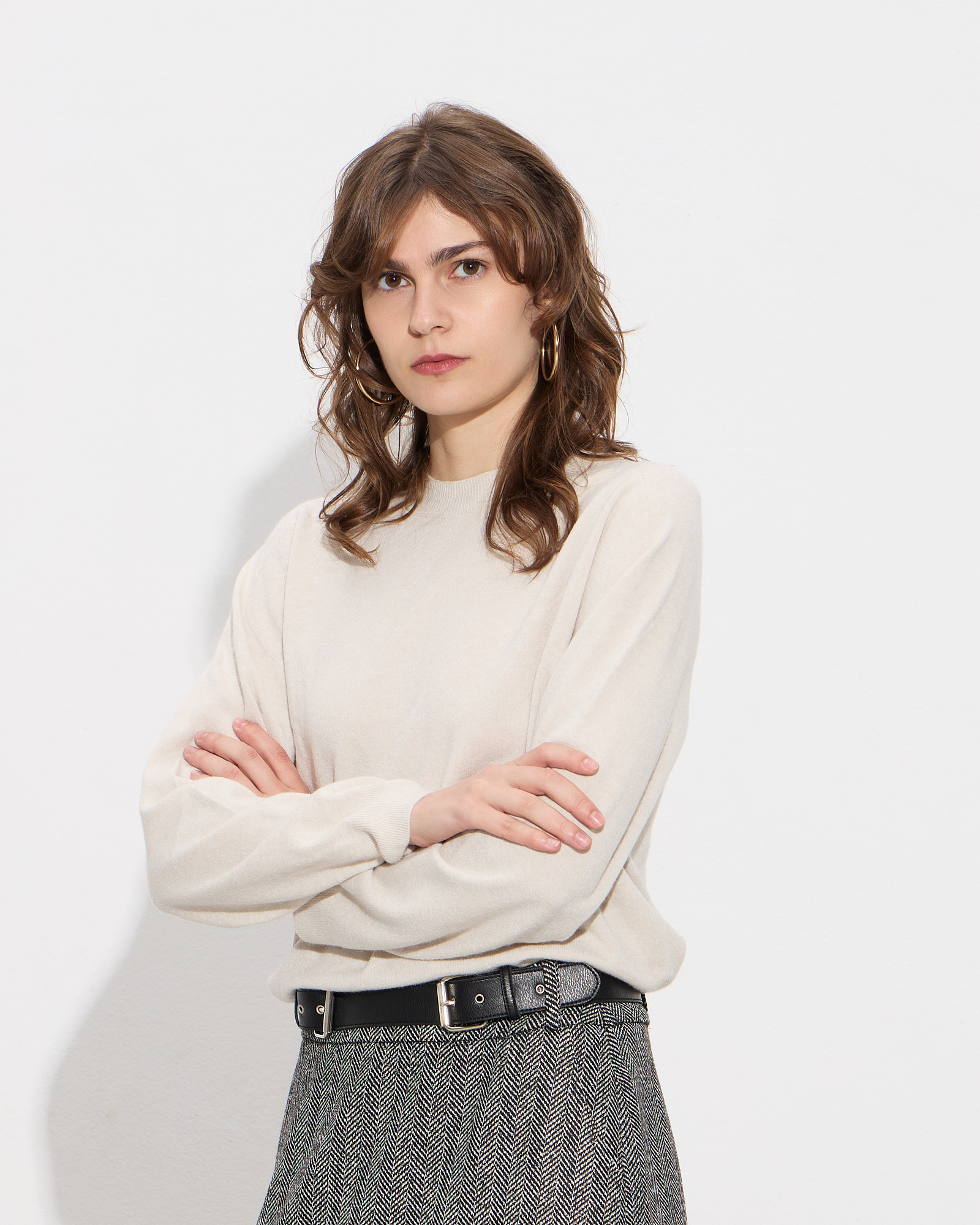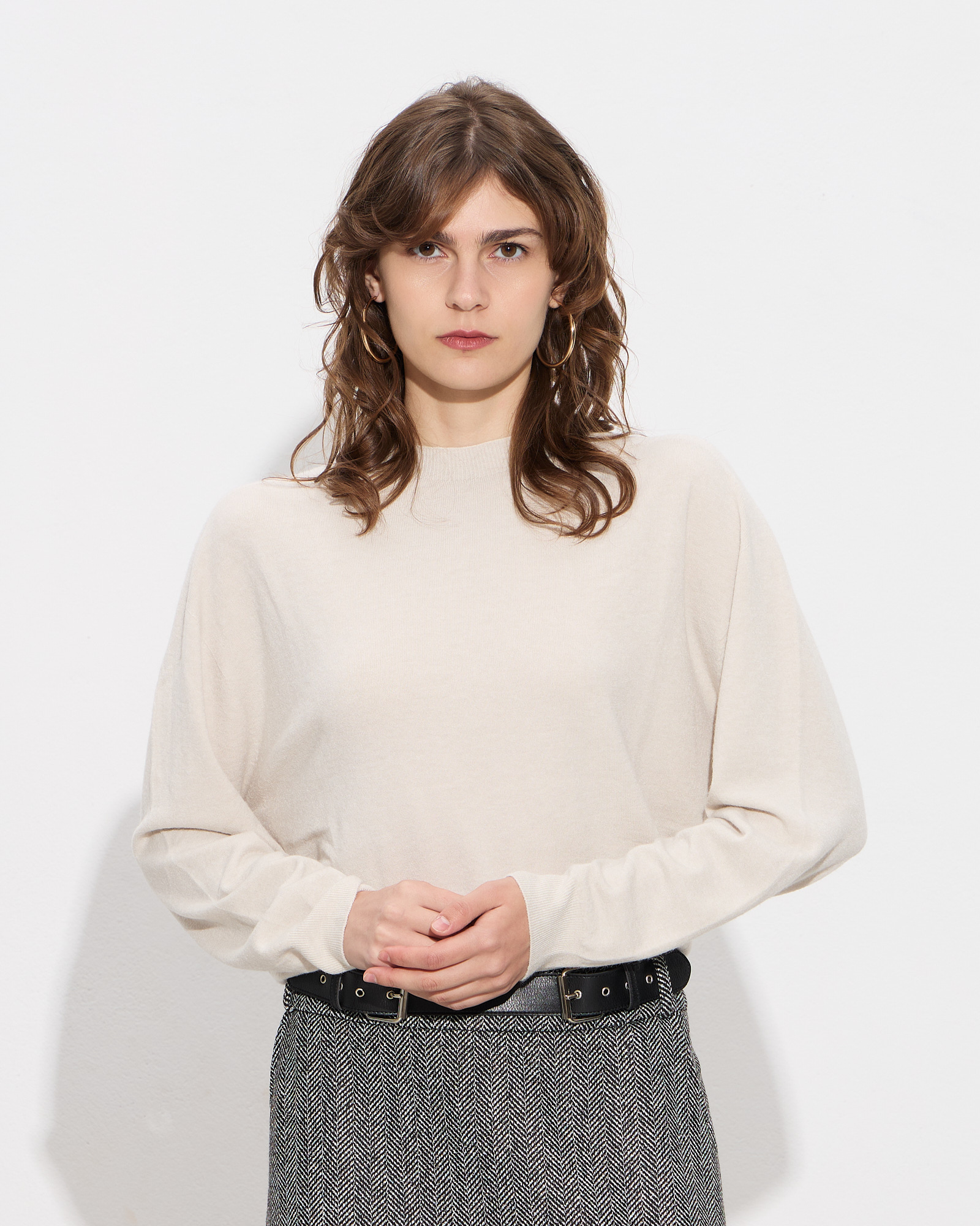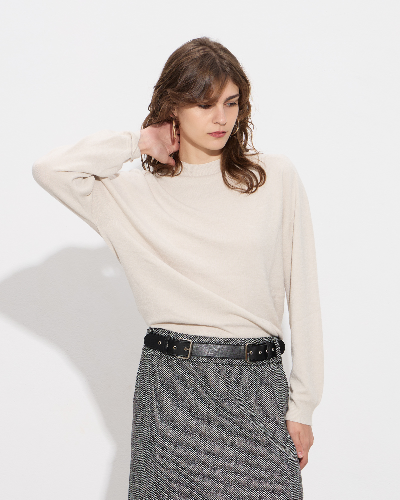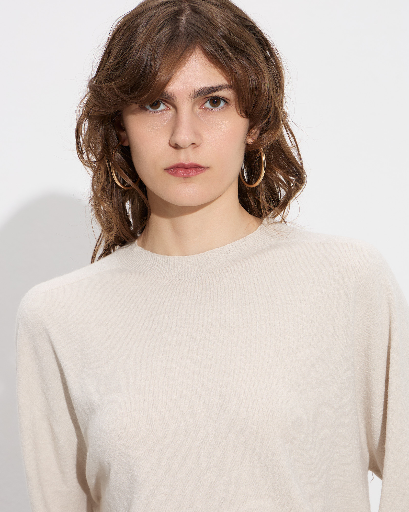 Μπλούζα πλεκτή μακρυμάνικη με στρογγυλή λαιμόκοψη σε άνετη εφαρμογή