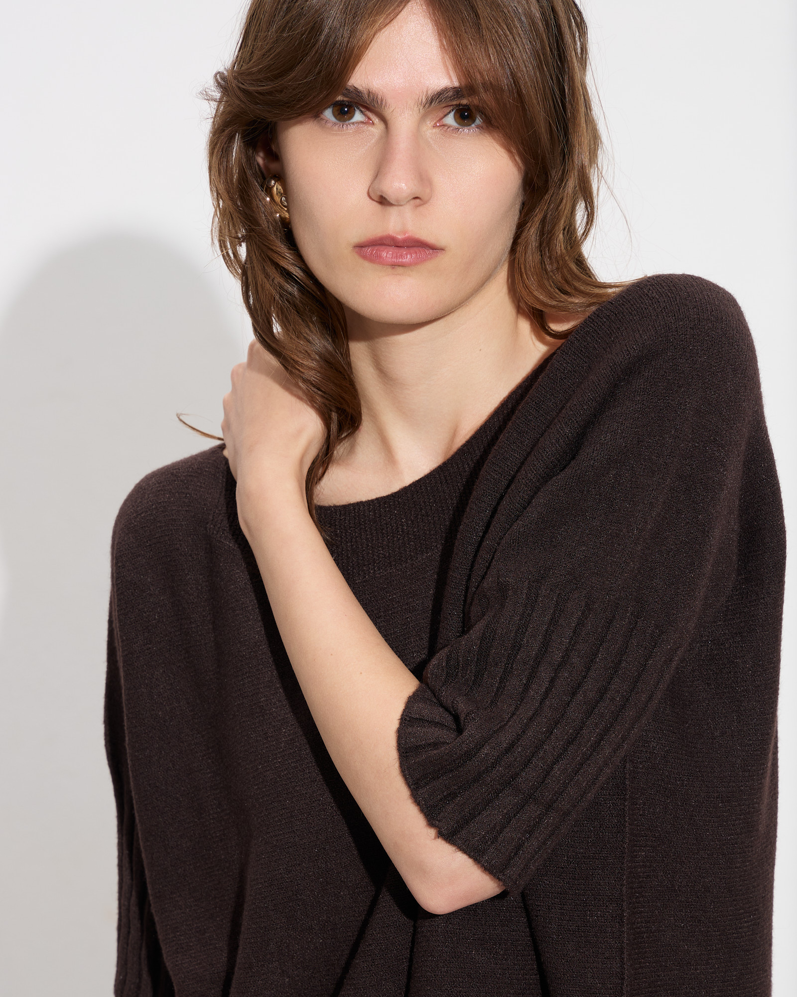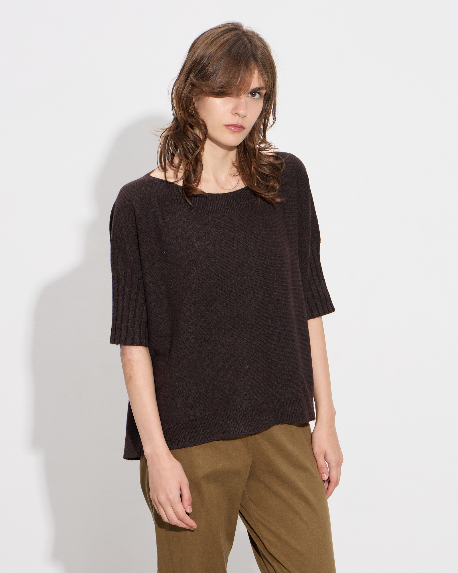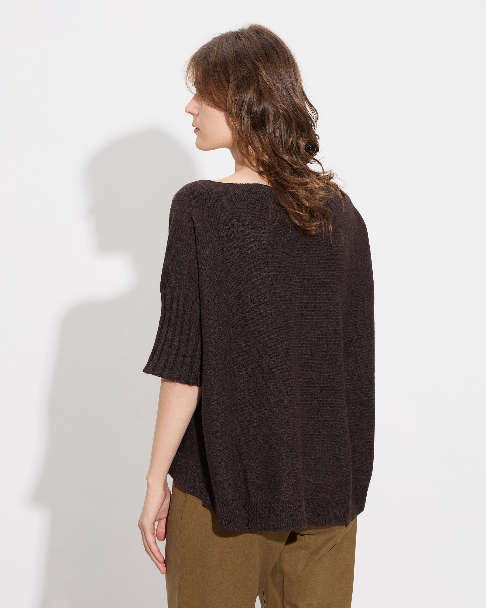 Πουλόβερ με λαιμόκοψη χαμόγελο, κοντό μανίκι με λεπτομέρεια ριπ, απαλή υφή, σε άνετη εφαρμογή