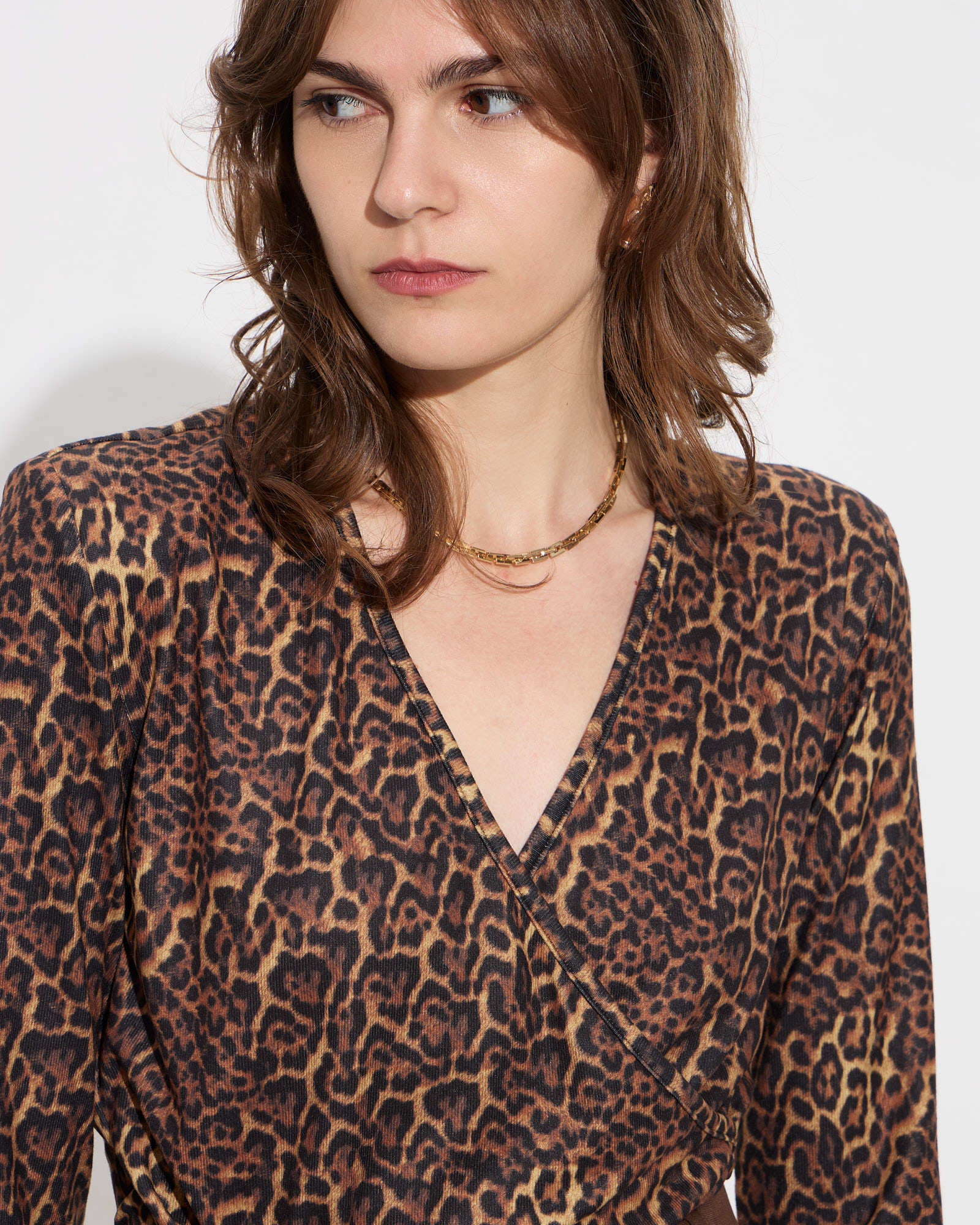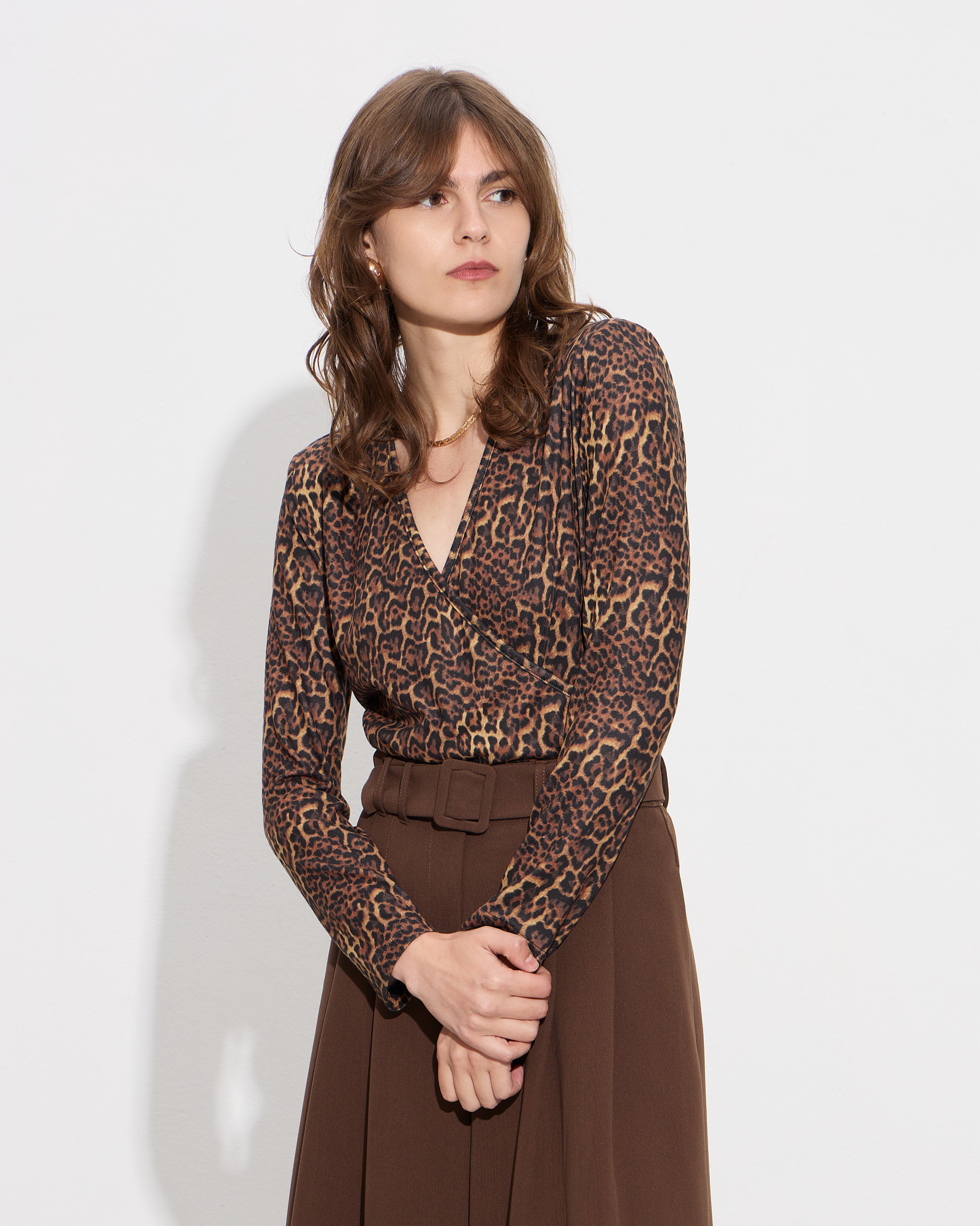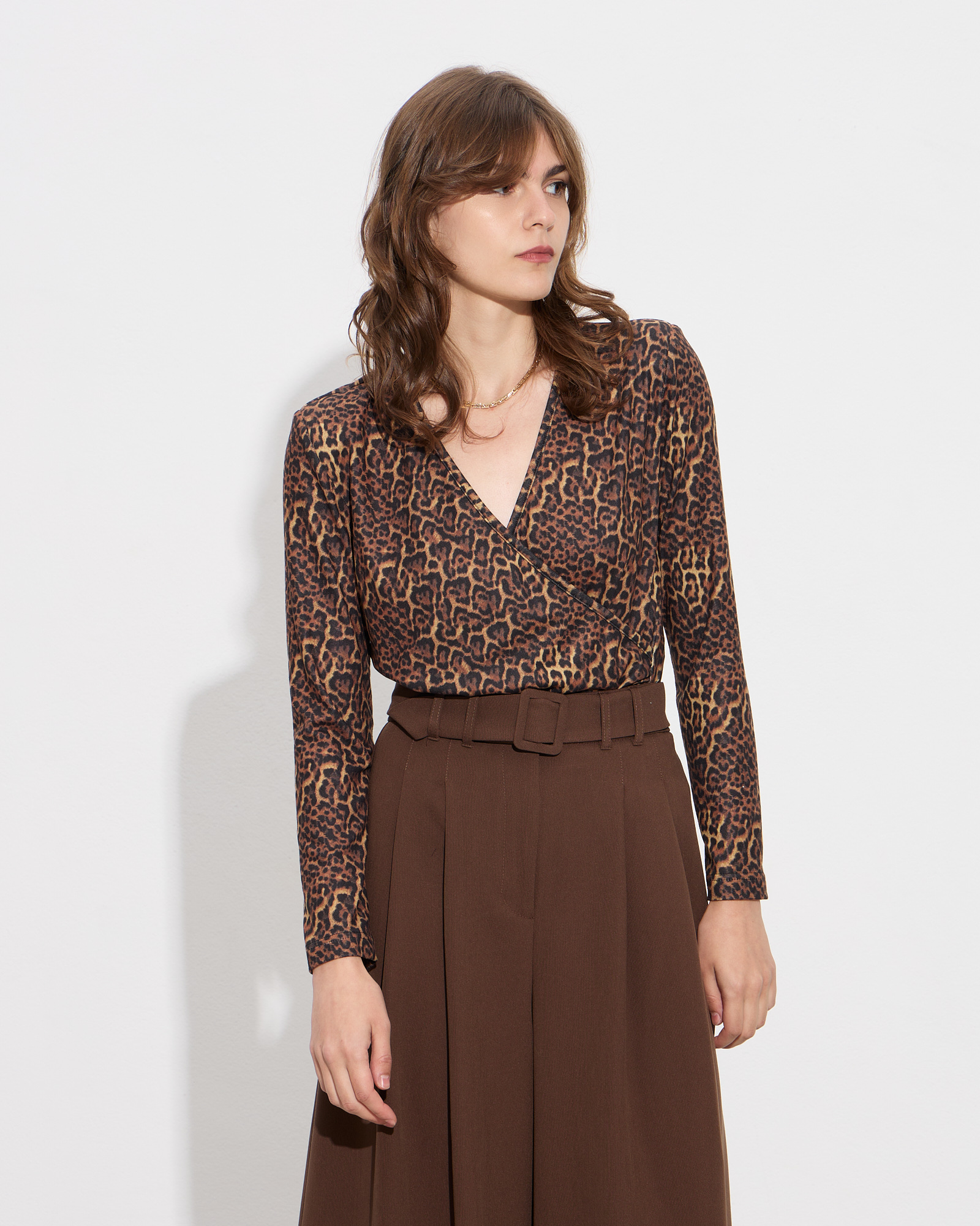 Μπλούζα κρουαζέ λεοπάρ με μακρύ μανίκι σε μαλακό ελαστικό ύφασμα, σε κανονική γραμμή