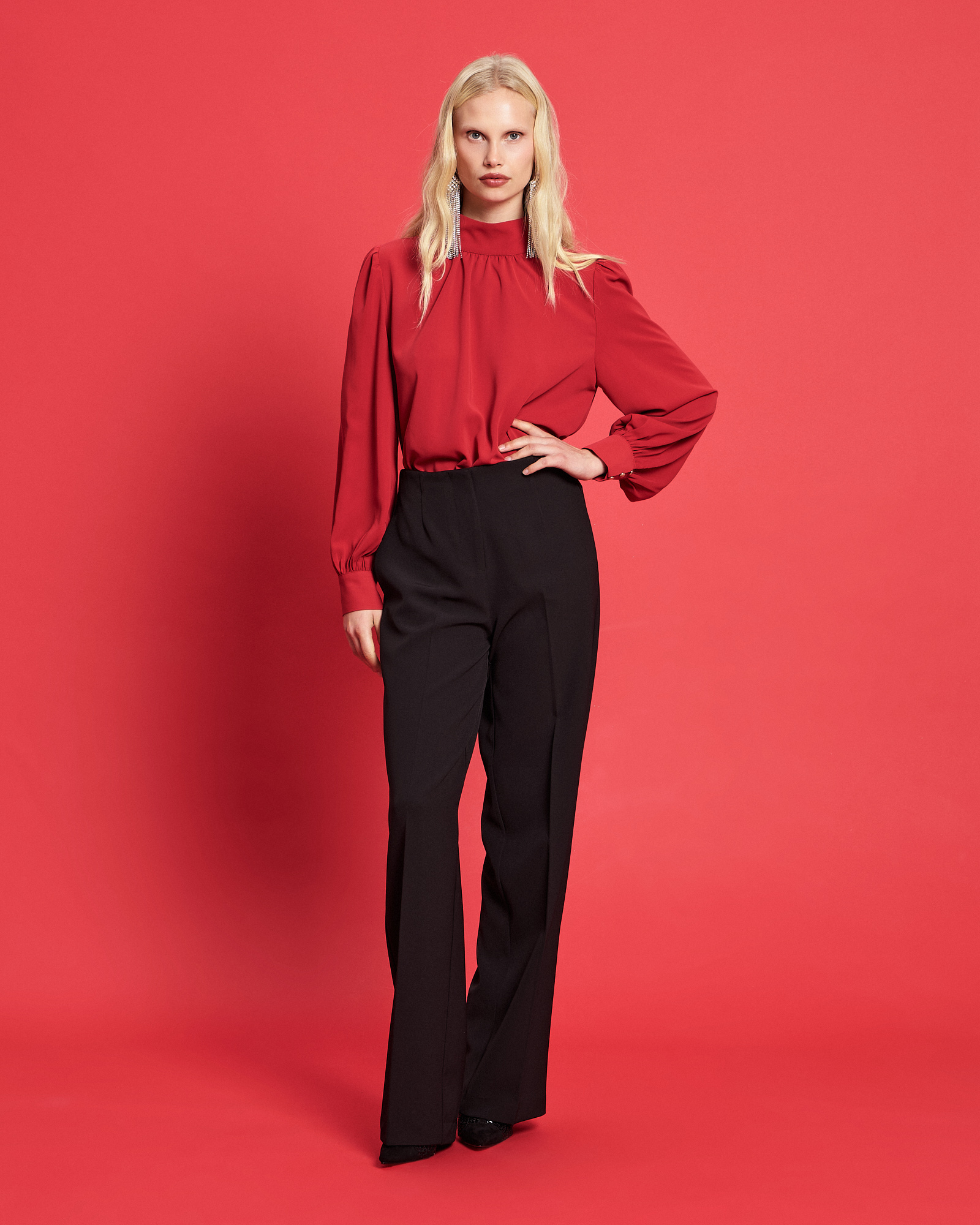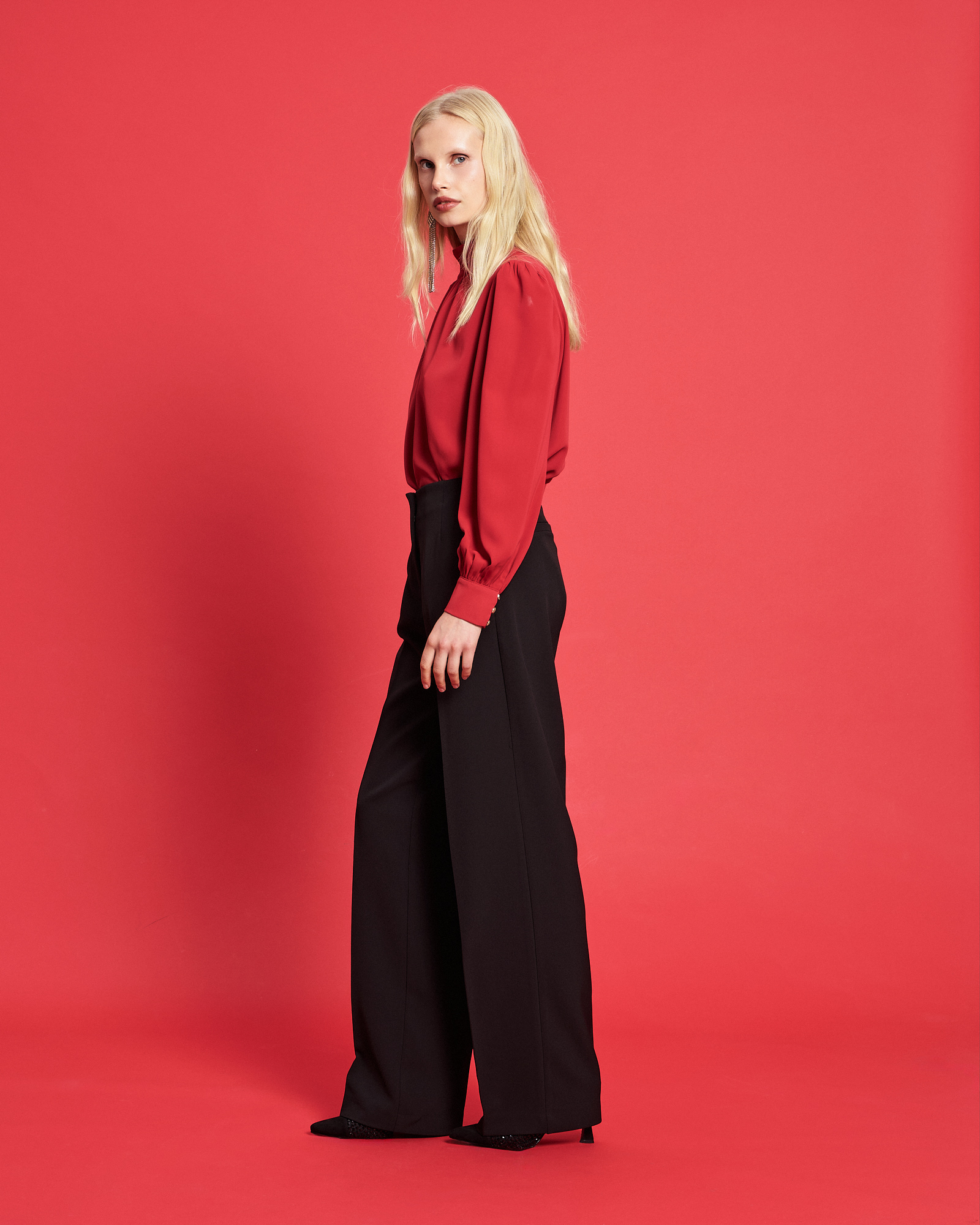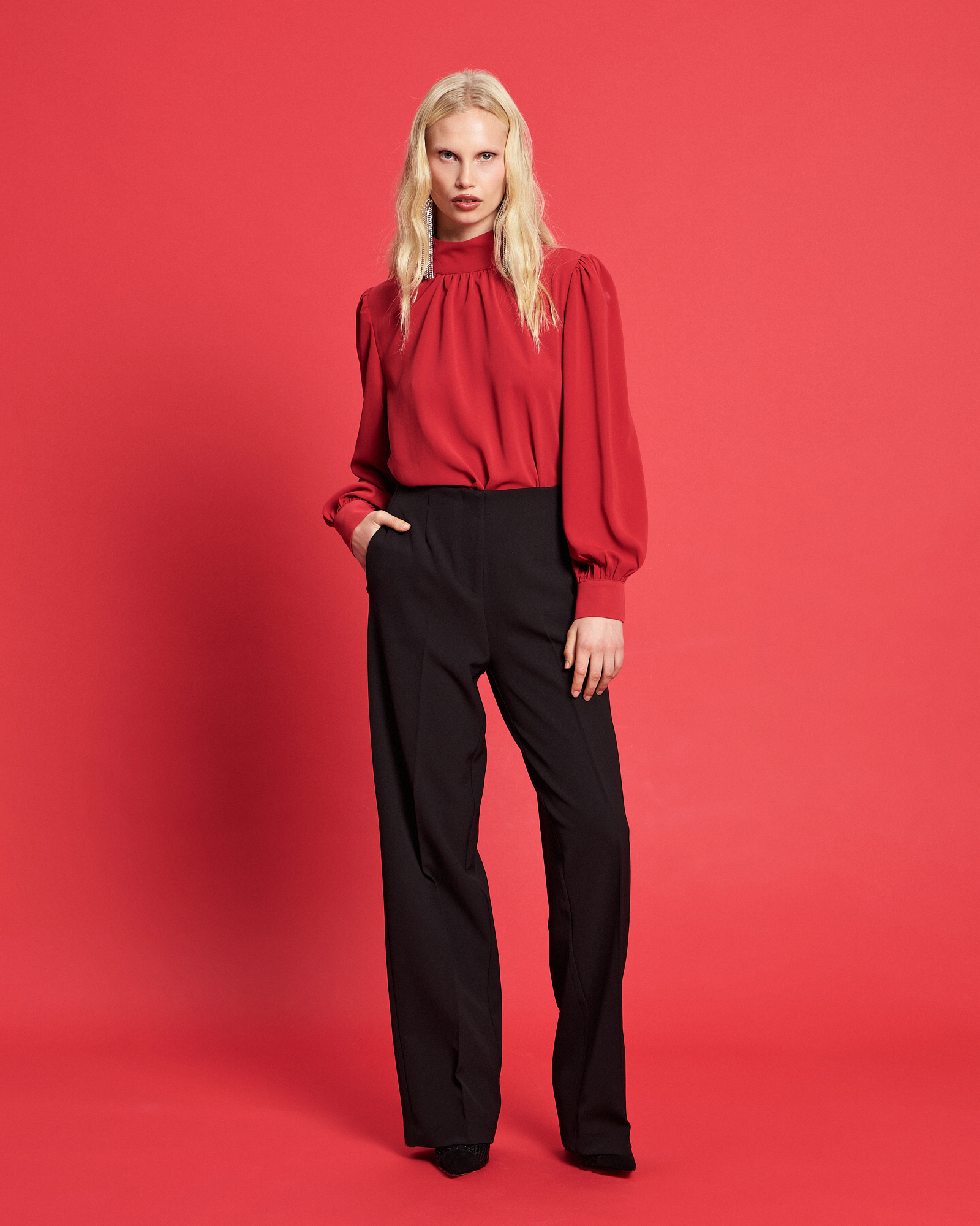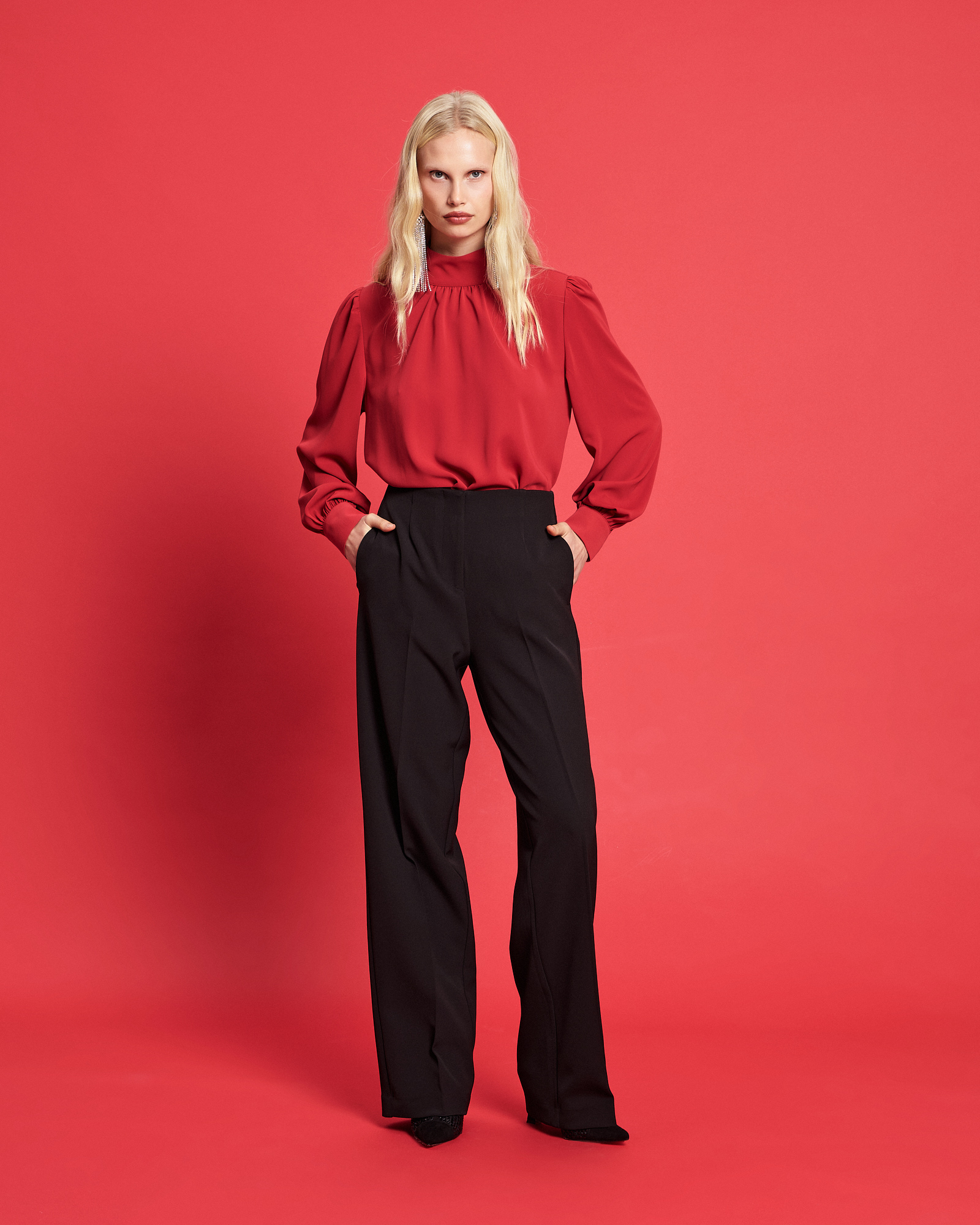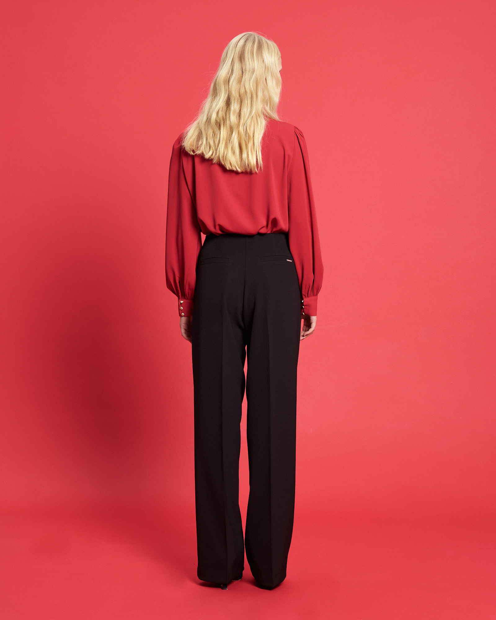 Παντελόνι ψηλόμεσο με πλαϊνές τσέπες, κλείσιμο με φερμουάρ και κόπιτσα σε wide leg γραμμή