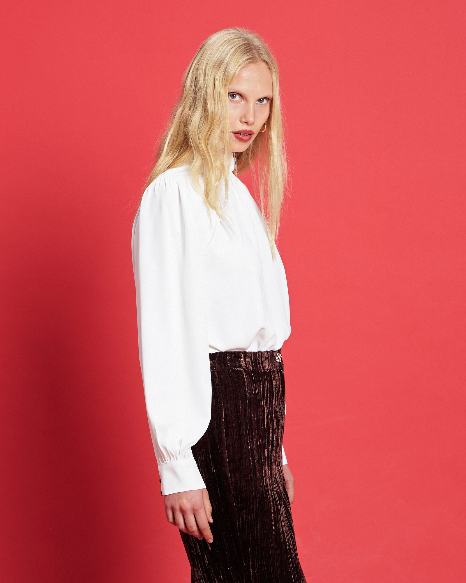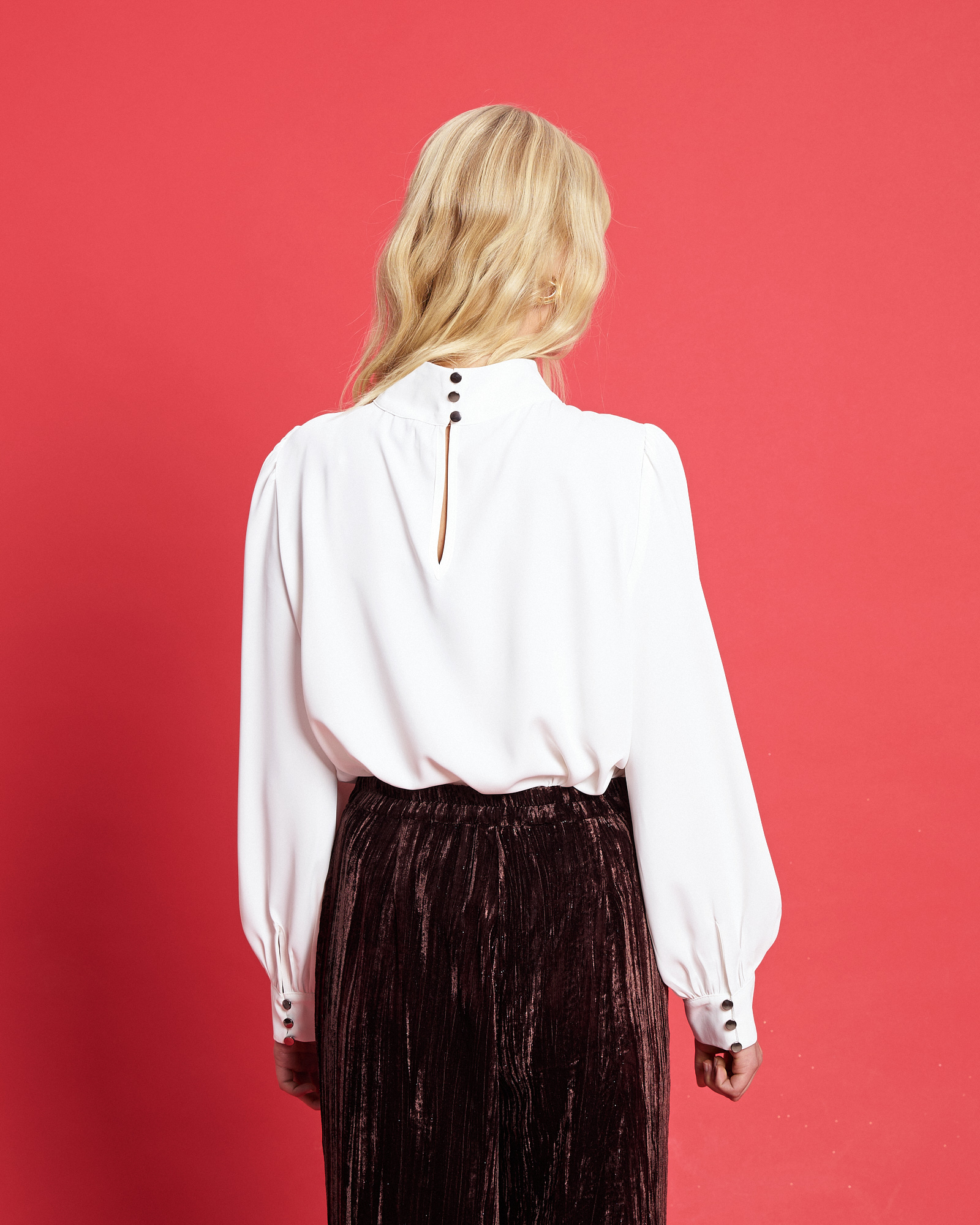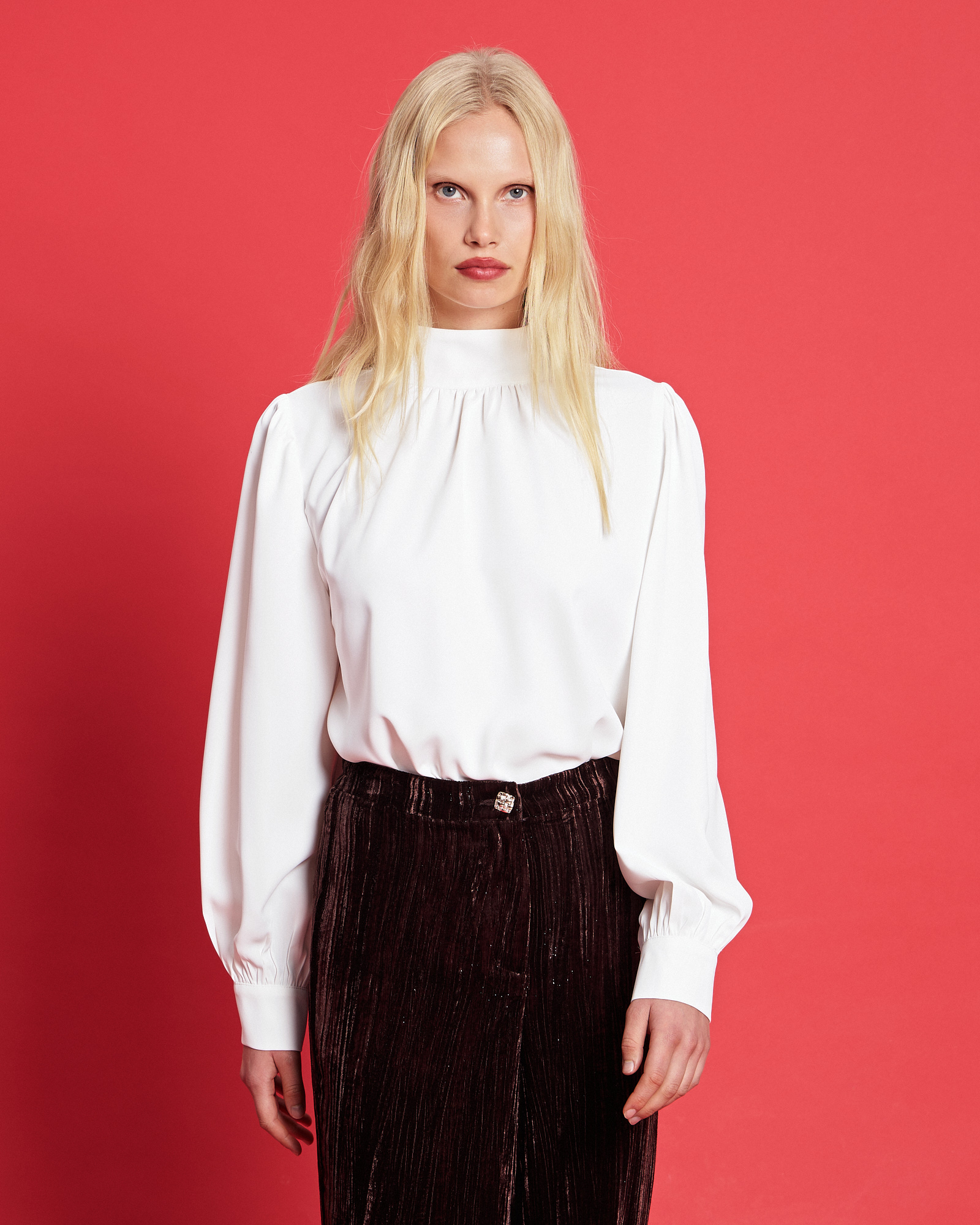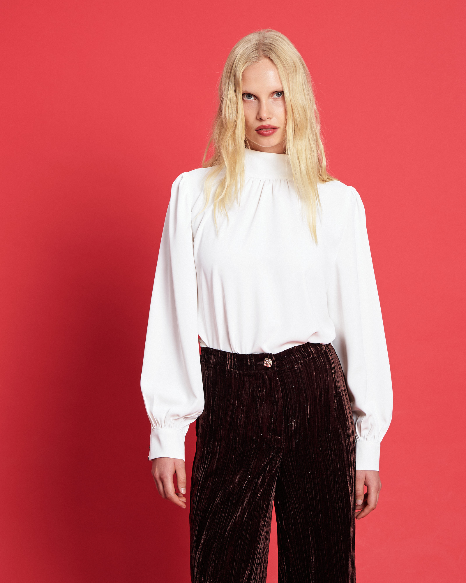 Μπλούζα με ψηλό γιακά, κλείσιμο στο πίσω μέρος, μακρύ μανίκι με μανσέτα με κουμπιά, σε κανονική γραμμή