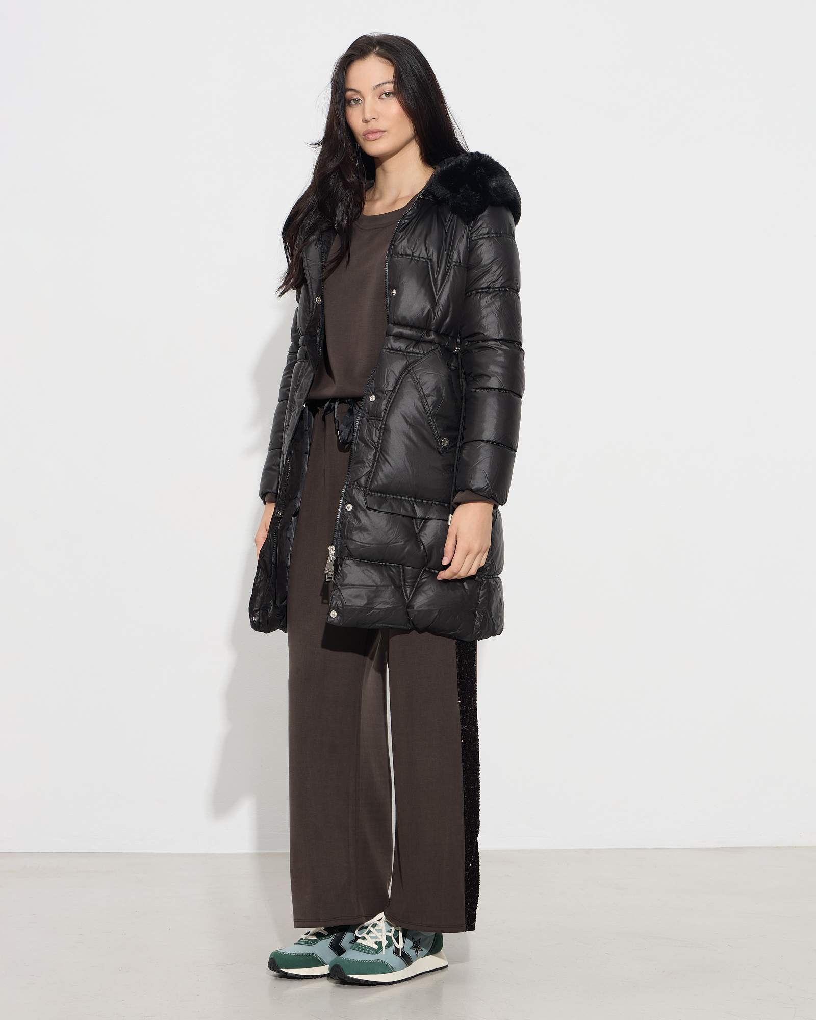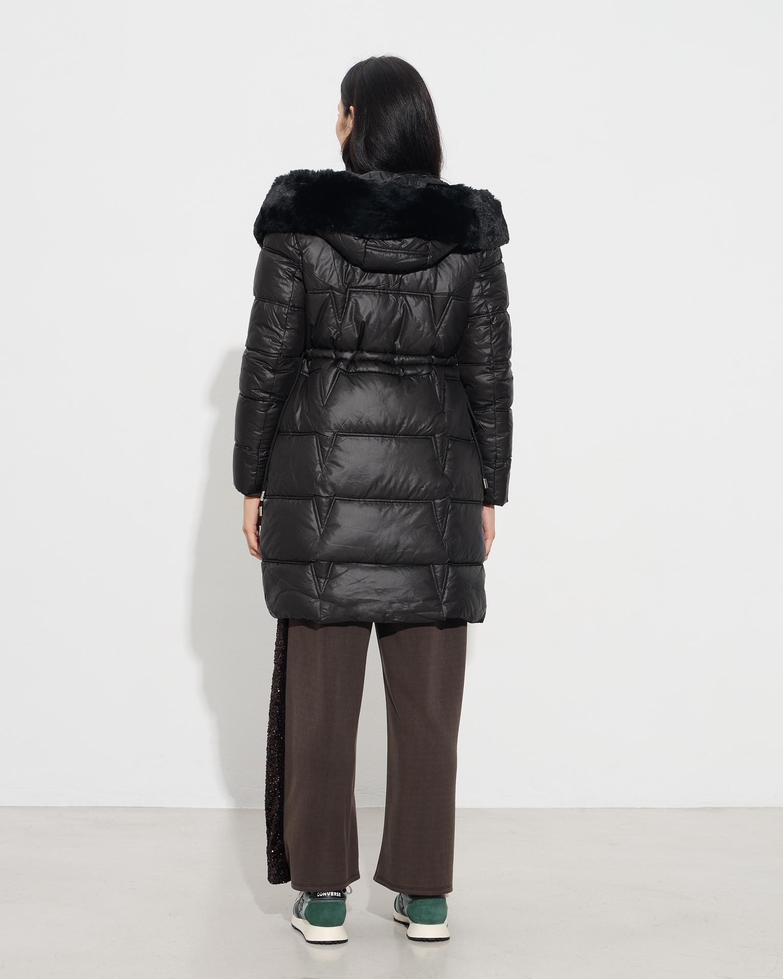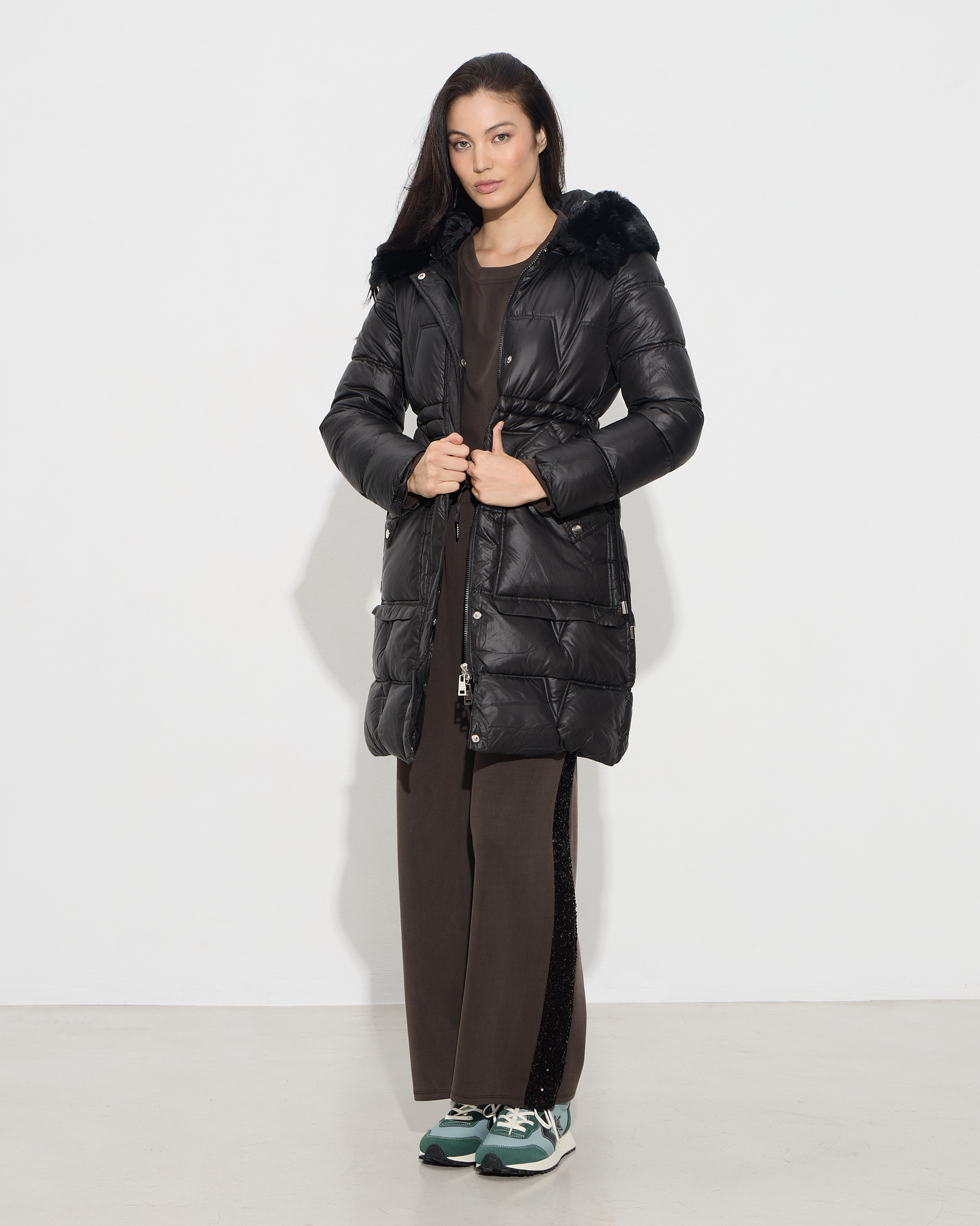 Μακρύ puffer μπουφάν με αφαιρούμενη γούνα