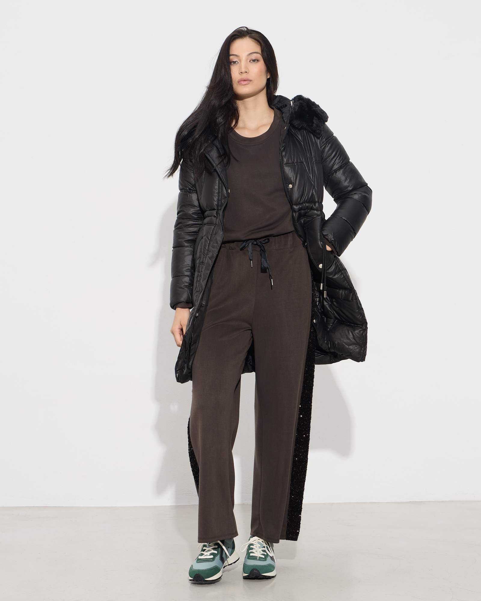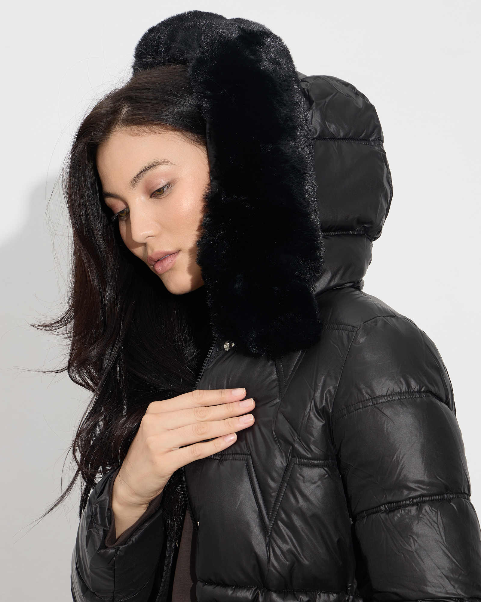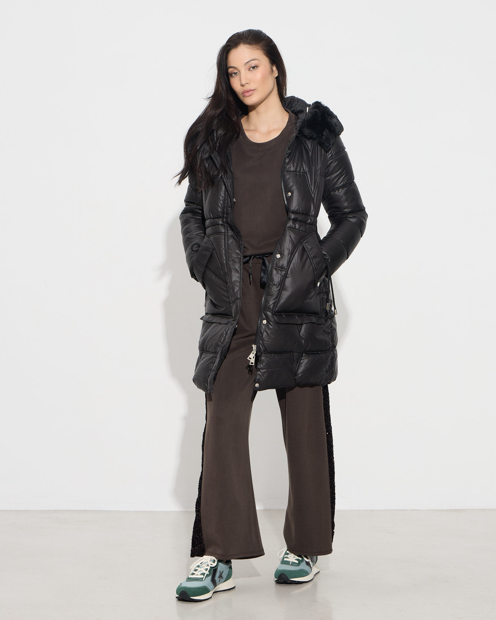 Μακρύ puffer μπουφάν με αφαιρούμενη γούνα