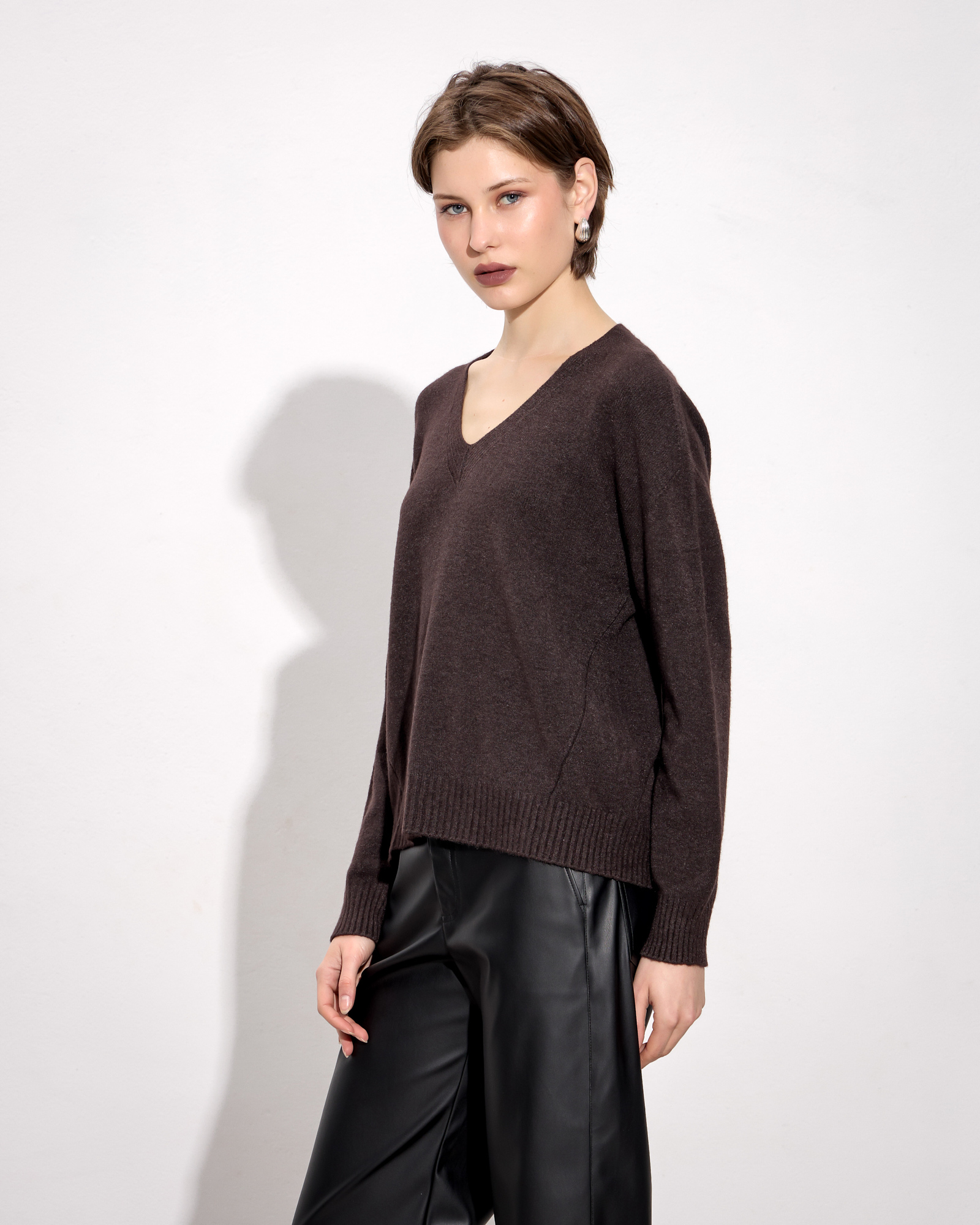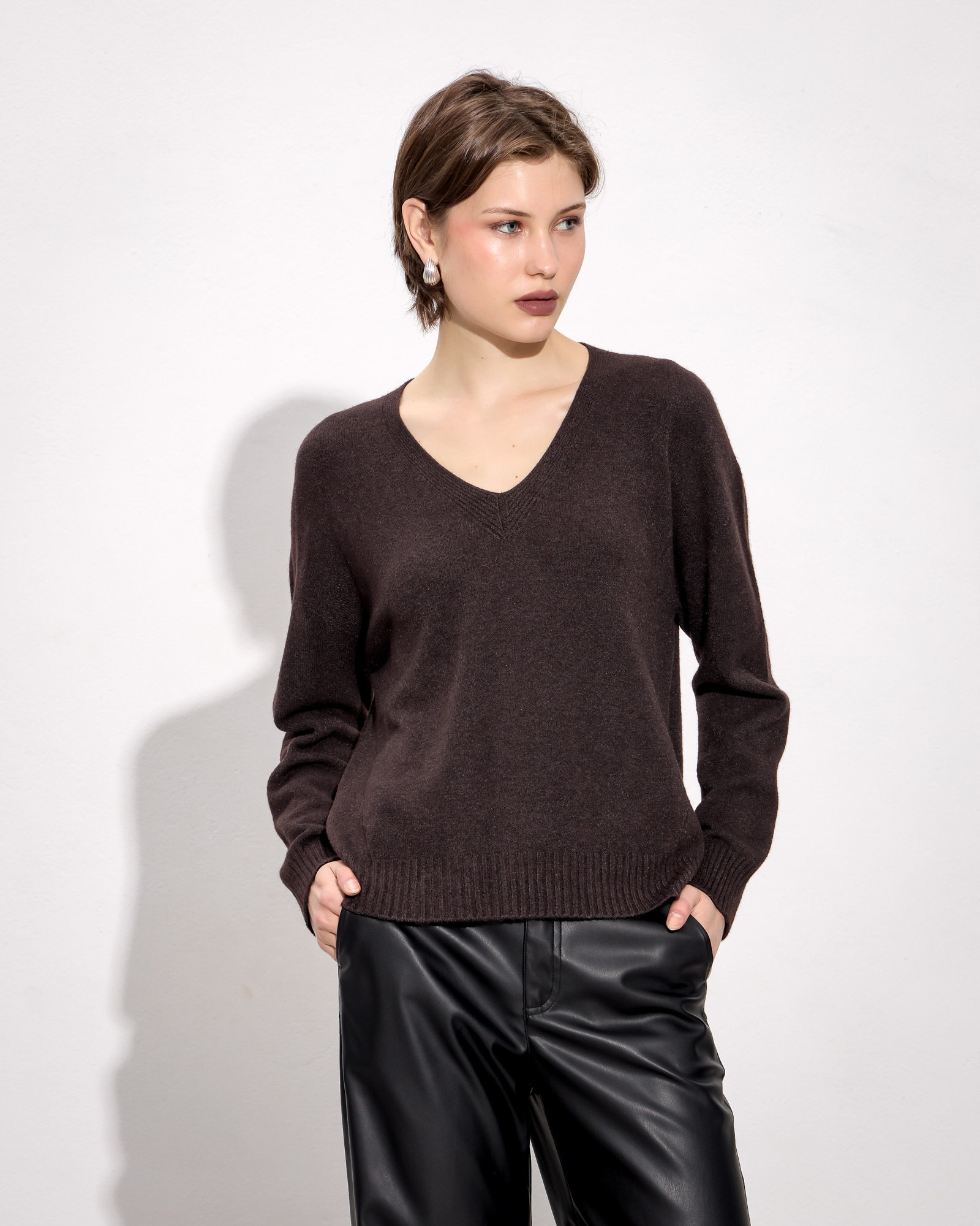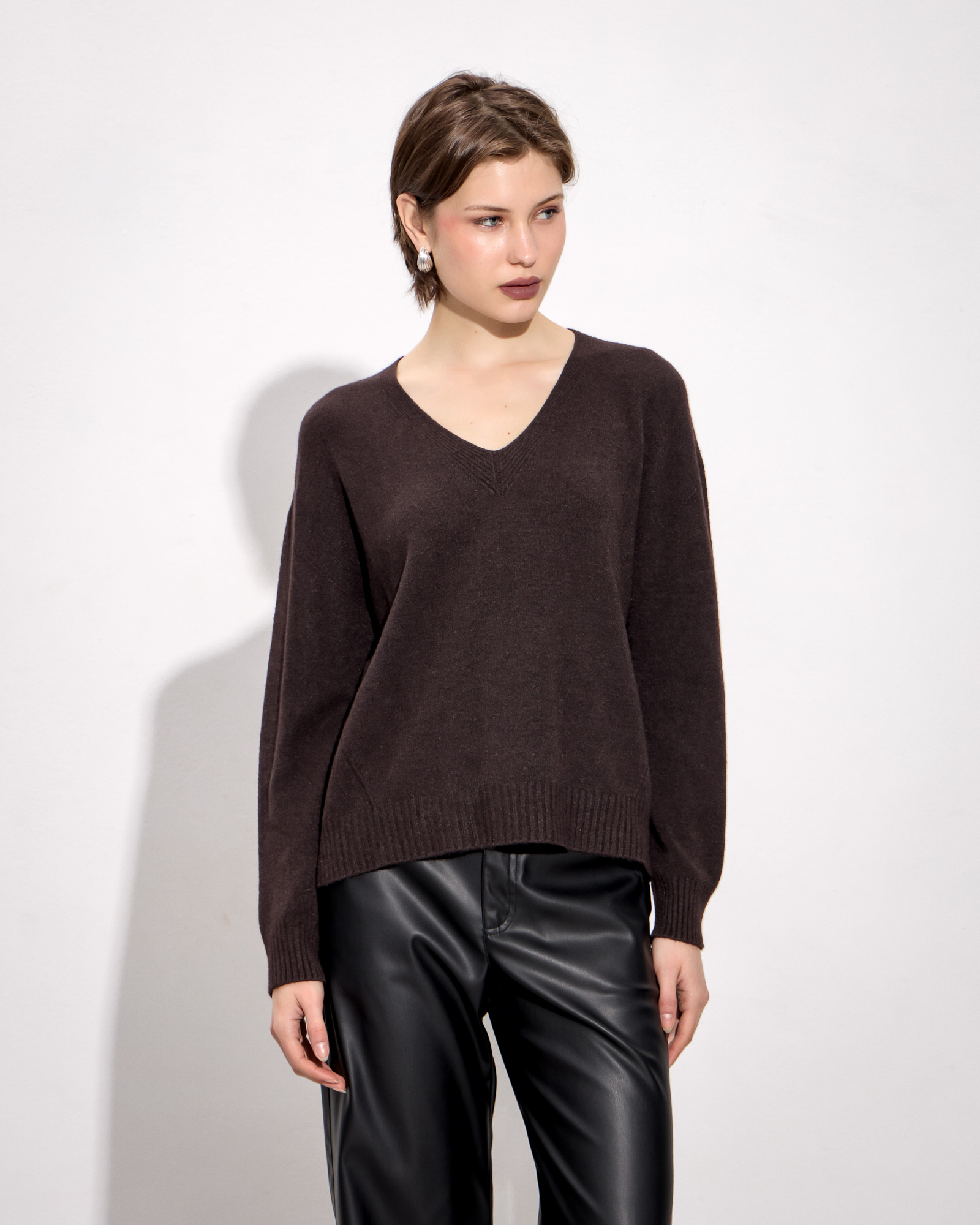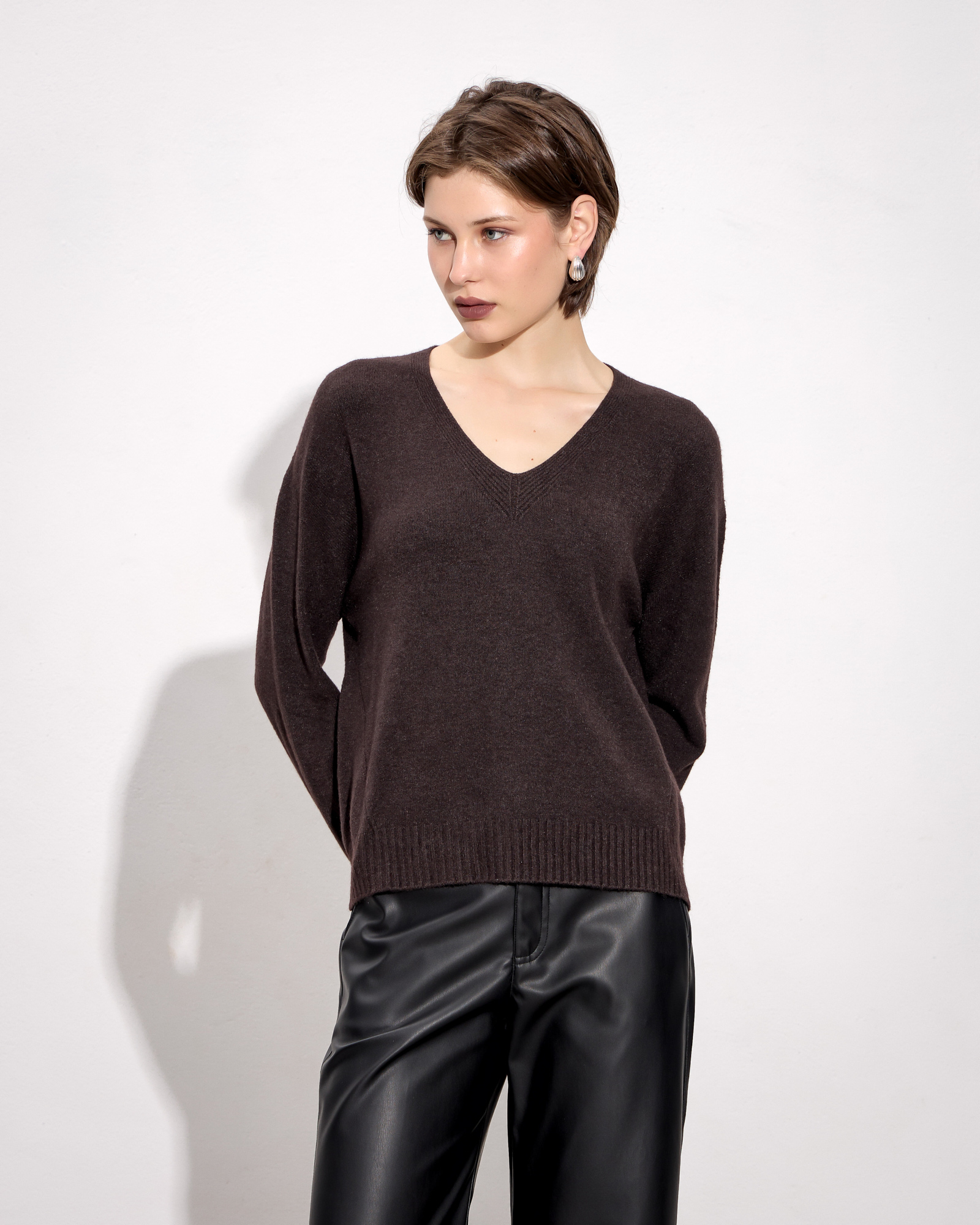 Πουλόβερ με V λαιμόκοψη, μακρύ μανίκι, απαλή υφή, σε κανονική γραμμή