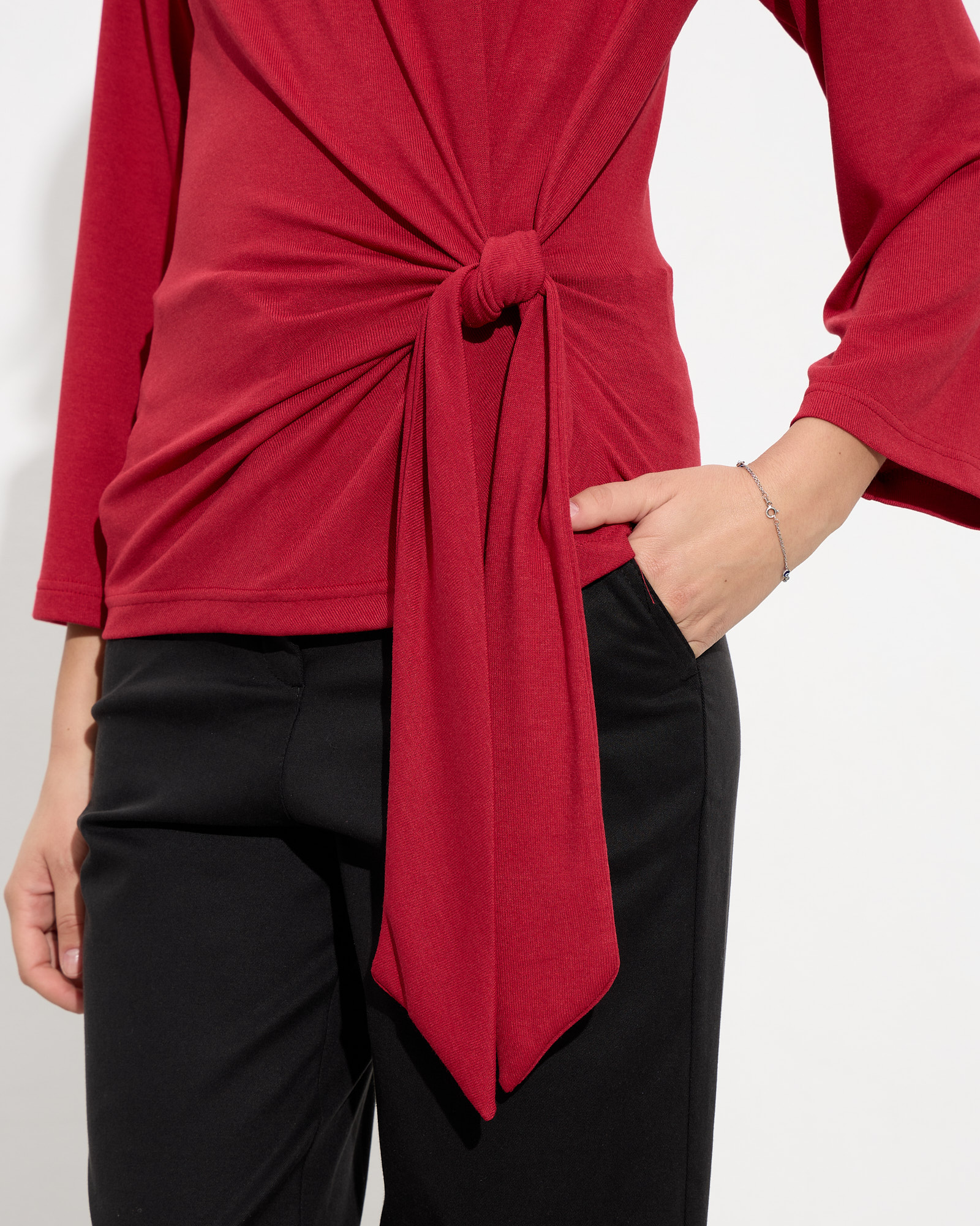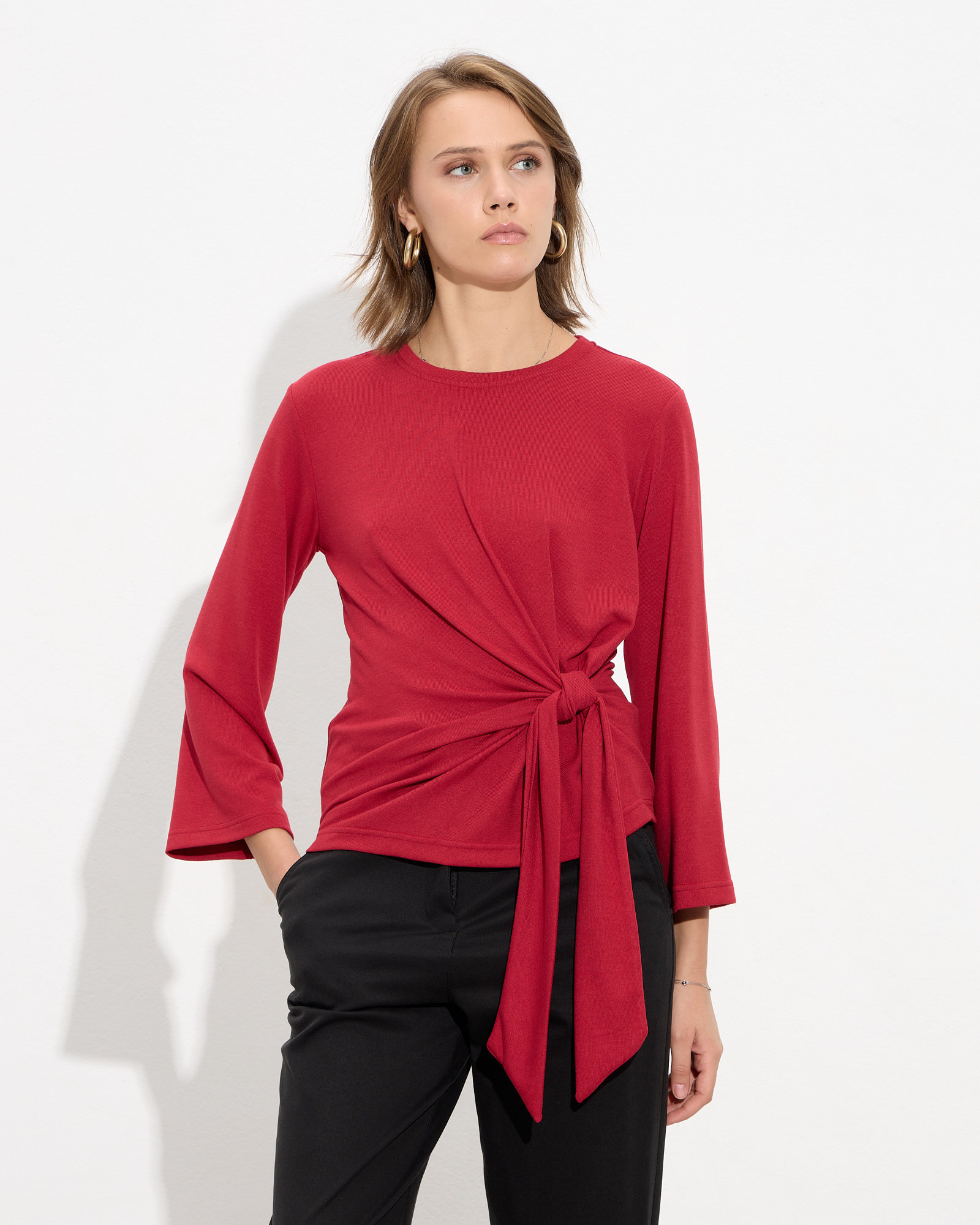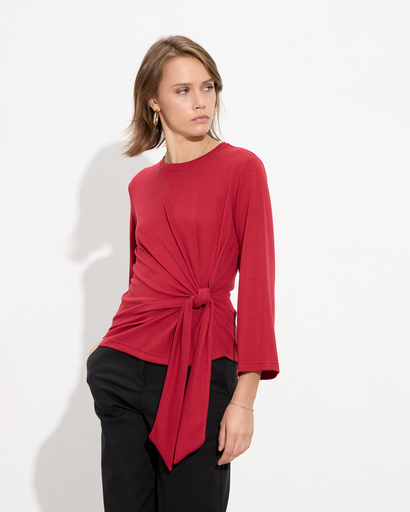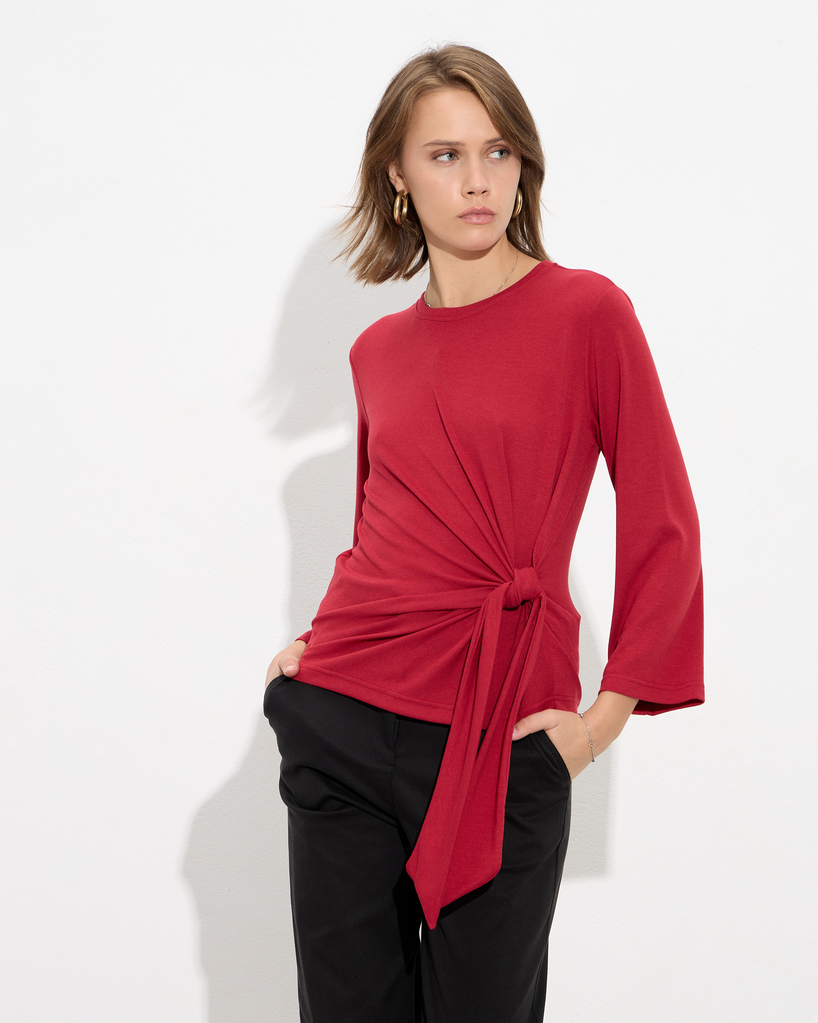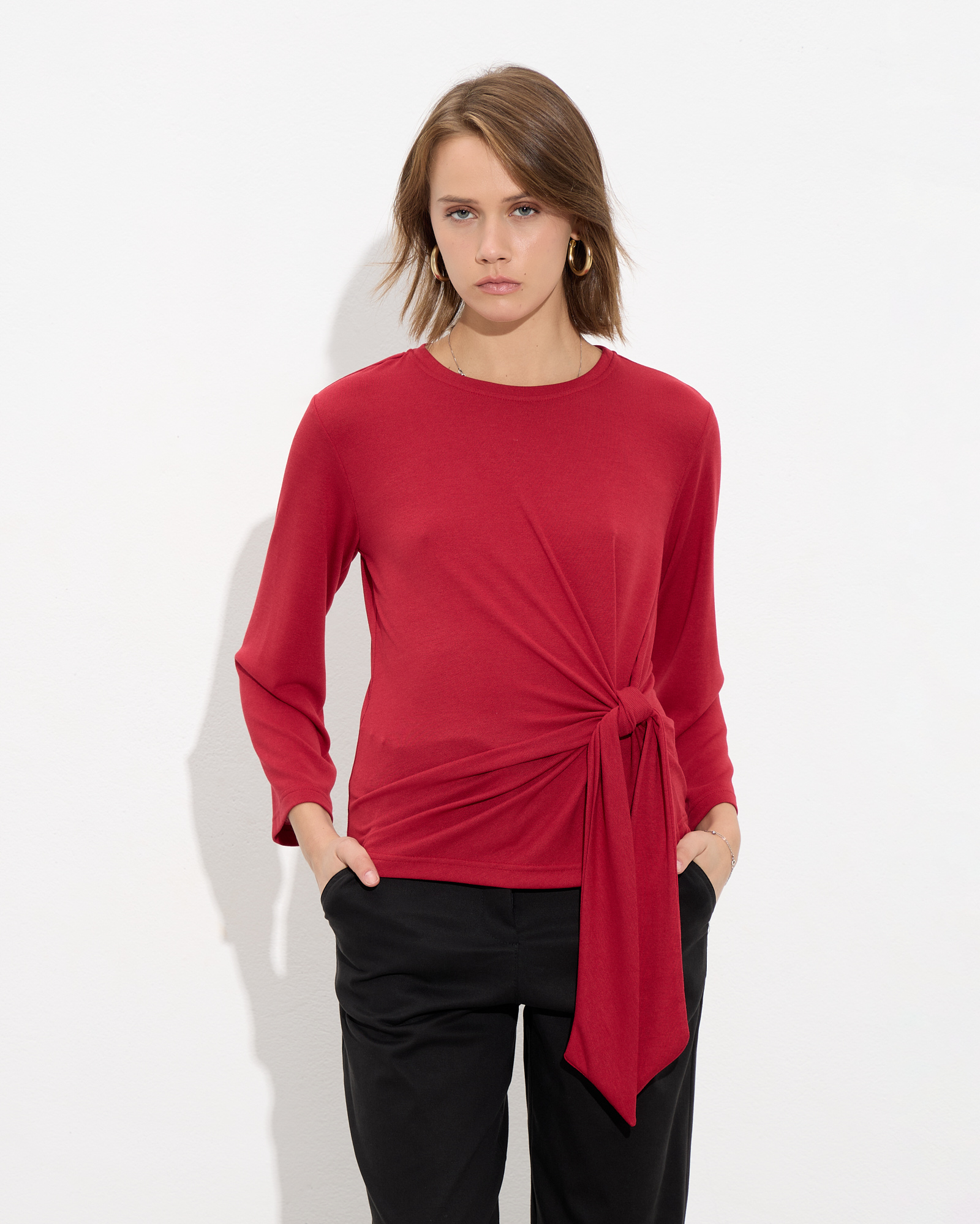 Μπλούζα μακρυμάνικη με στρογγυλή λαιμόκοψη, δέσιμο στη μέση σε μαλακό και ελαστικό ύφασμα