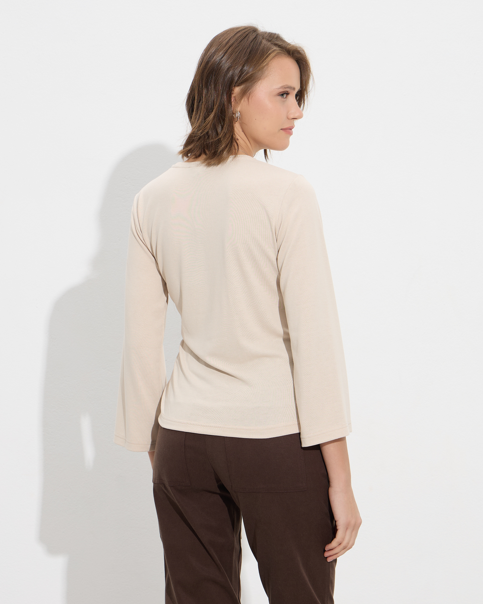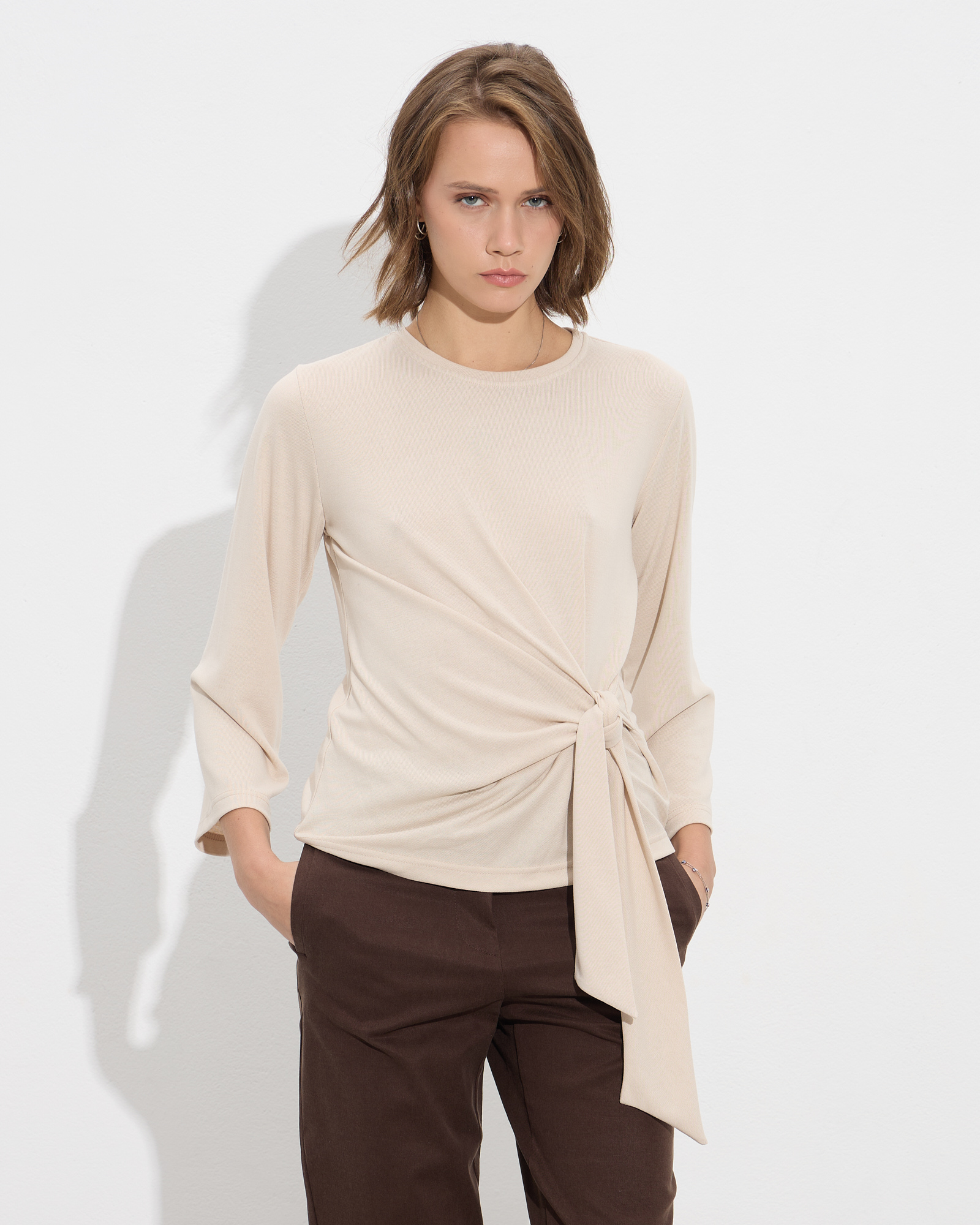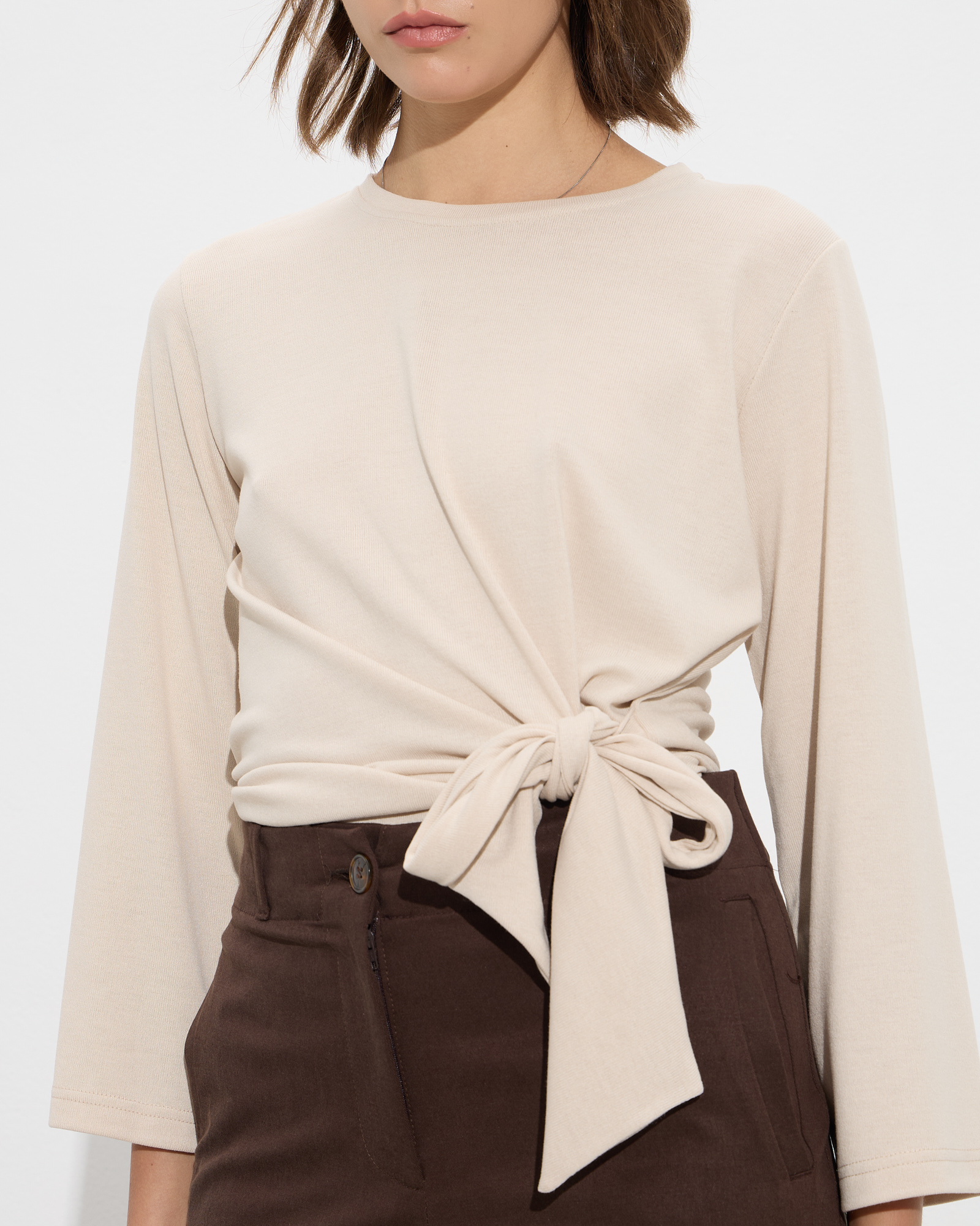 Μπλούζα μακρυμάνικη με στρογγυλή λαιμόκοψη, δέσιμο στη μέση σε μαλακό και ελαστικό ύφασμα
