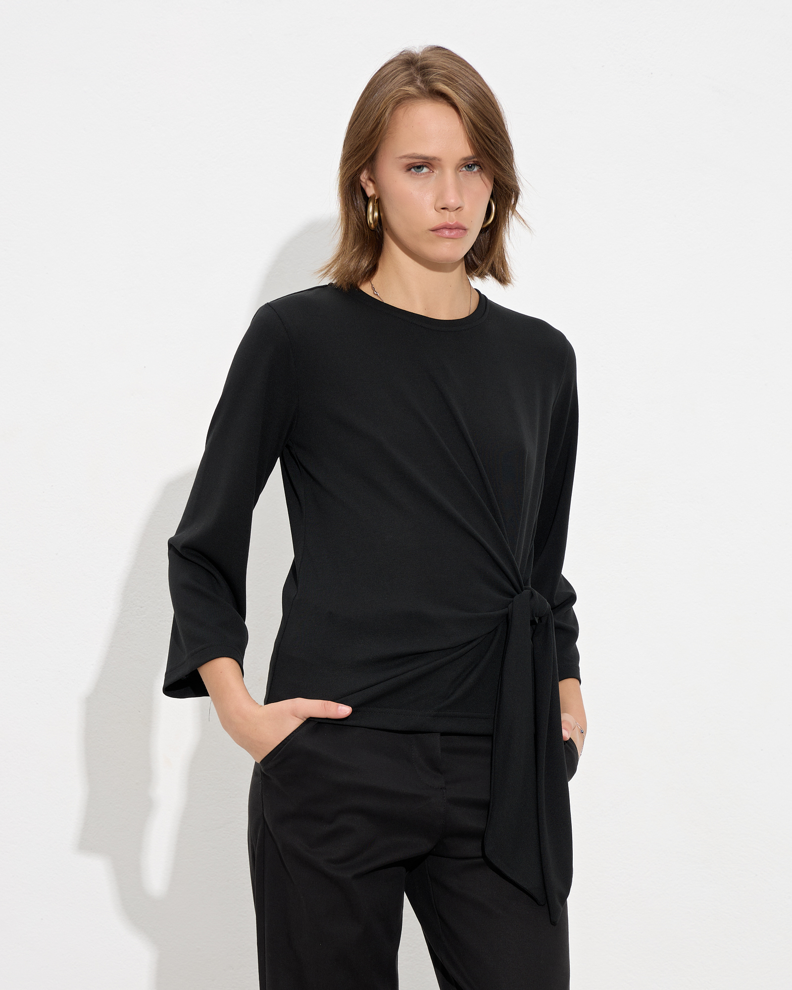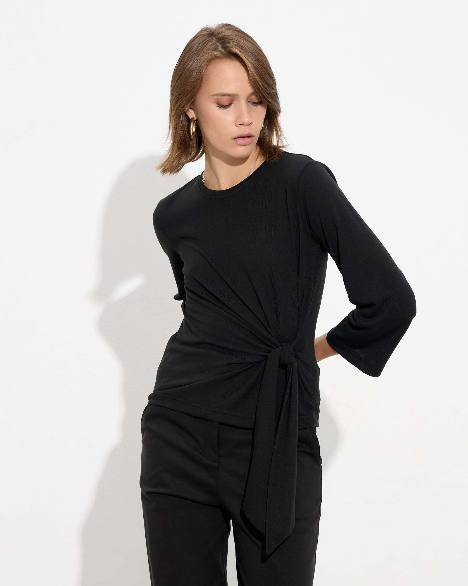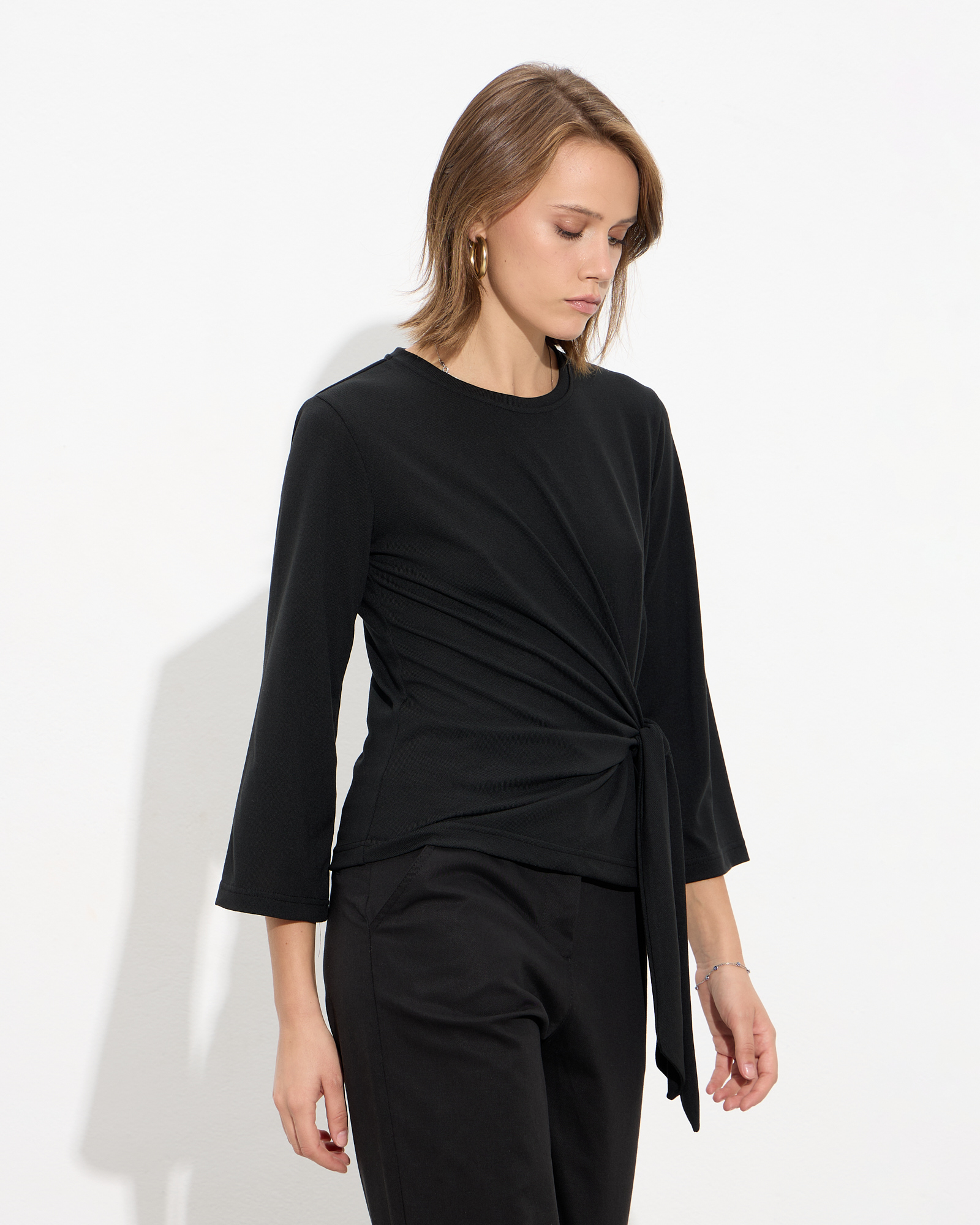 Μπλούζα μακρυμάνικη με στρογγυλή λαιμόκοψη, δέσιμο στη μέση σε μαλακό και ελαστικό ύφασμα