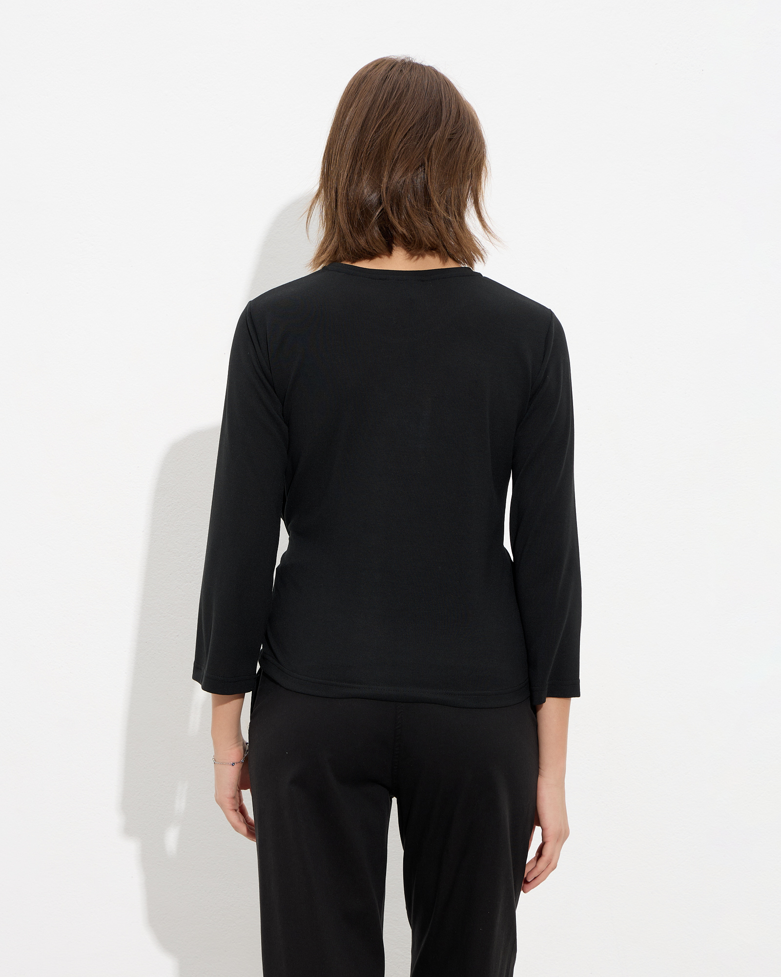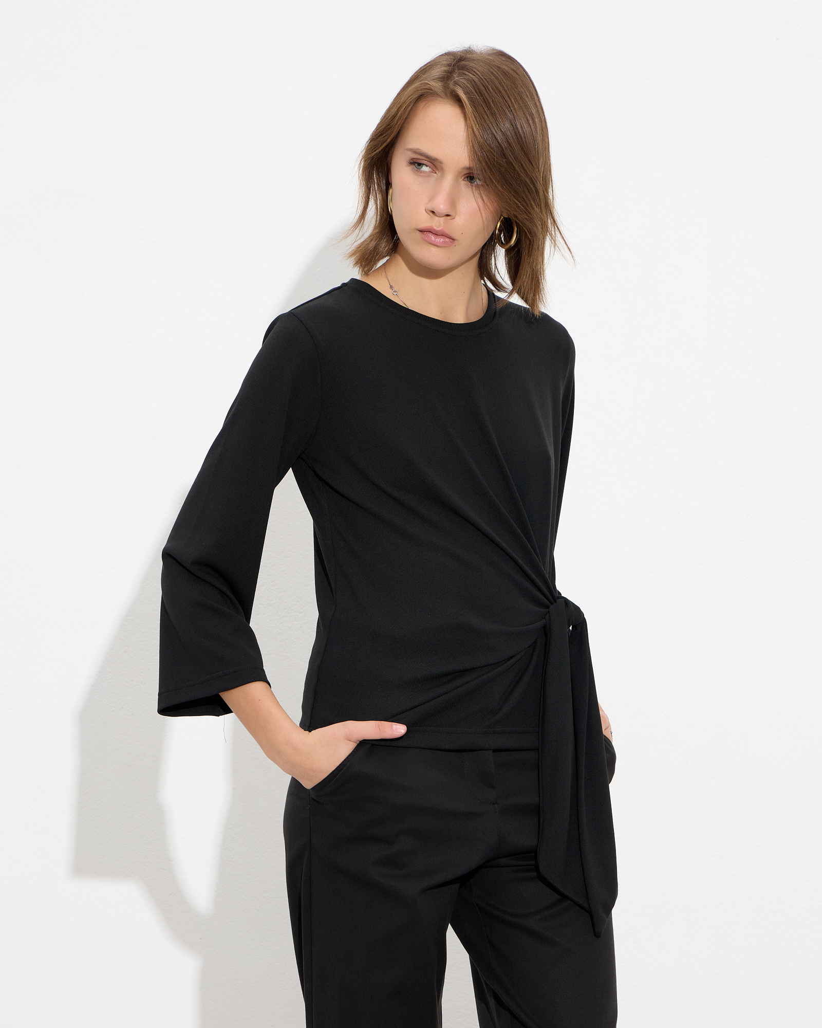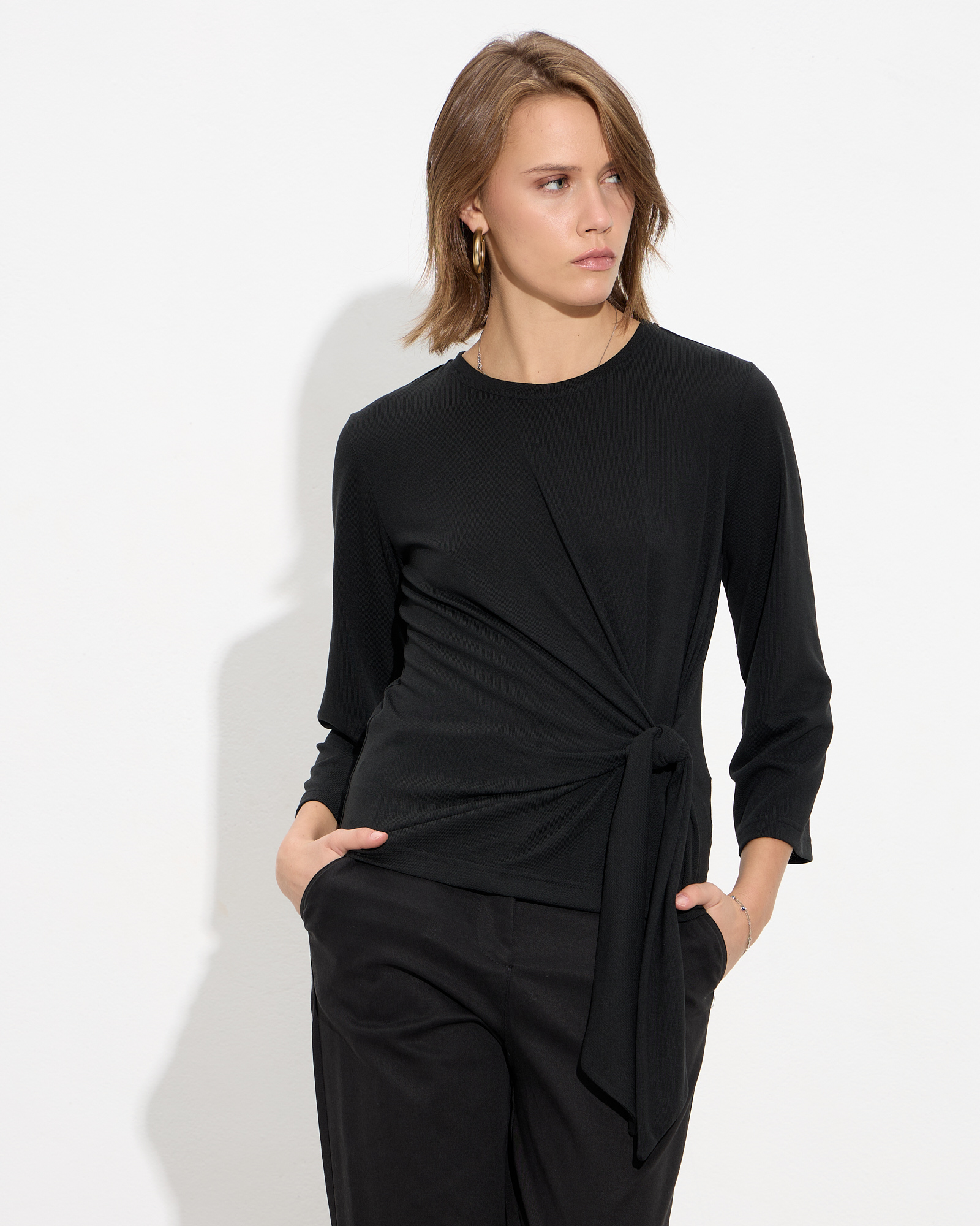 Μπλούζα μακρυμάνικη με στρογγυλή λαιμόκοψη, δέσιμο στη μέση σε μαλακό και ελαστικό ύφασμα