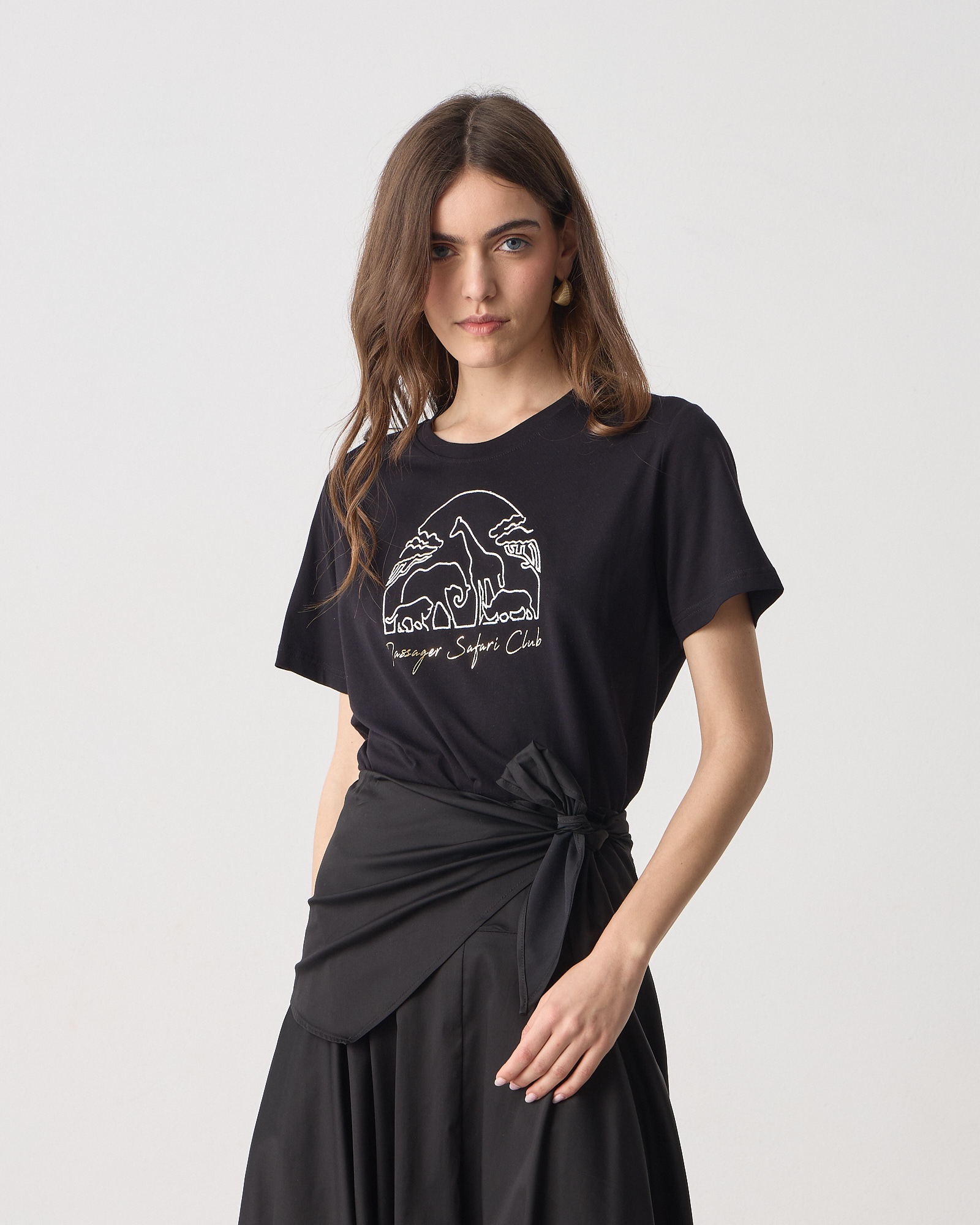 Μπλούζα κοντομάνικη με στρογγυλή λαιμόκοψη, τύπωμα safari σε βαμβακερό πανί, σε κανονική εφαρμογή