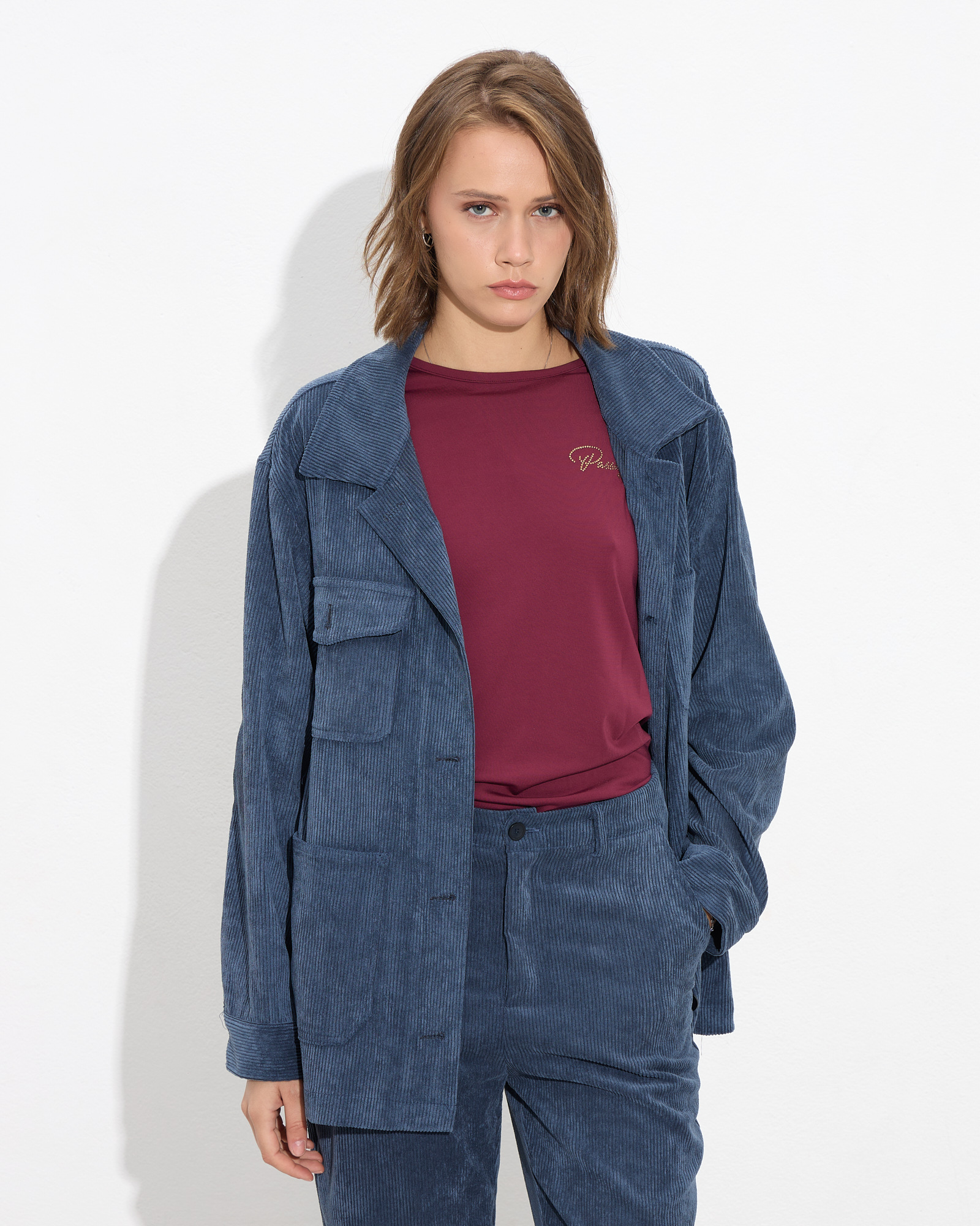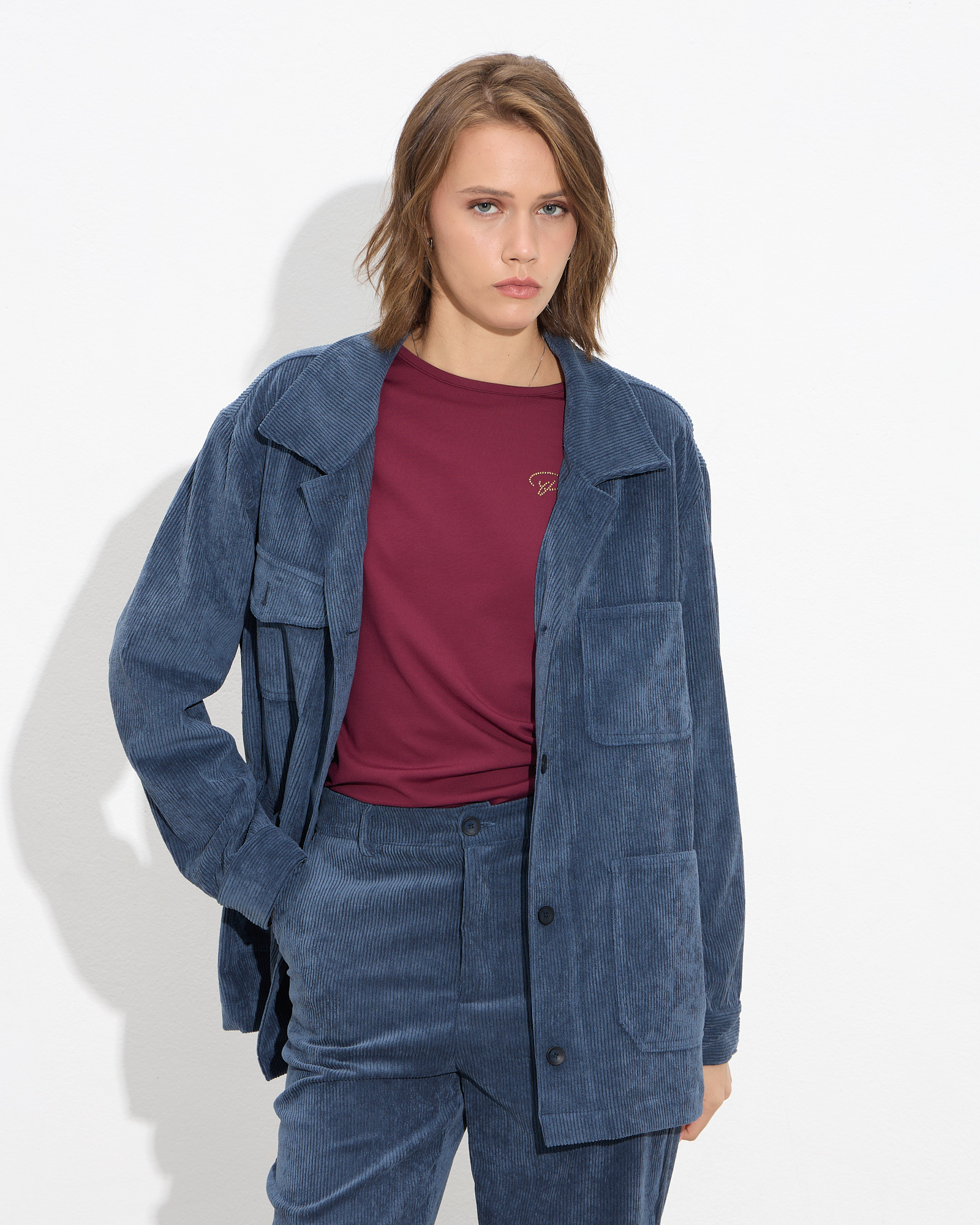 Ζακέτα overshirt κοτλέ με patch τσέπες, κλείσιμο με κουμπιά, σε άνετη γραμμή