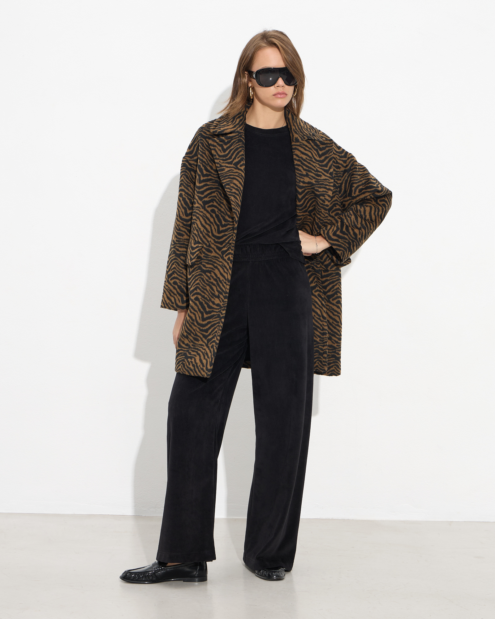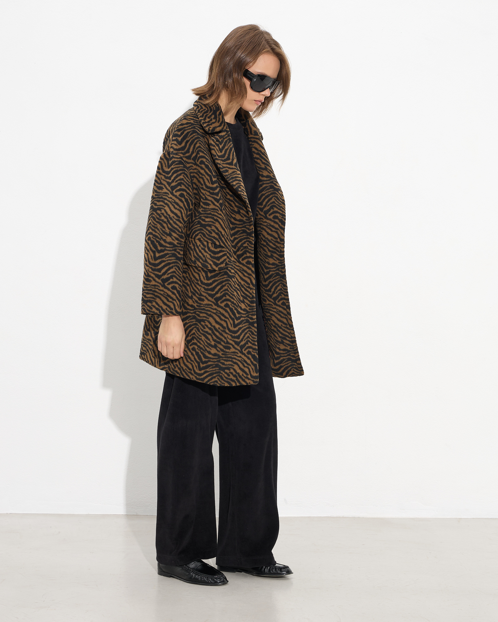 Παλτό animal print με πέτο γιακά