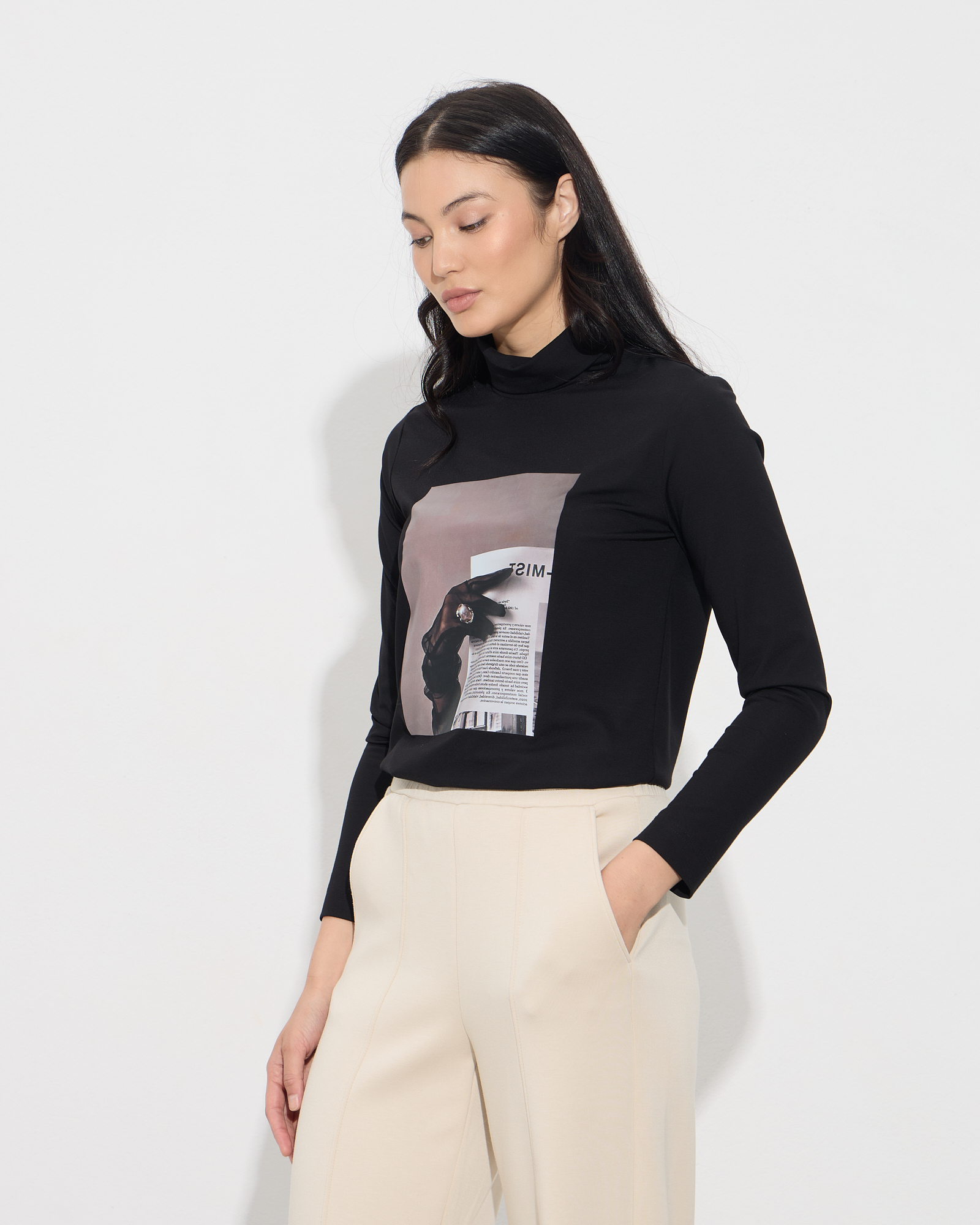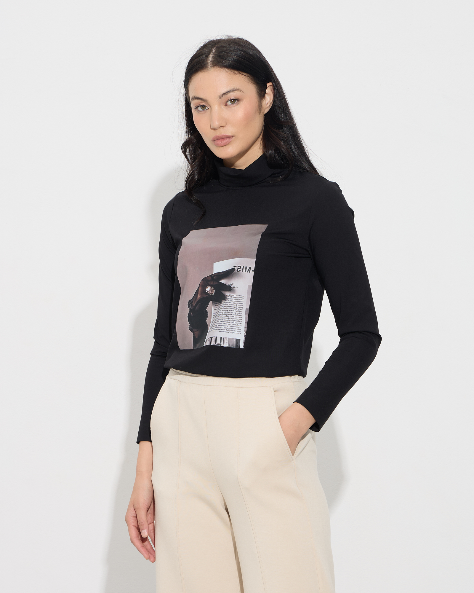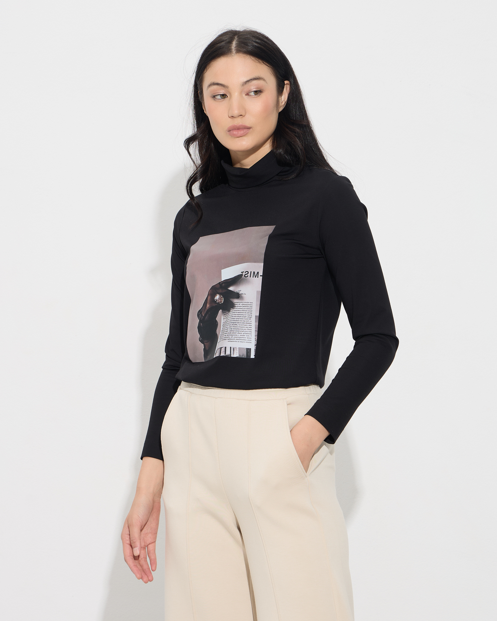 Μπλούζα ζιβάγκο με τύπωμα, μακρύ μανίκι, σε ελαστική εφαρμογή