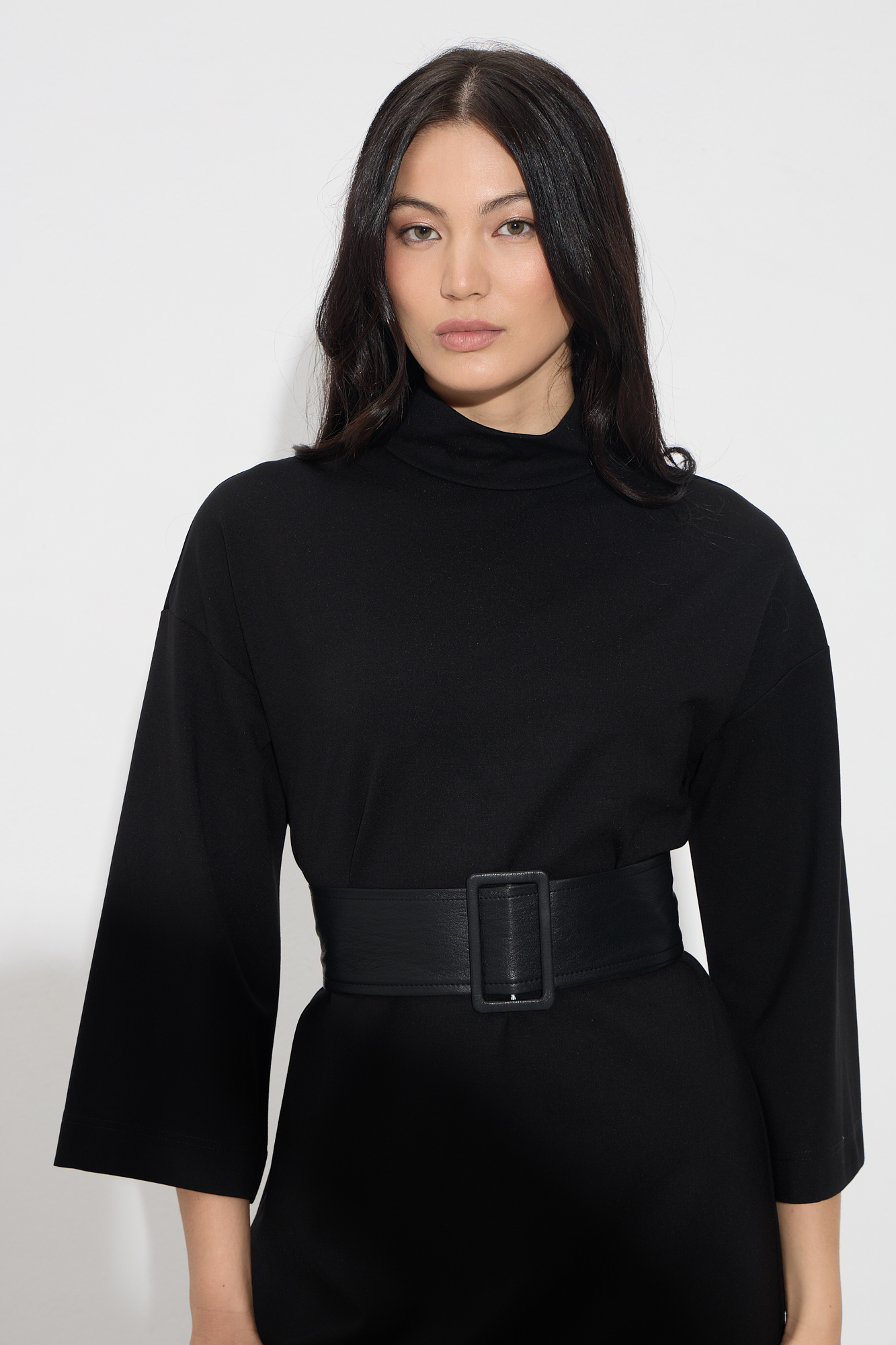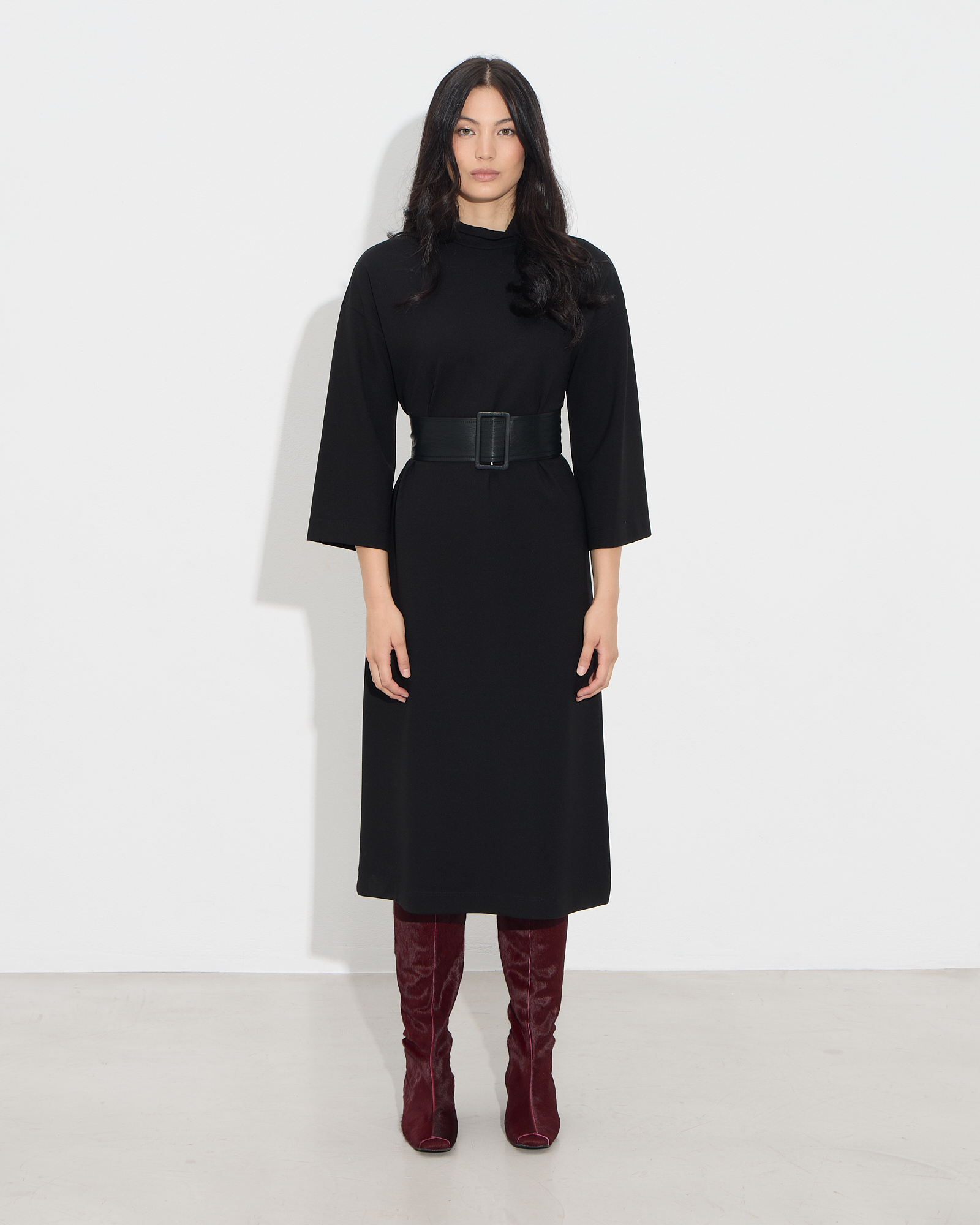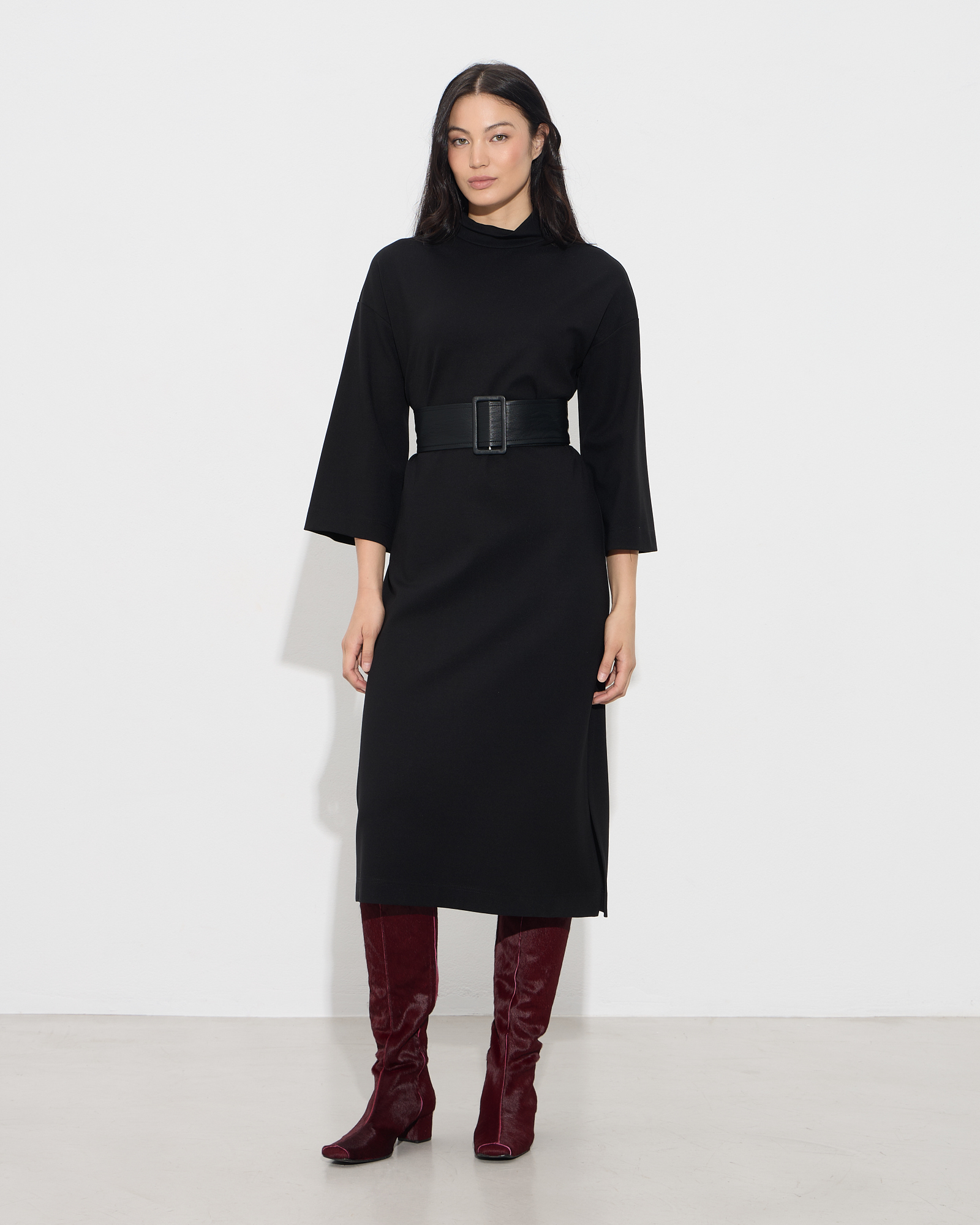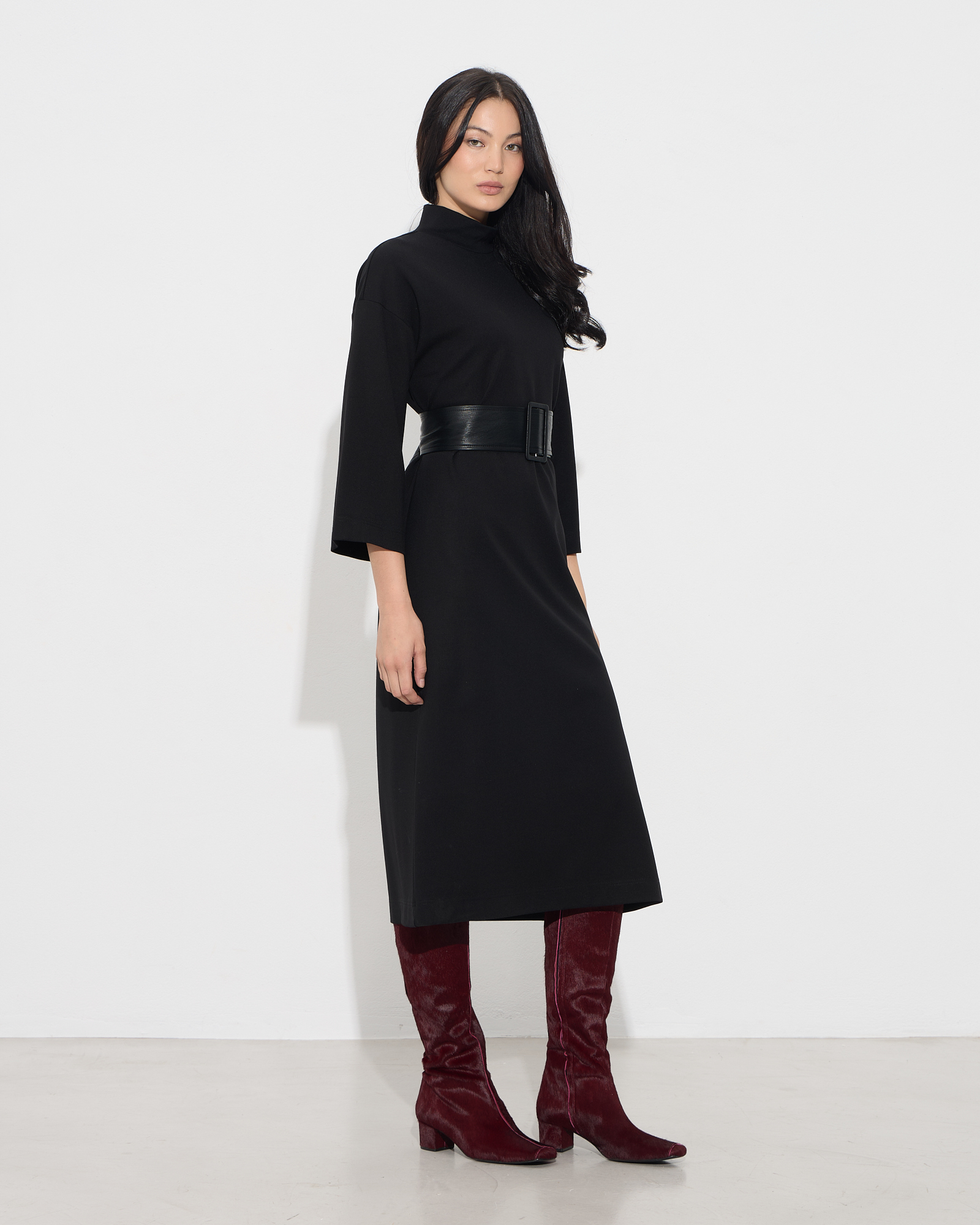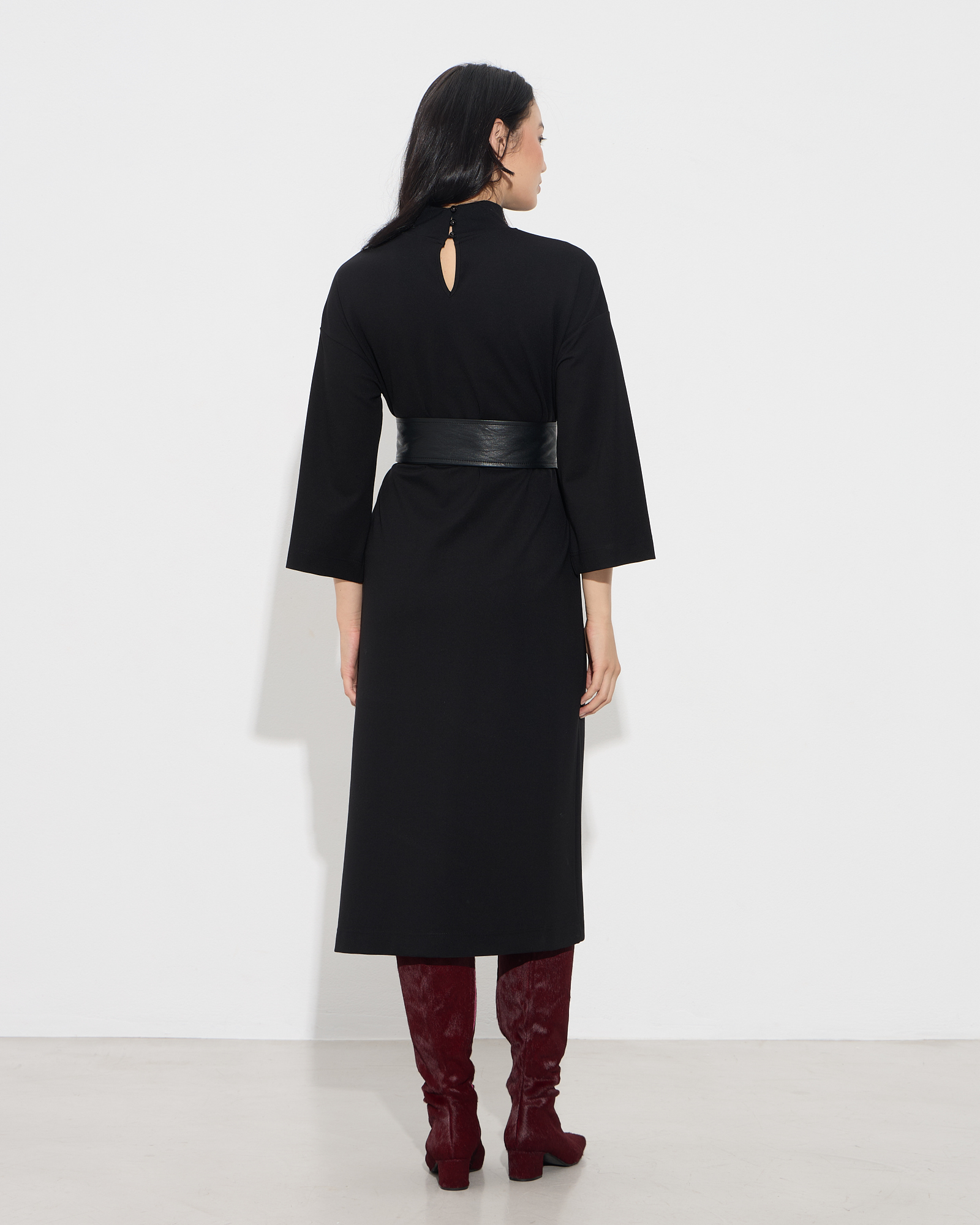 Φόρεμα midi με μακρύ μανίκι,με λουπέτο λαιμόκοψη με κουμπιά στο πίσω μέρος, ζώνη αποσπώμενη με πλαϊνό σκίσιμο, κανονική εφαρμογή
