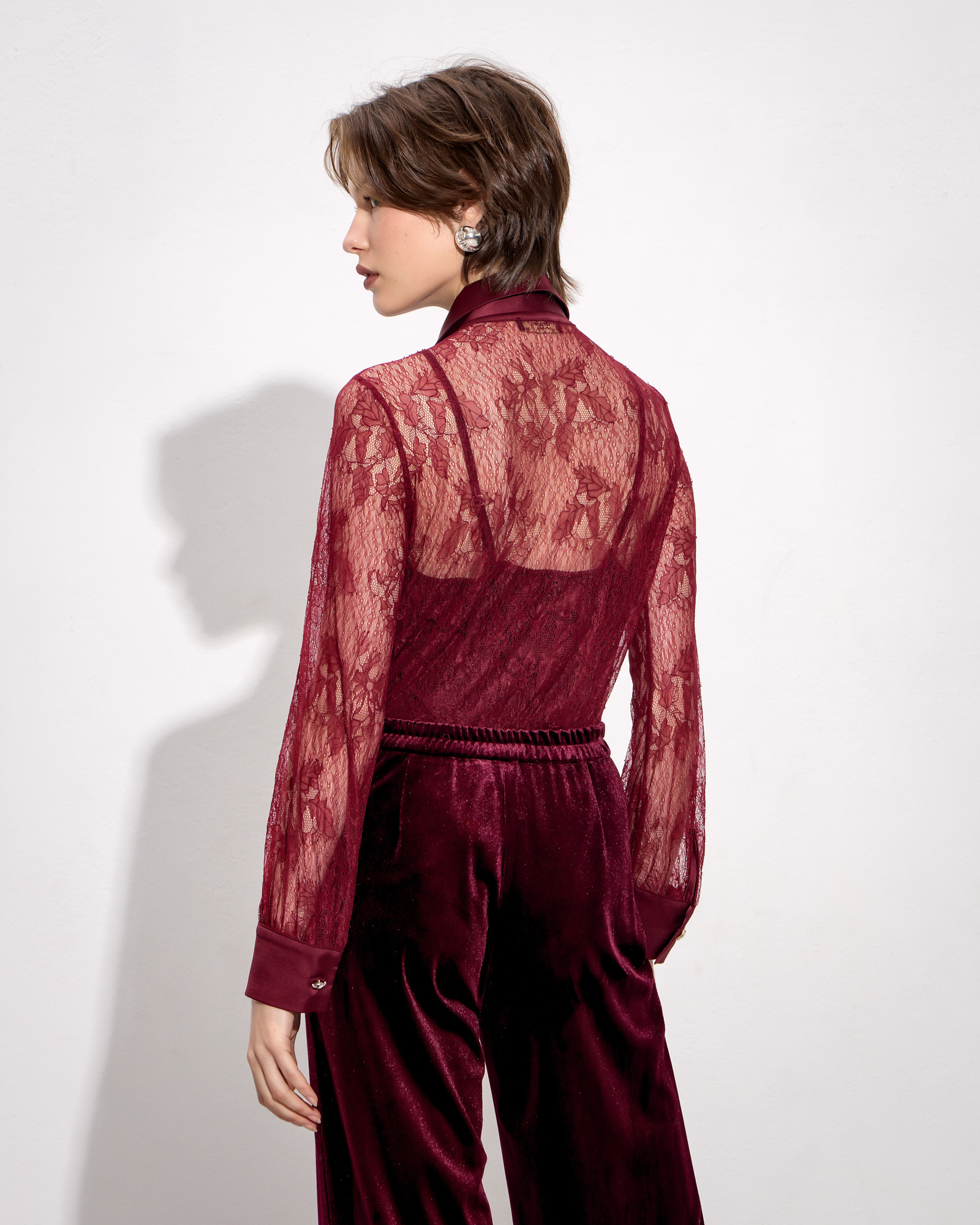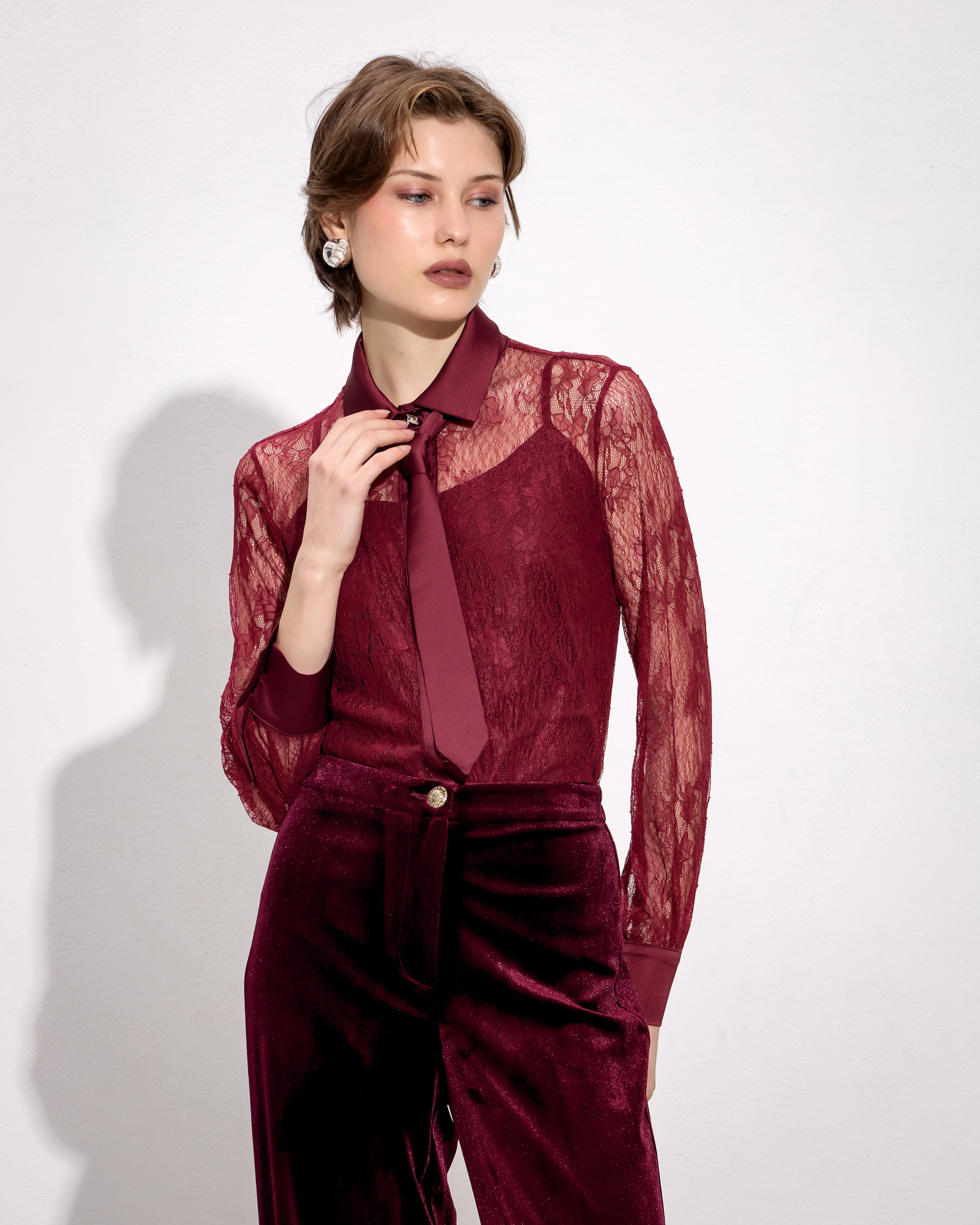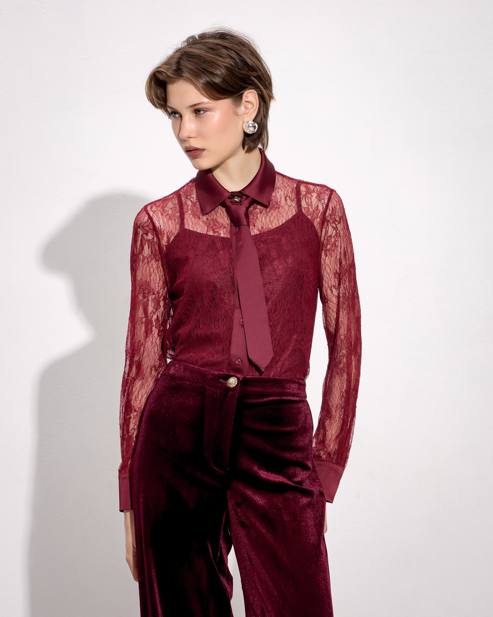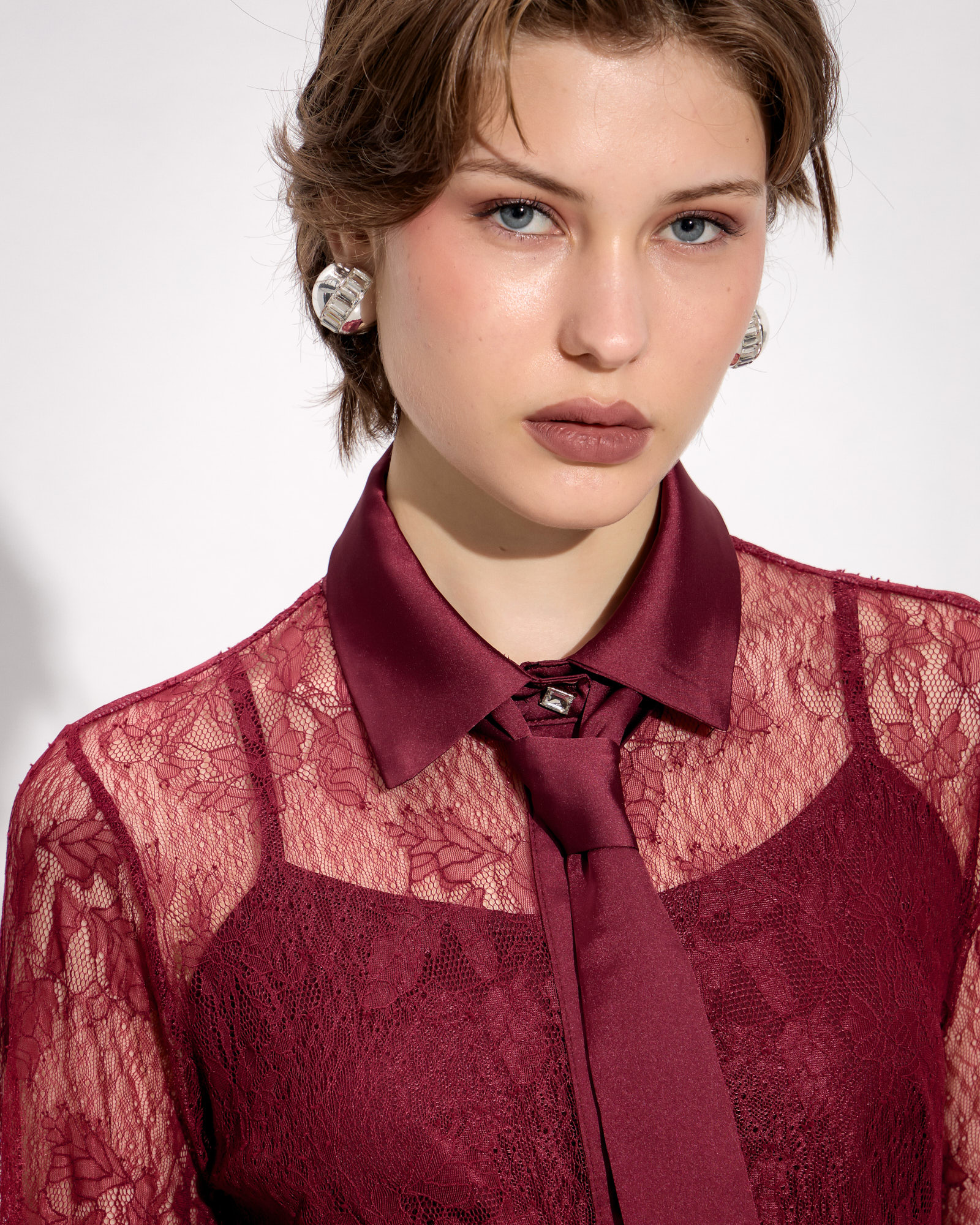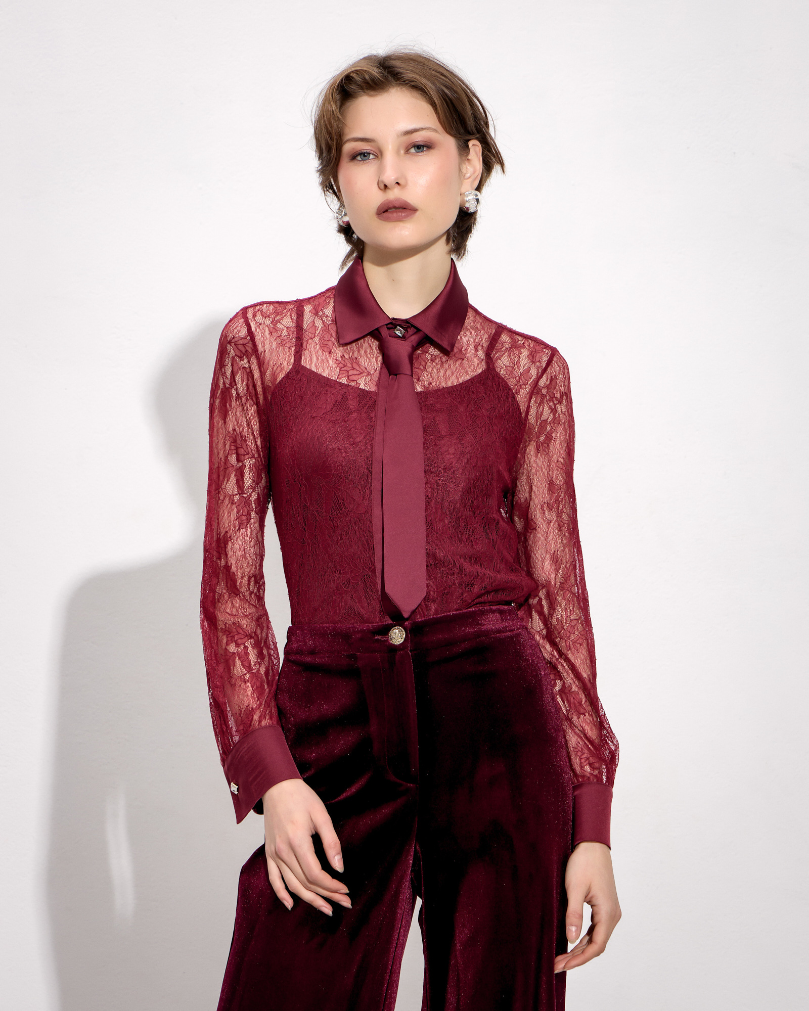 Πουκάμισο δαντέλα με γιακά και αποσπώμενη γραβάτα, μακρύ μανίκι με μανσέτα και κουμπί, κλείσιμο μπροστά με κουμπιά, σε κανονική γραμμή