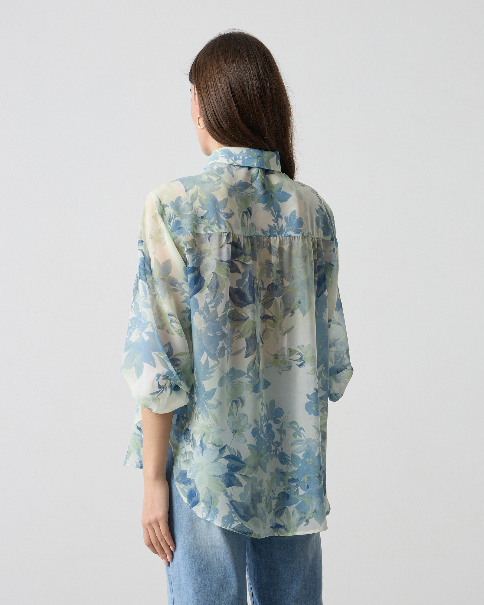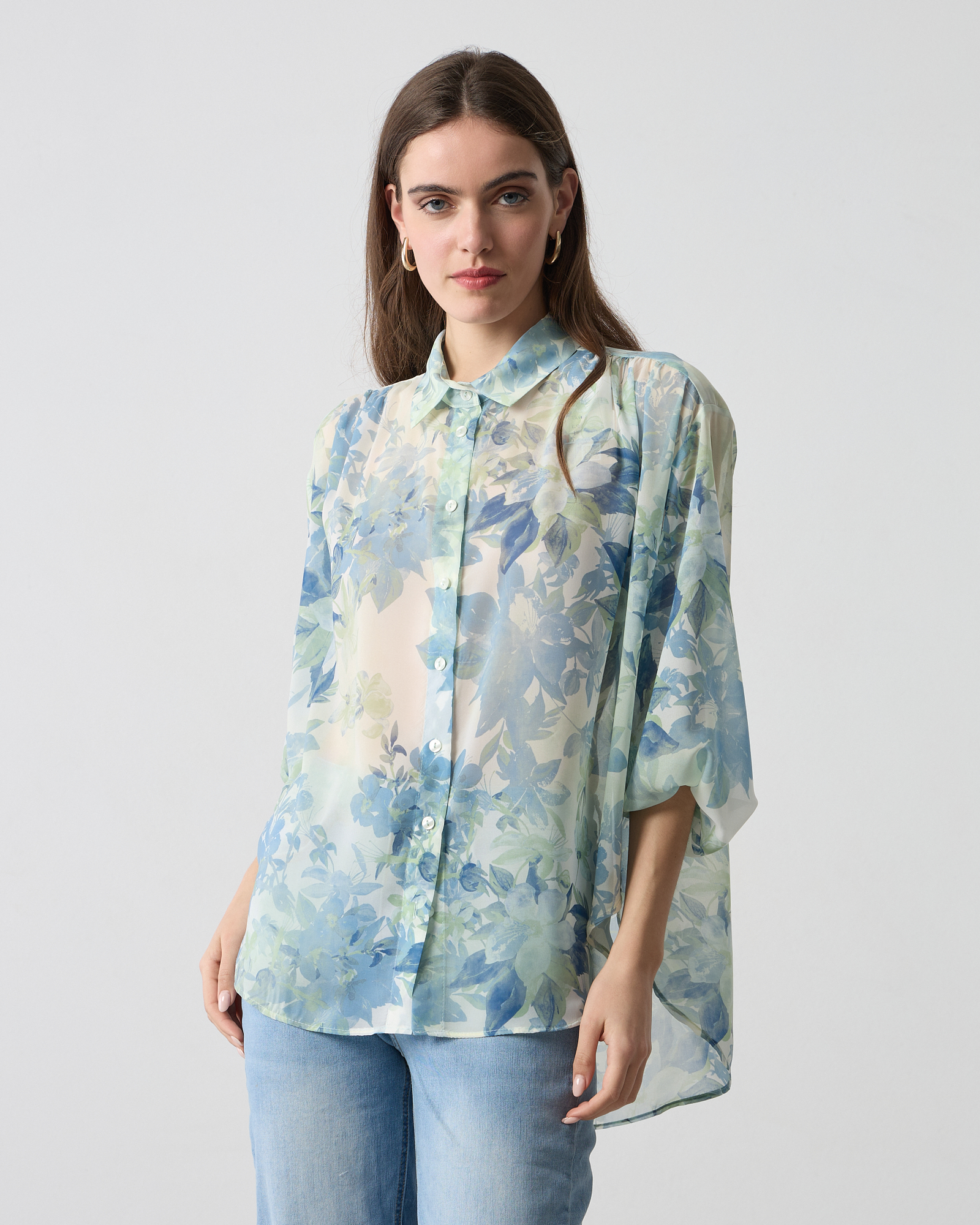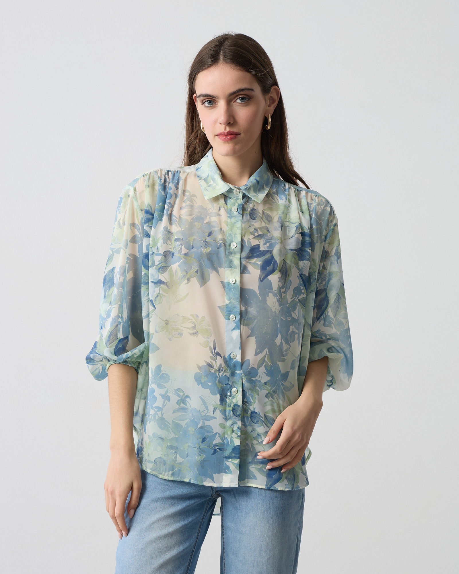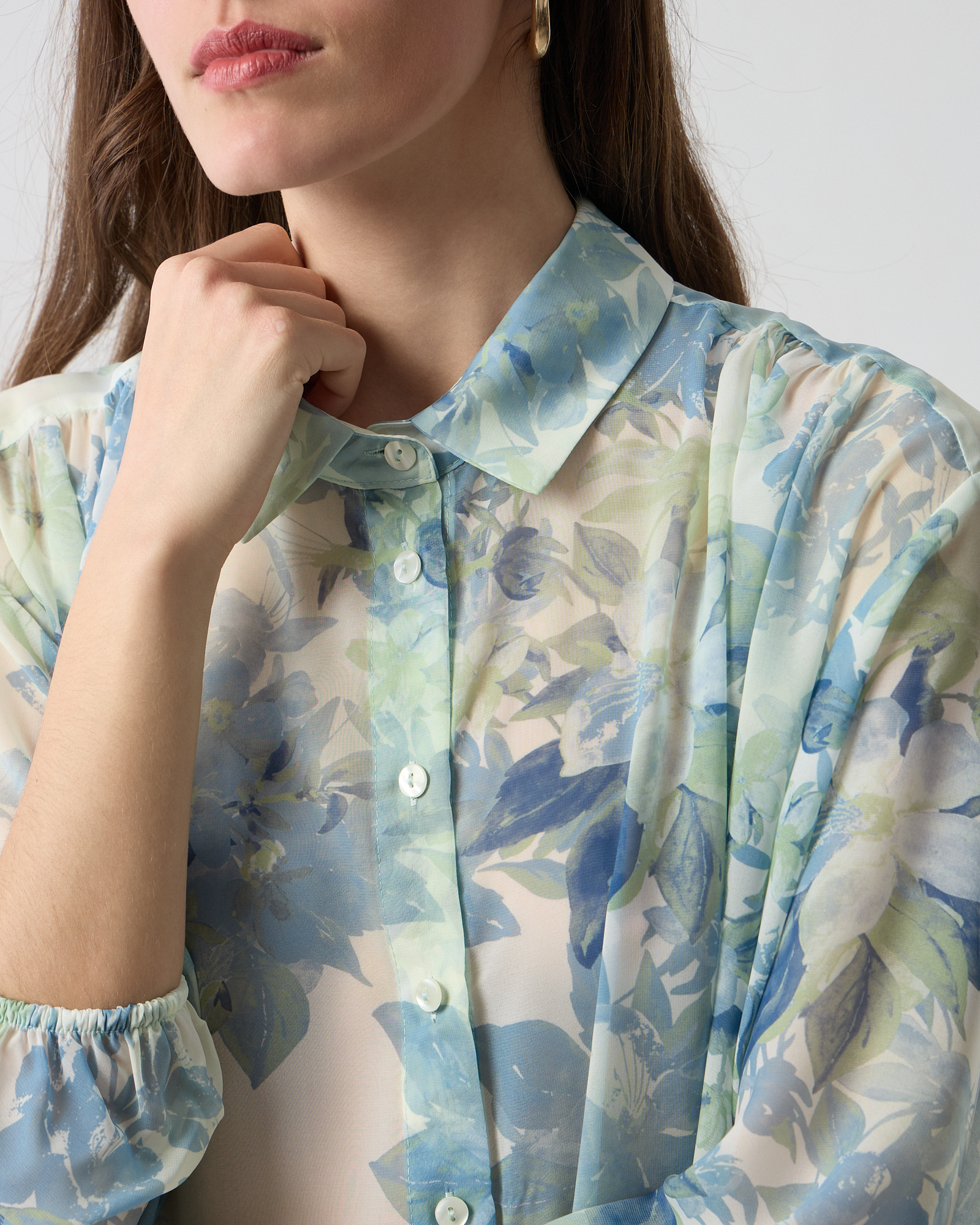 Πουκάμισο φλοράλ με γιακά, κλείσιμο με κουμπιά, μακρύ μανίκι με λάστιχο στο τελείωμα σε αέρινο ύφασμα, σε άνετη εφαρμογή