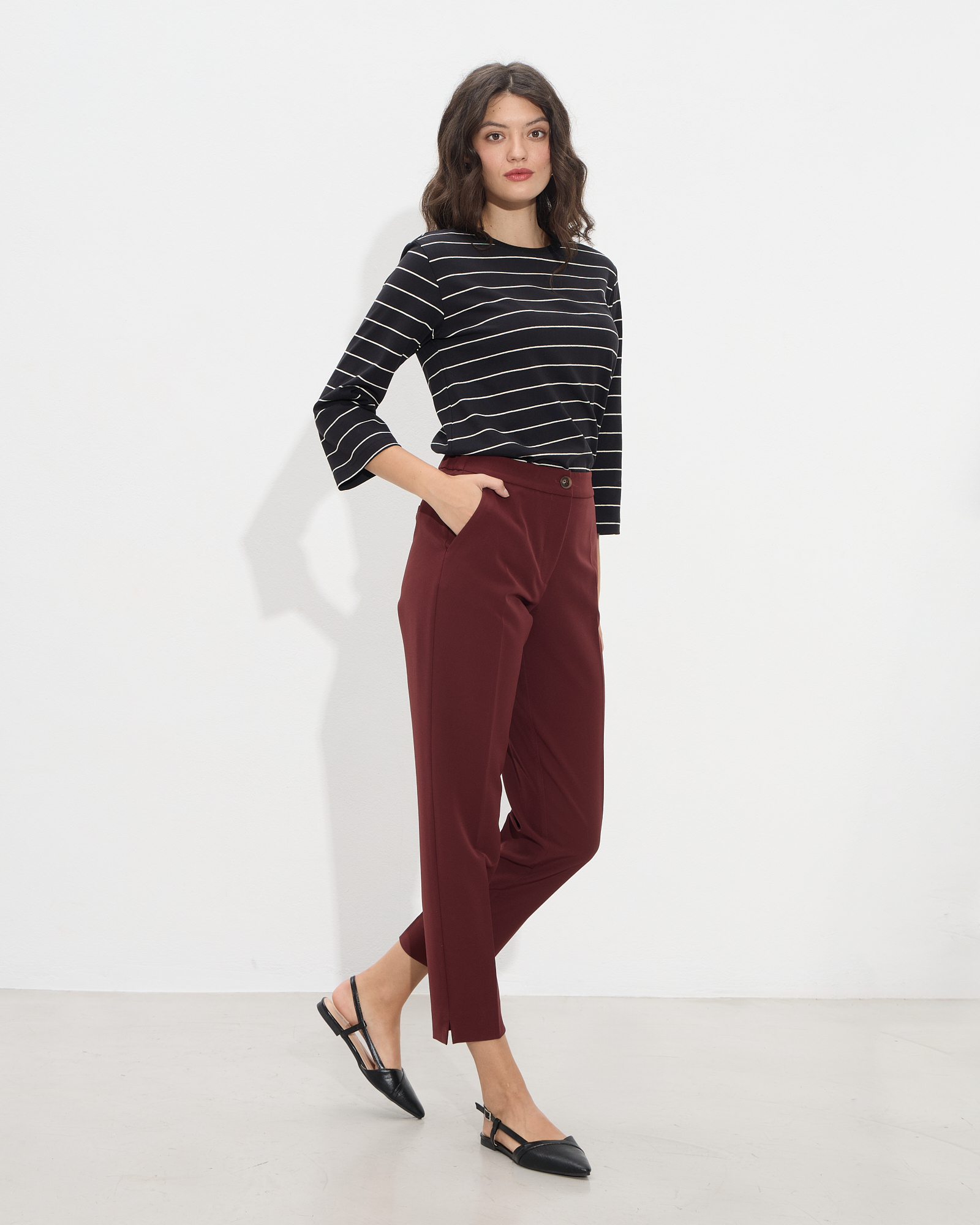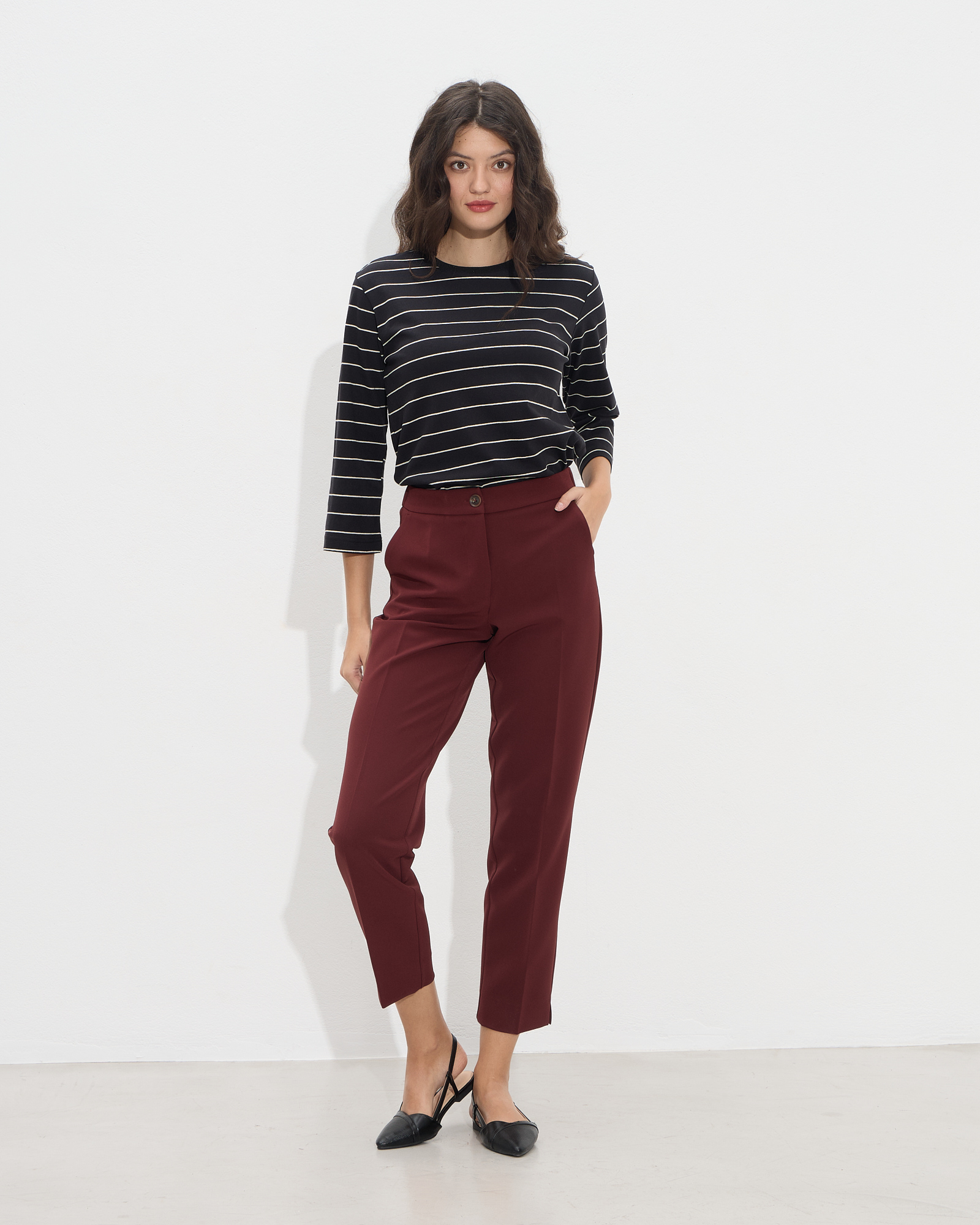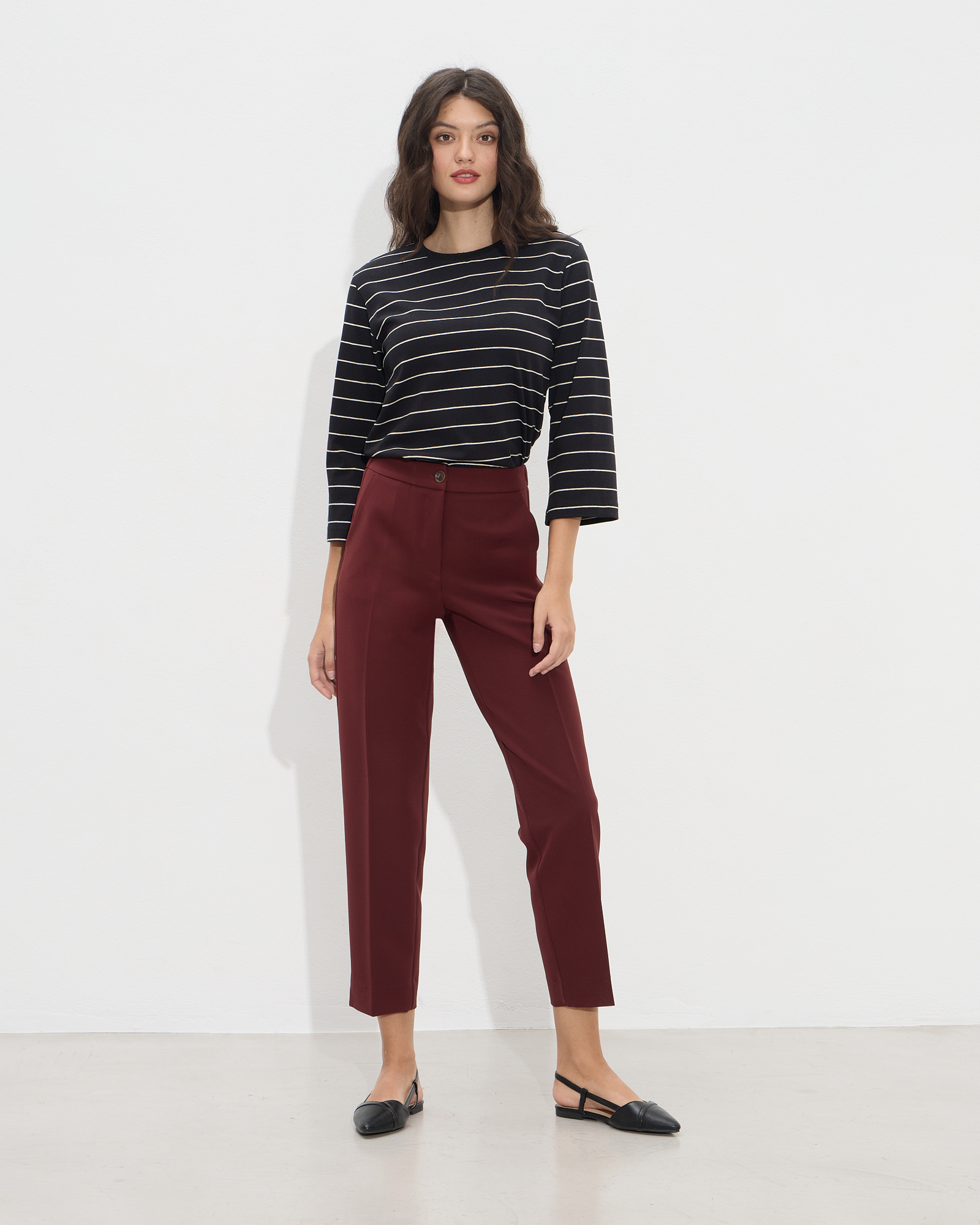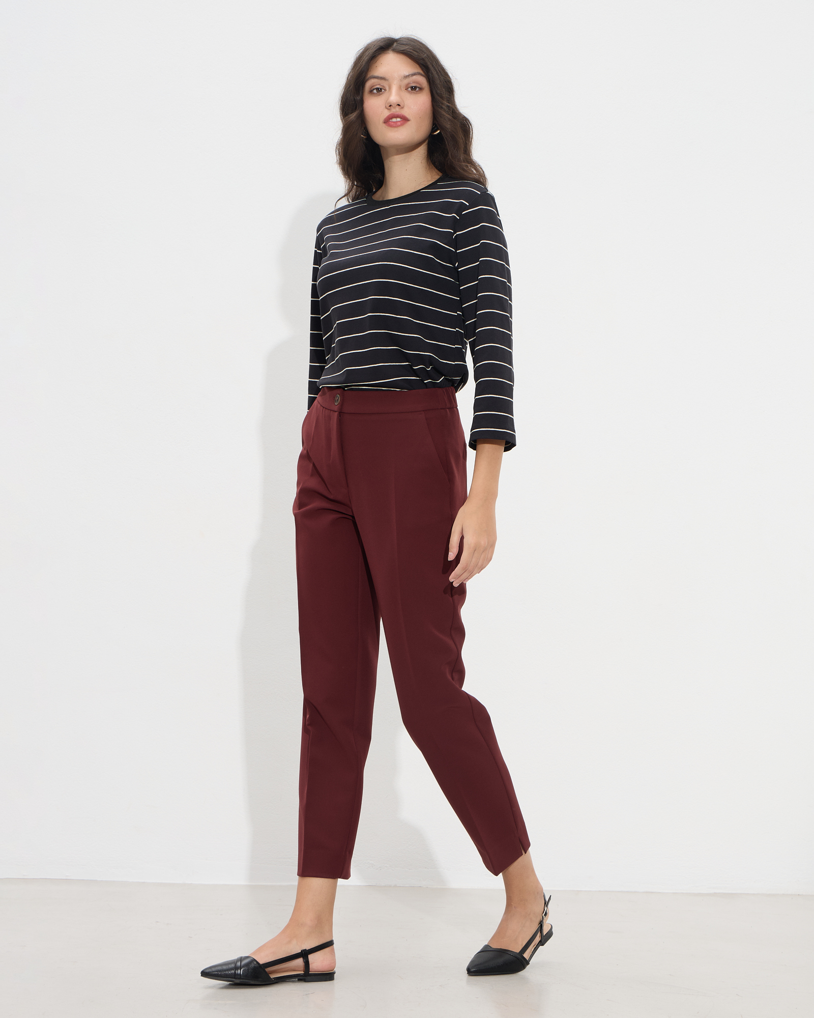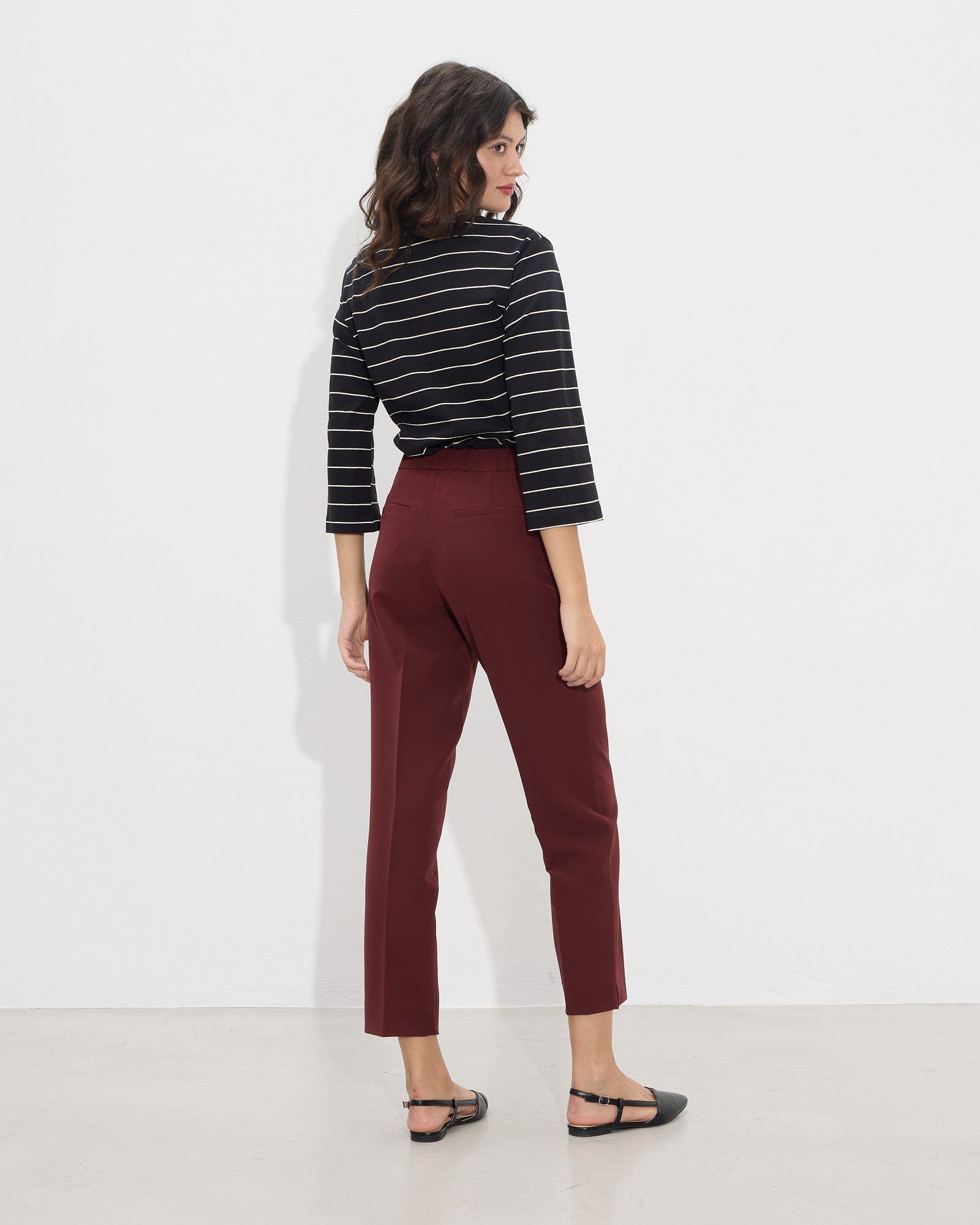 Παντελόνι cigarette ψηλόμεσο με λάστιχο στο πίσω μέρος, κλείσιμο με φερμουάρ μπροστά και κουμπί, τσέπες στο πλάι, σε κανονική γραμμή